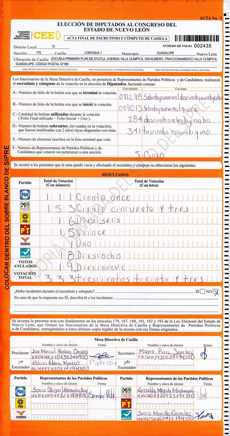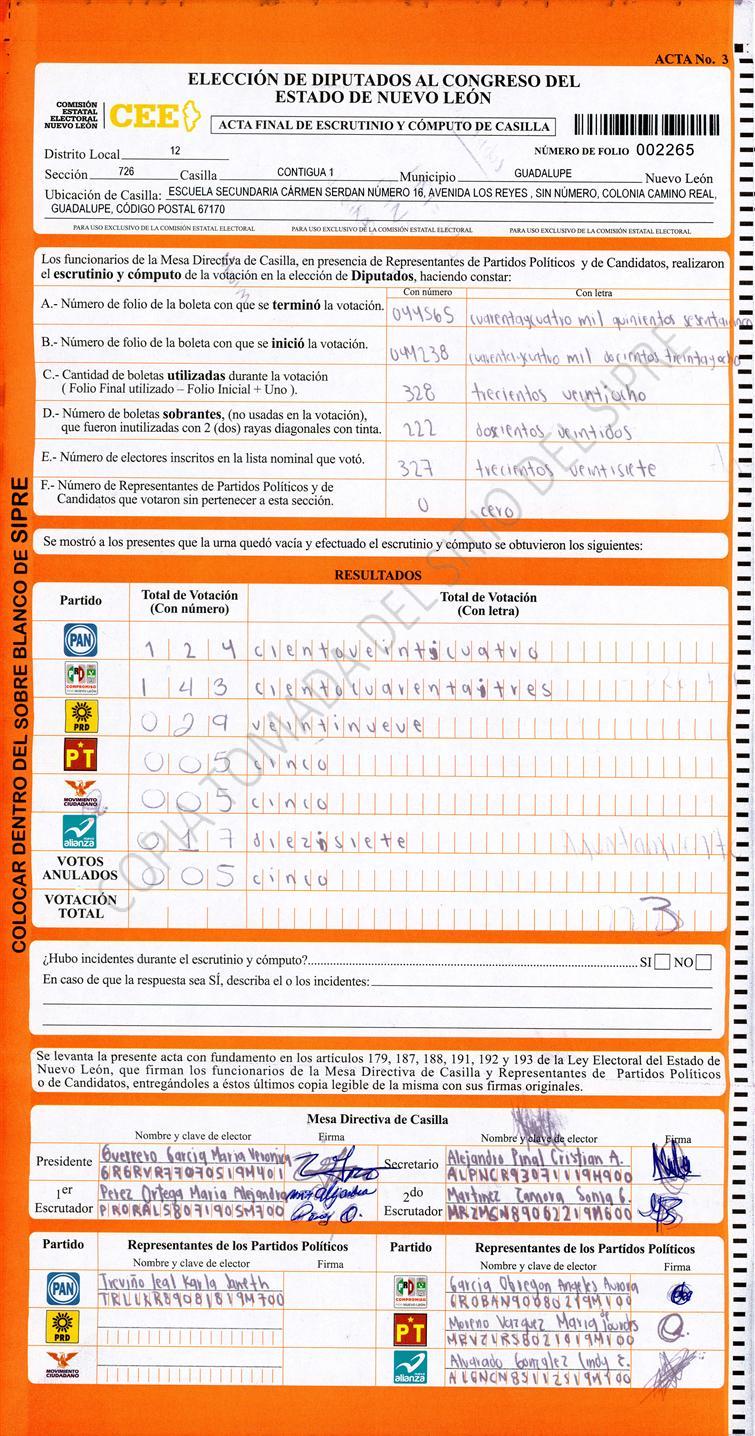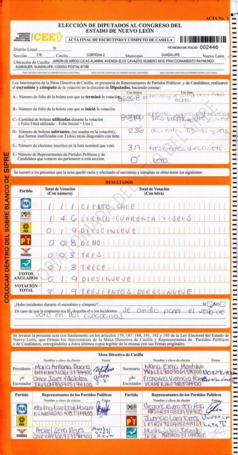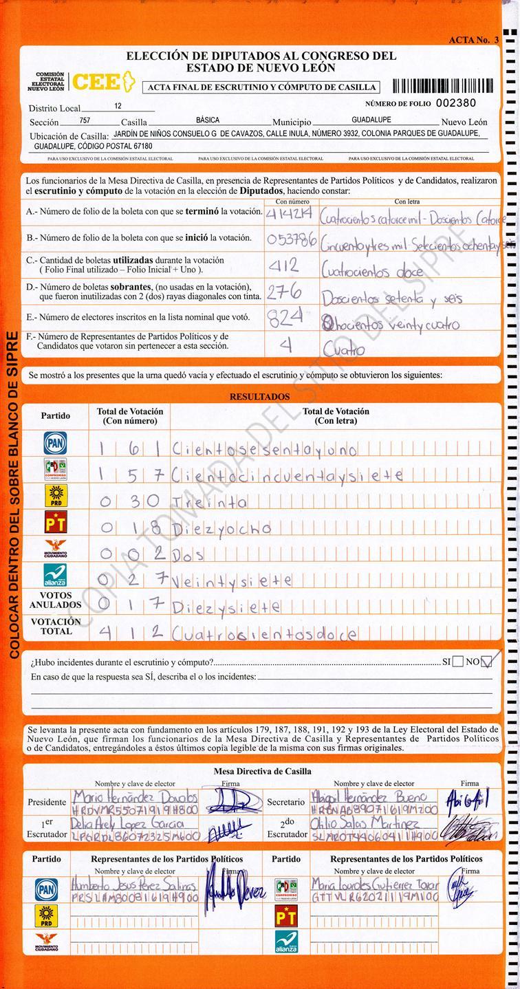 Acta con Incidencia: No hay acta |