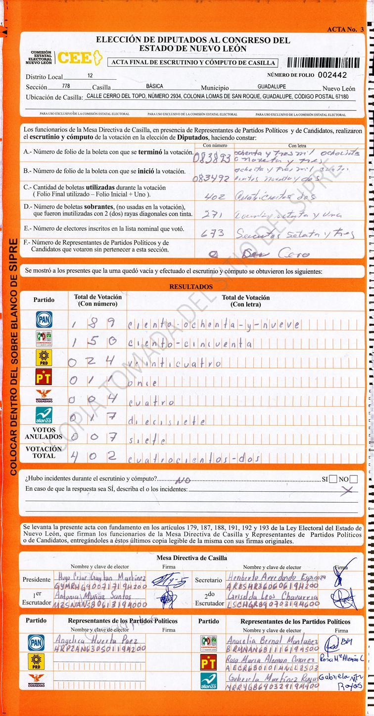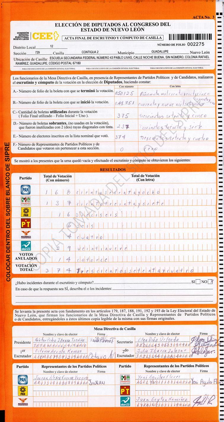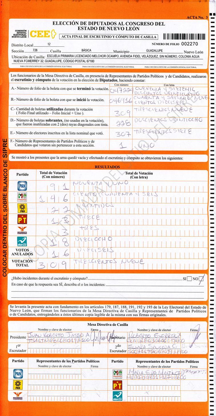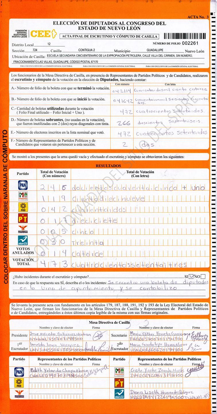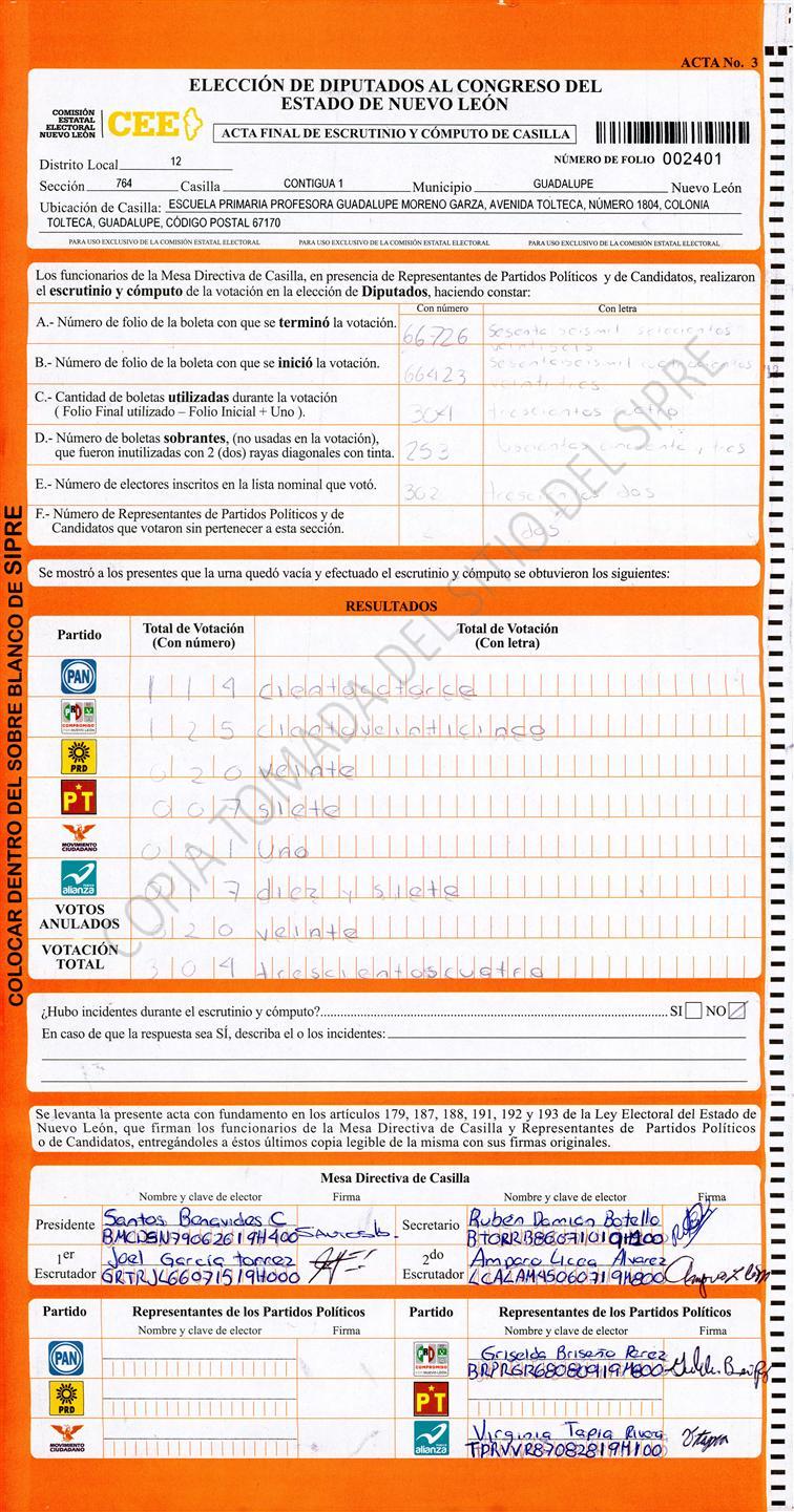 Diputados Locales, Décimo Segundo Distrito |