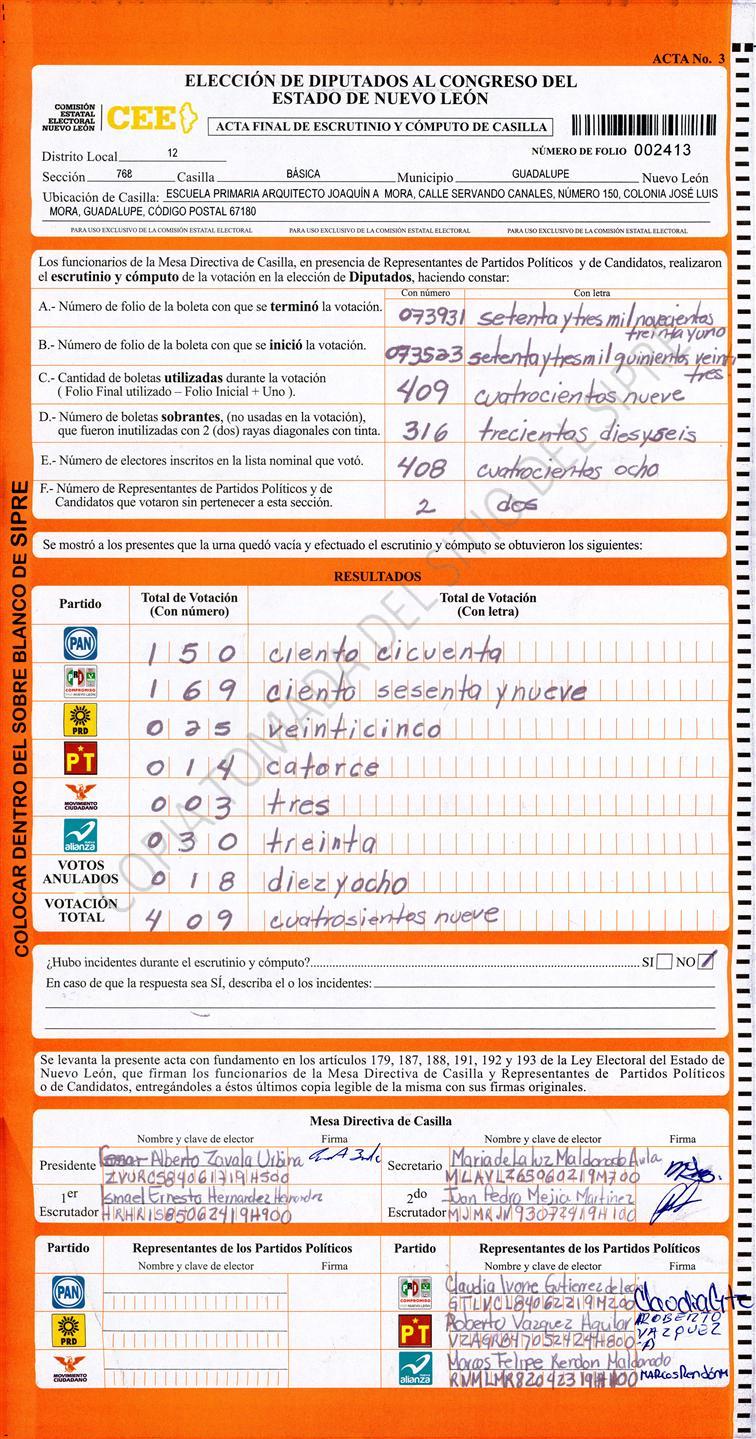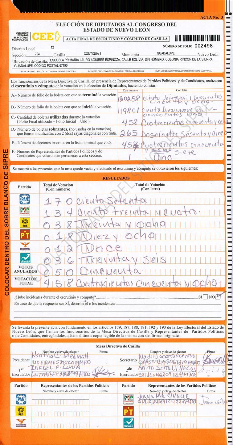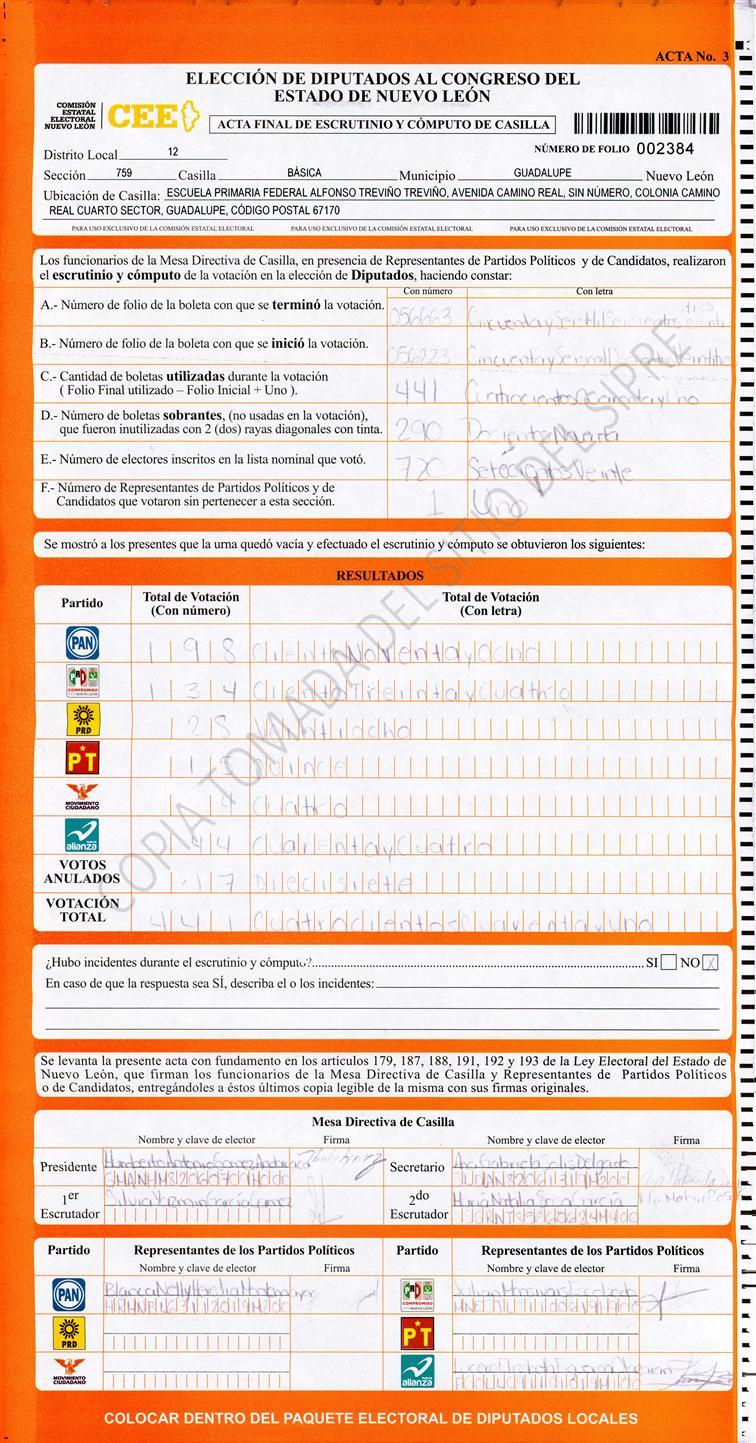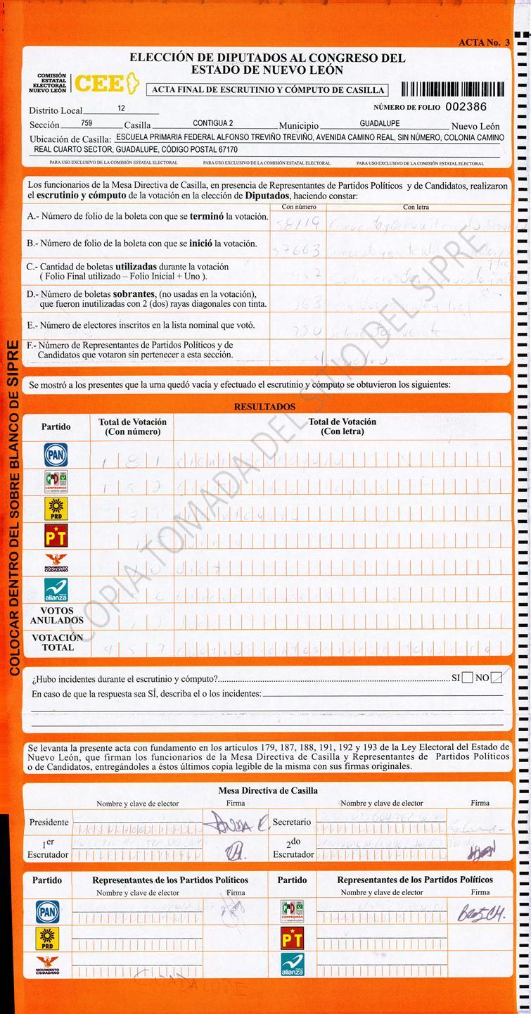 Diputados Locales, Décimo Segundo Distrito |