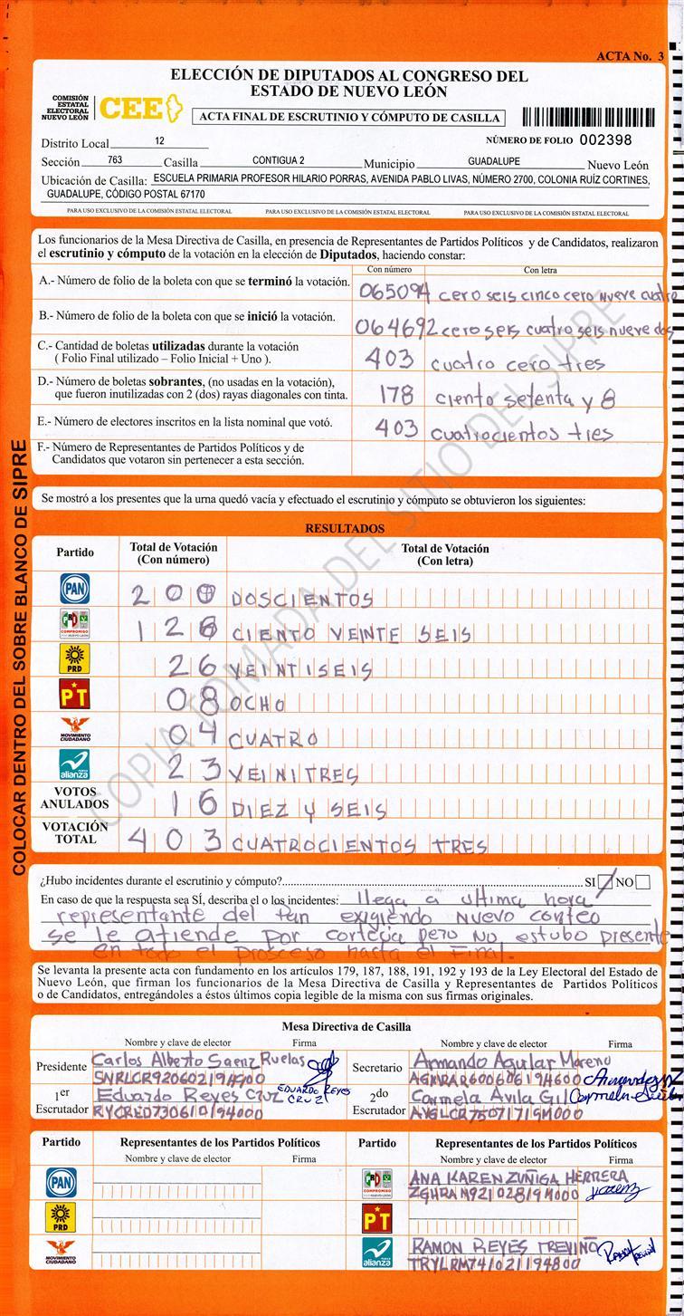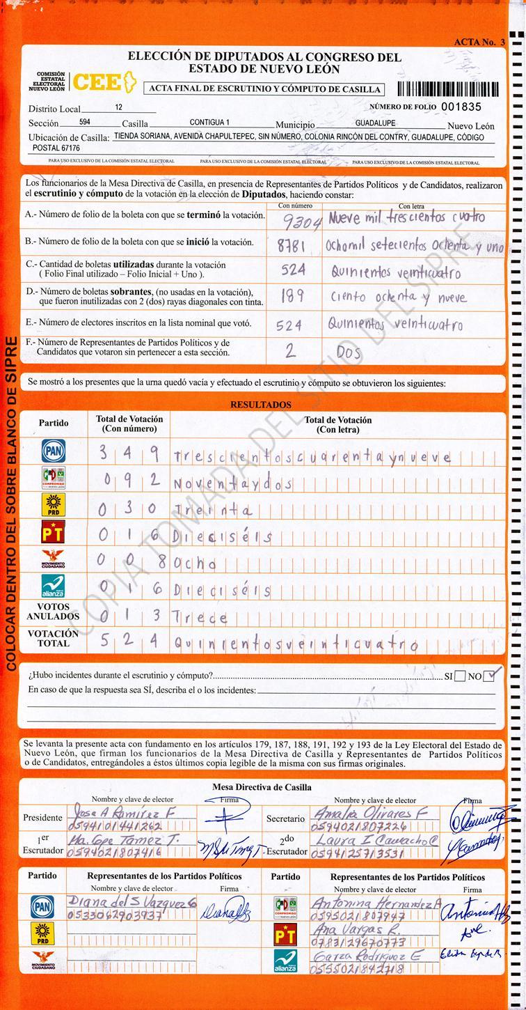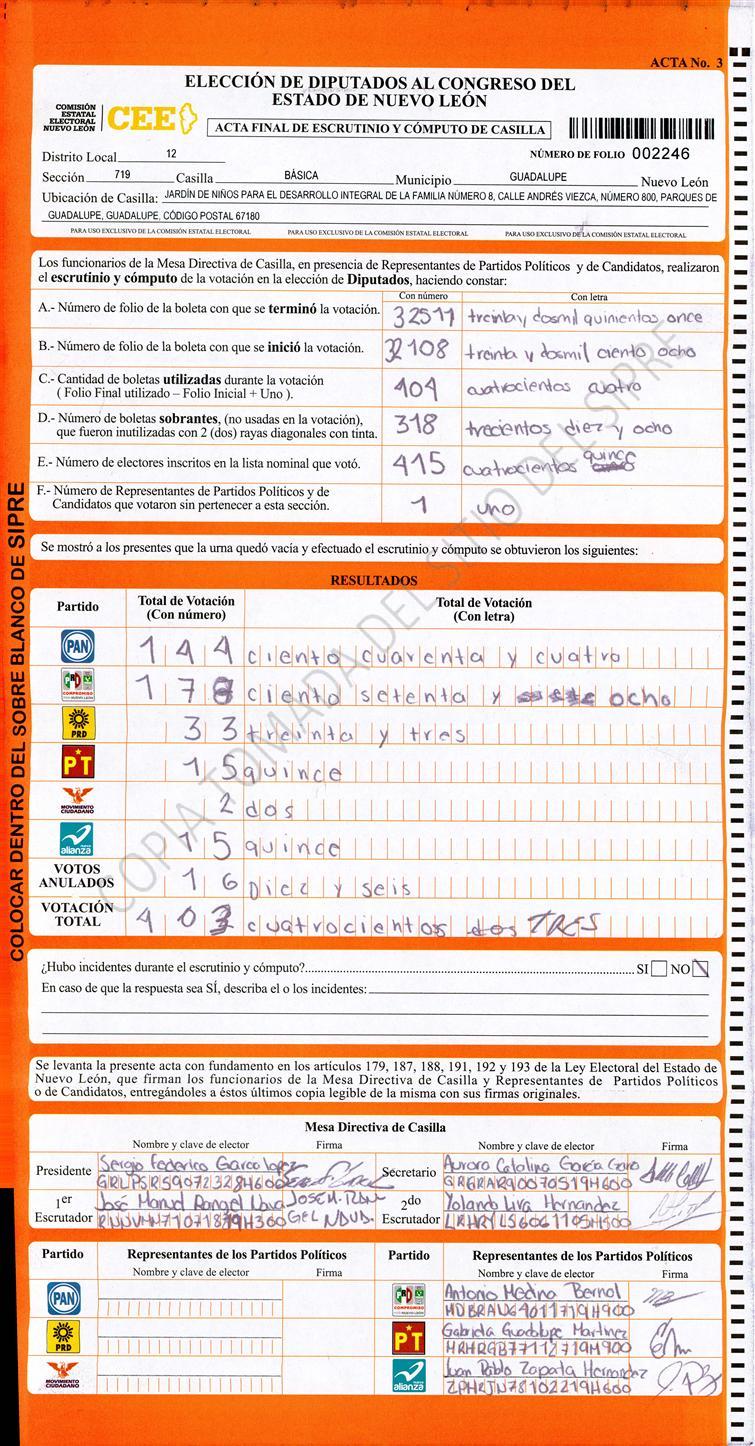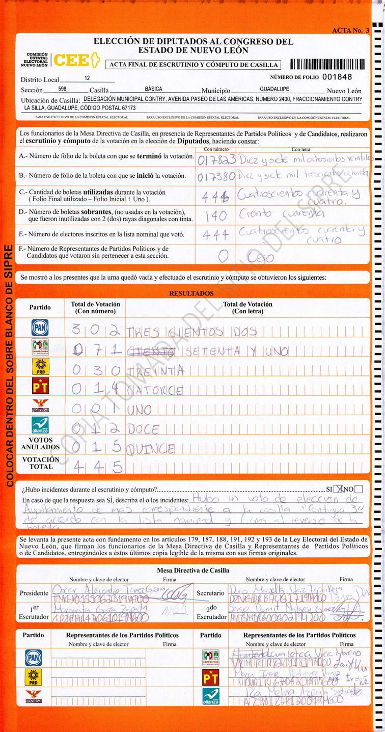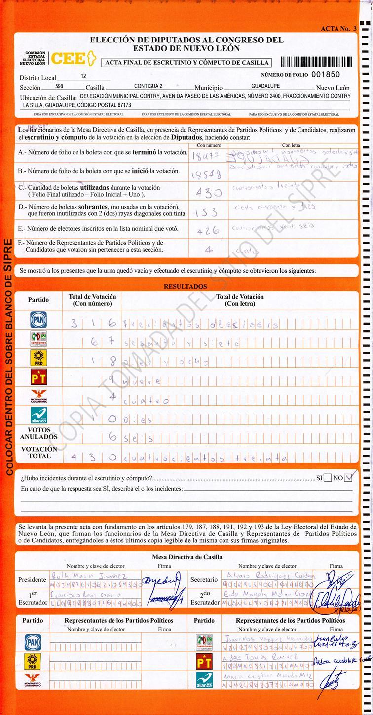 Diputados Locales, Décimo Segundo Distrito |