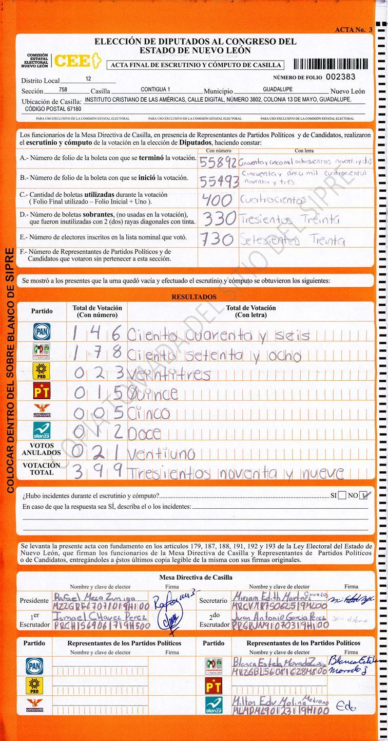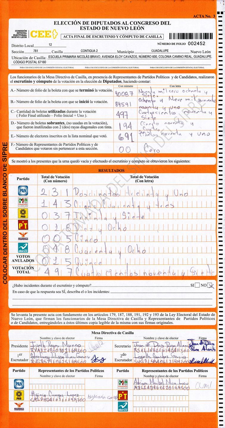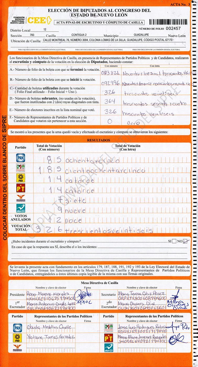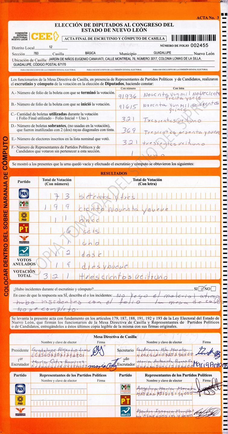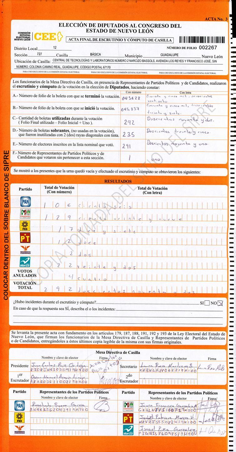 Diputados Locales, Décimo Segundo Distrito |