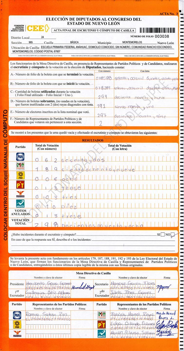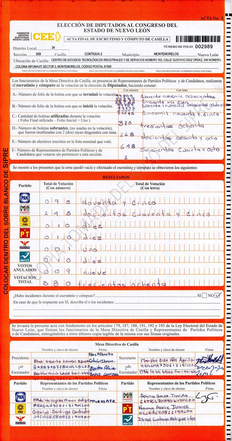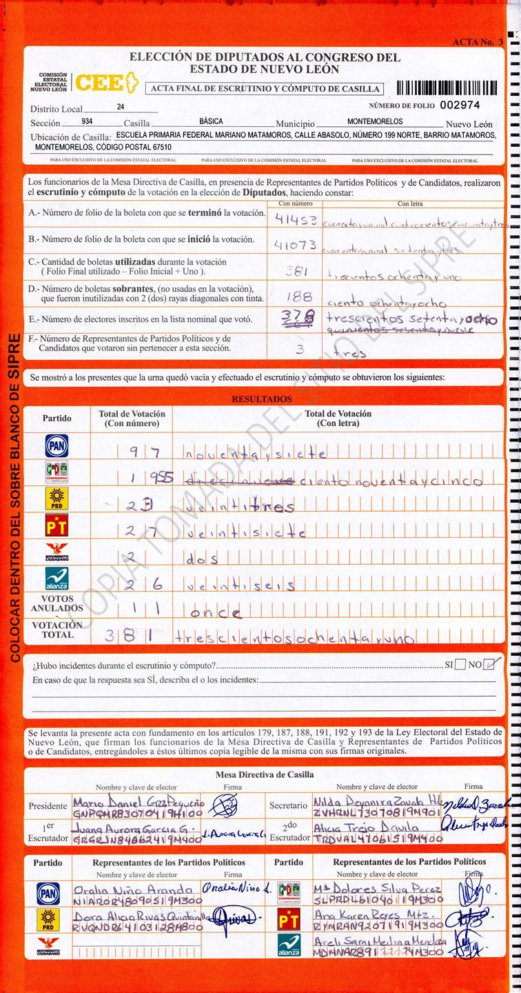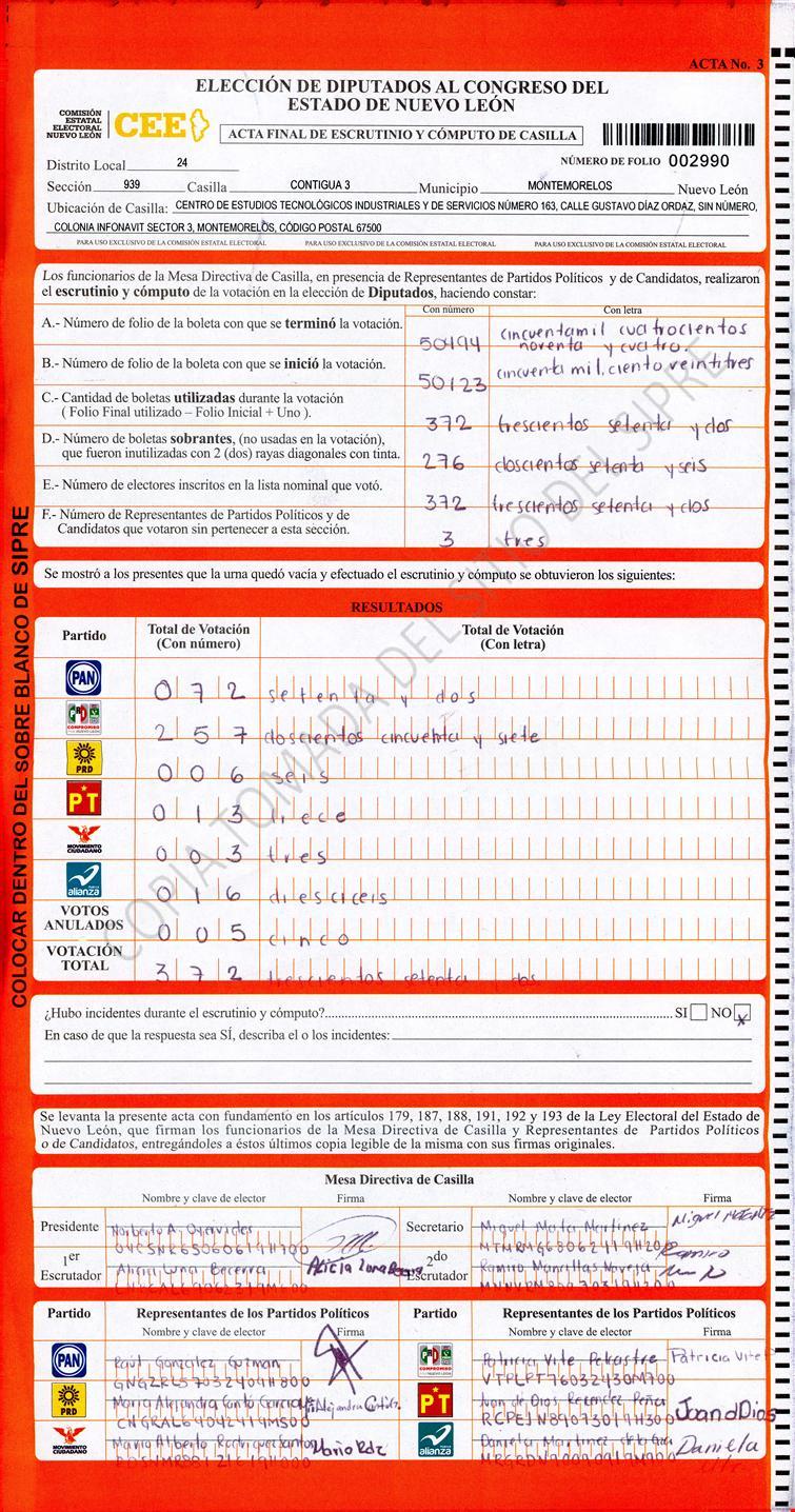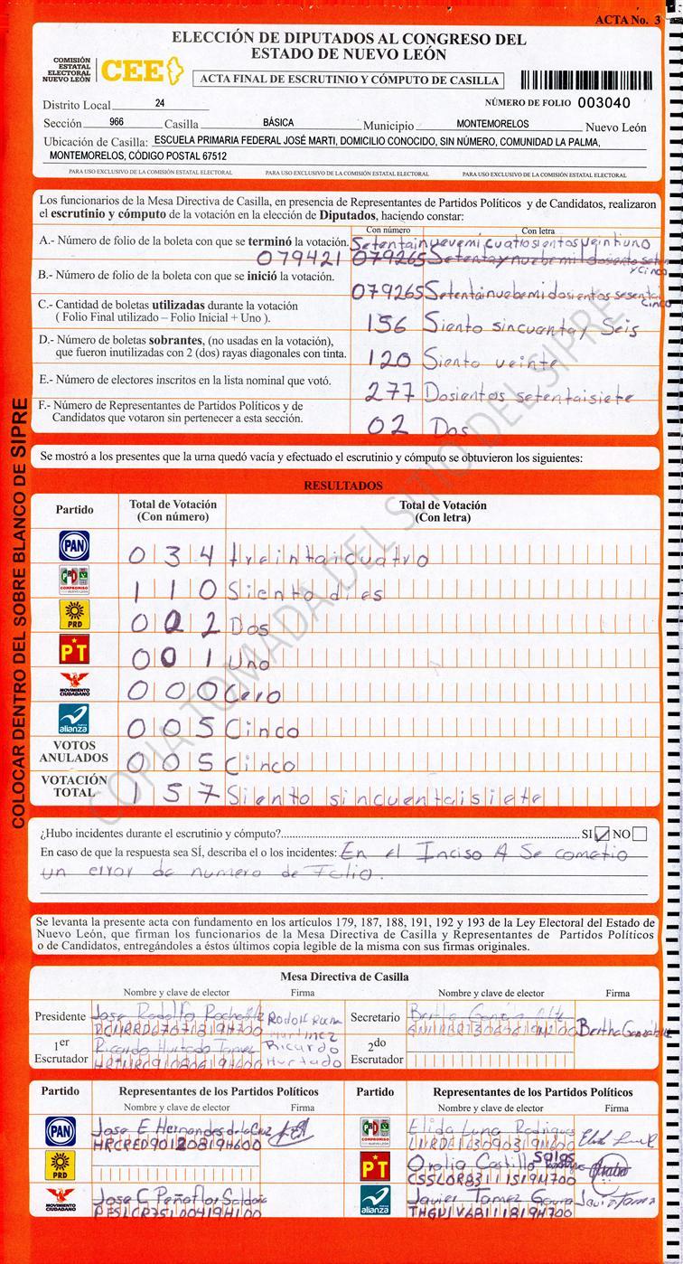 , (8) Copiado Movido , (9) Con Signos Inválidos , (10) Excede Lista Nominal , (11) Otra |