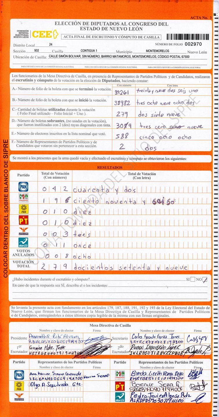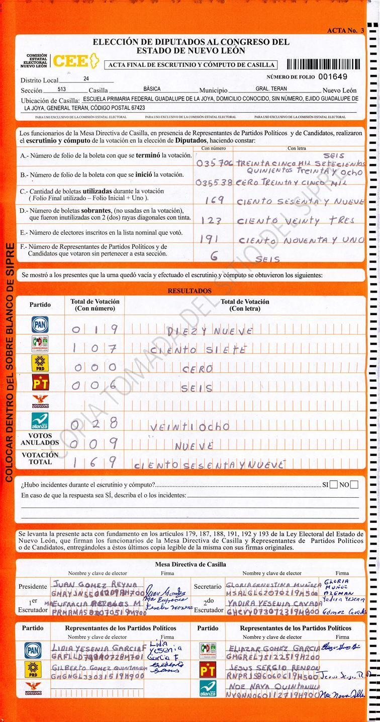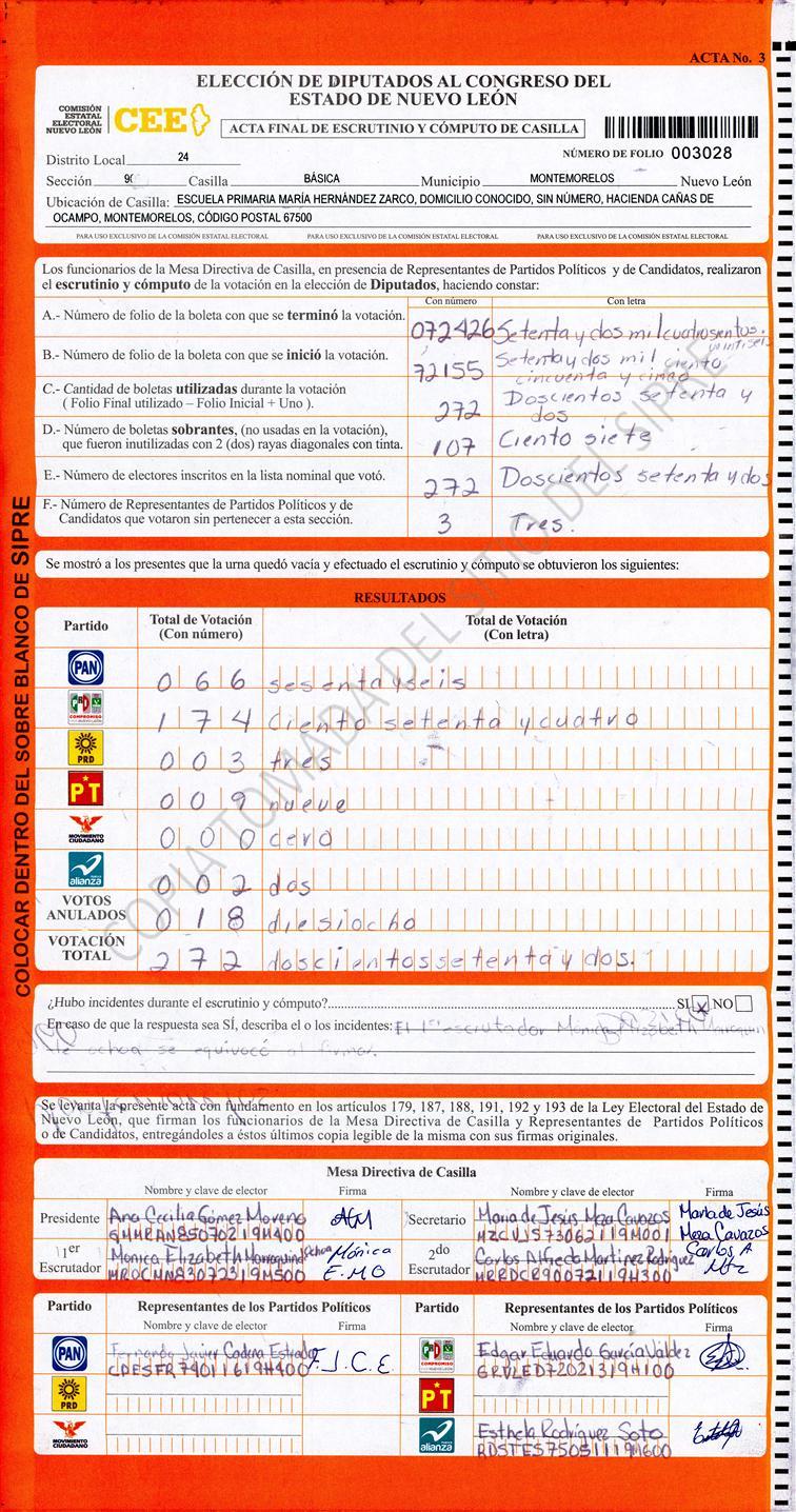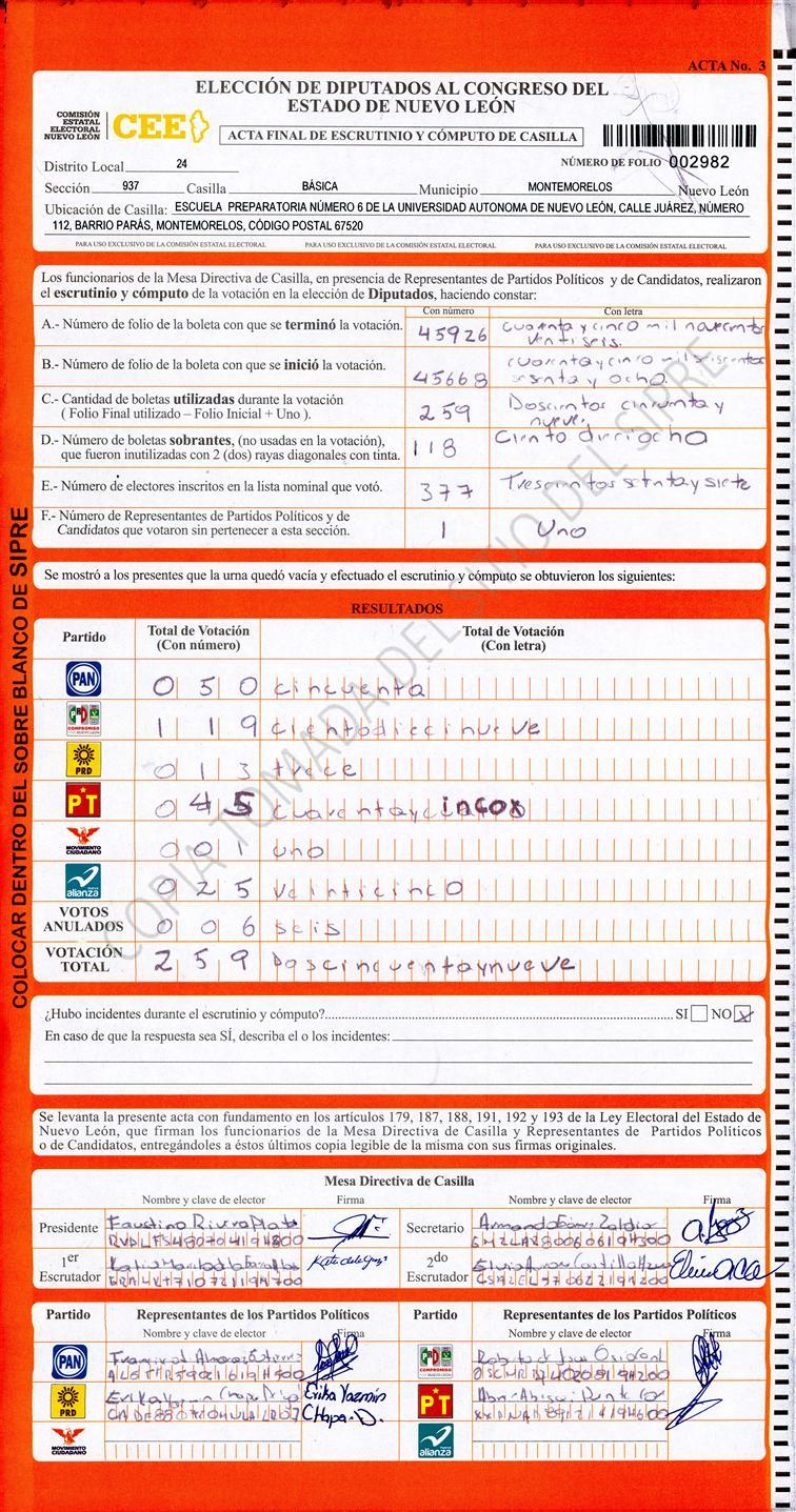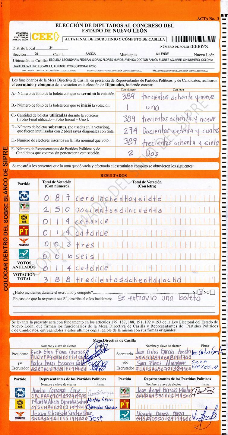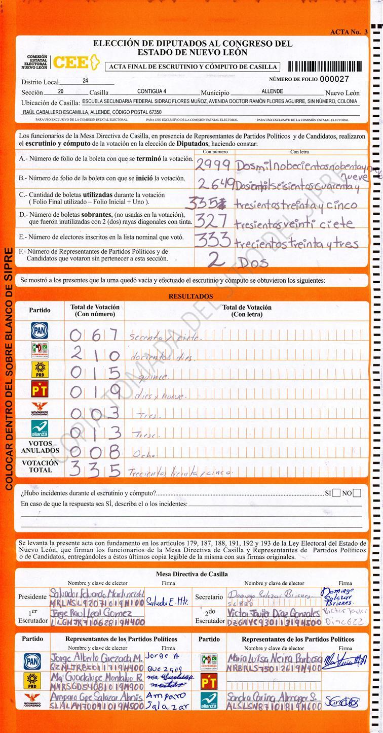 , (8) Copiado Movido , (9) Con Signos Inválidos , (10) Excede Lista Nominal , (11) Otra |