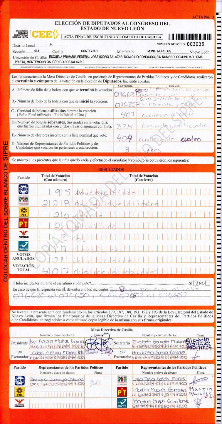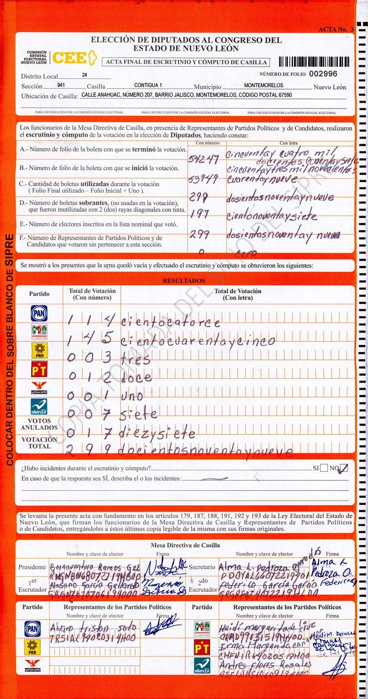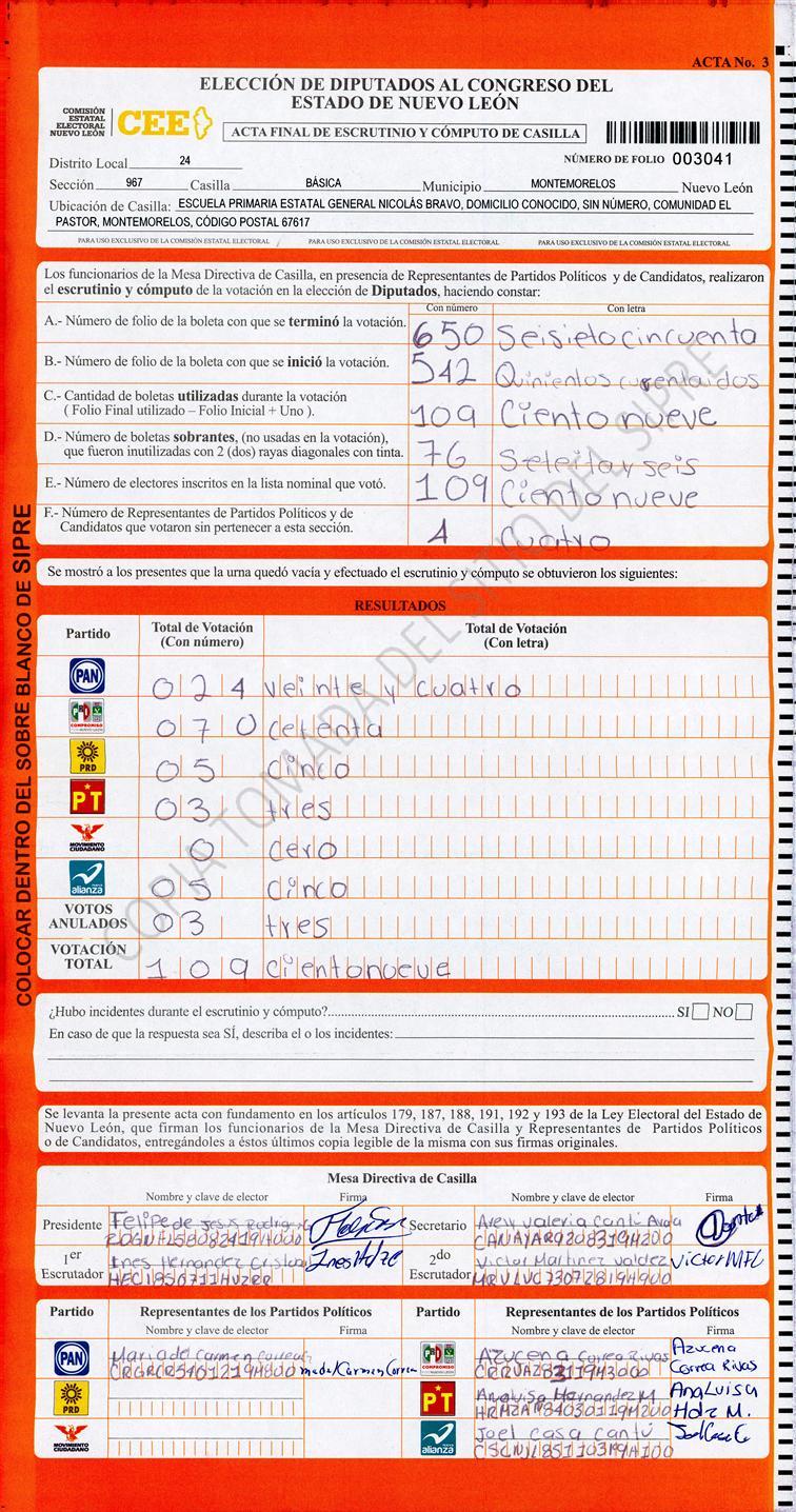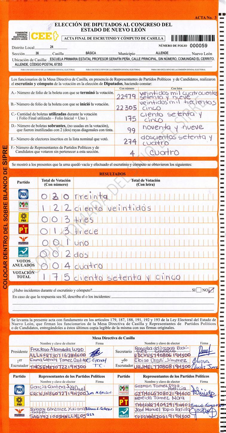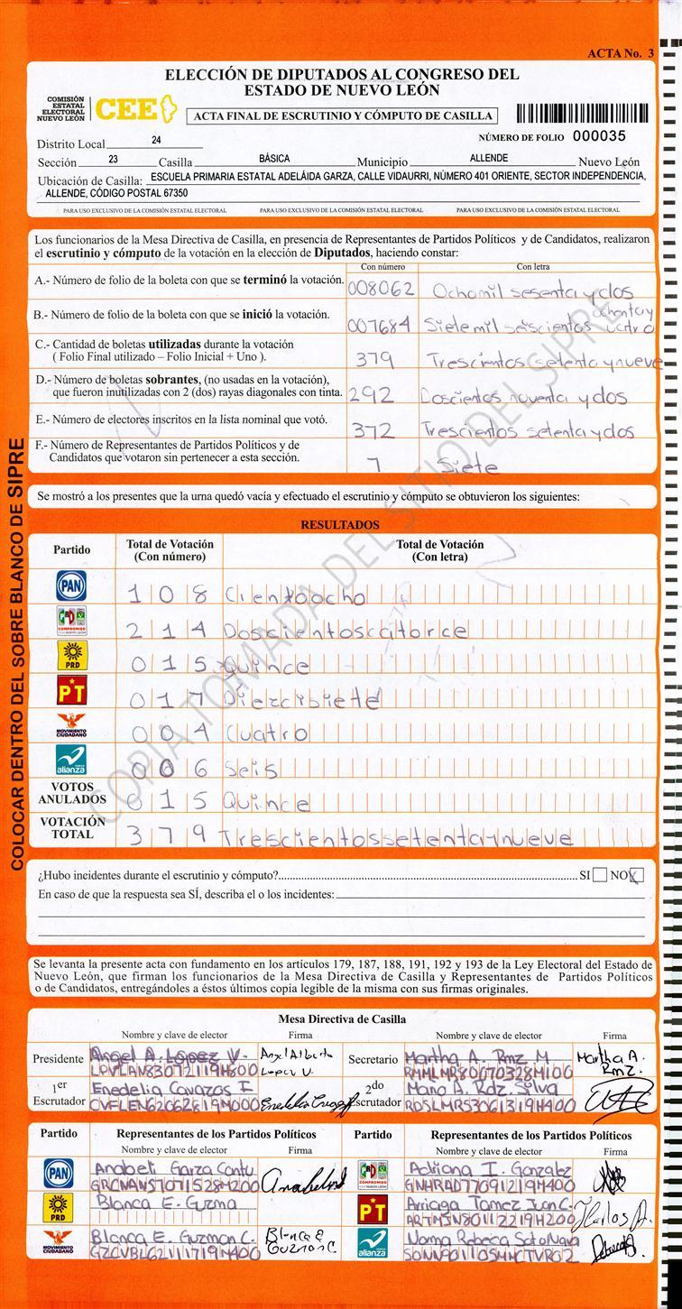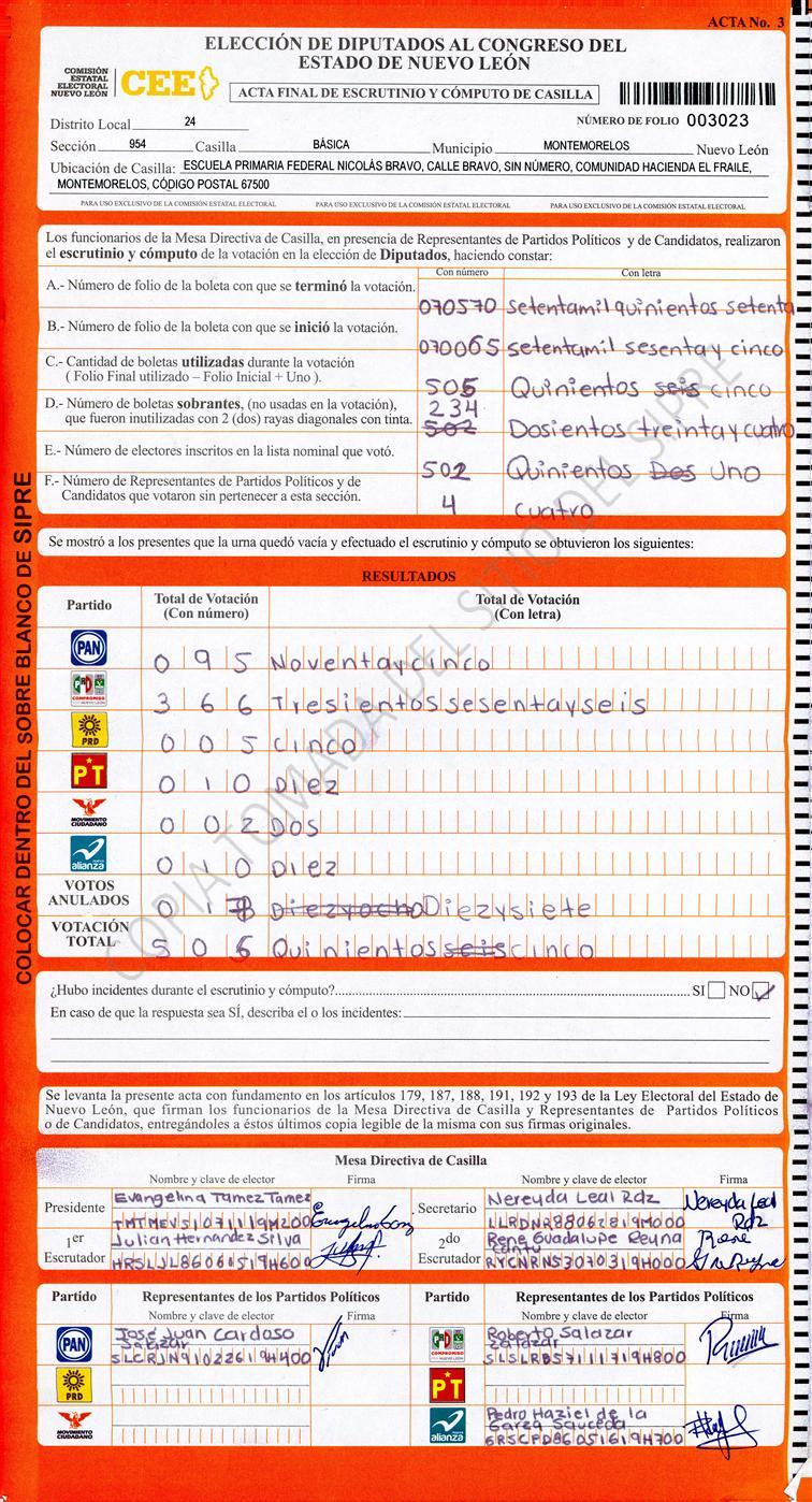 , (8) Copiado Movido , (9) Con Signos Inválidos , (10) Excede Lista Nominal , (11) Otra |