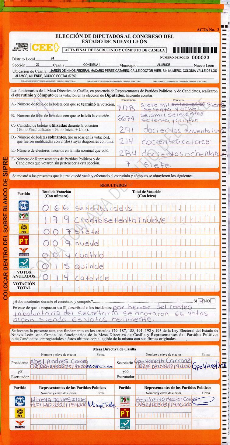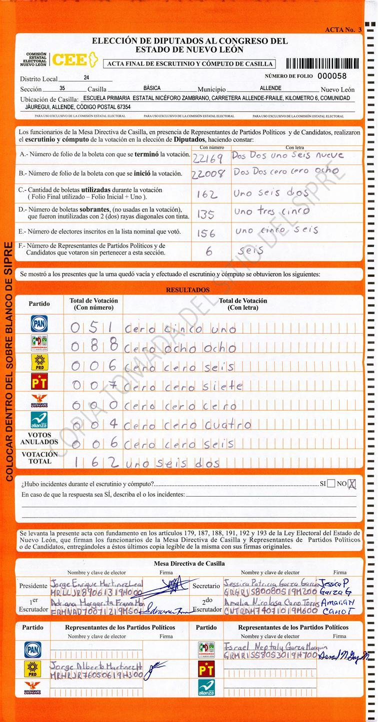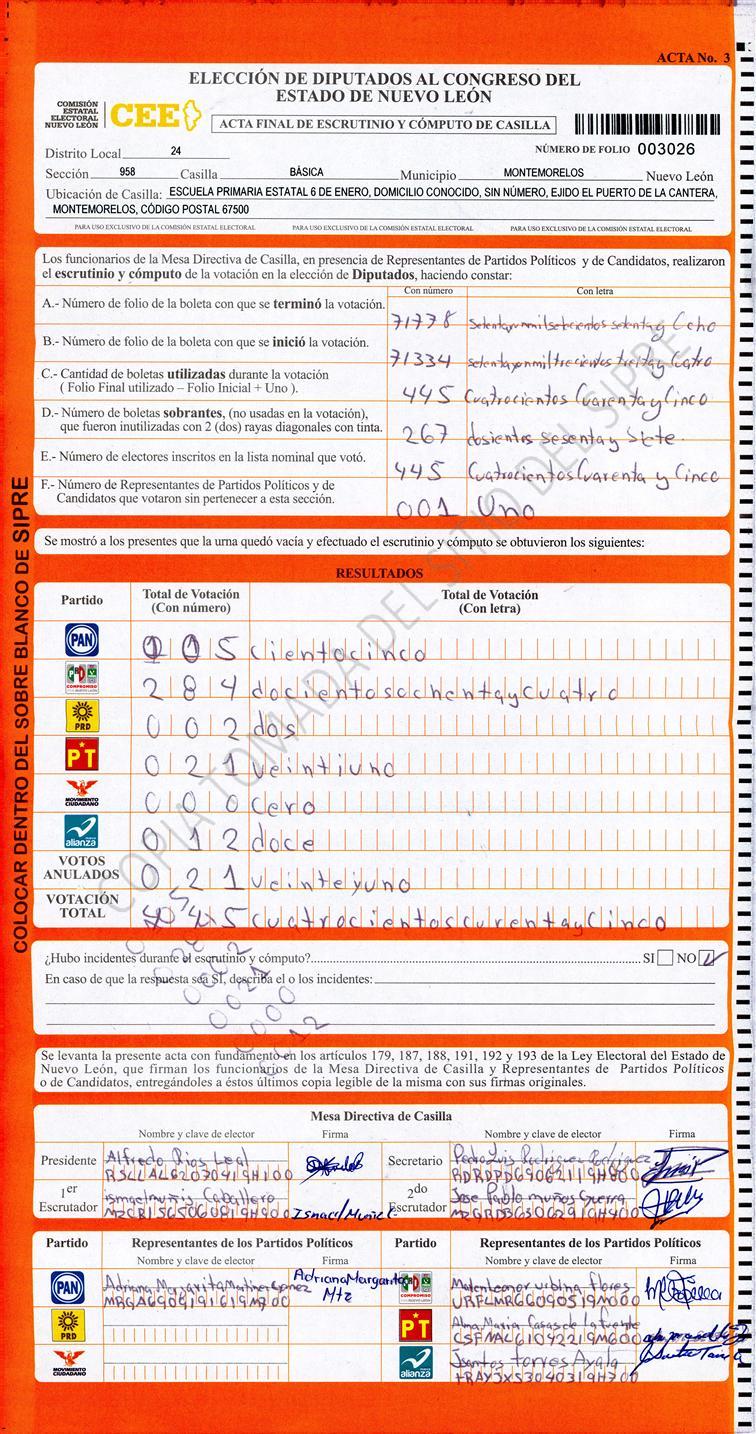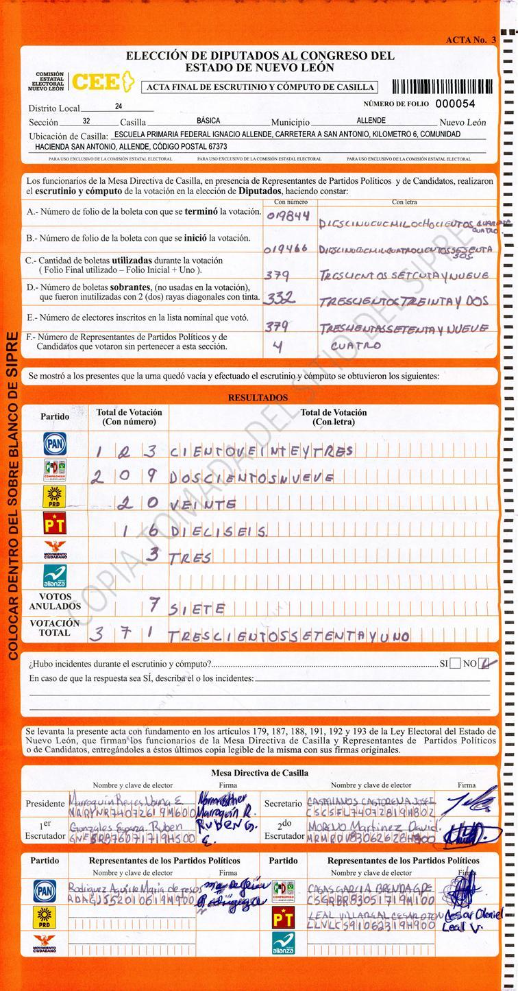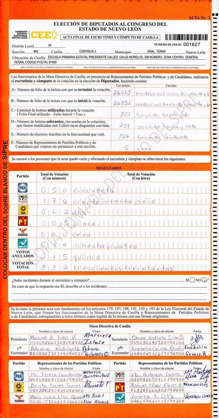, (8) Copiado Movido , (9) Con Signos Inválidos , (10) Excede Lista Nominal , (11) Otra |