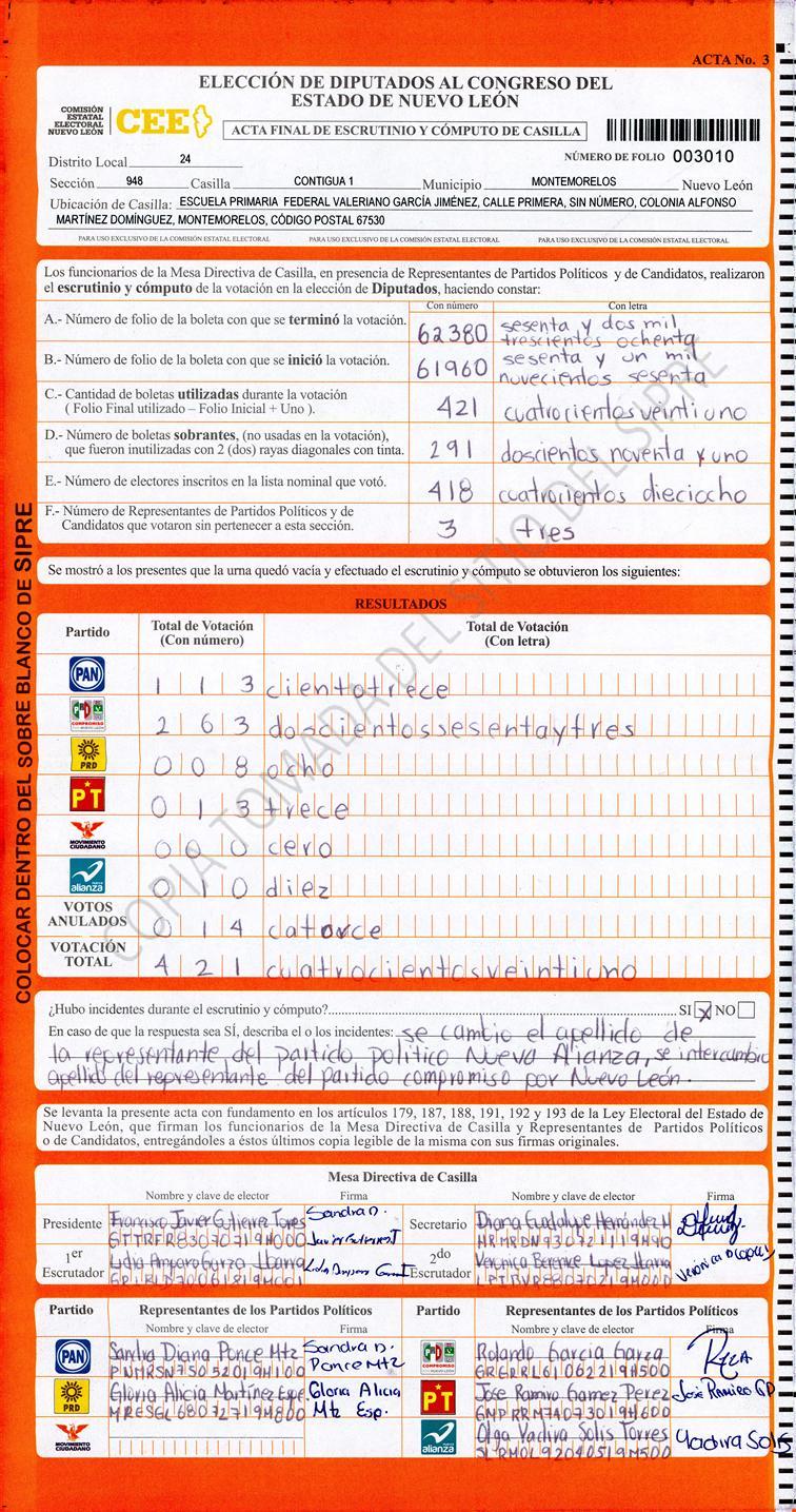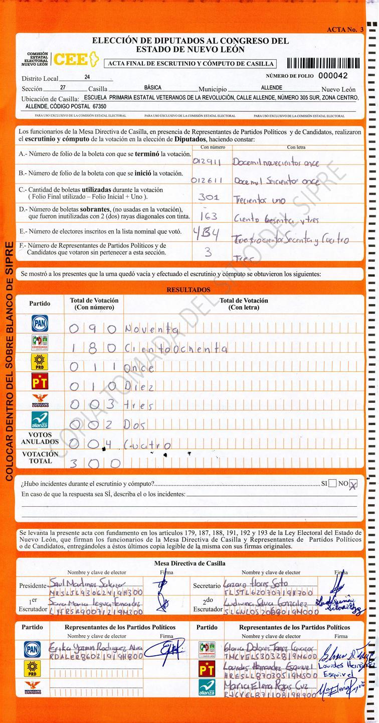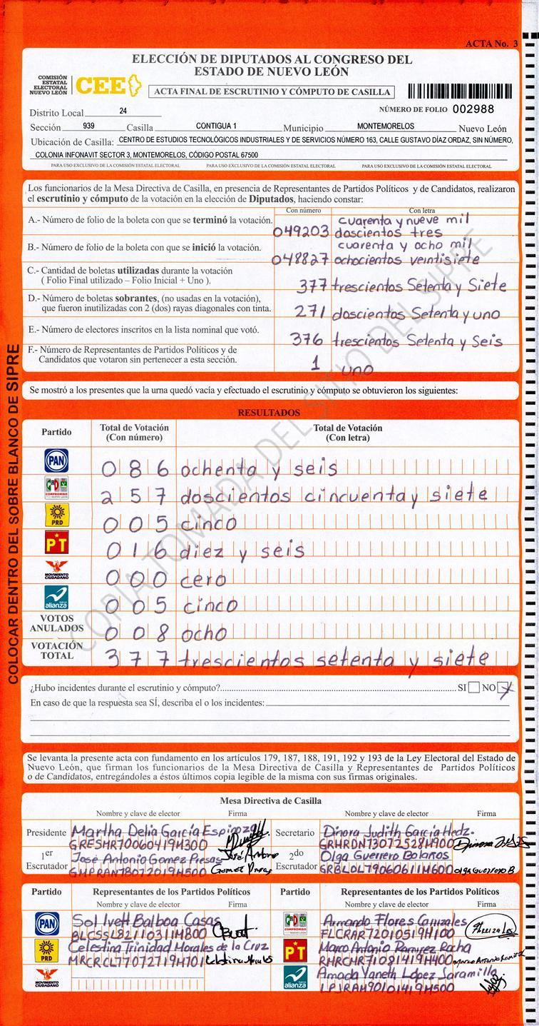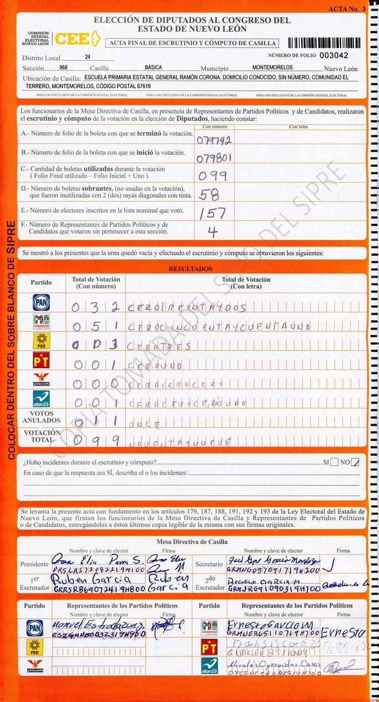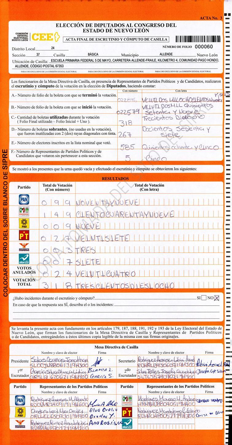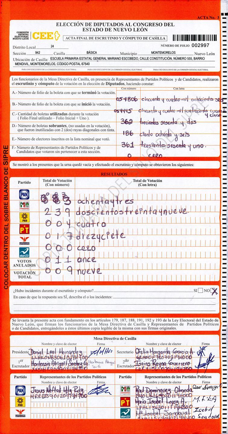 , (8) Copiado Movido , (9) Con Signos Inválidos , (10) Excede Lista Nominal , (11) Otra |