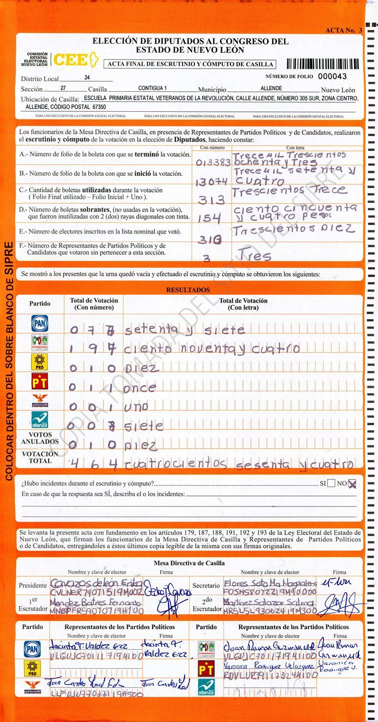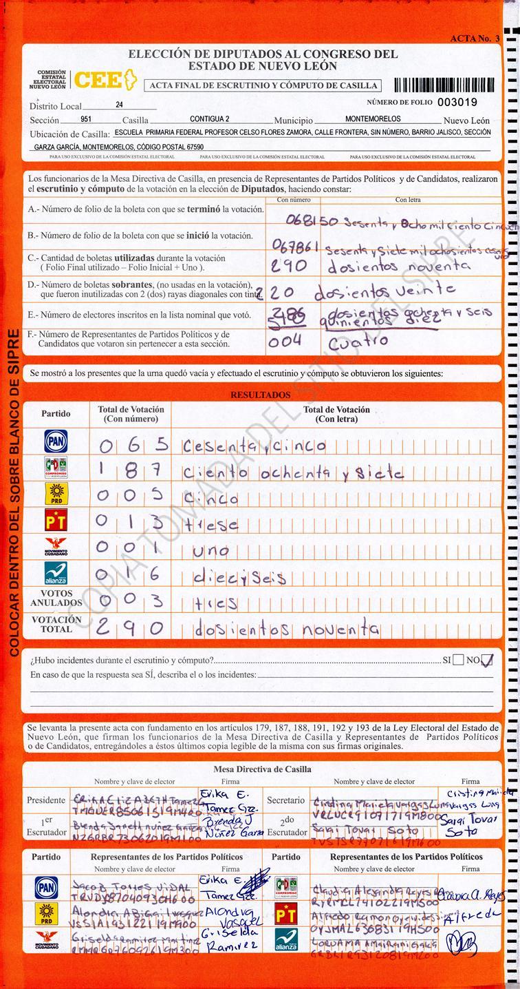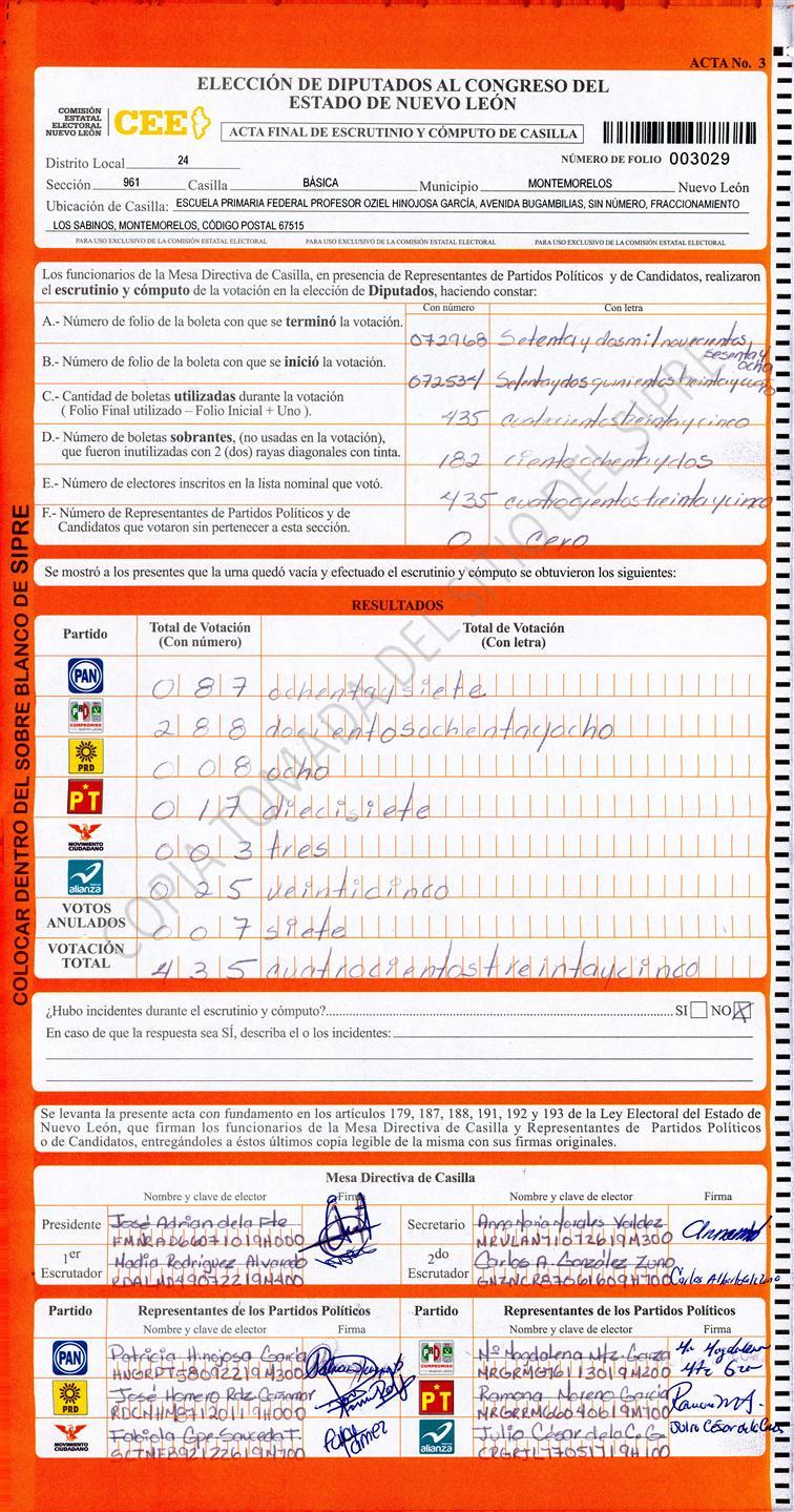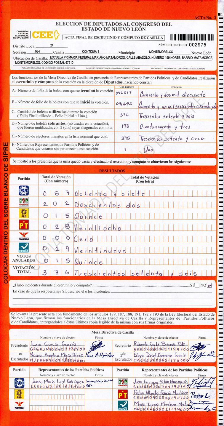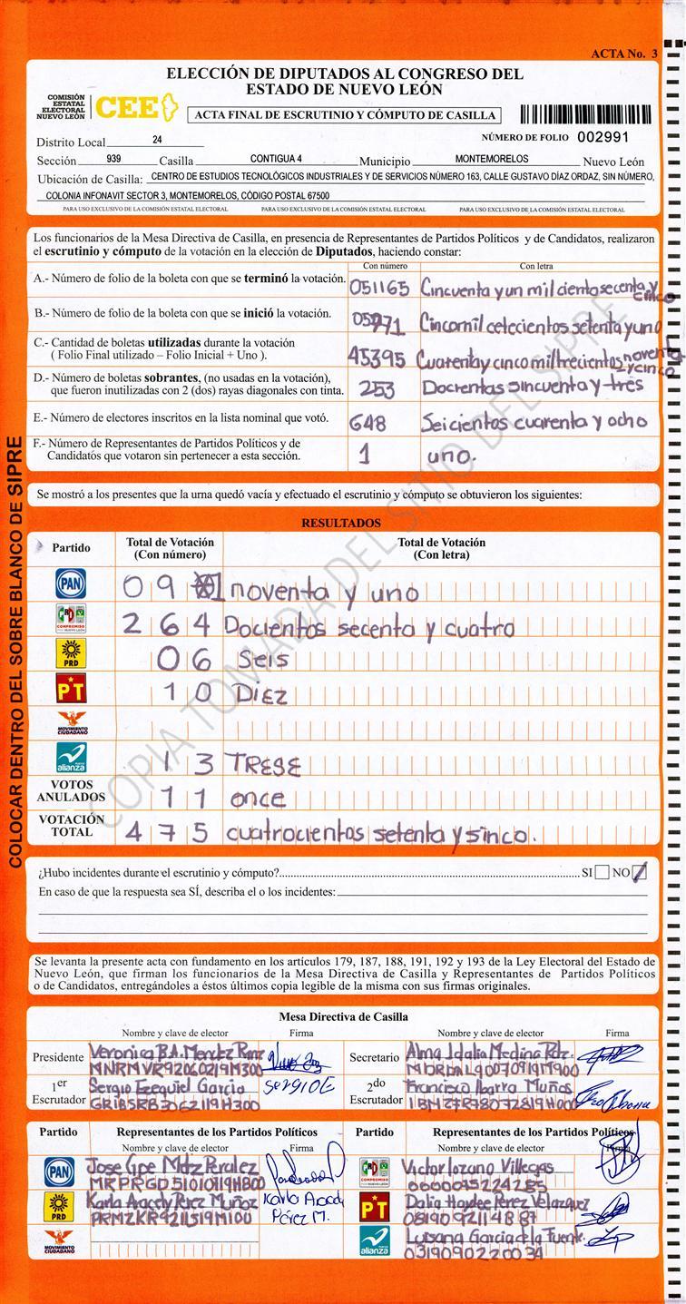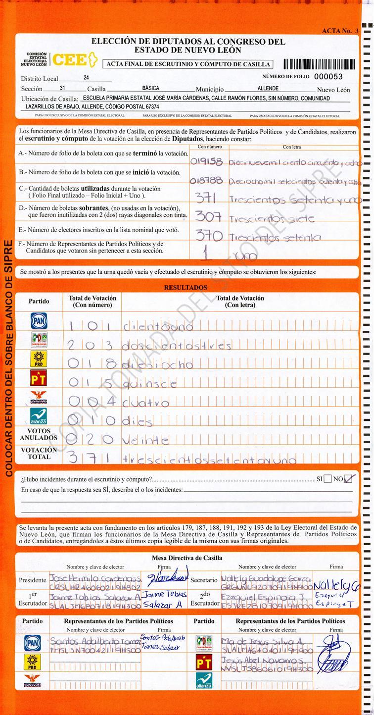 , (8) Copiado Movido , (9) Con Signos Inválidos , (10) Excede Lista Nominal , (11) Otra |