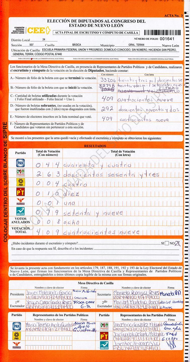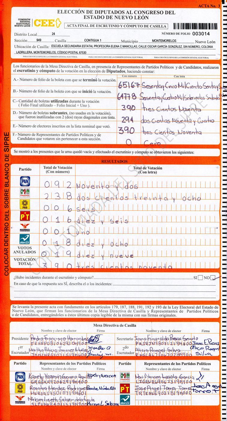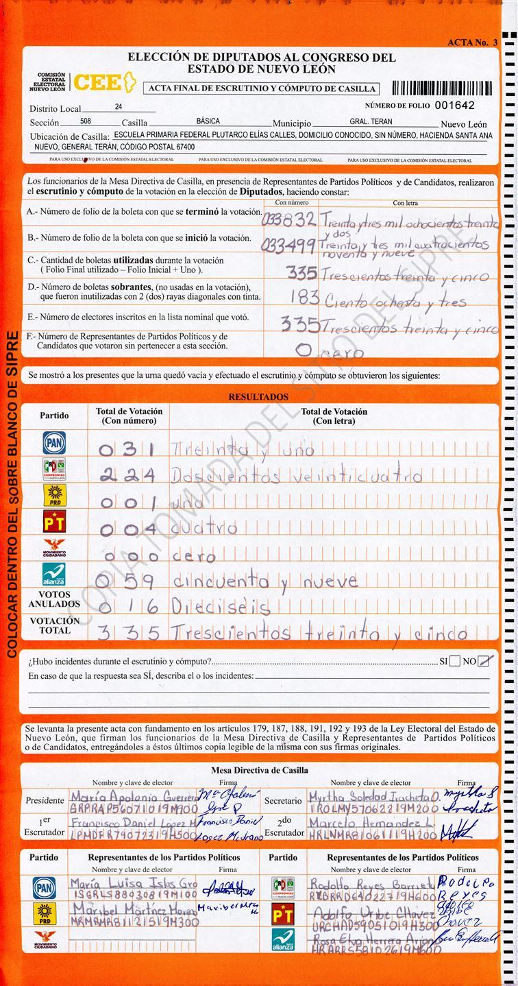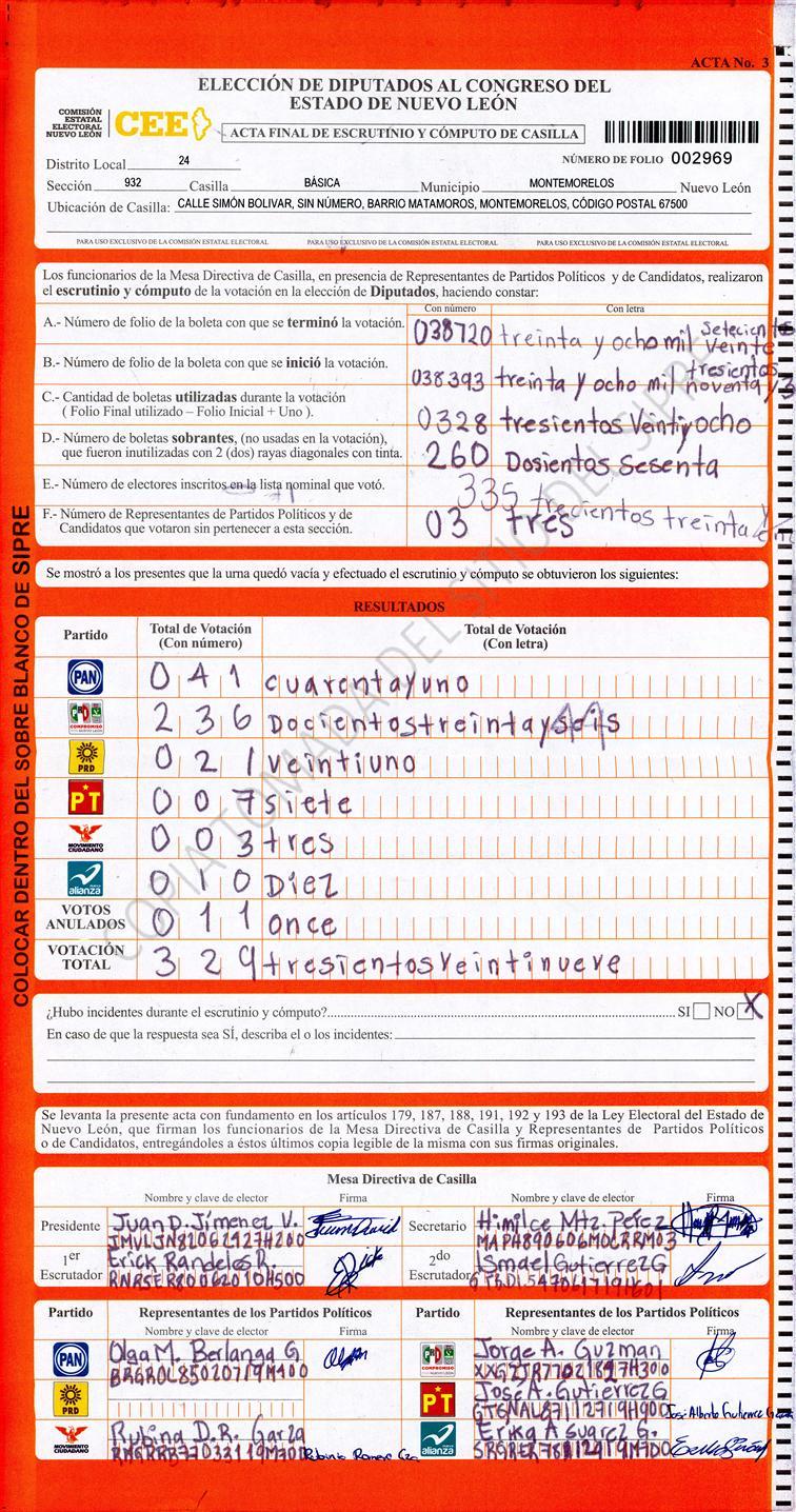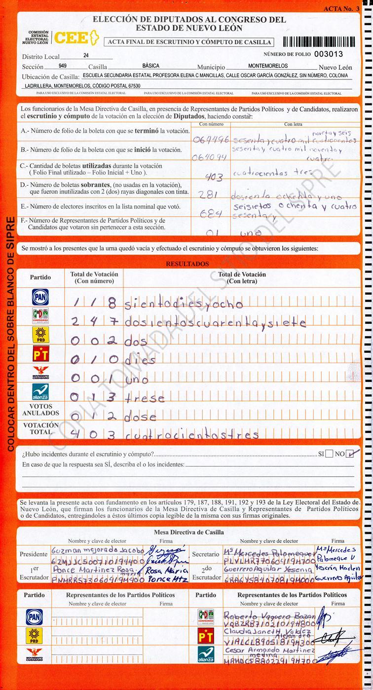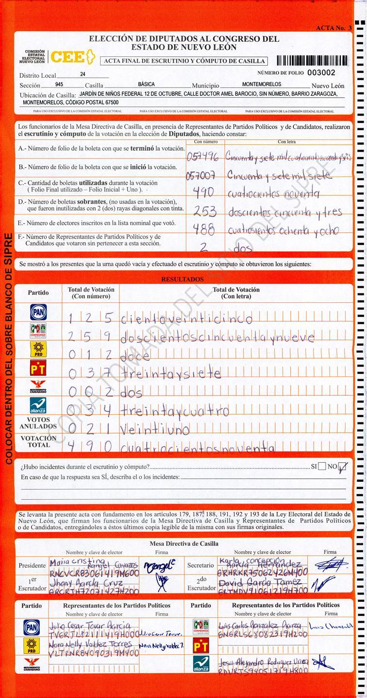 , (8) Copiado Movido , (9) Con Signos Inválidos , (10) Excede Lista Nominal , (11) Otra |