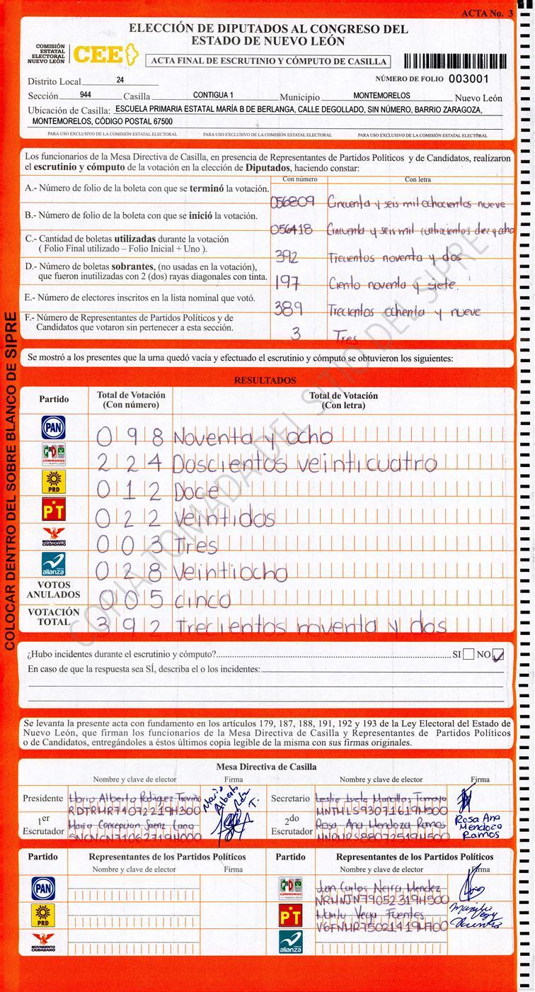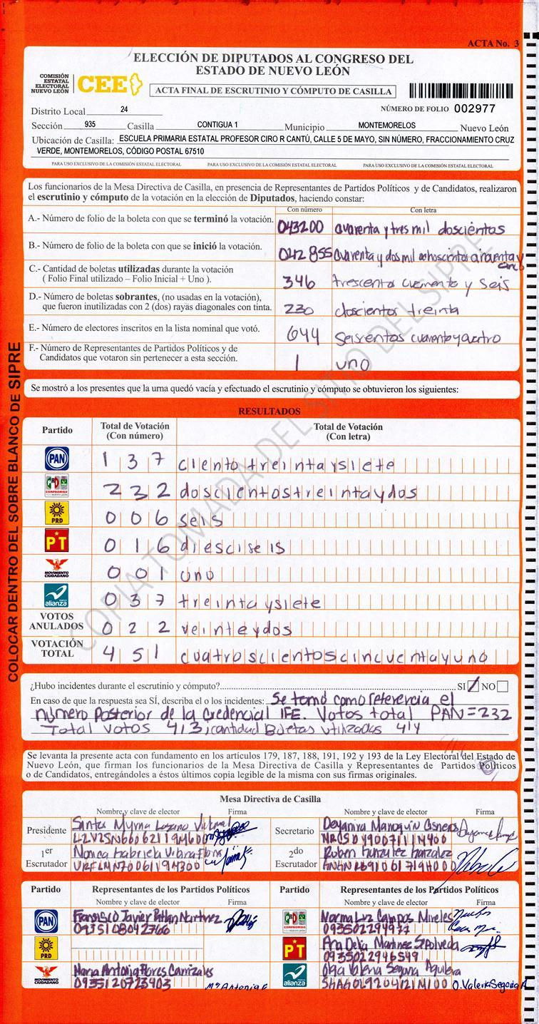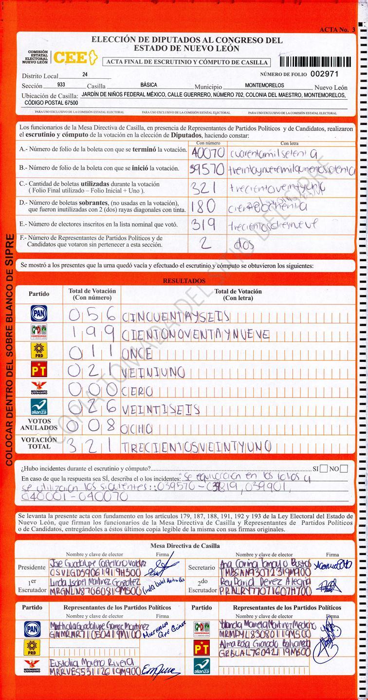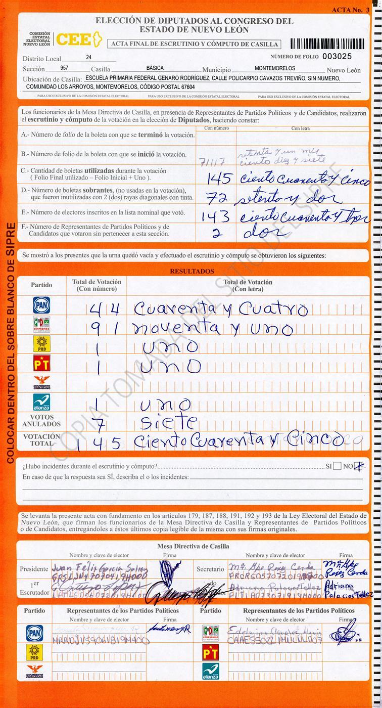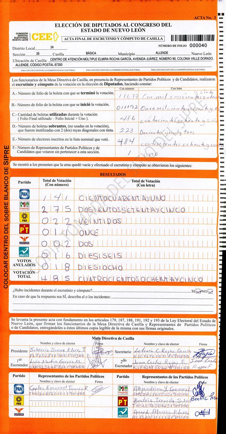 , (8) Copiado Movido , (9) Con Signos Inválidos , (10) Excede Lista Nominal , (11) Otra |