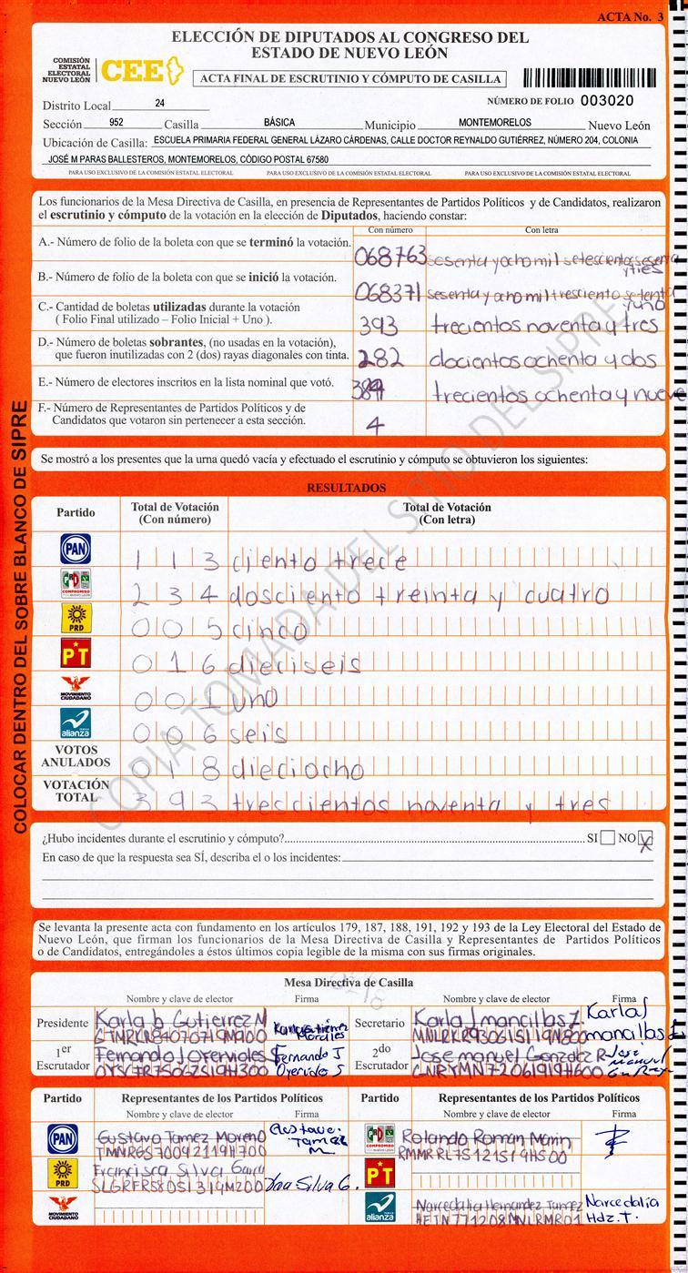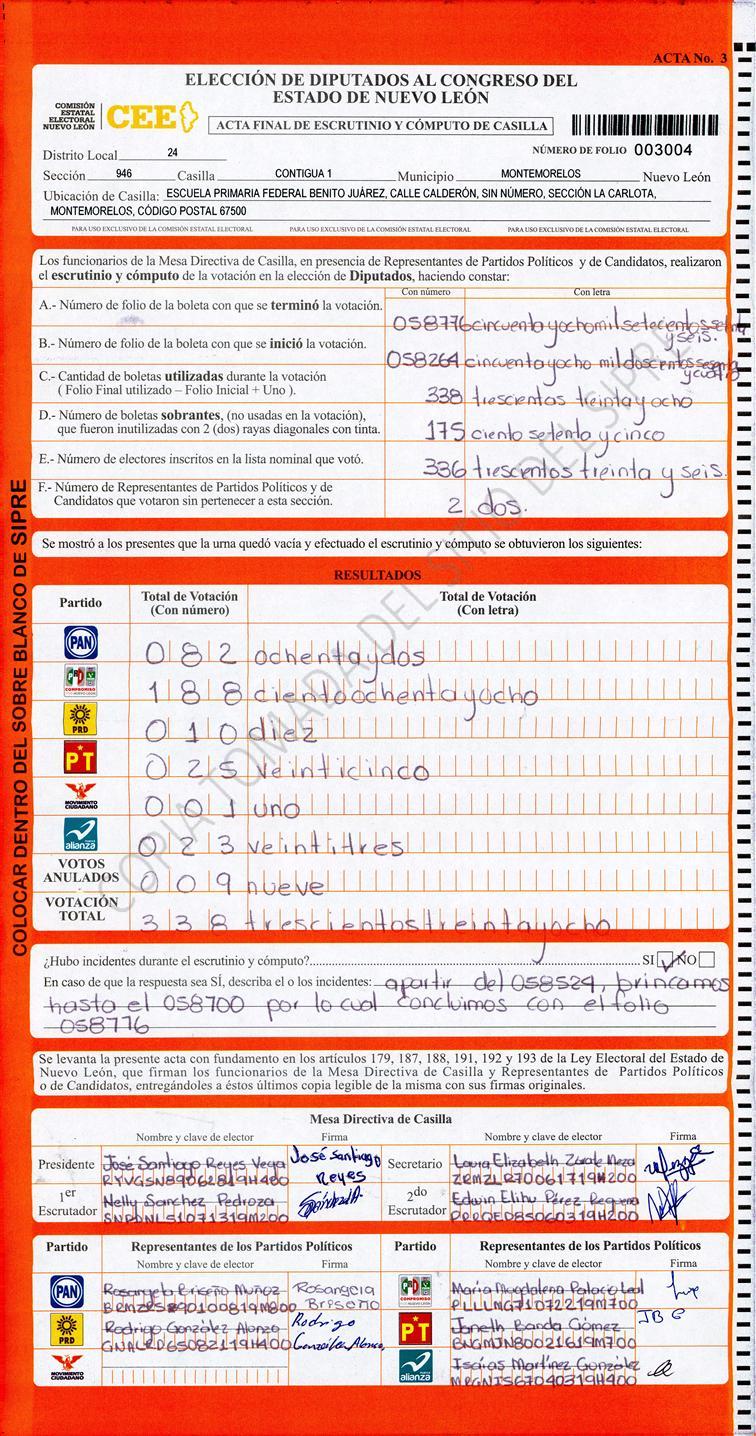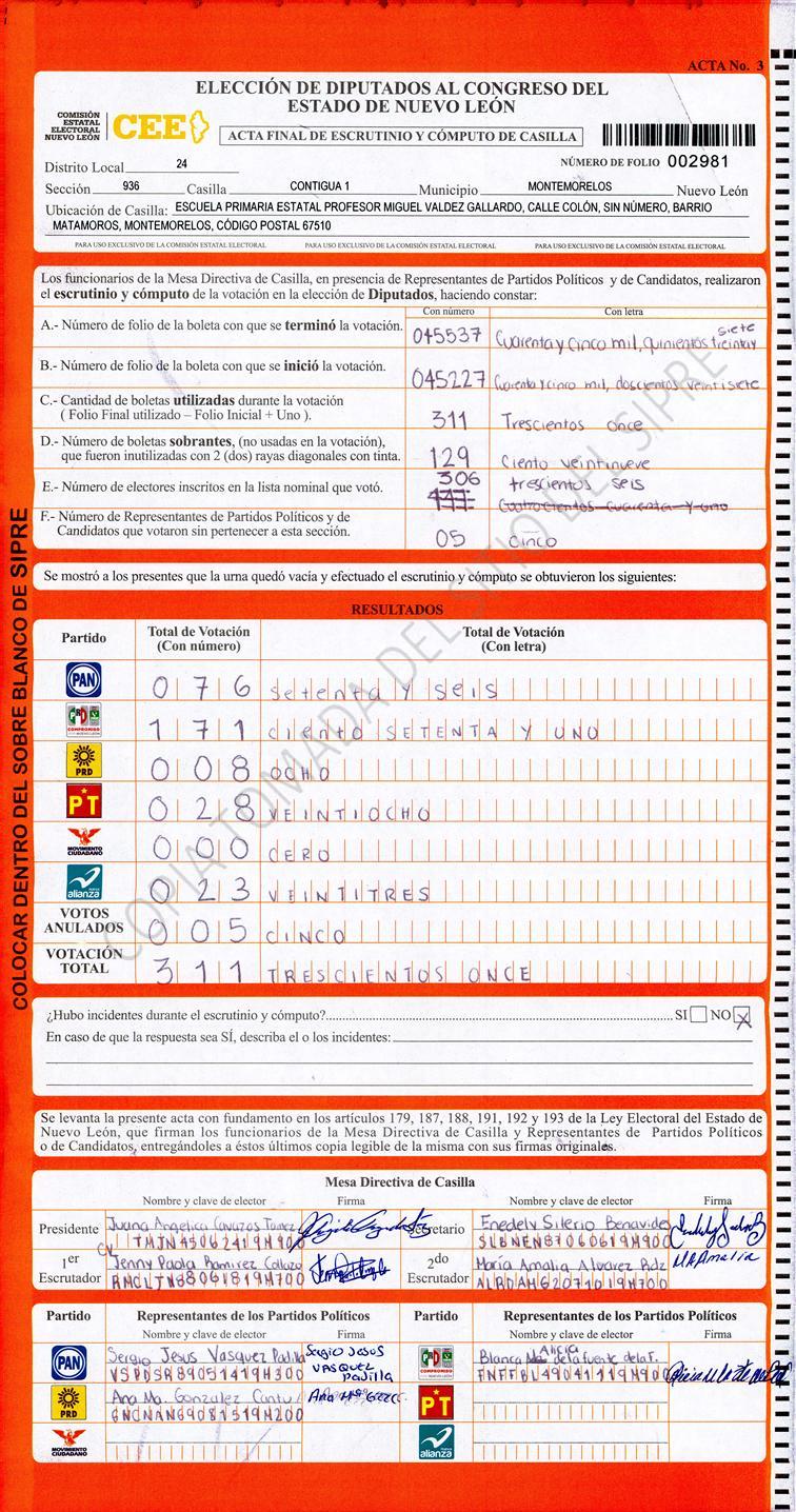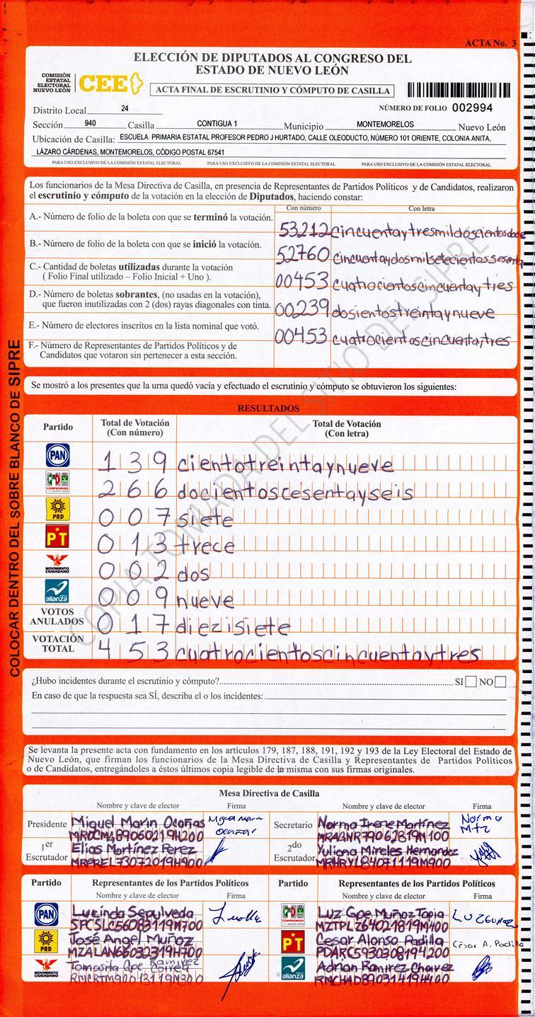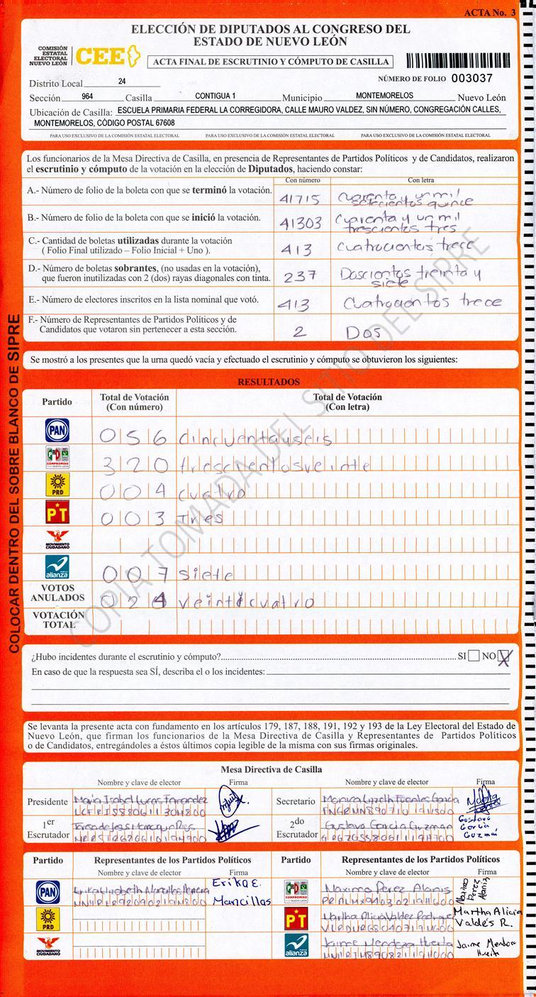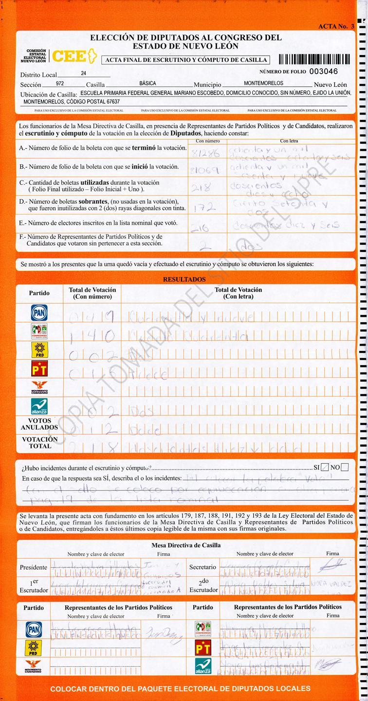 , (8) Copiado Movido , (9) Con Signos Inválidos , (10) Excede Lista Nominal , (11) Otra |
