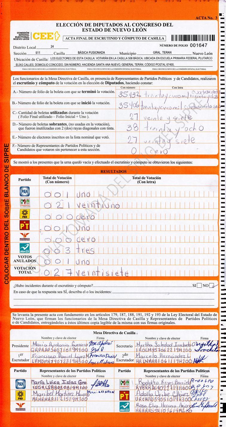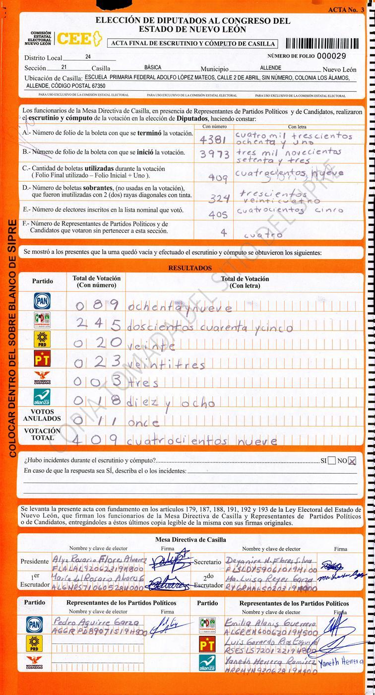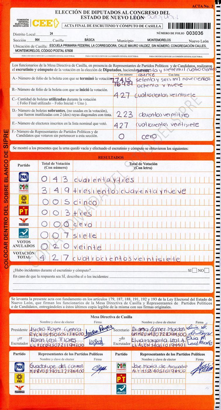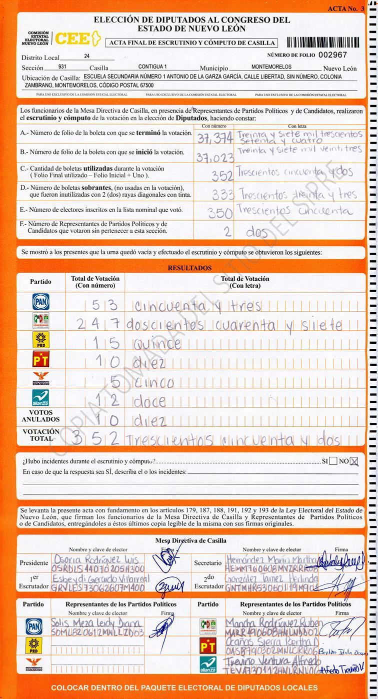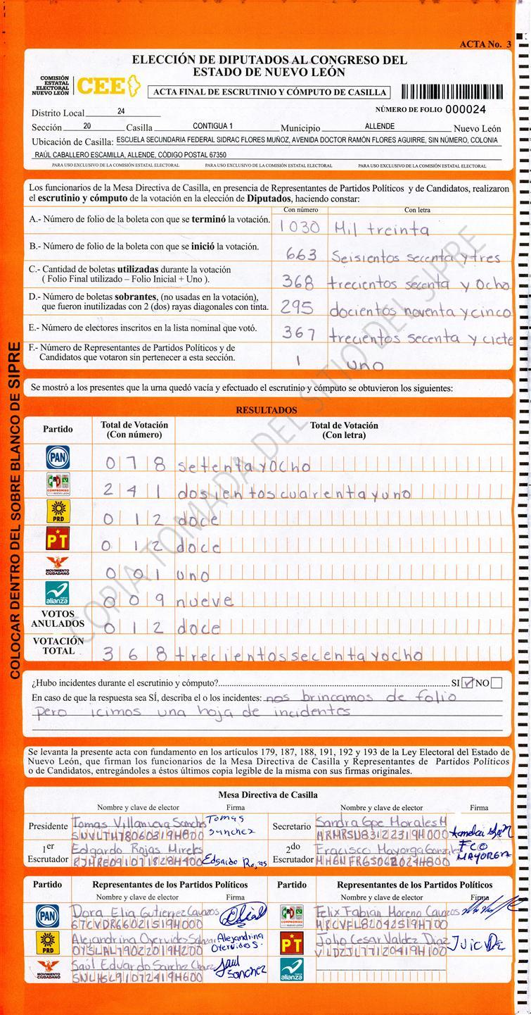 Diputados Locales, Vigésimo Cuarto Distrito |