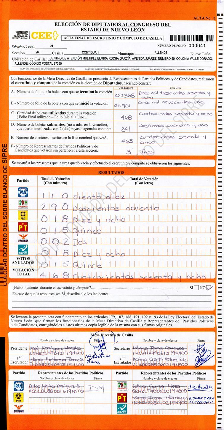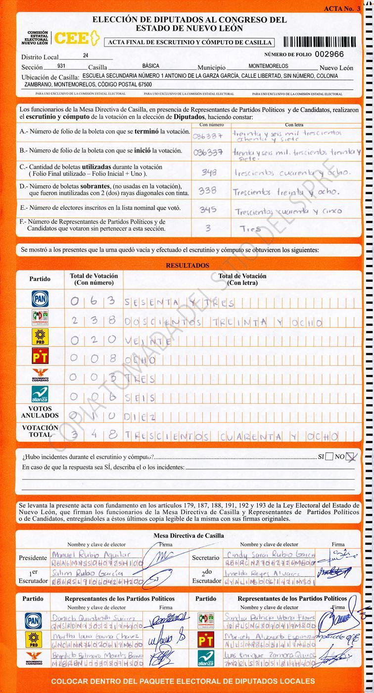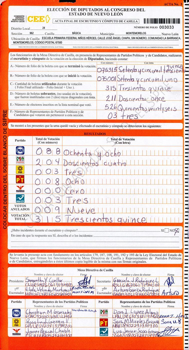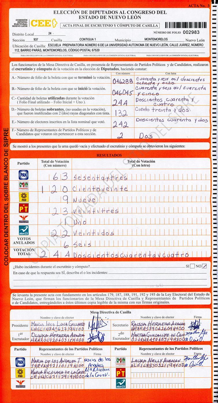 Diputados Locales, Vigésimo Cuarto Distrito |