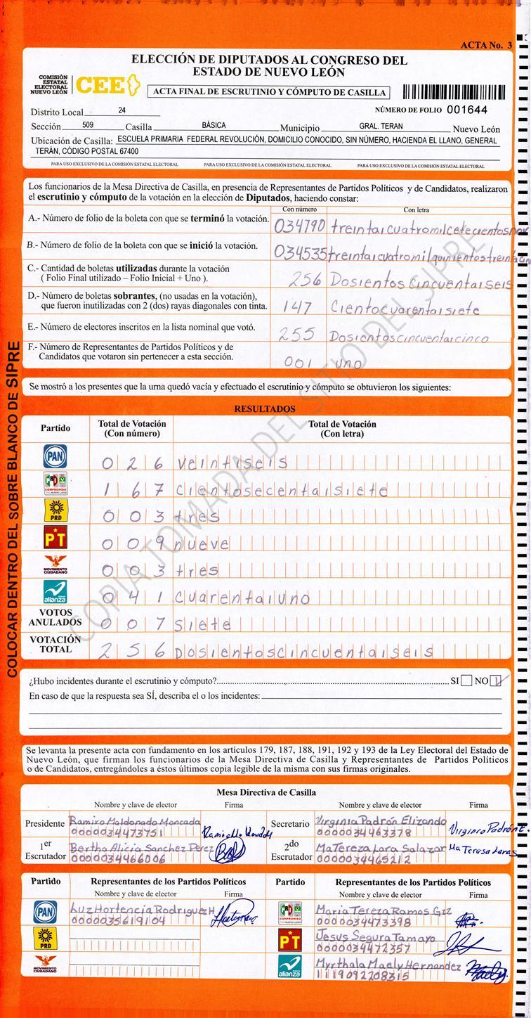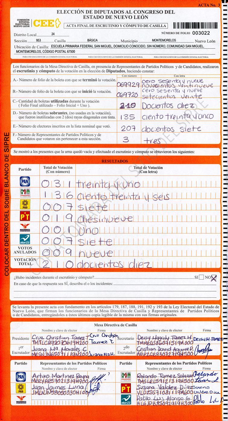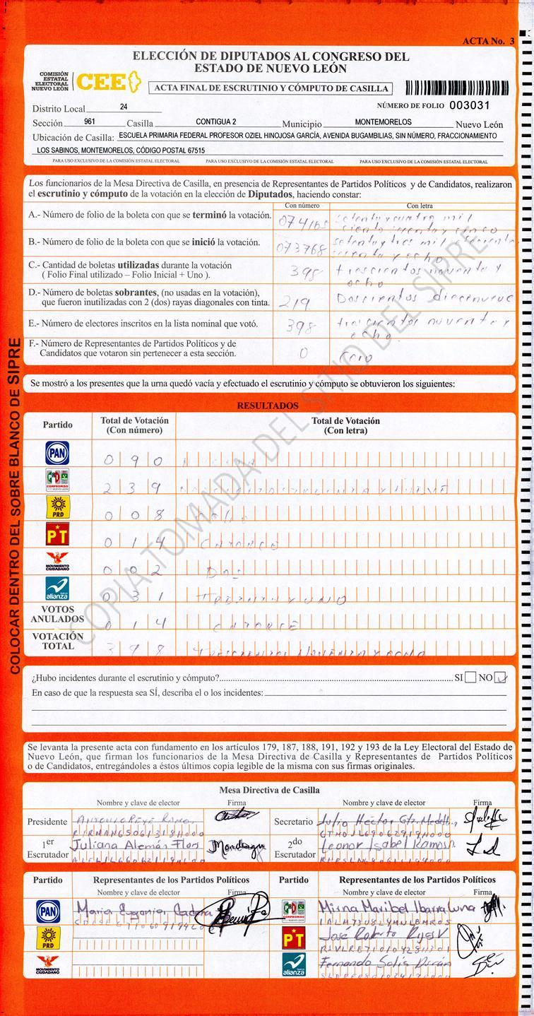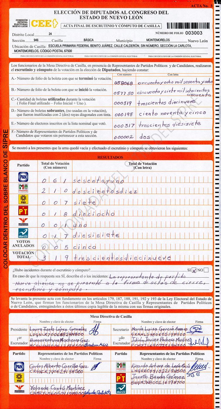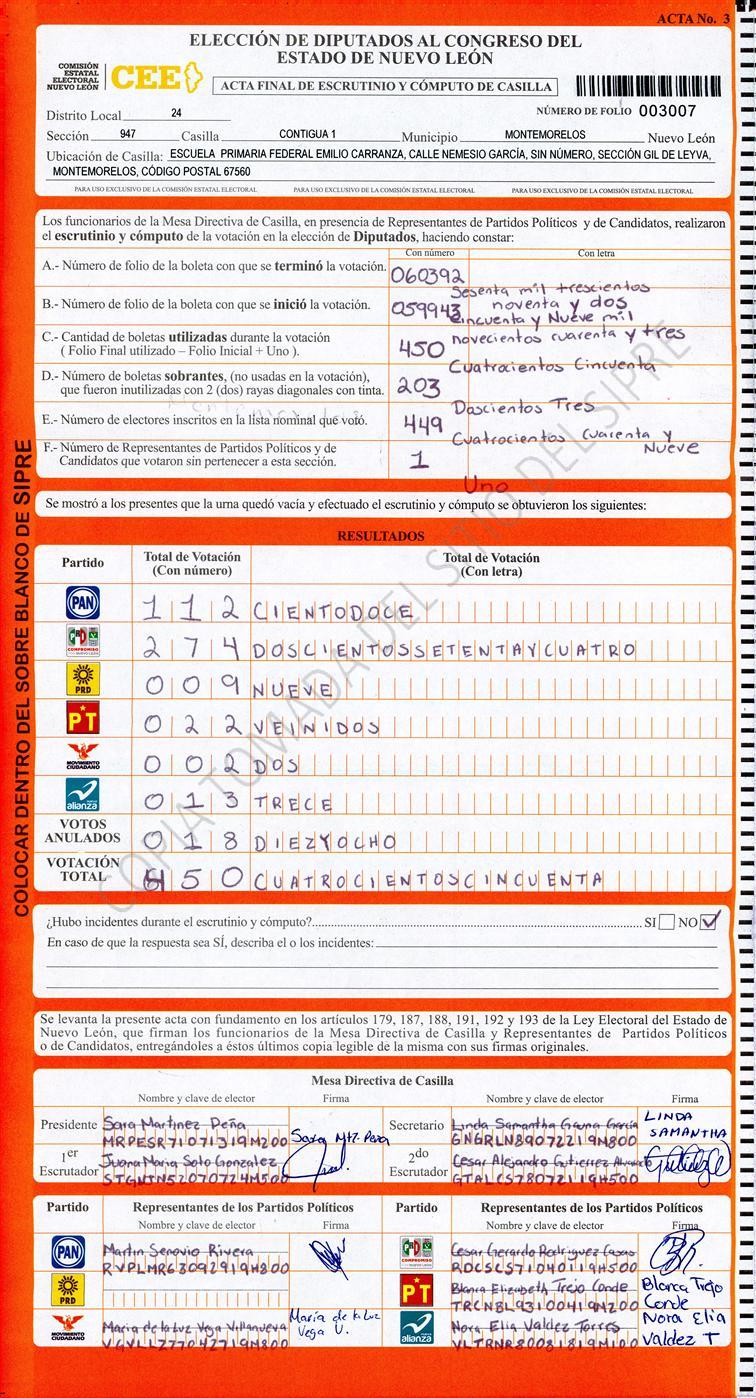 Diputados Locales, Vigésimo Cuarto Distrito |