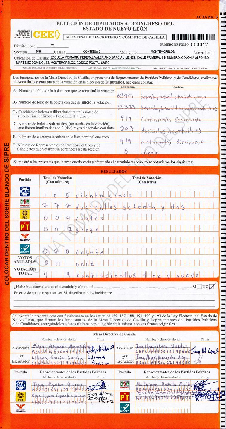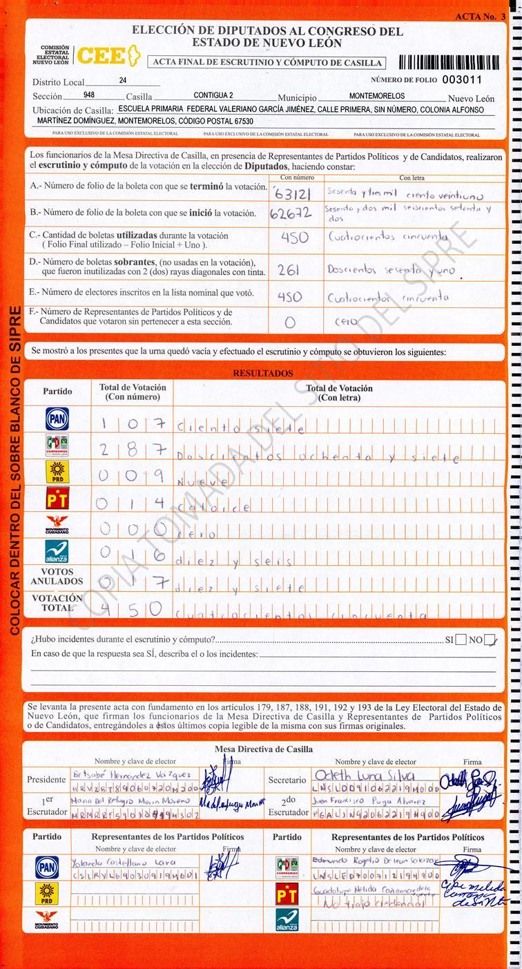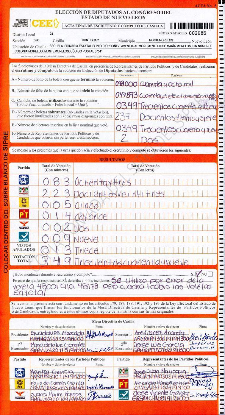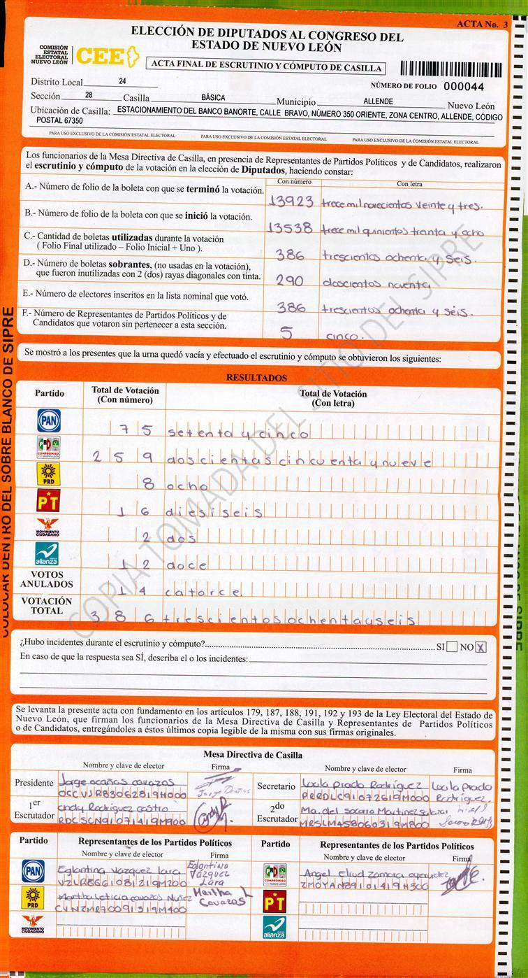 Diputados Locales, Vigésimo Cuarto Distrito |