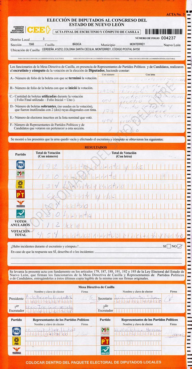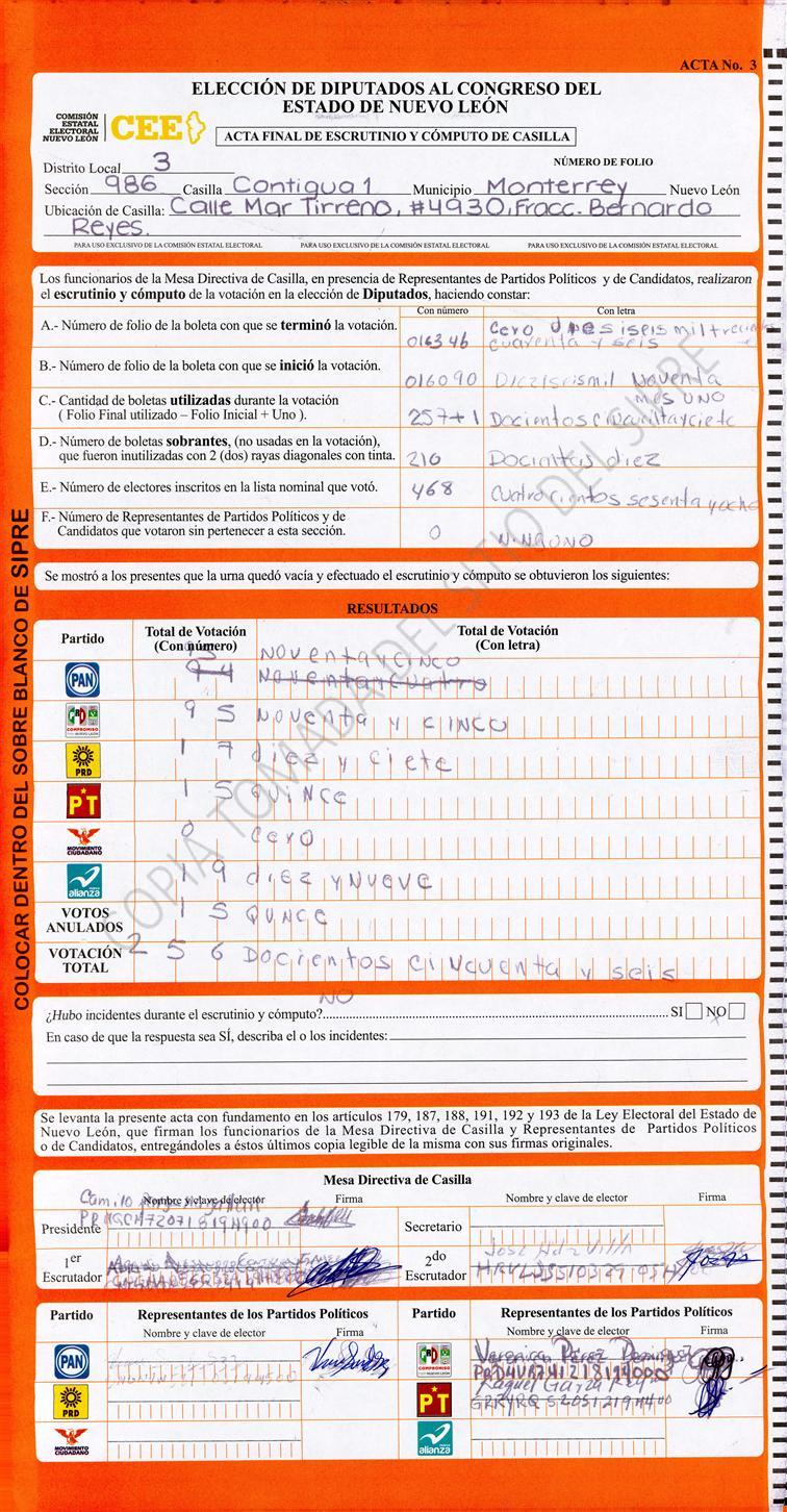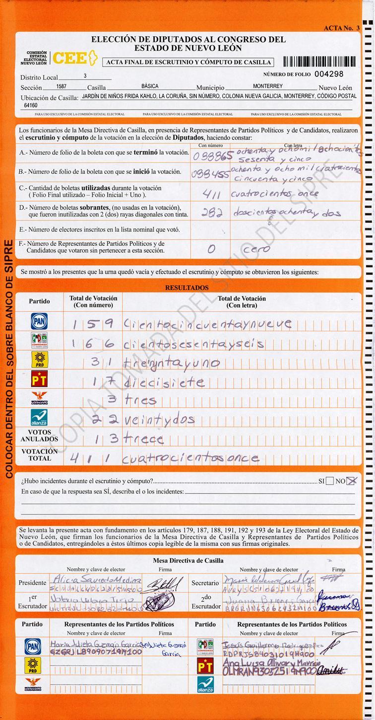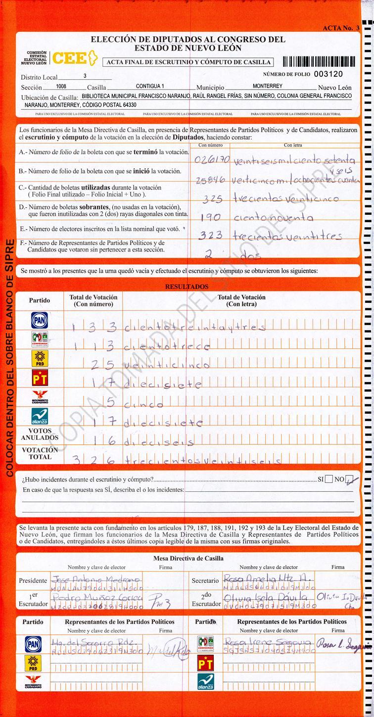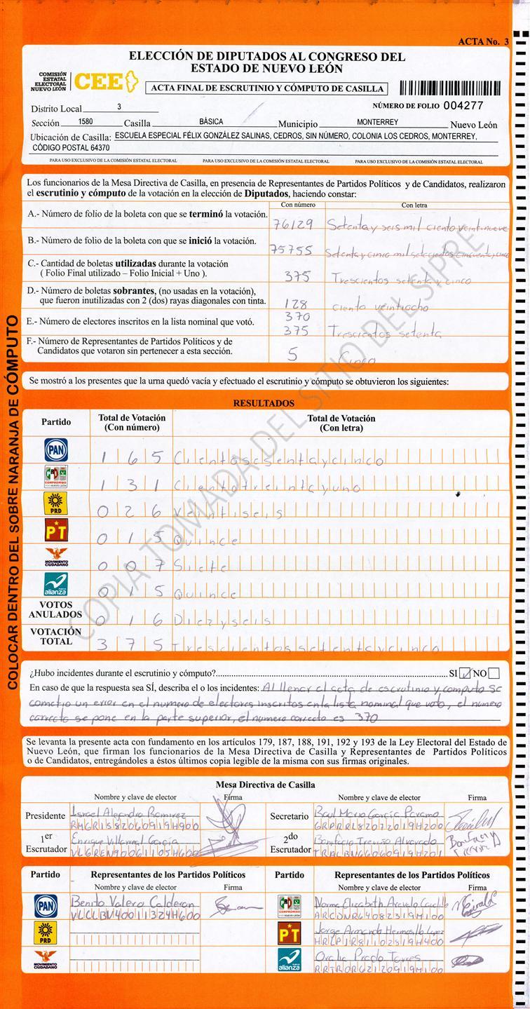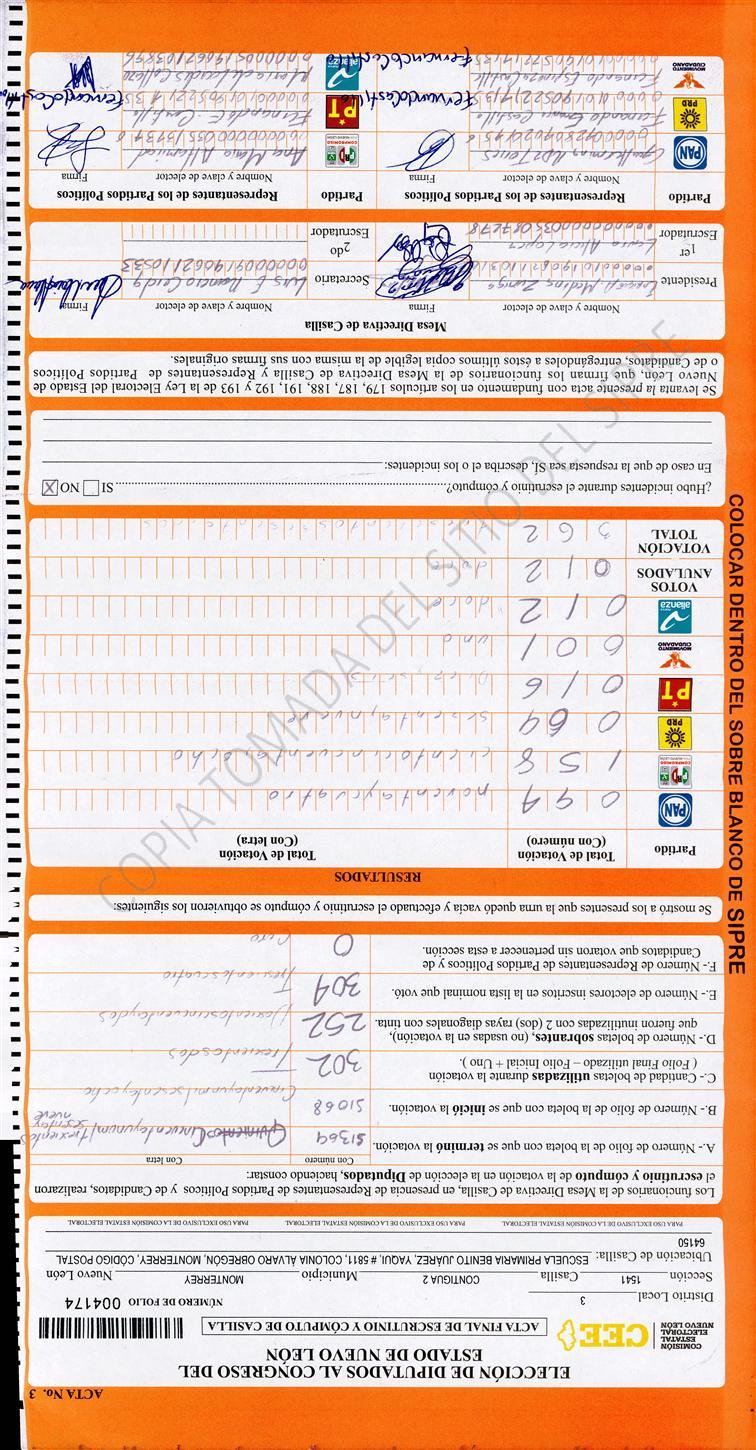, (8) Copiado Movido , (9) Con Signos Inválidos , (10) Excede Lista Nominal , (11) Otra |