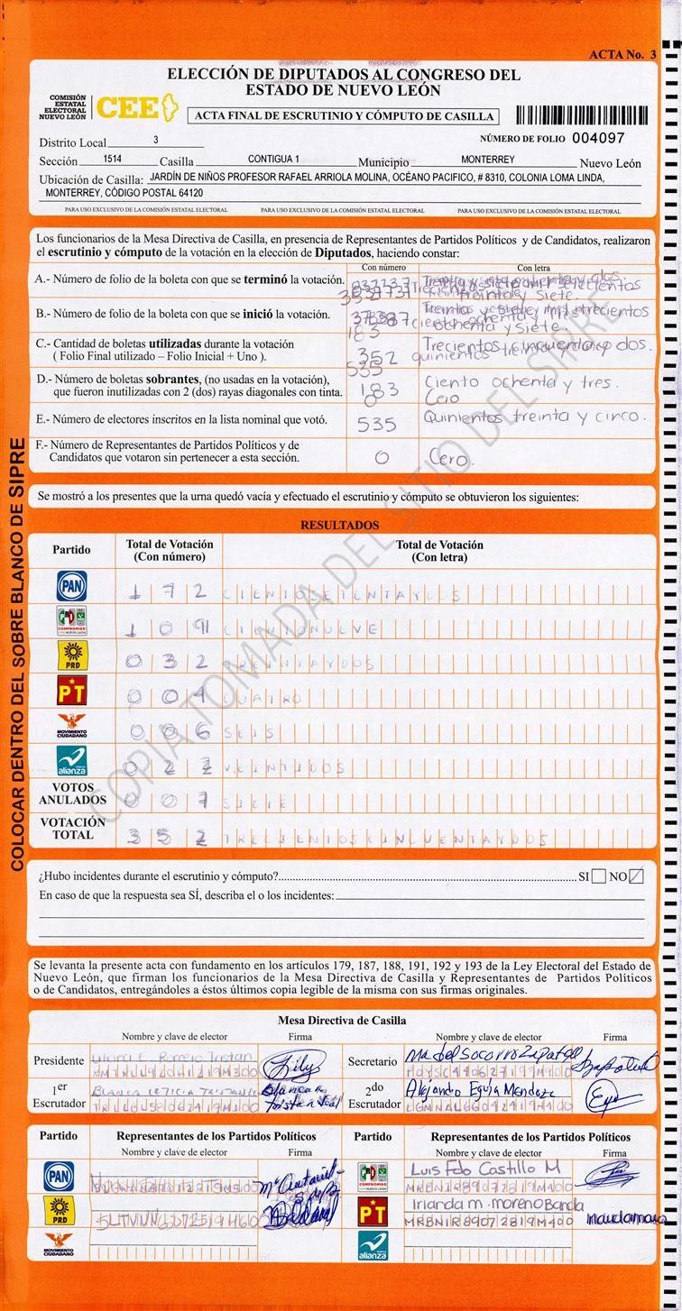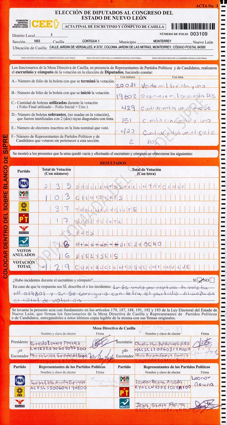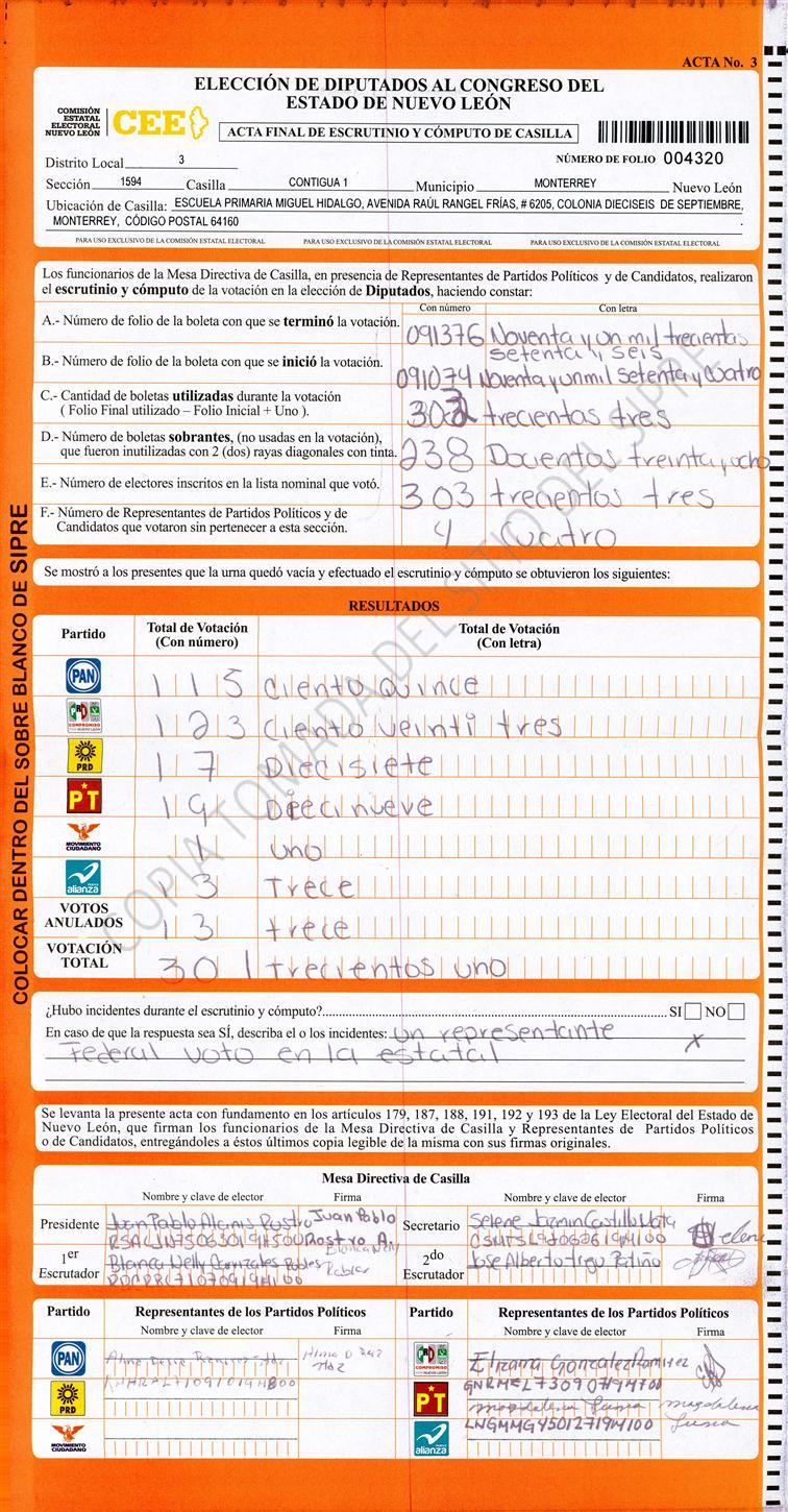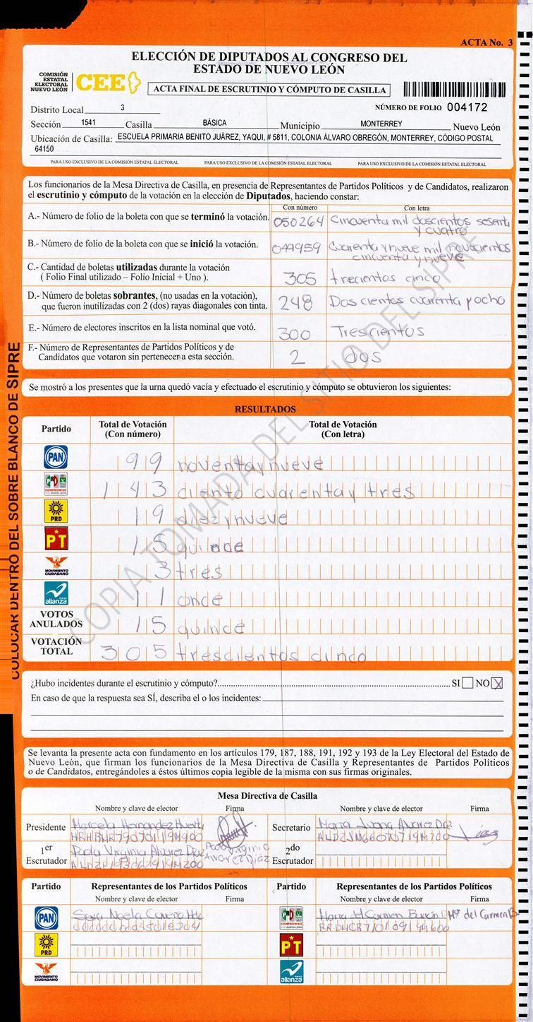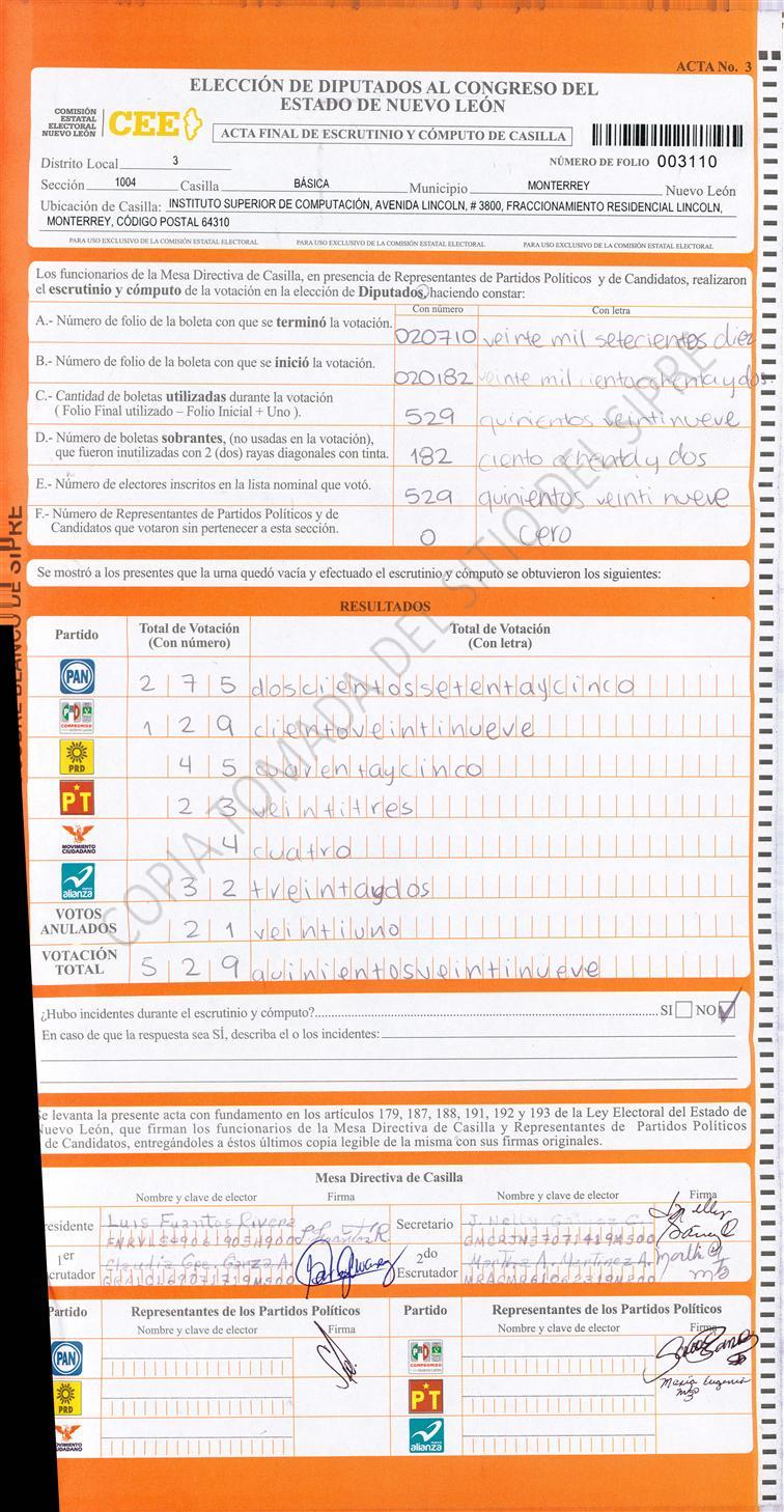 , (8) Copiado Movido , (9) Con Signos Inválidos , (10) Excede Lista Nominal , (11) Otra |