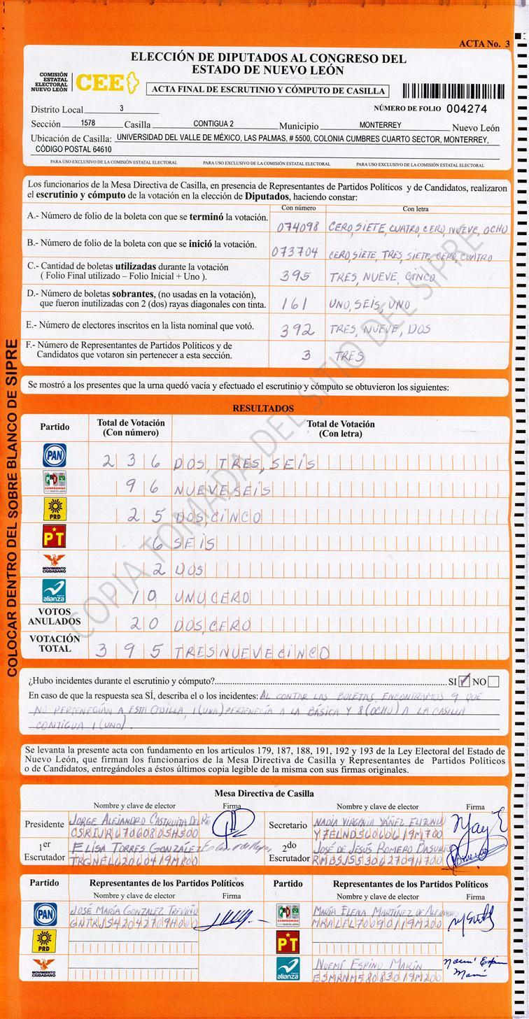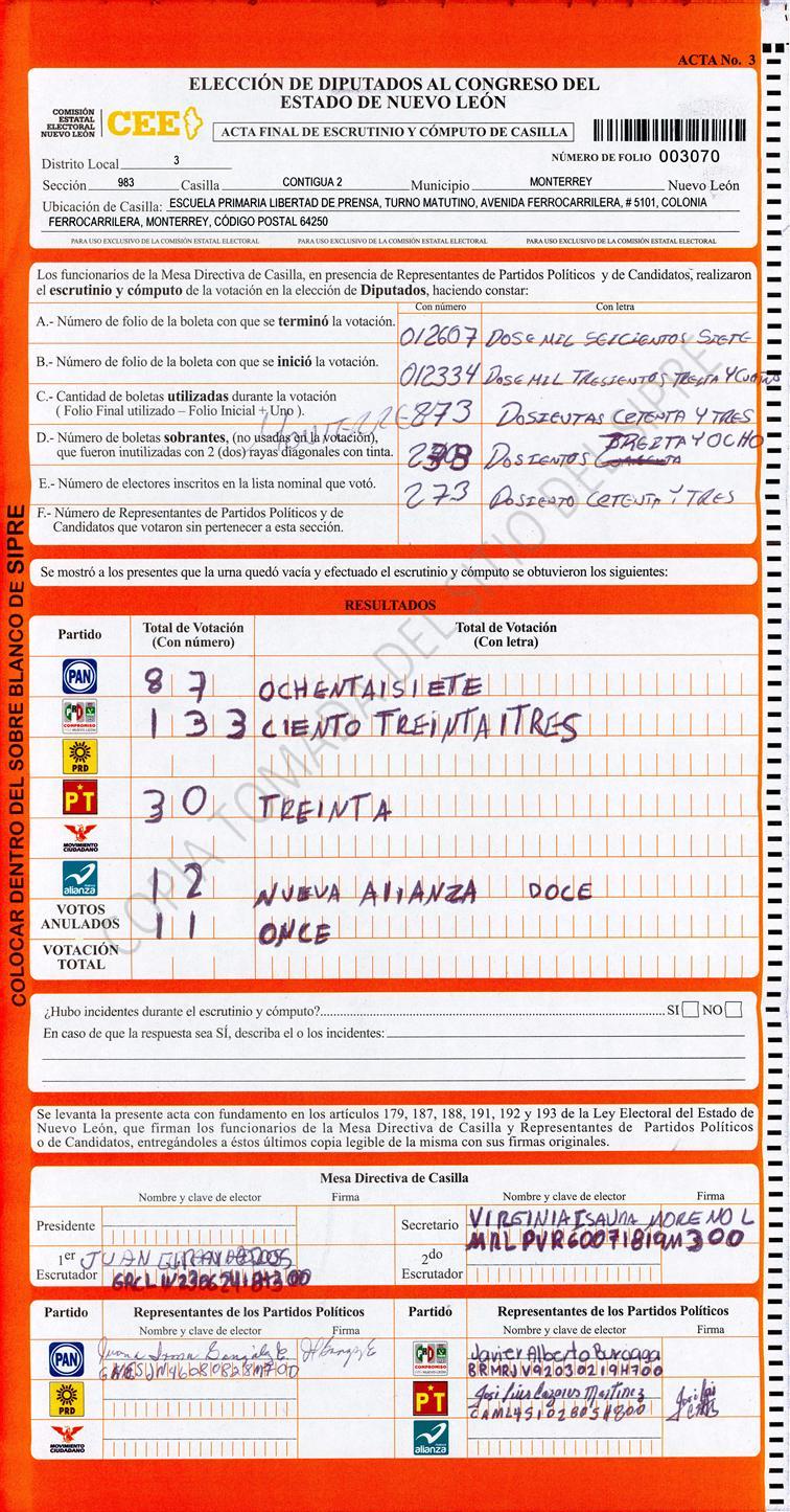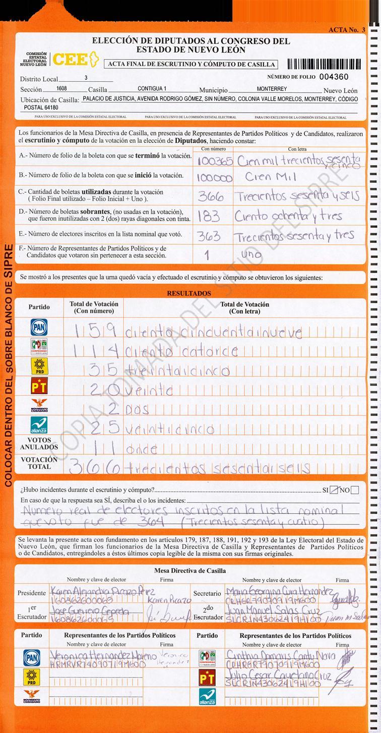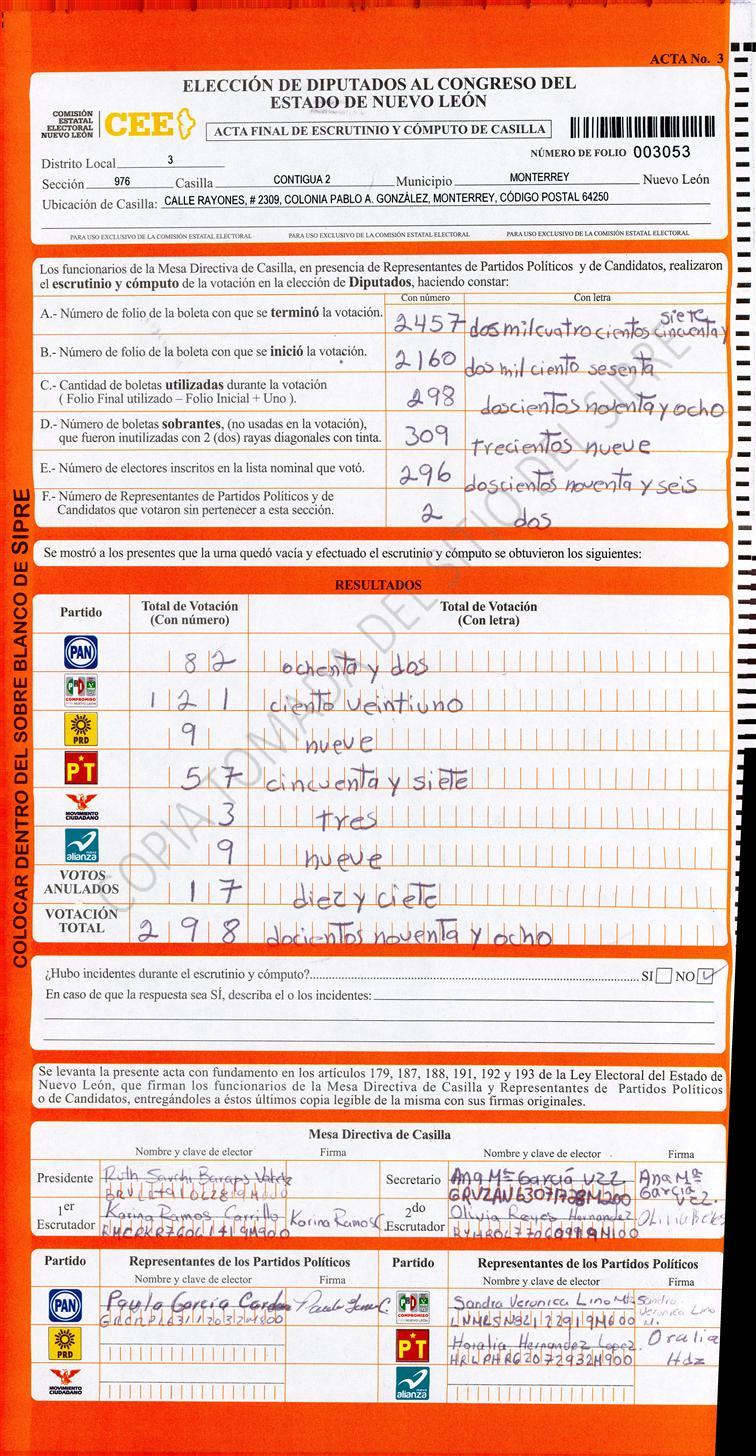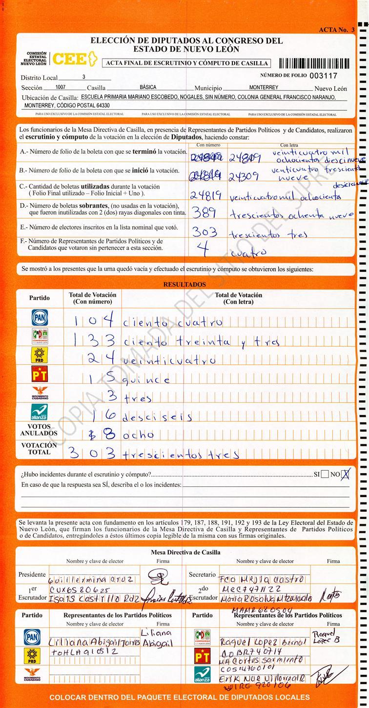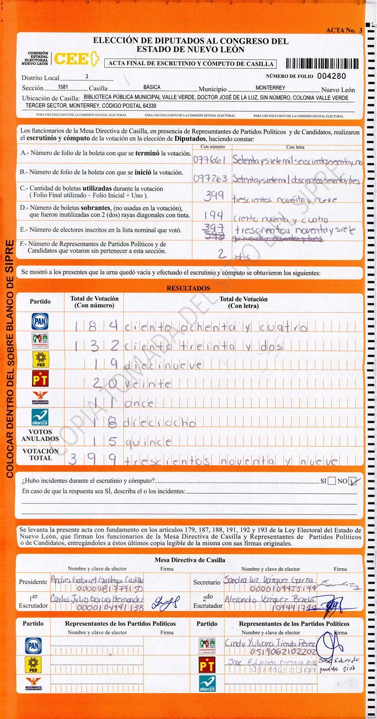 , (8) Copiado Movido , (9) Con Signos Inválidos , (10) Excede Lista Nominal , (11) Otra |
