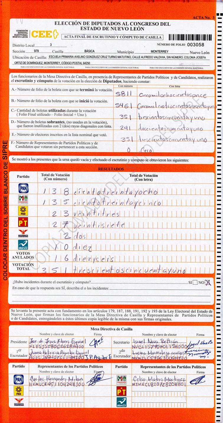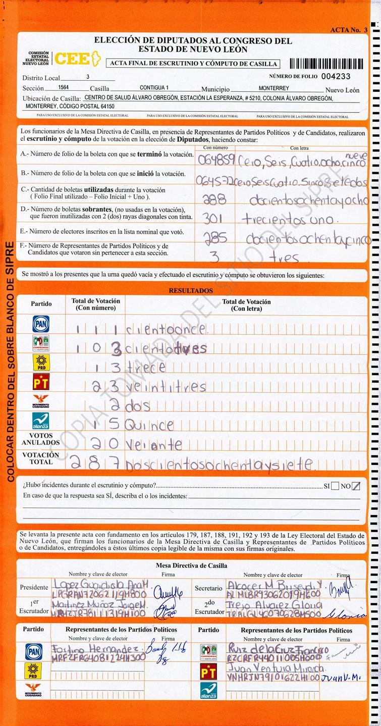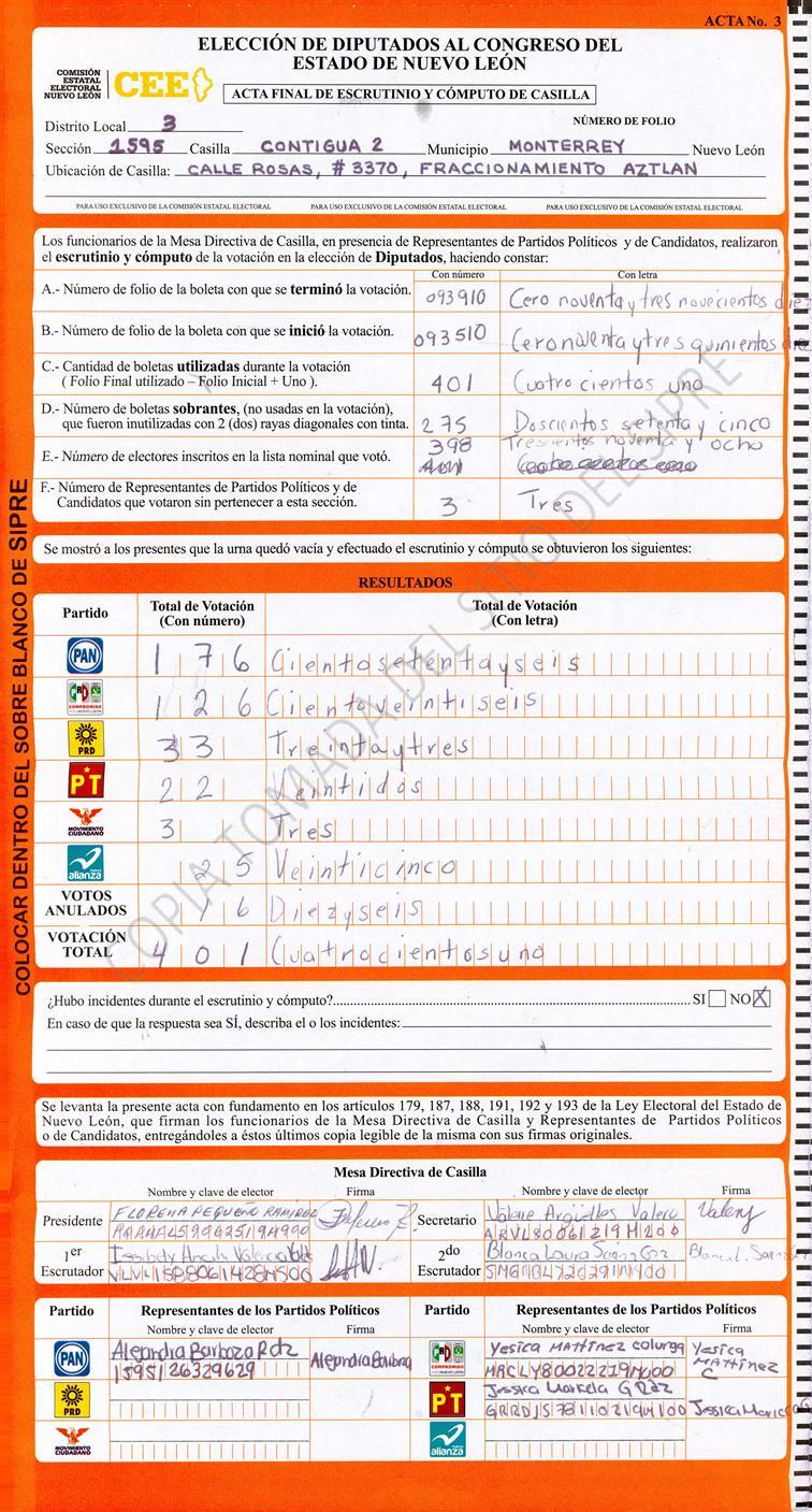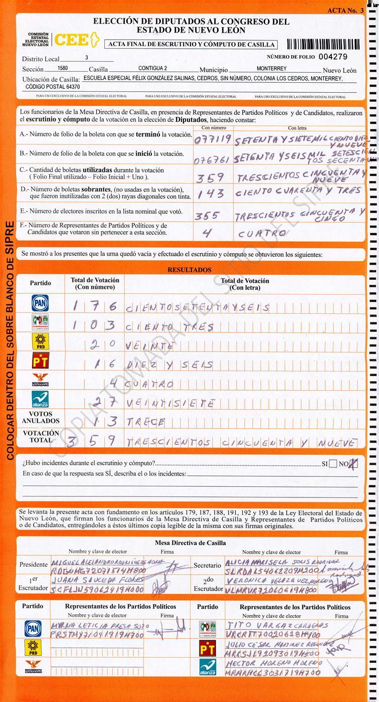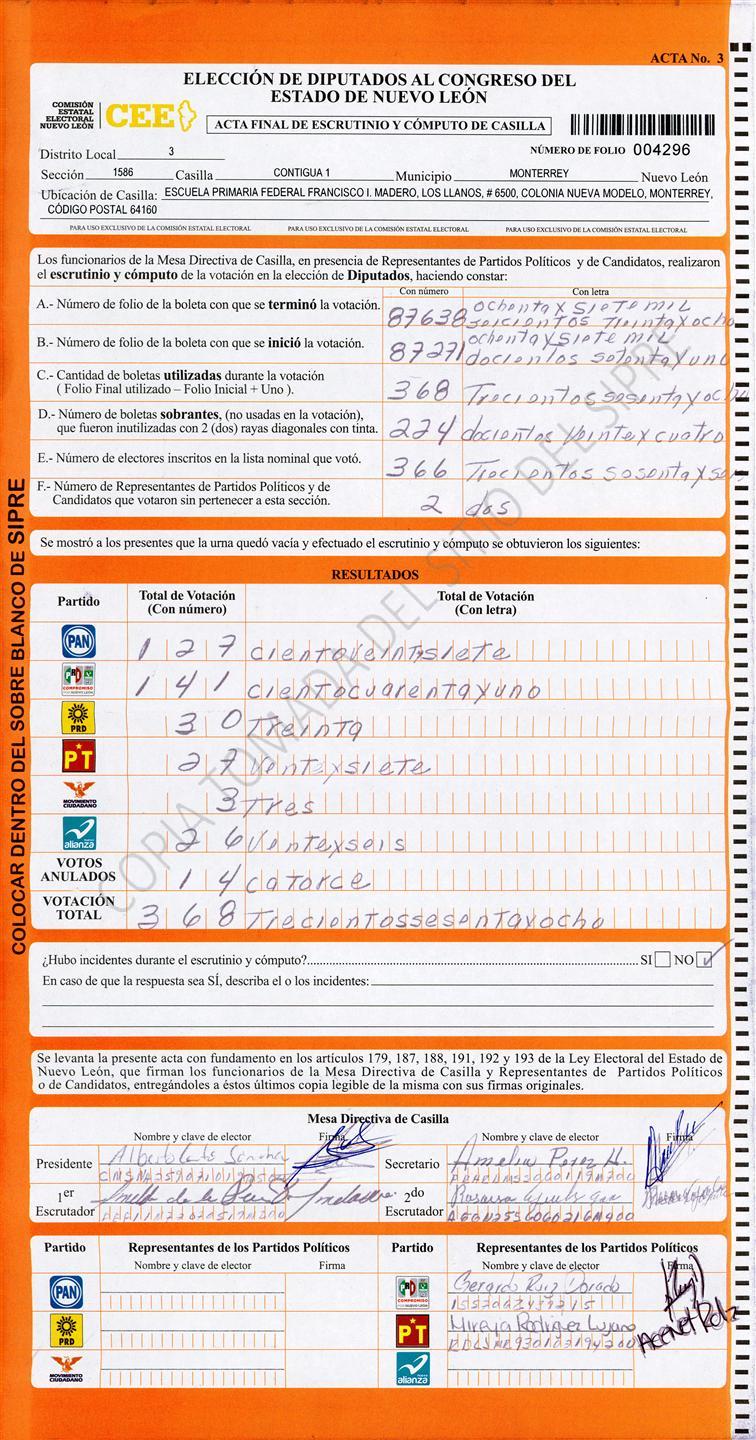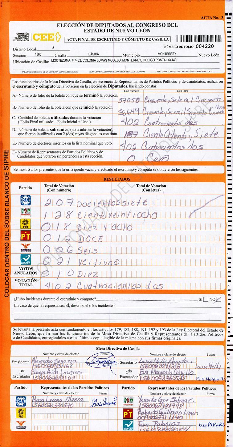 , (8) Copiado Movido , (9) Con Signos Inválidos , (10) Excede Lista Nominal , (11) Otra |