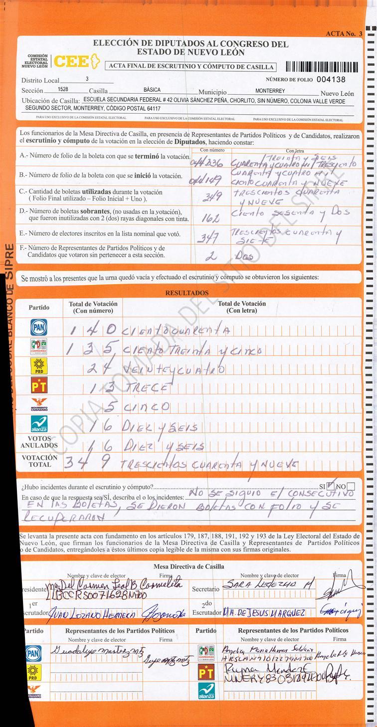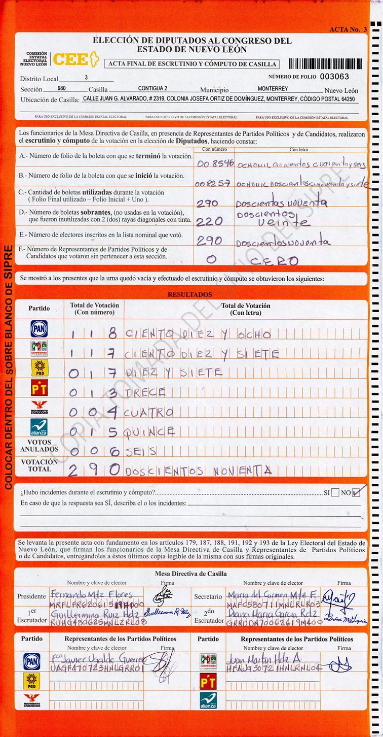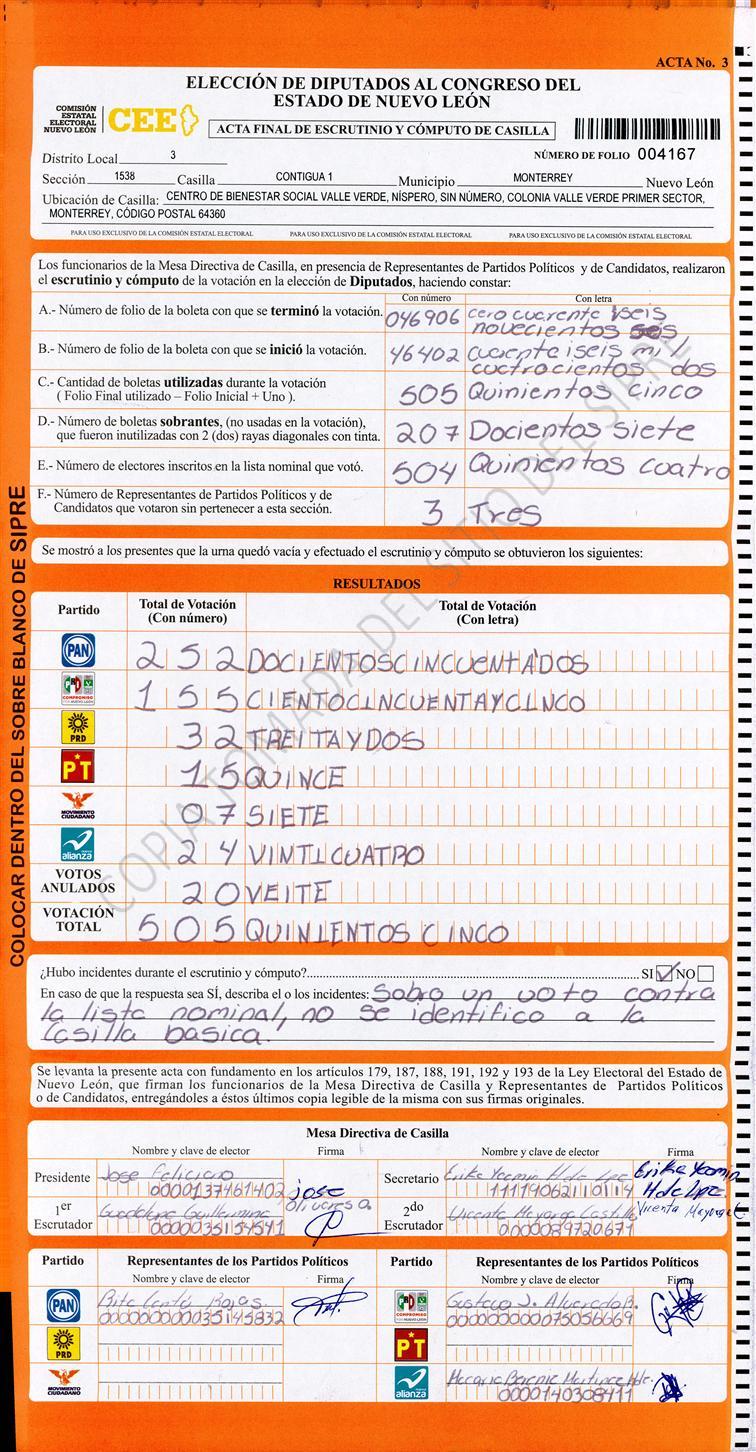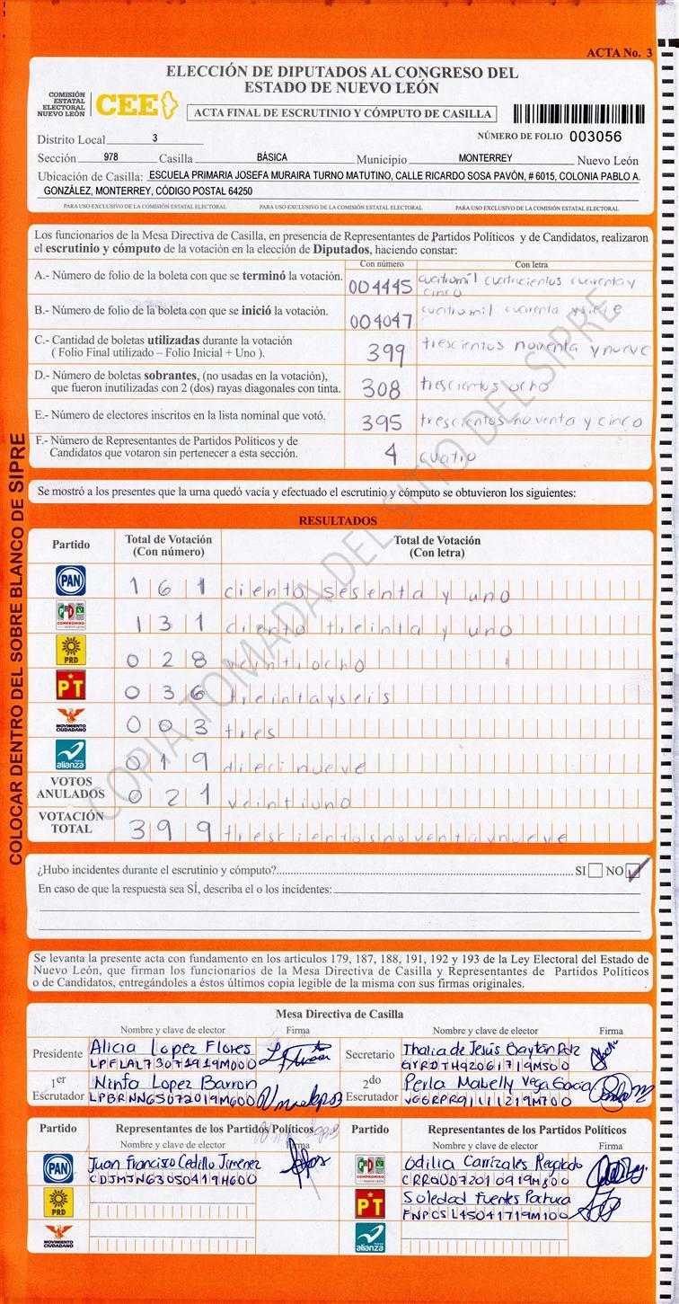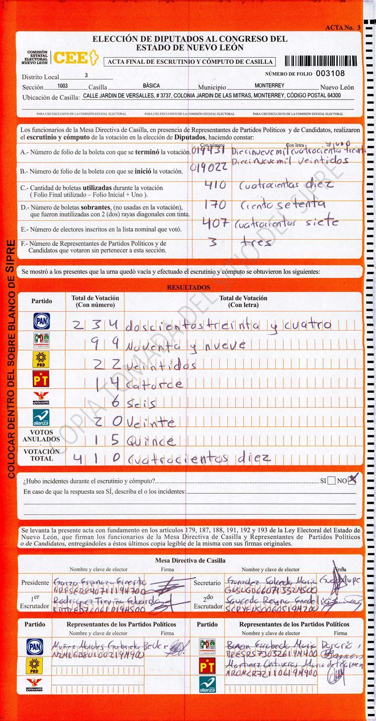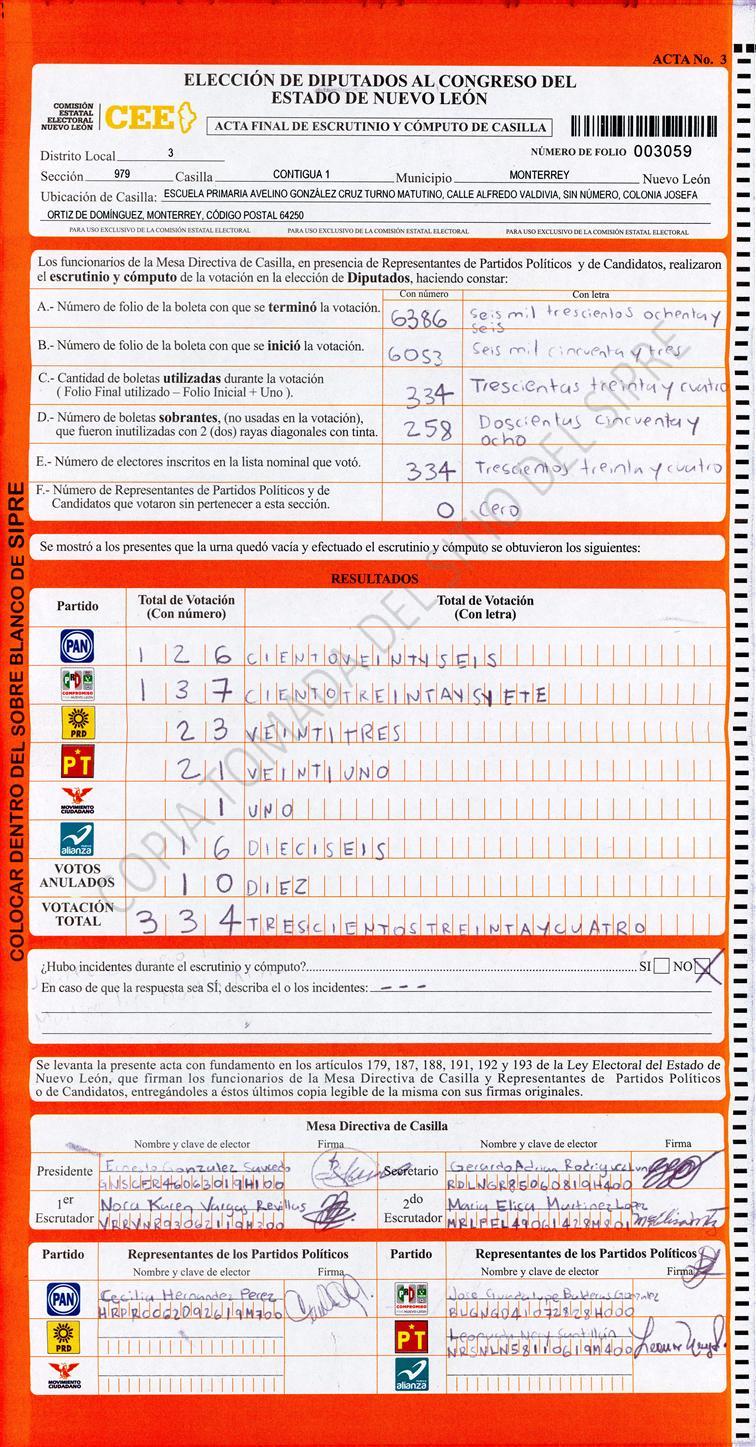 , (8) Copiado Movido , (9) Con Signos Inválidos , (10) Excede Lista Nominal , (11) Otra |