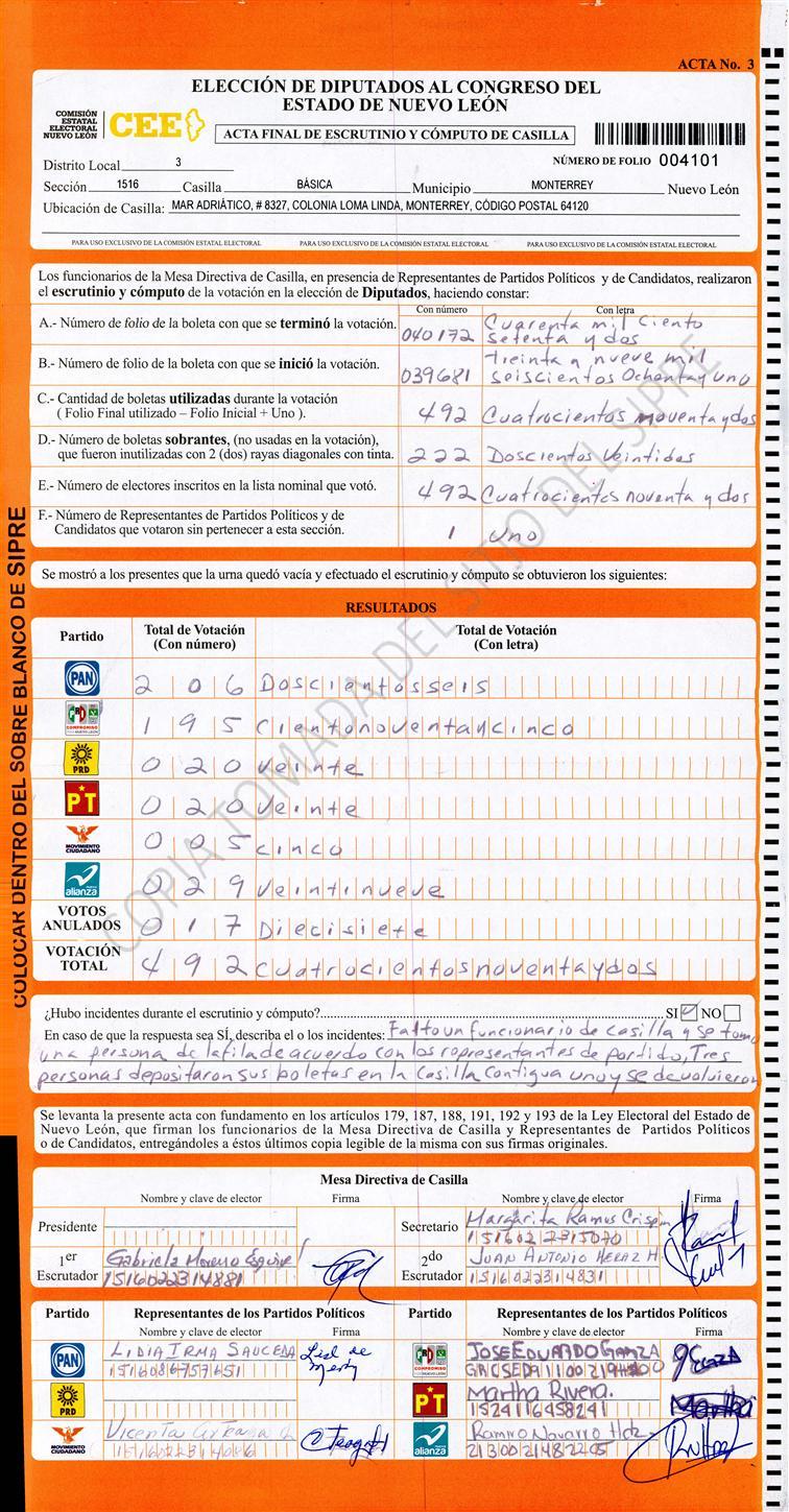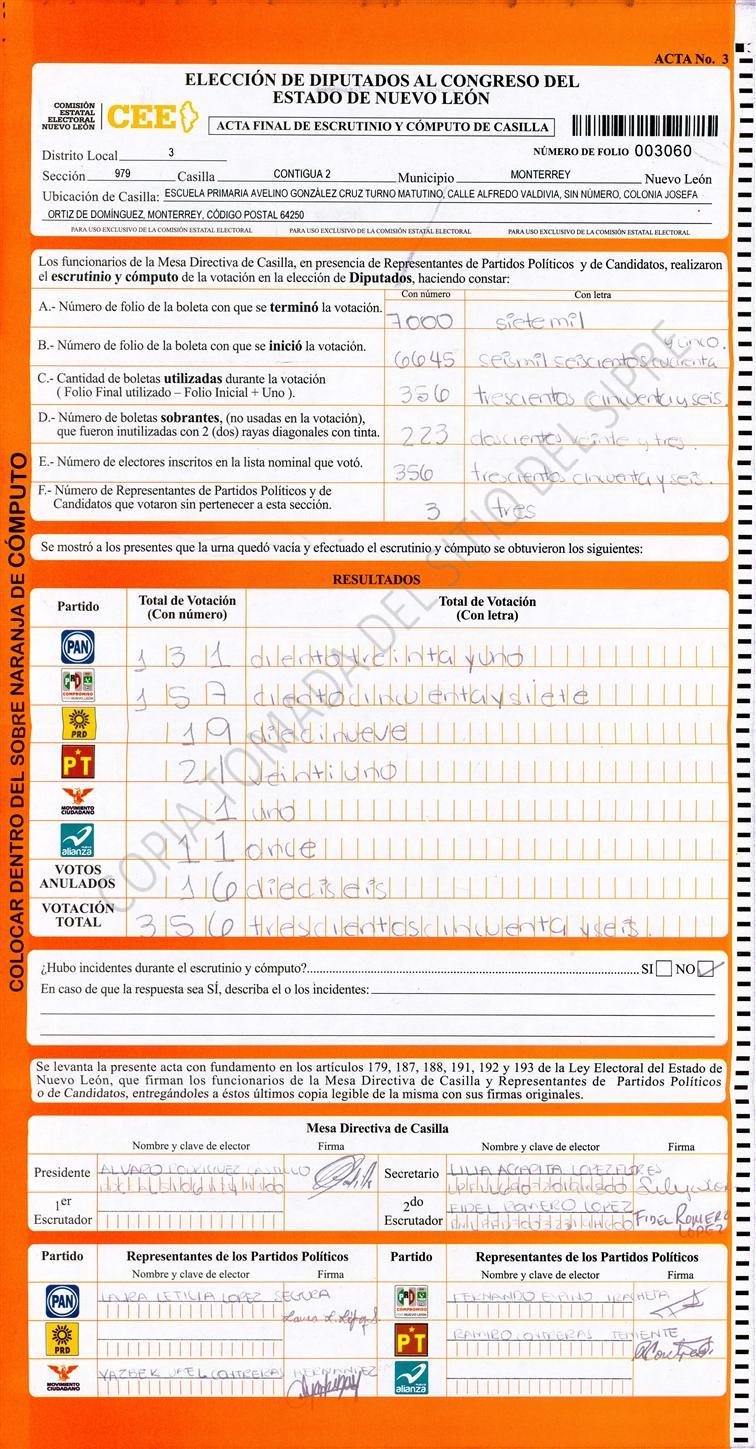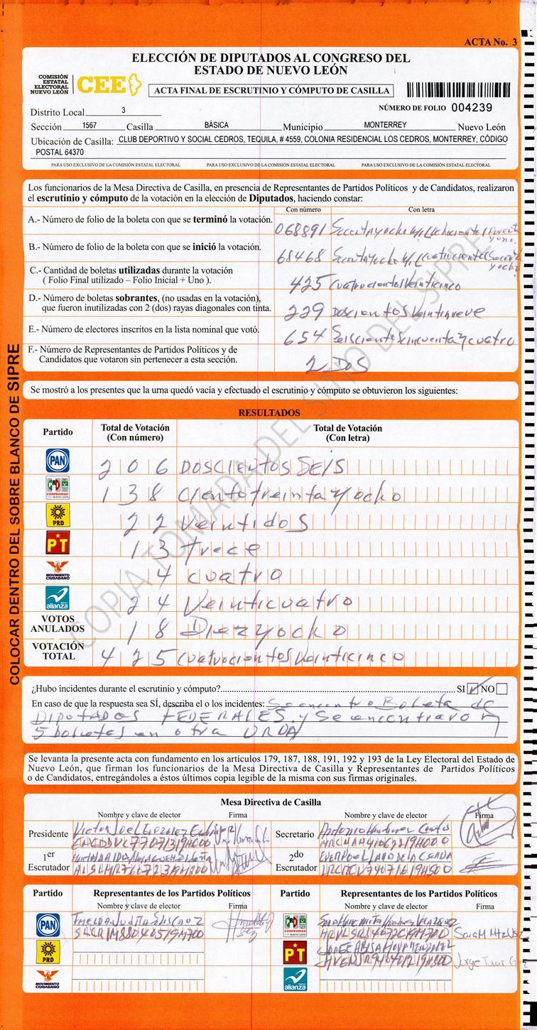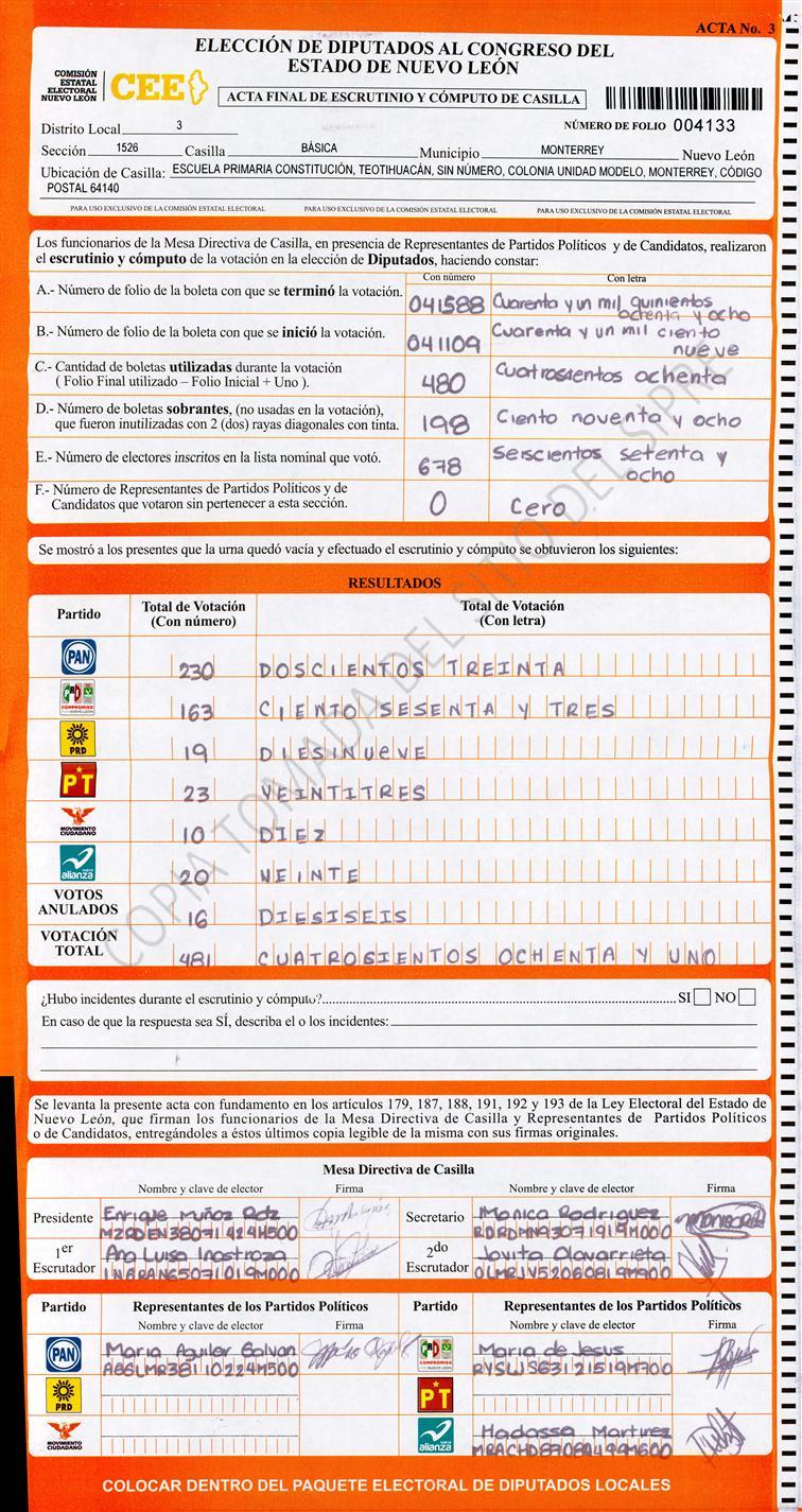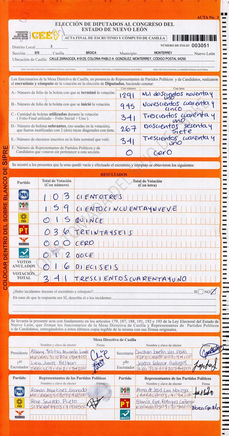 , (8) Copiado Movido , (9) Con Signos Inválidos , (10) Excede Lista Nominal , (11) Otra |