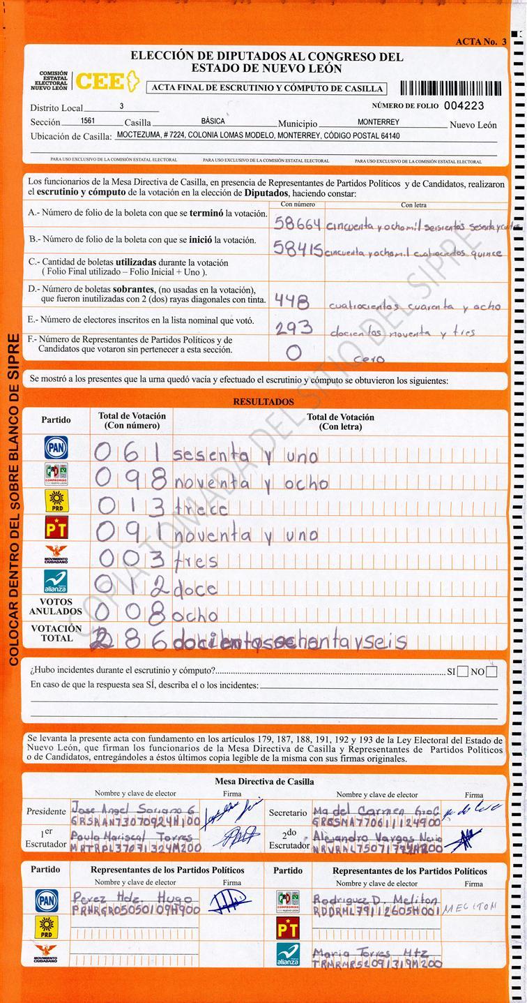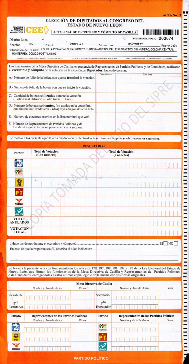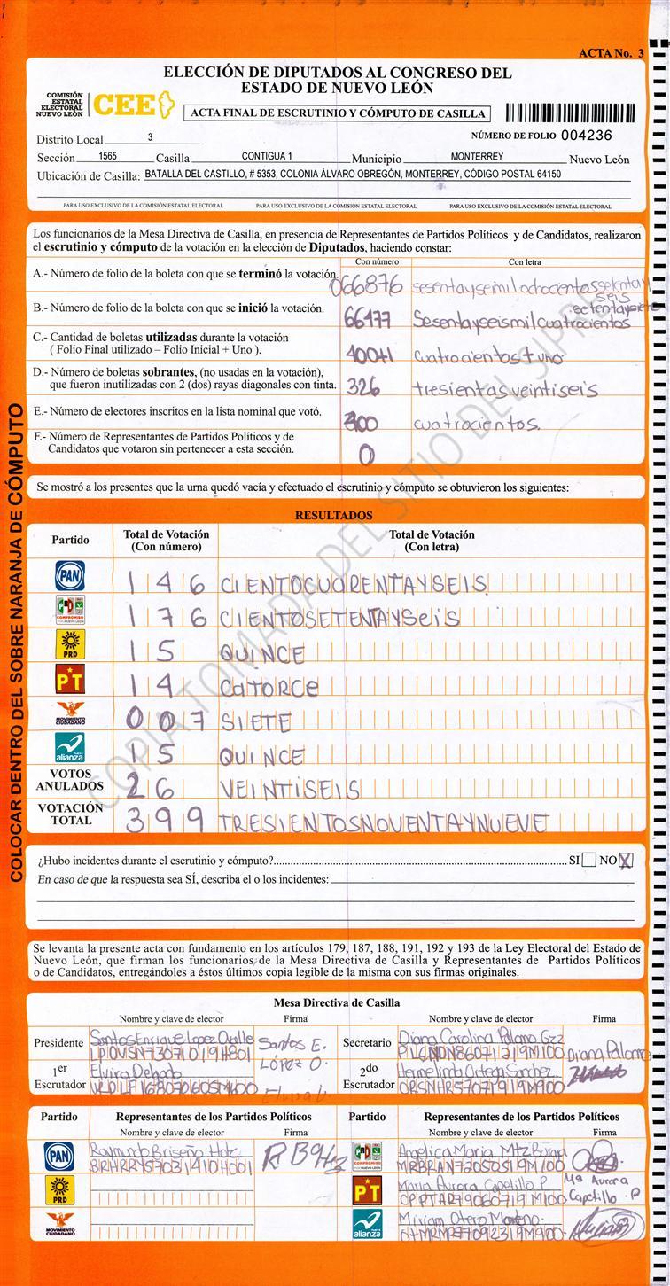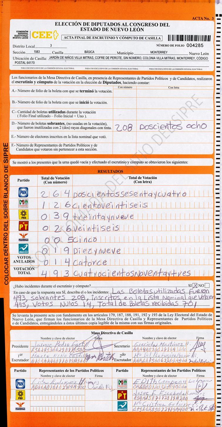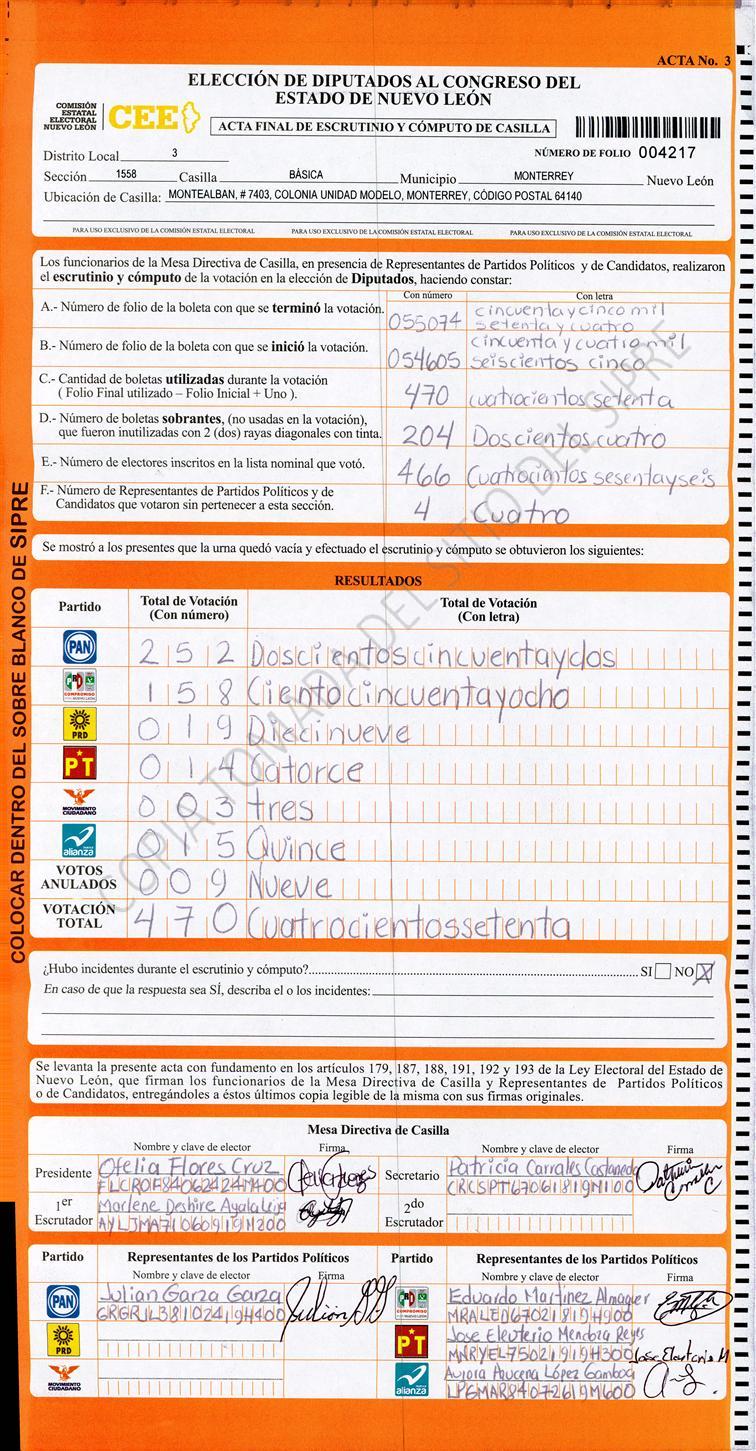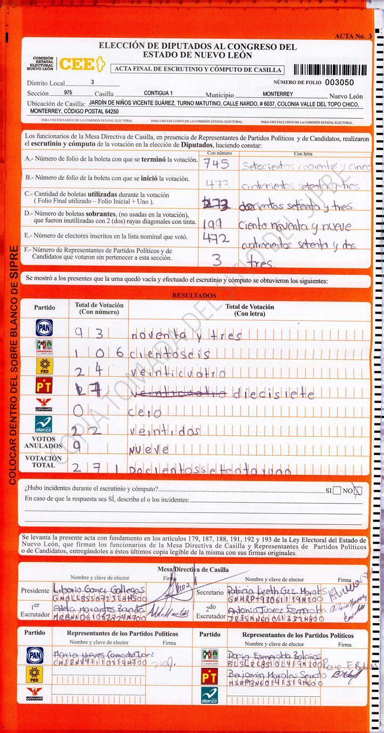 , (8) Copiado Movido , (9) Con Signos Inválidos , (10) Excede Lista Nominal , (11) Otra |