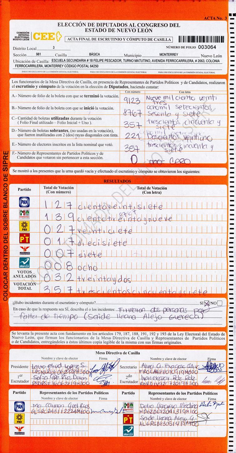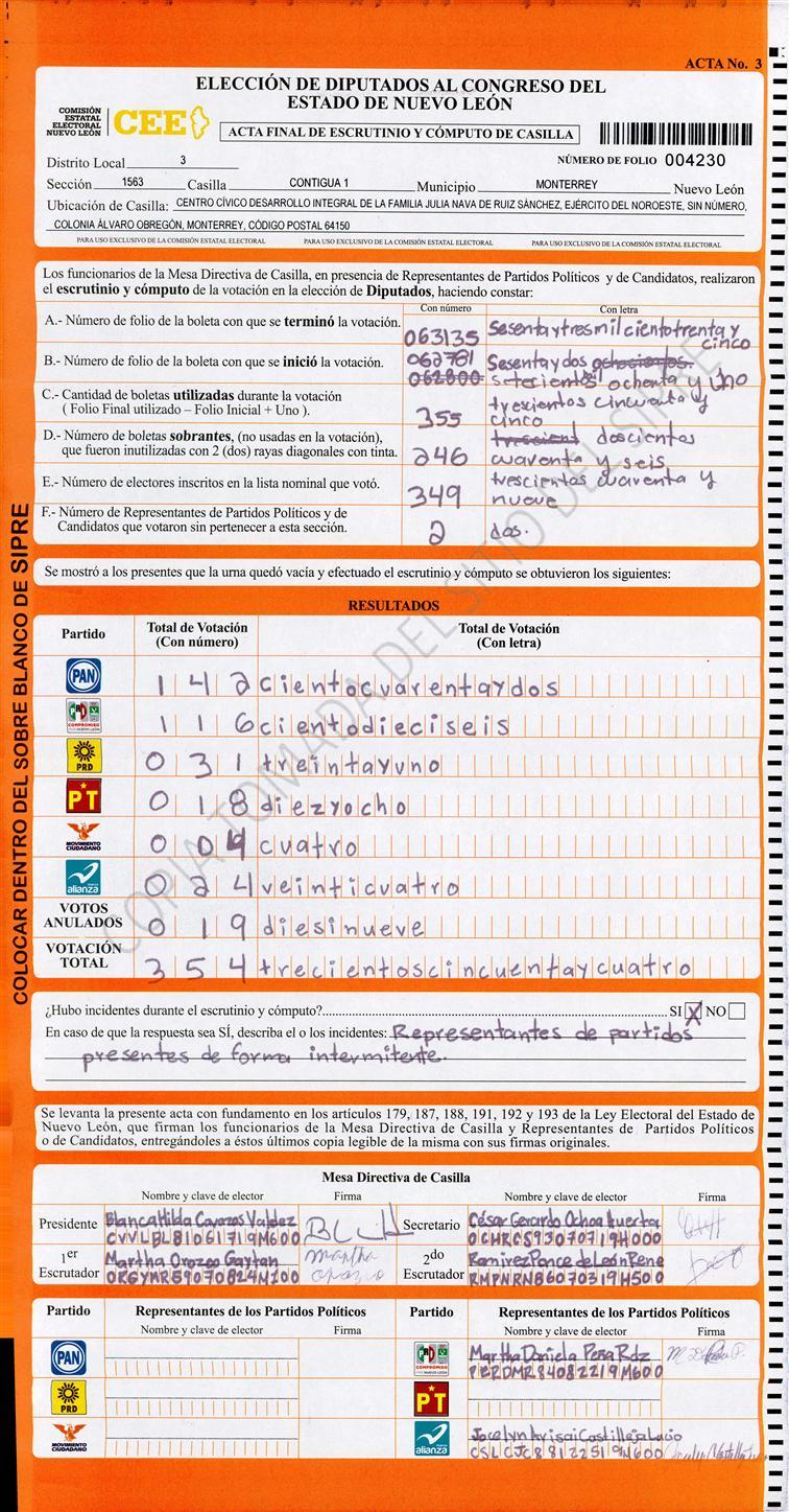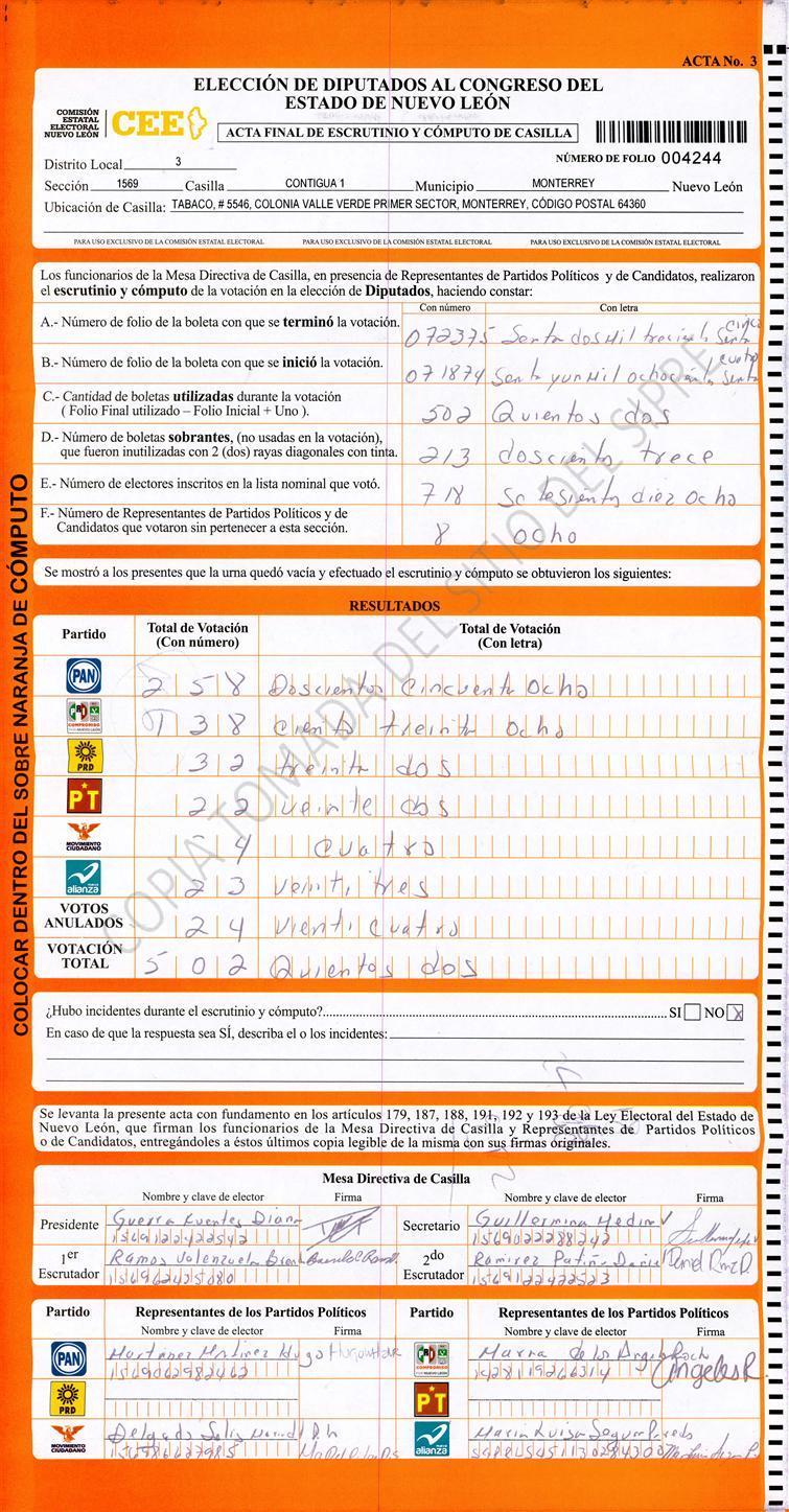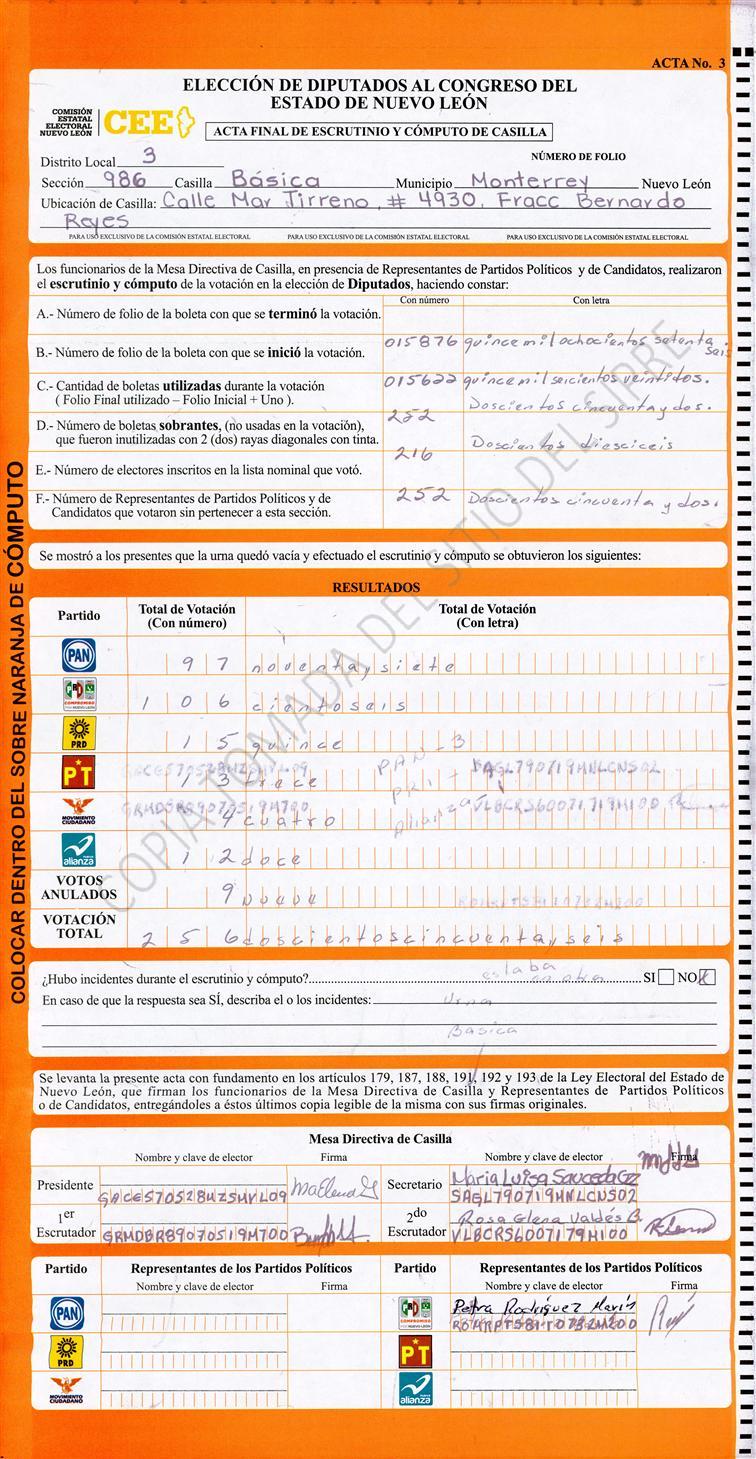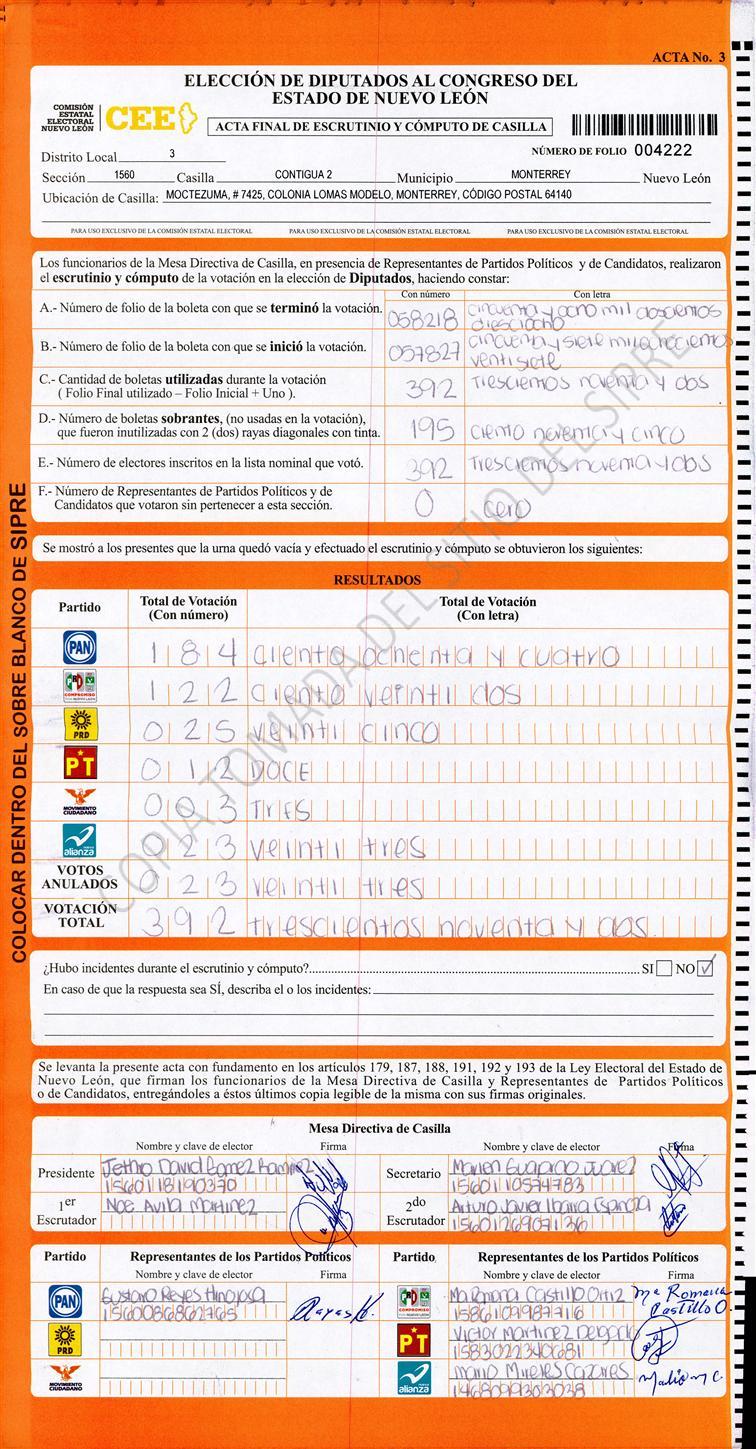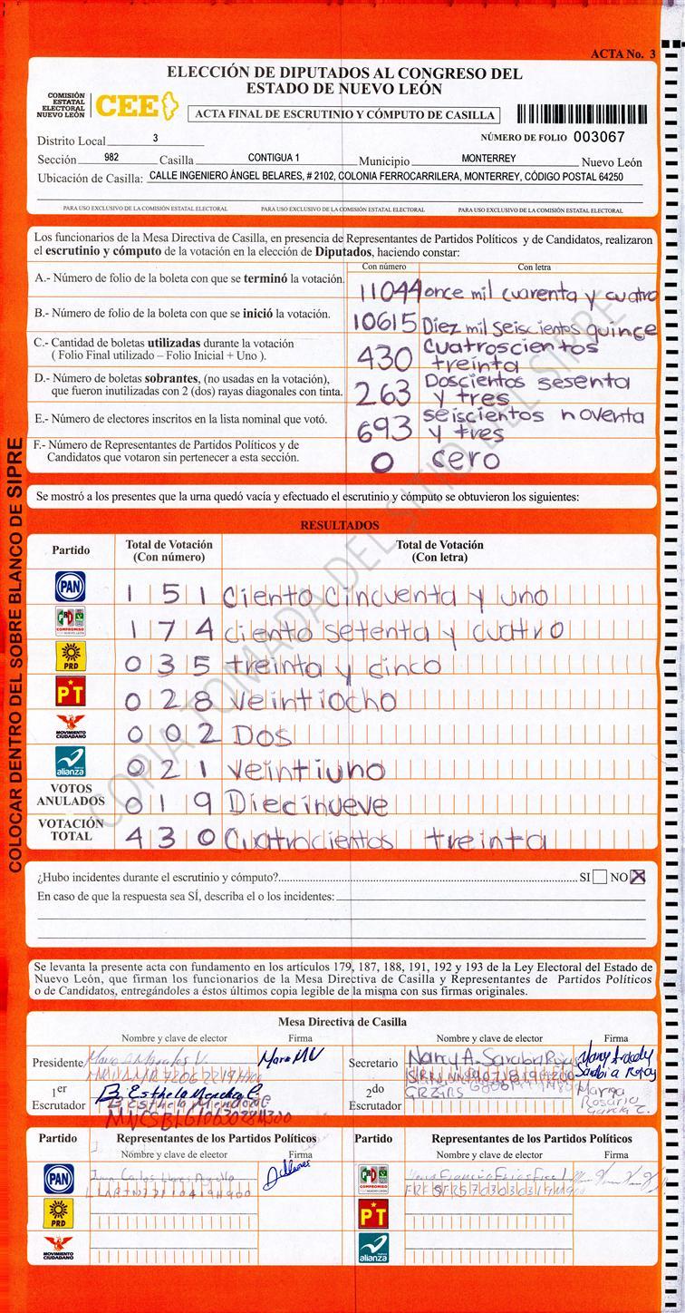 , (8) Copiado Movido , (9) Con Signos Inválidos , (10) Excede Lista Nominal , (11) Otra |