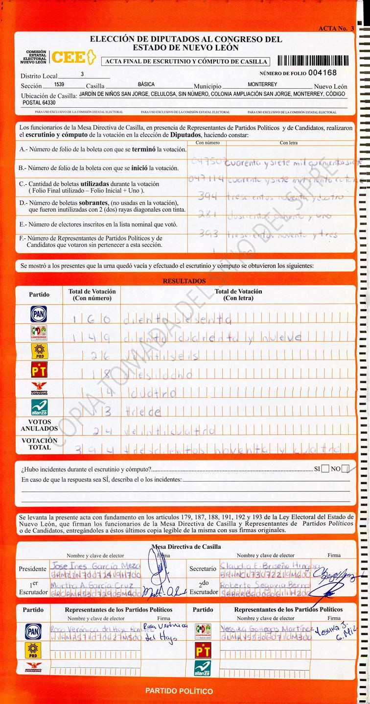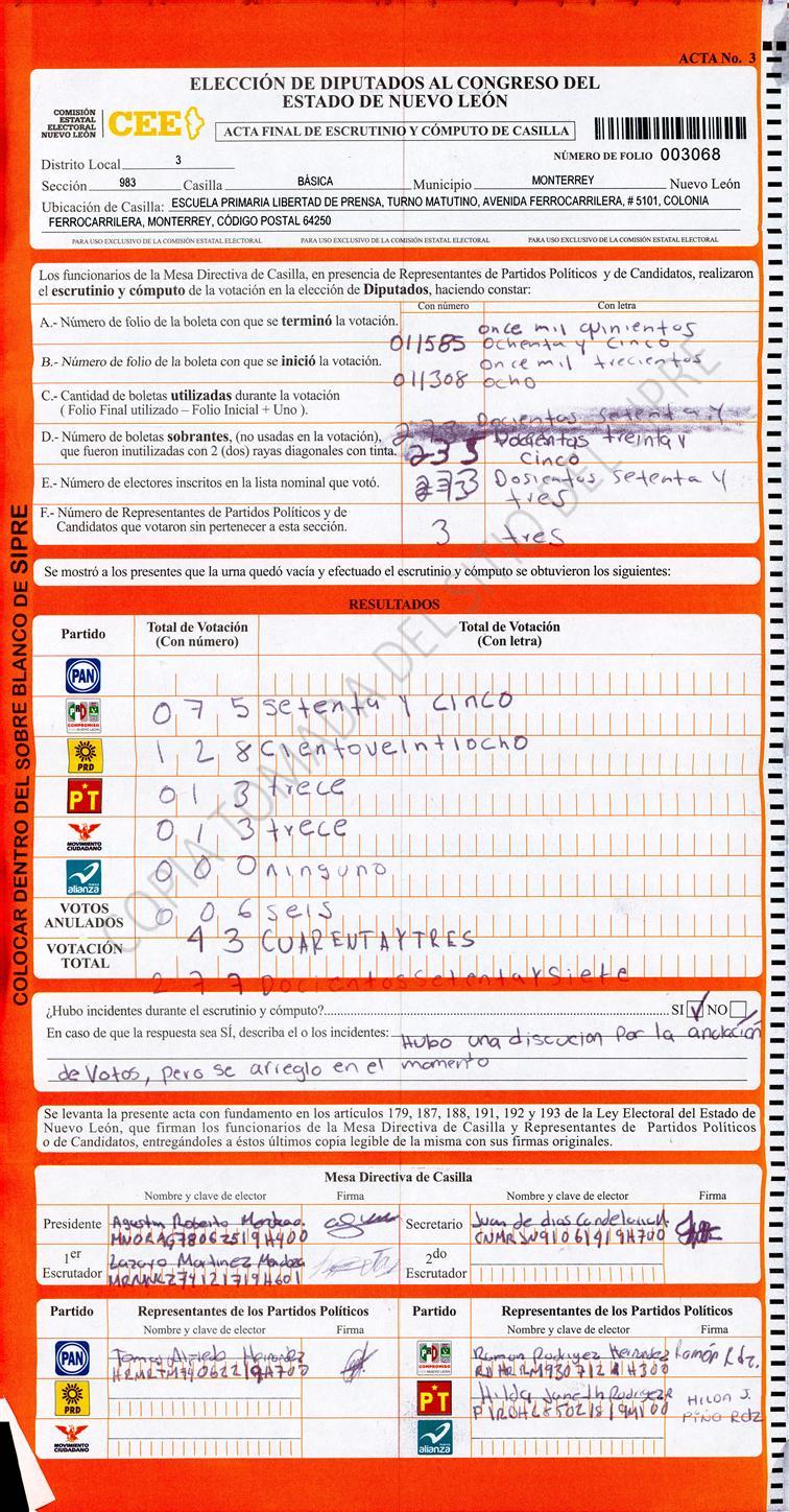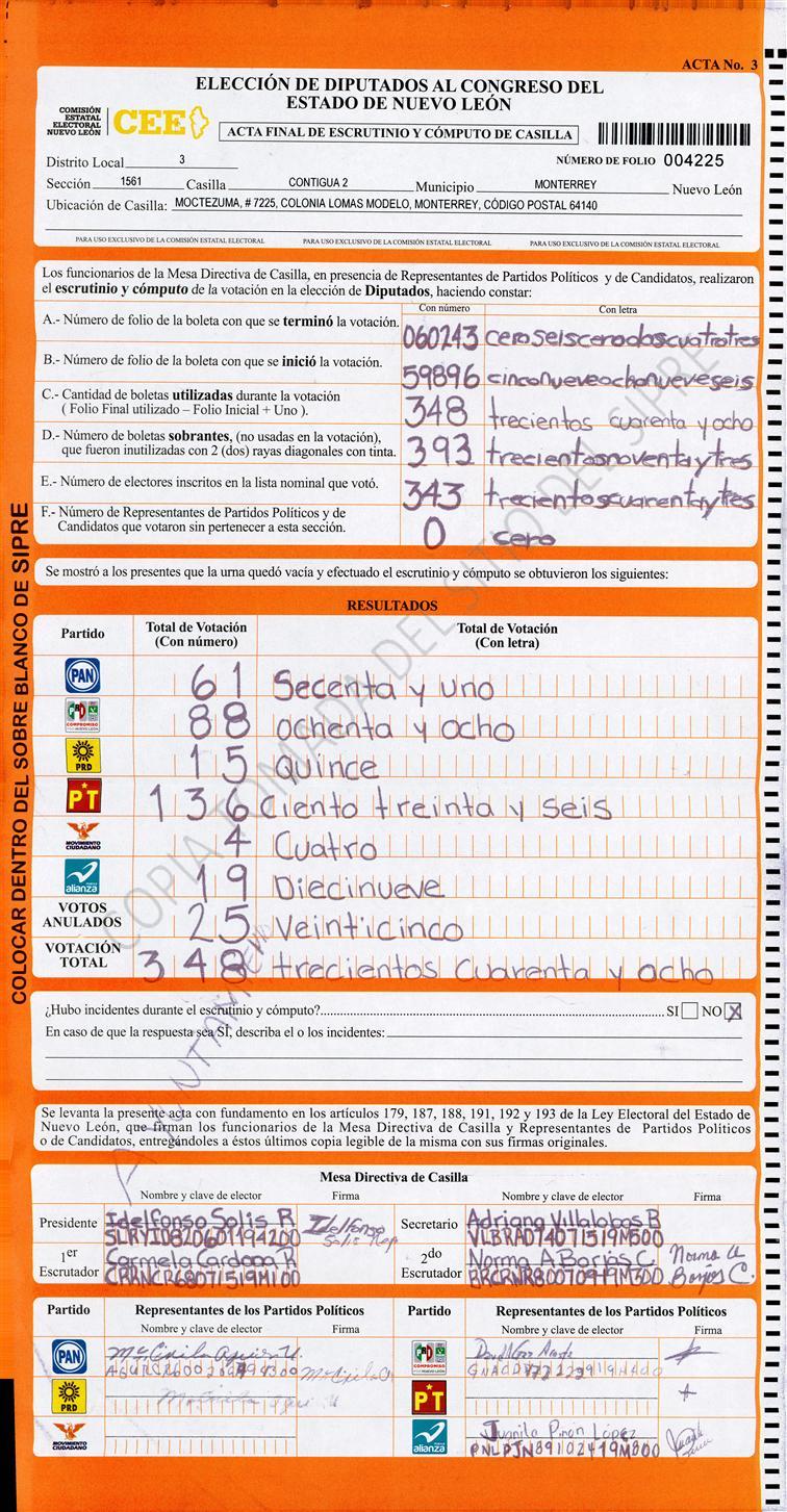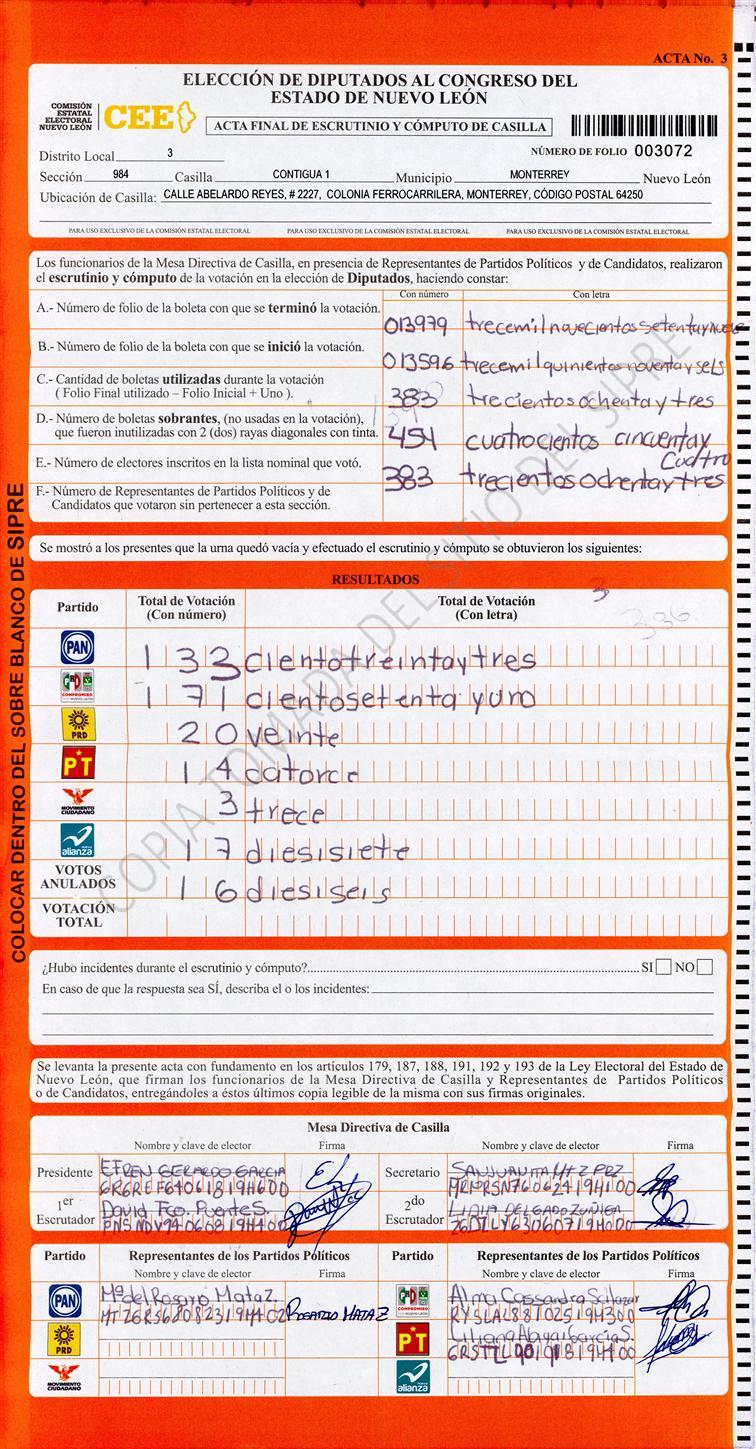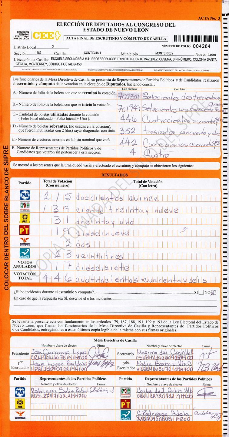 , (8) Copiado Movido , (9) Con Signos Inválidos , (10) Excede Lista Nominal , (11) Otra |