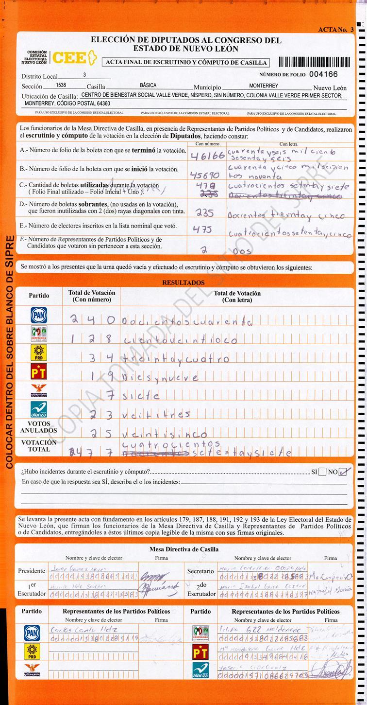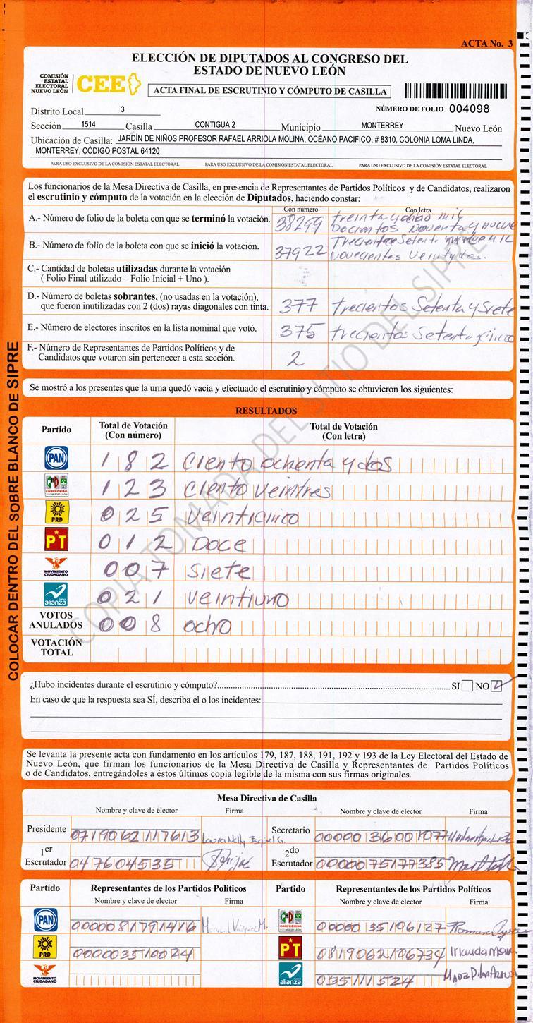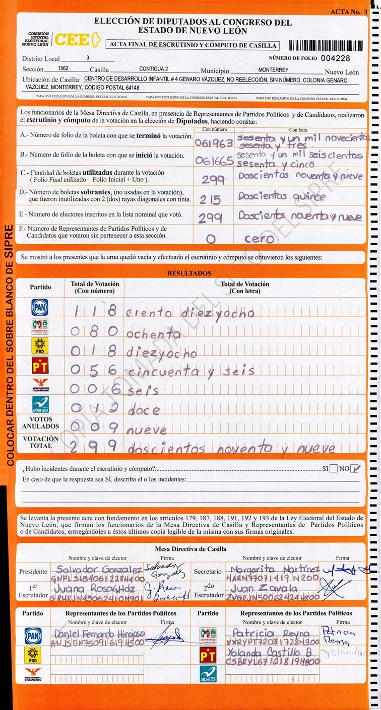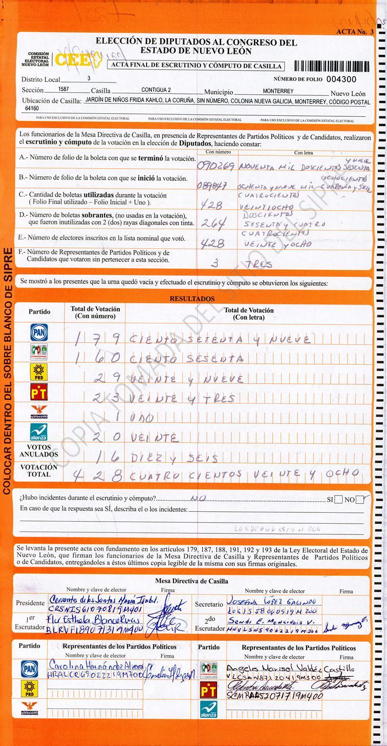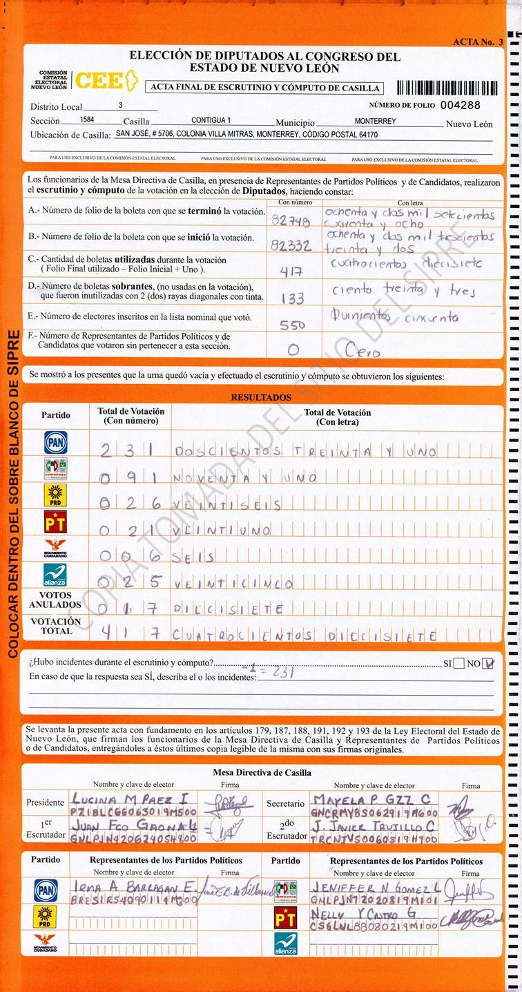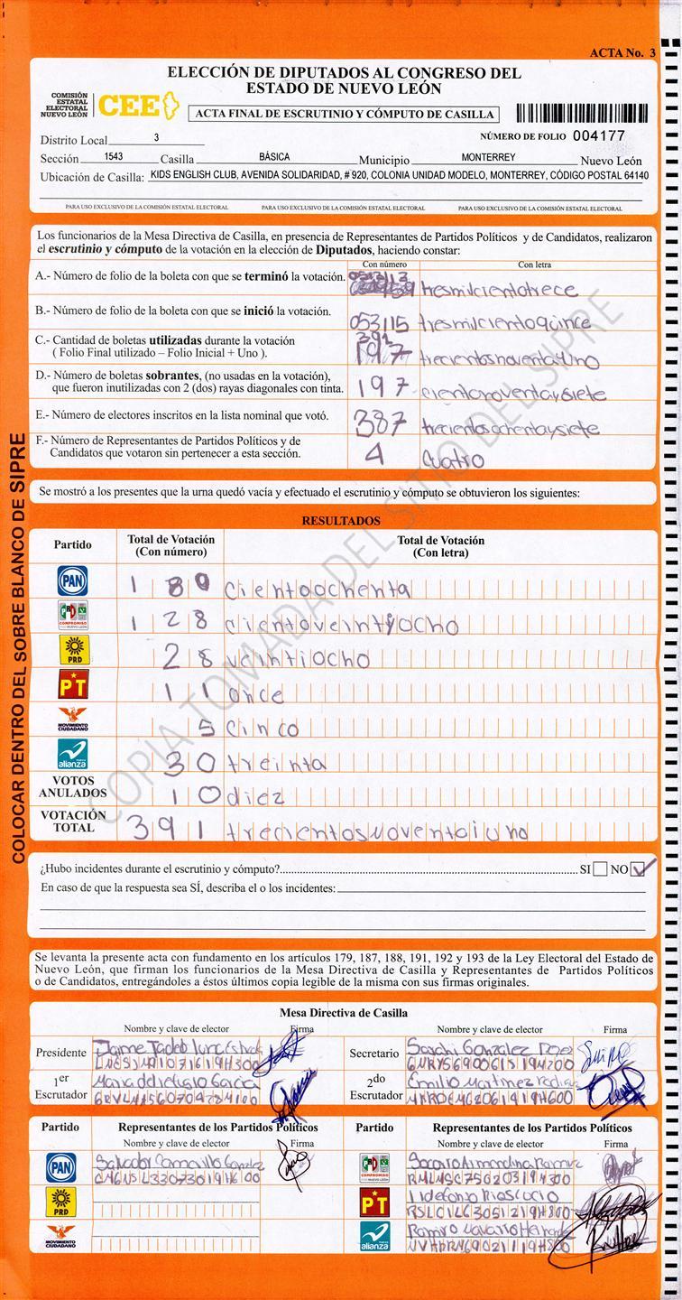 , (8) Copiado Movido , (9) Con Signos Inválidos , (10) Excede Lista Nominal , (11) Otra |