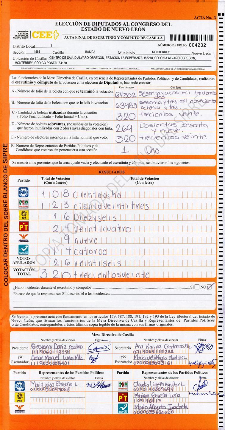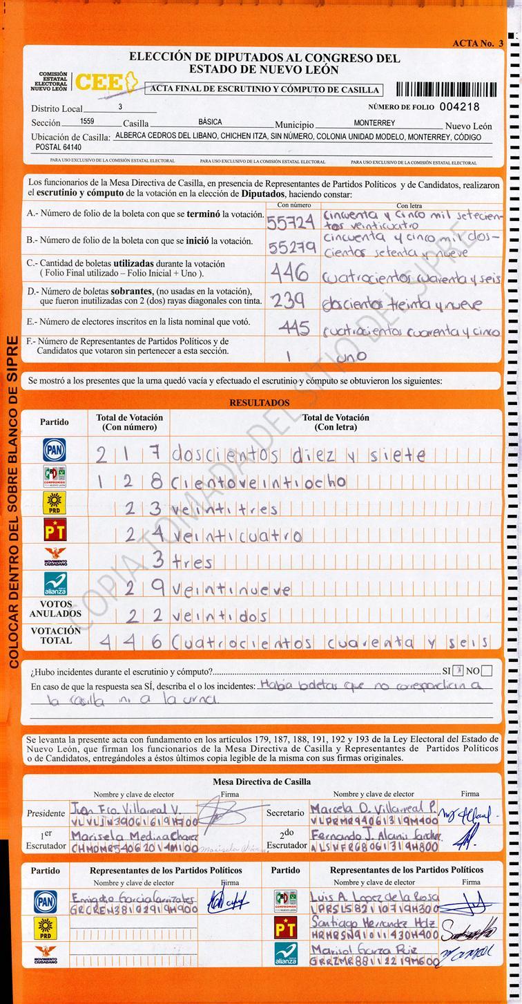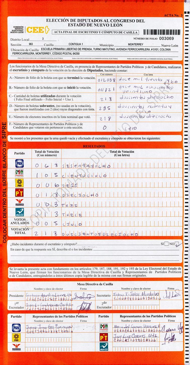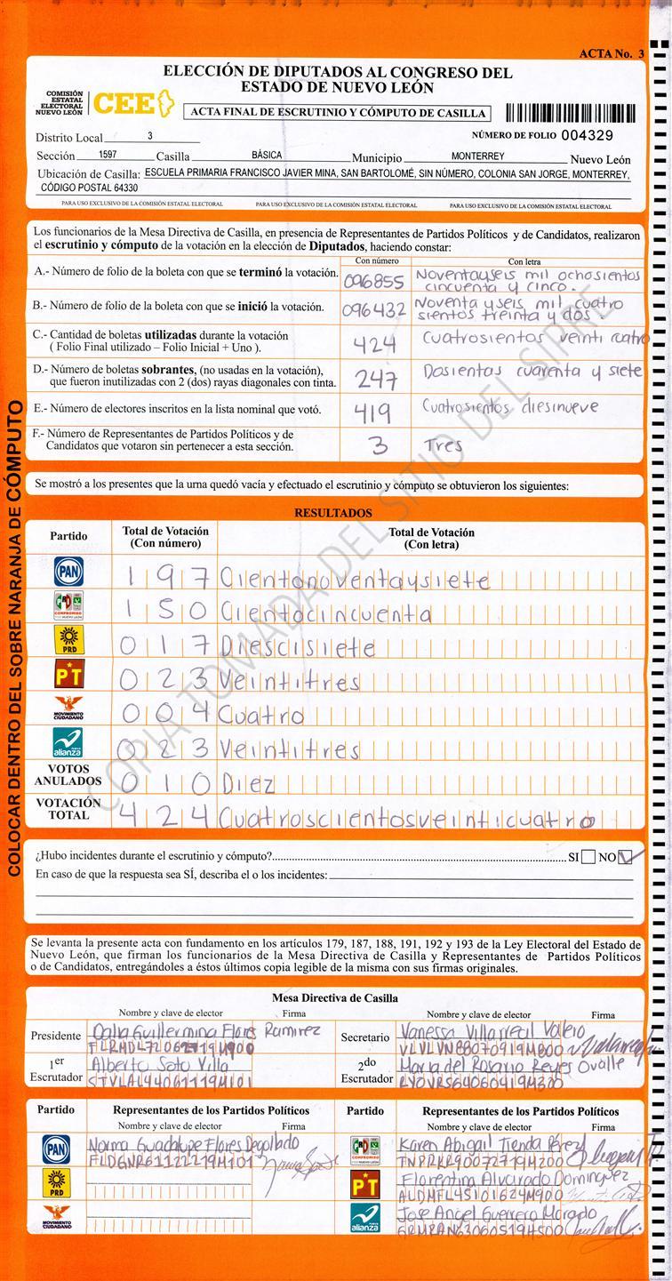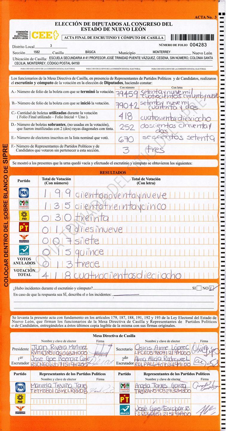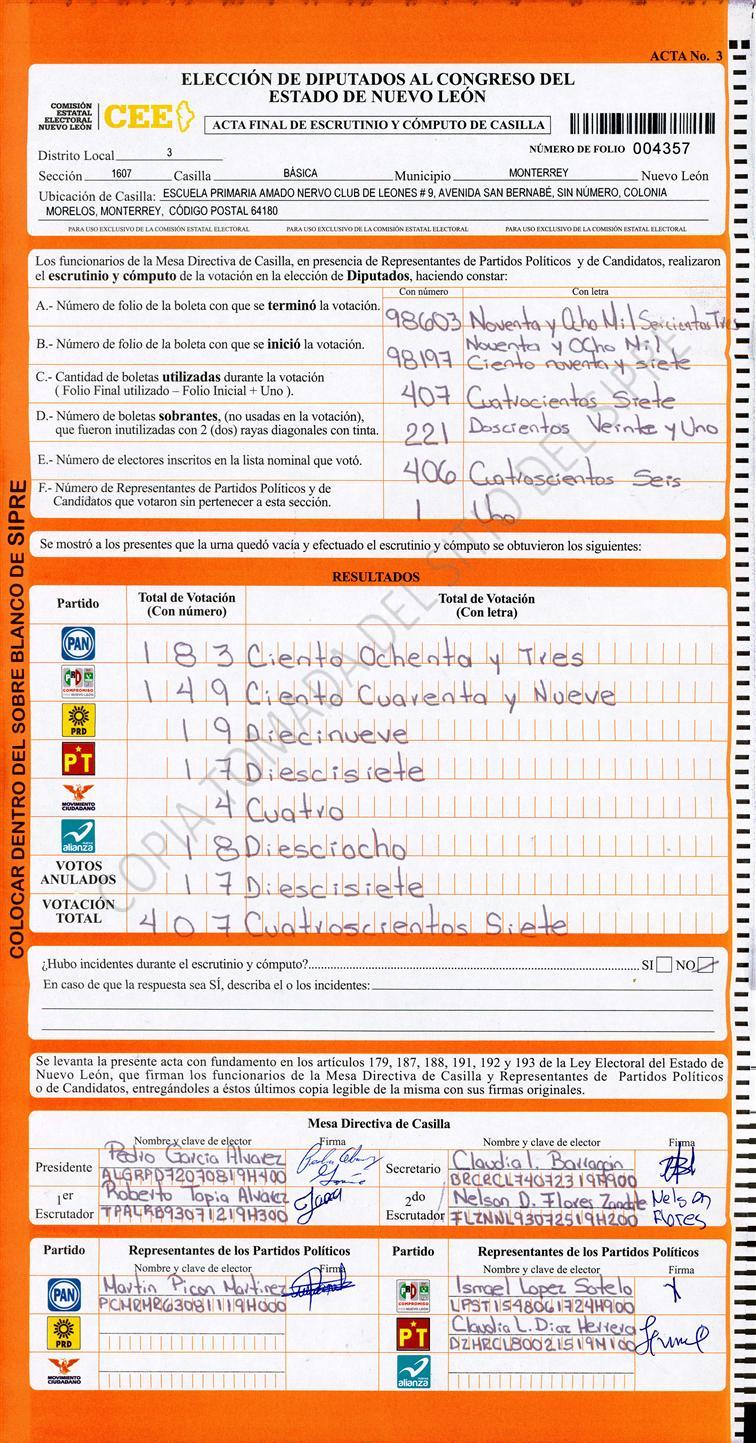 , (8) Copiado Movido , (9) Con Signos Inválidos , (10) Excede Lista Nominal , (11) Otra |