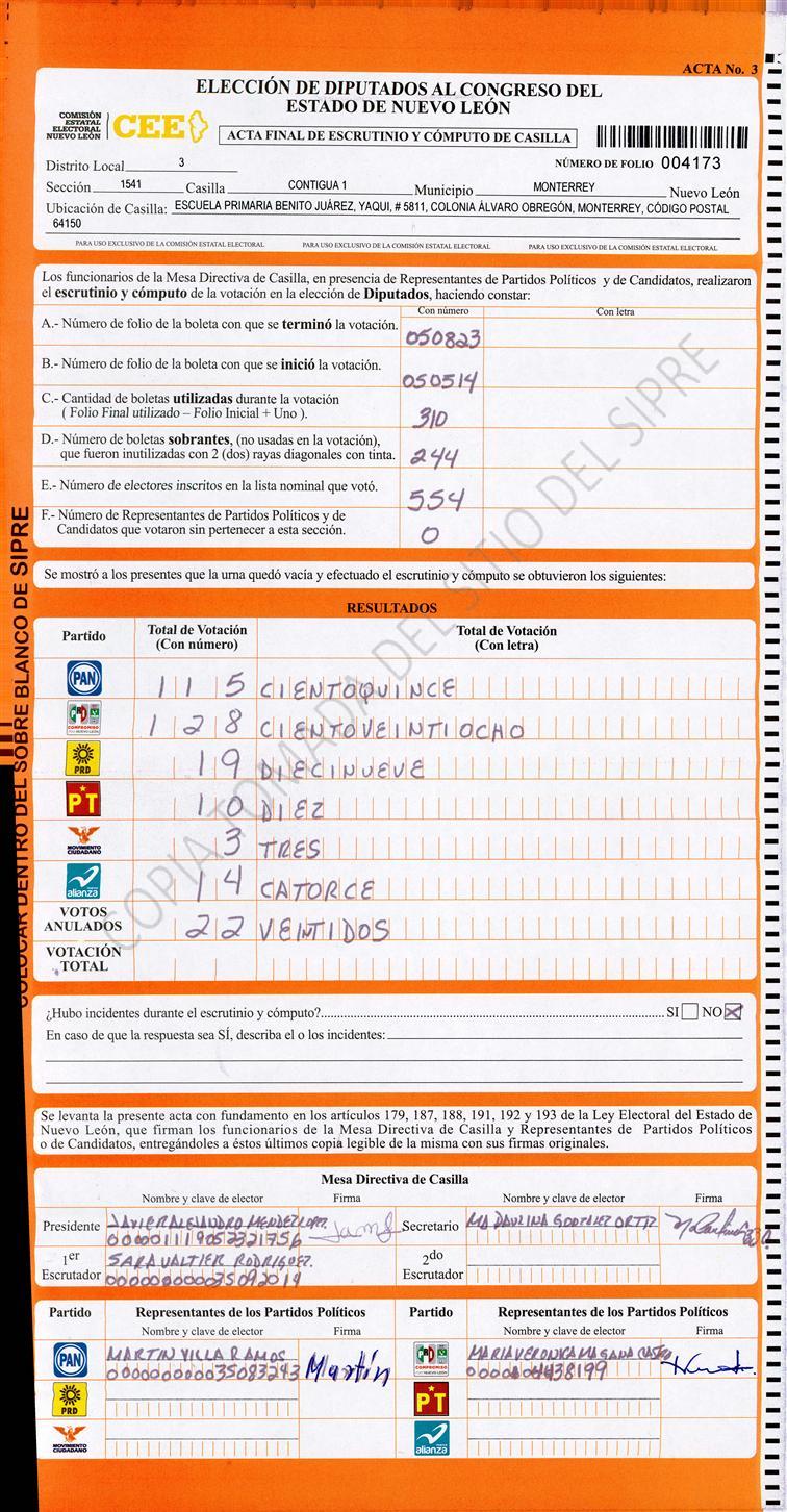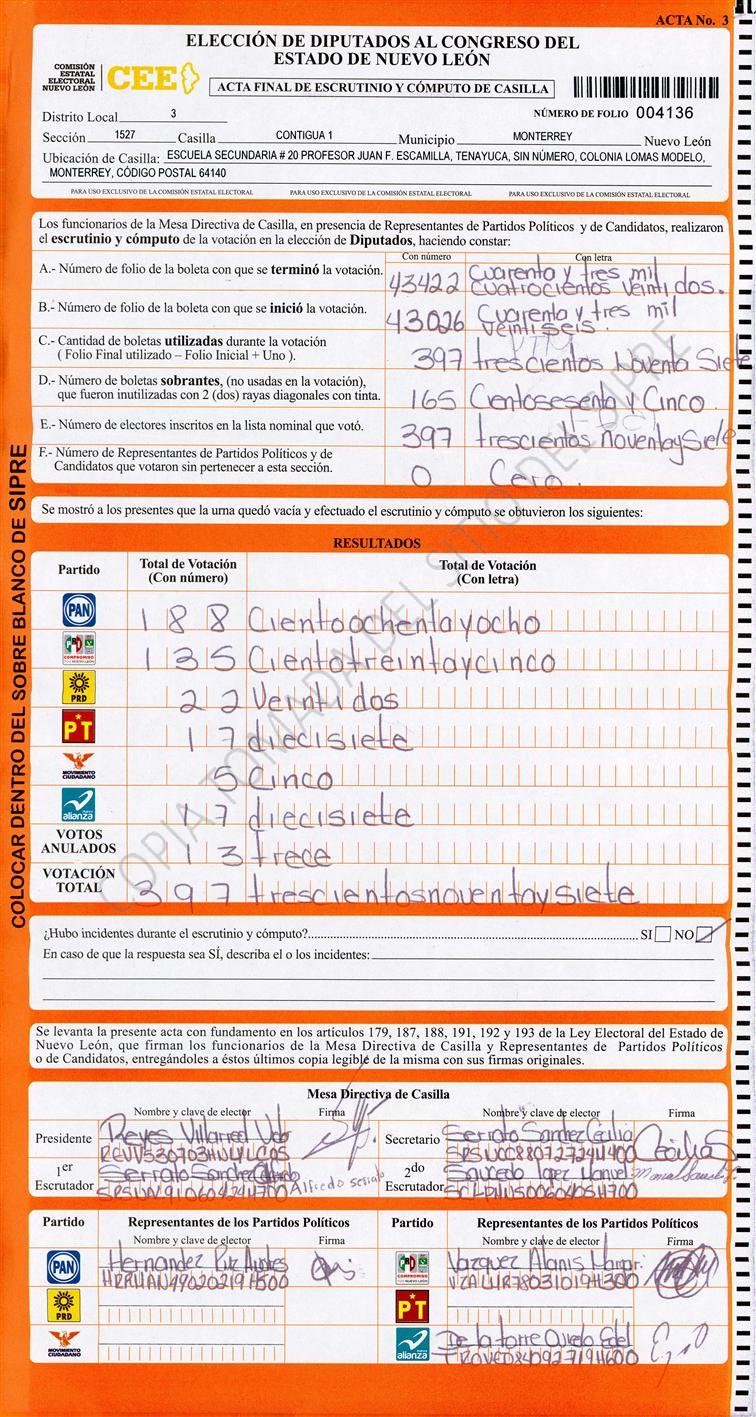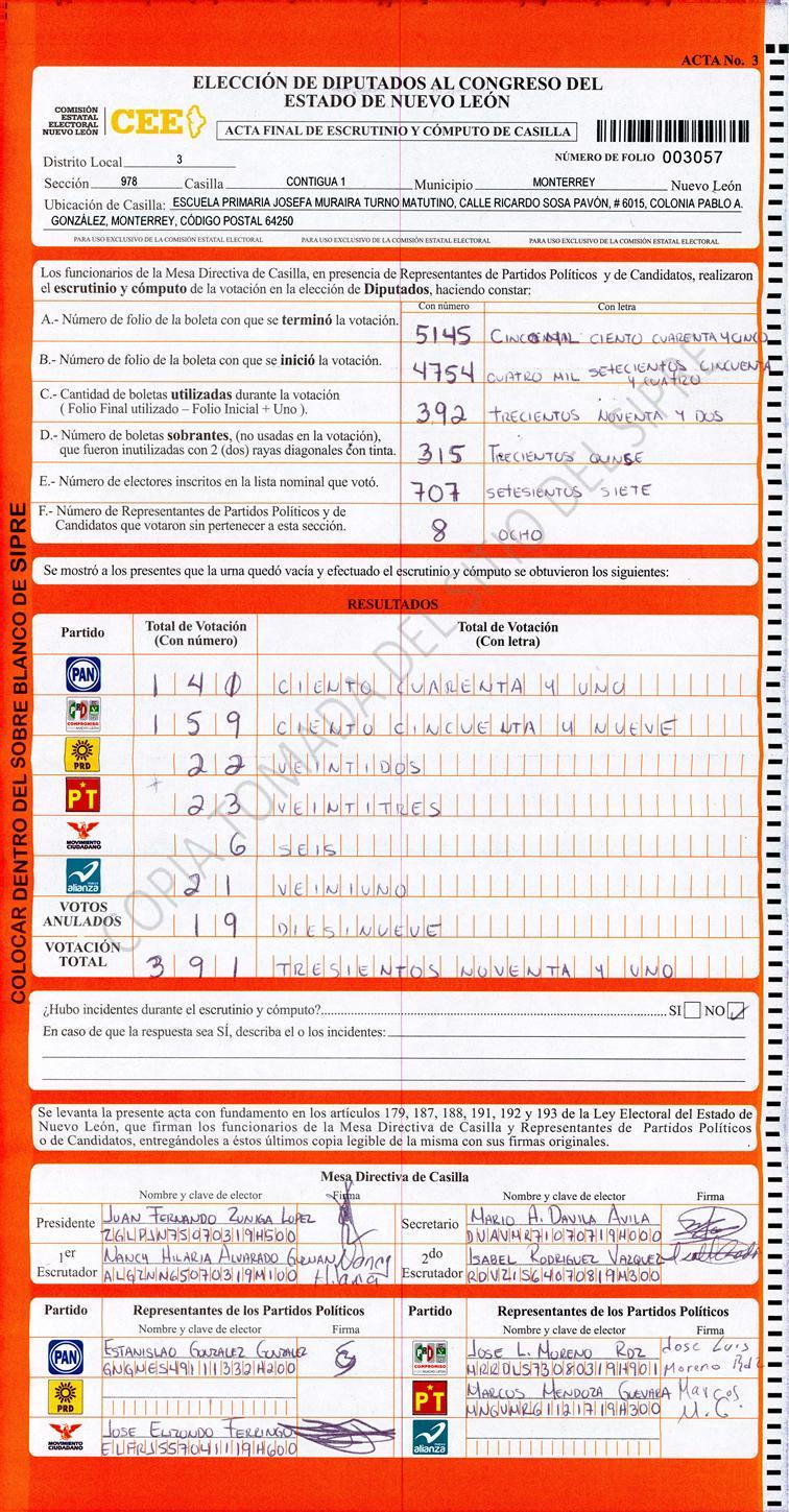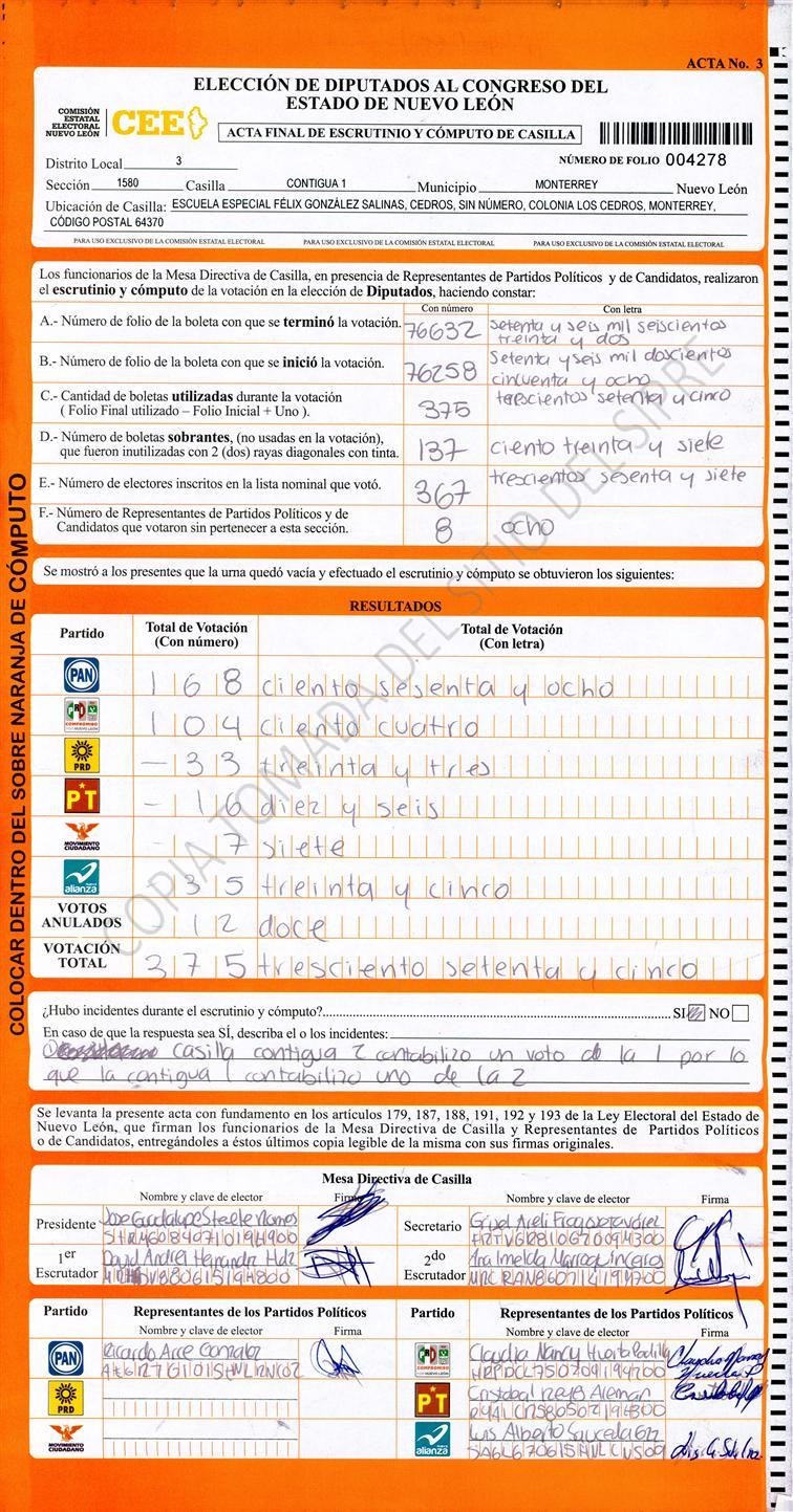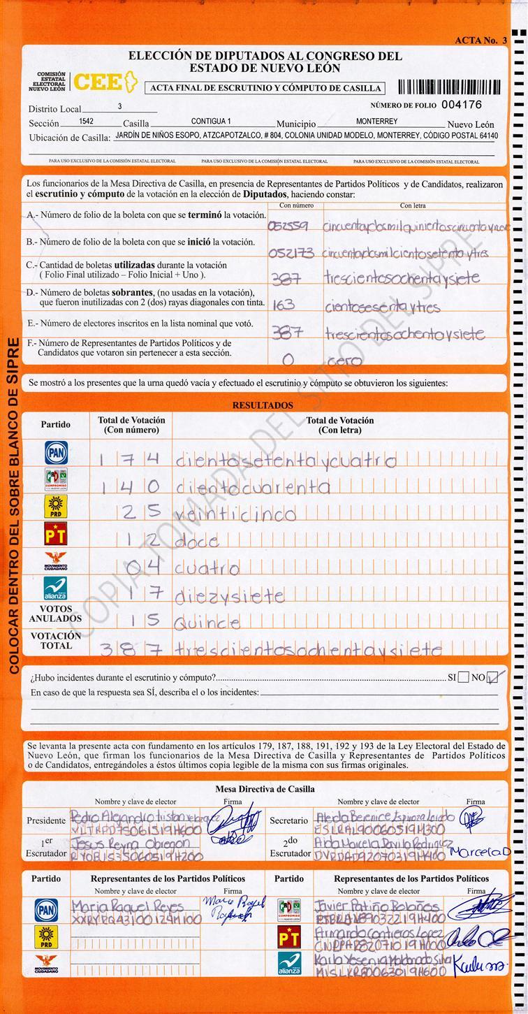 , (8) Copiado Movido , (9) Con Signos Inválidos , (10) Excede Lista Nominal , (11) Otra |