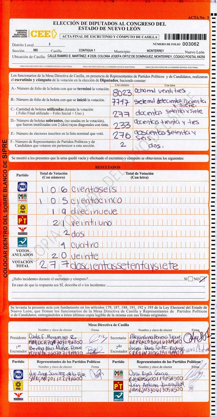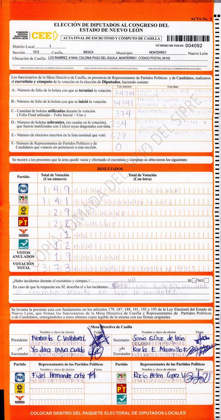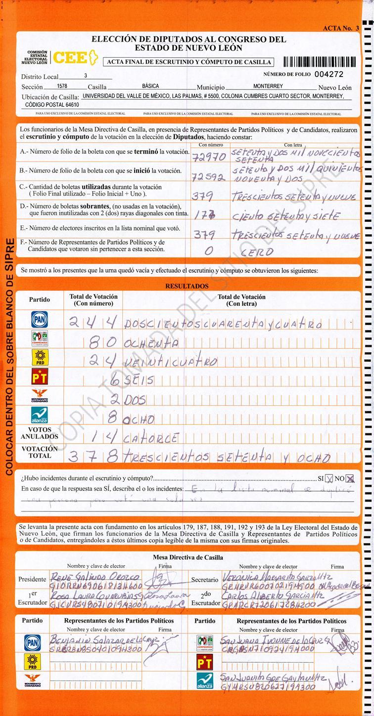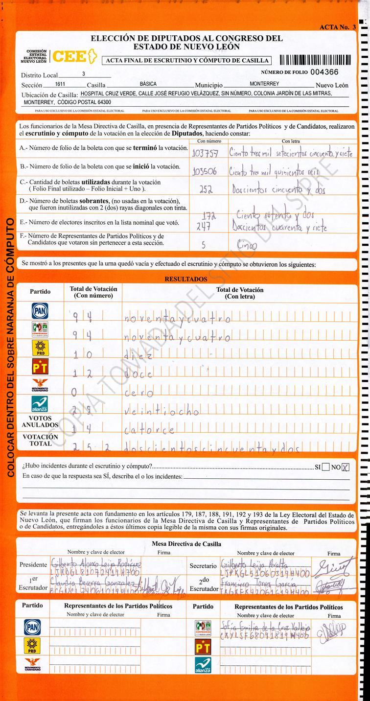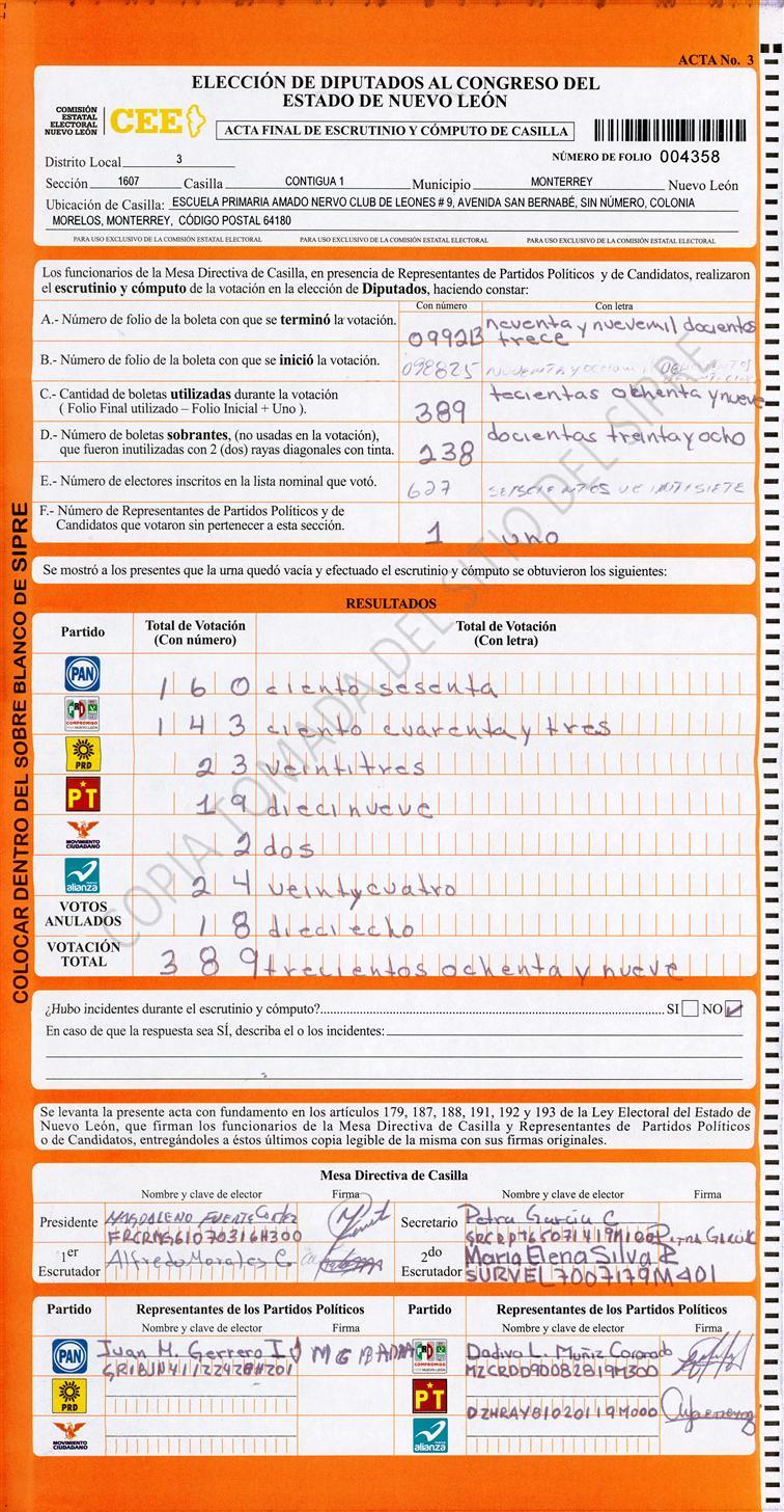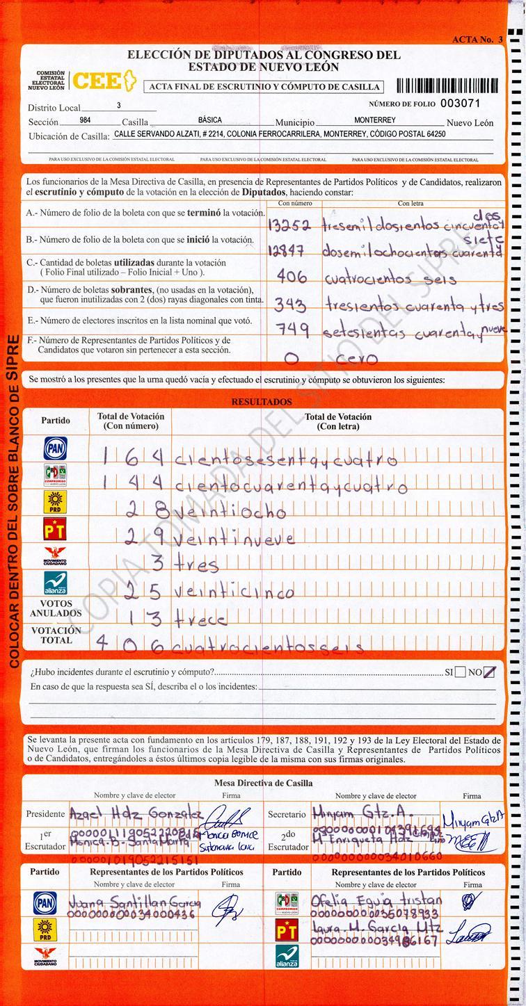 , (8) Copiado Movido , (9) Con Signos Inválidos , (10) Excede Lista Nominal , (11) Otra |