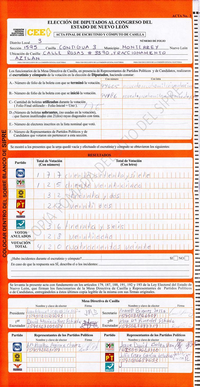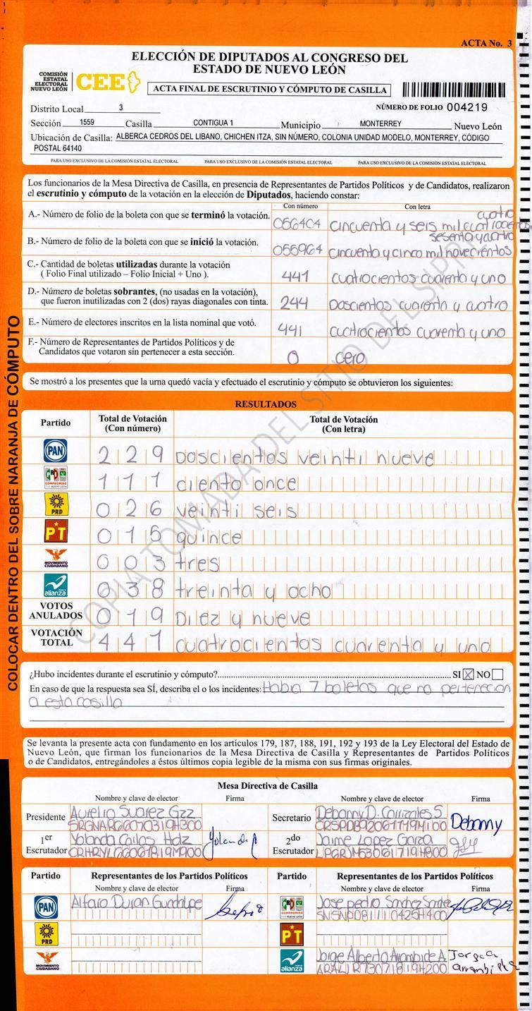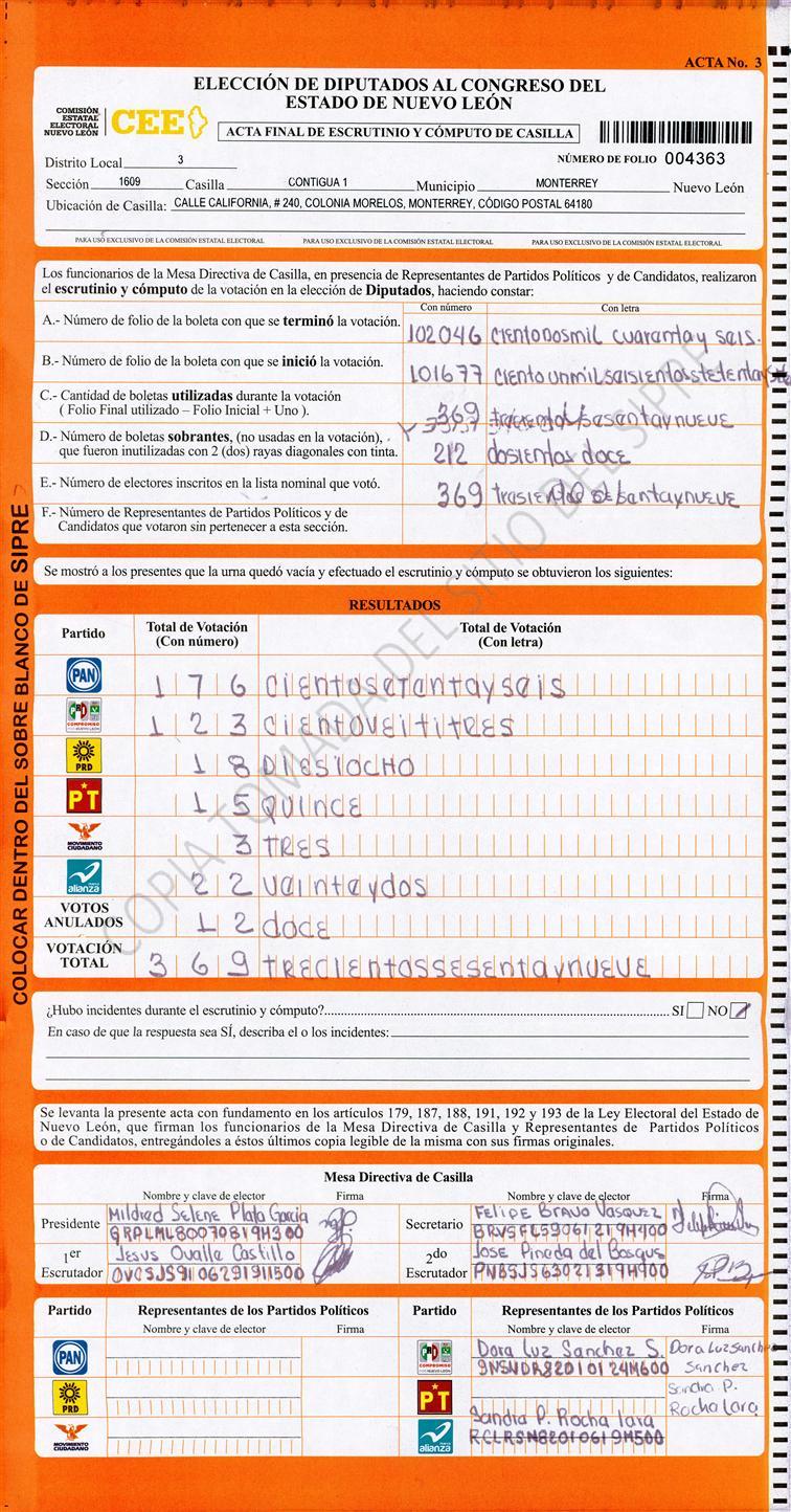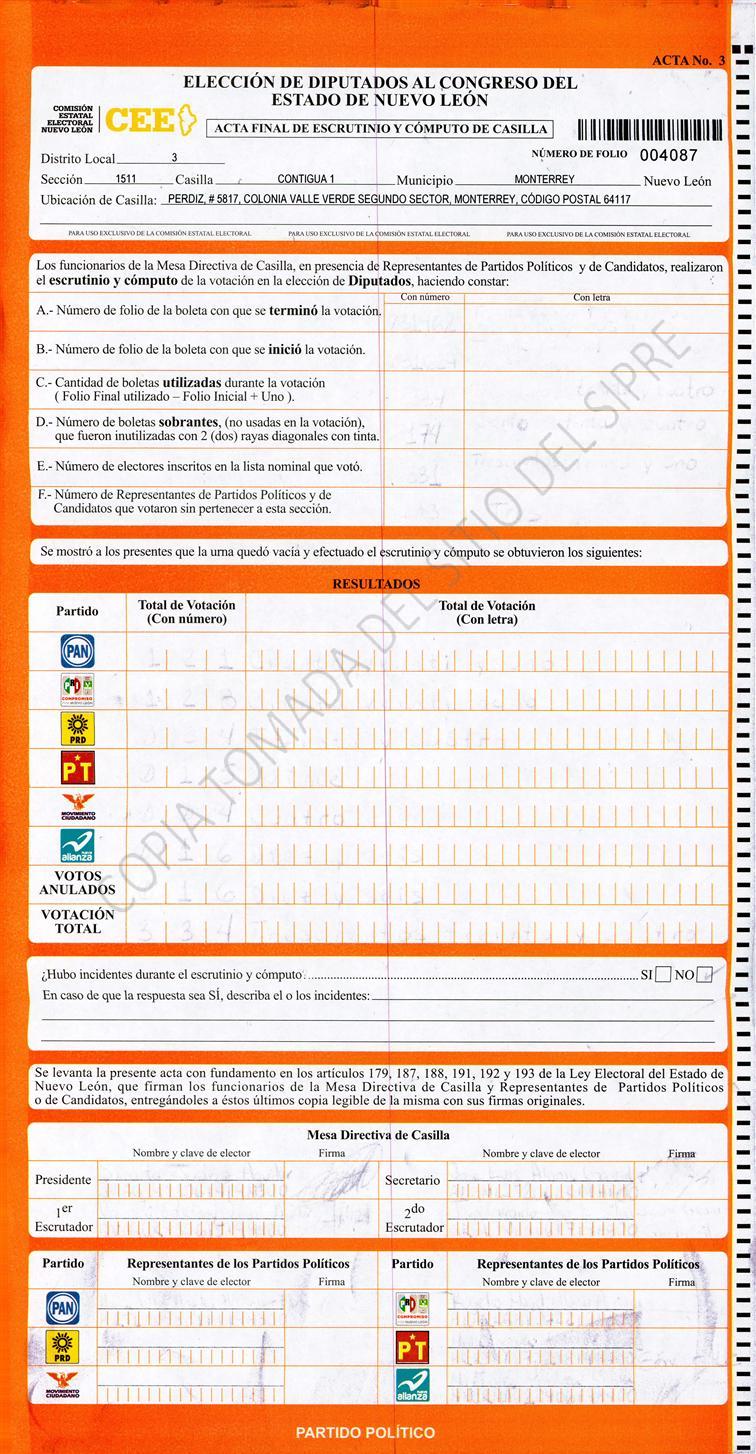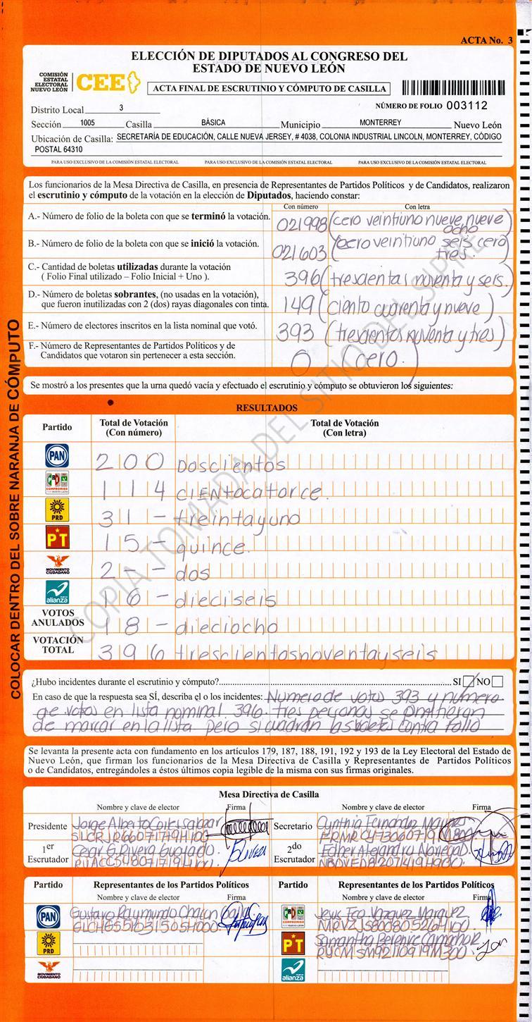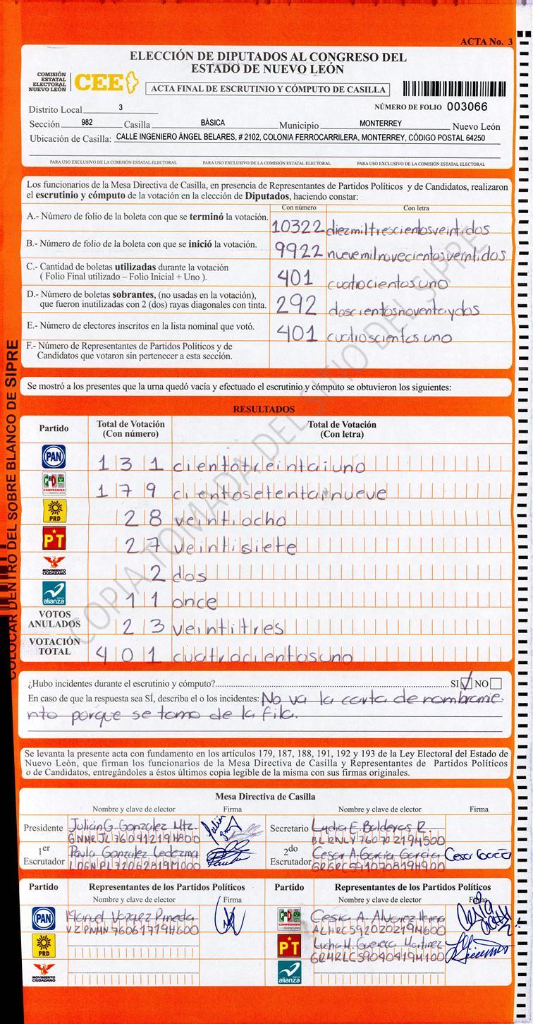 , (8) Copiado Movido , (9) Con Signos Inválidos , (10) Excede Lista Nominal , (11) Otra |