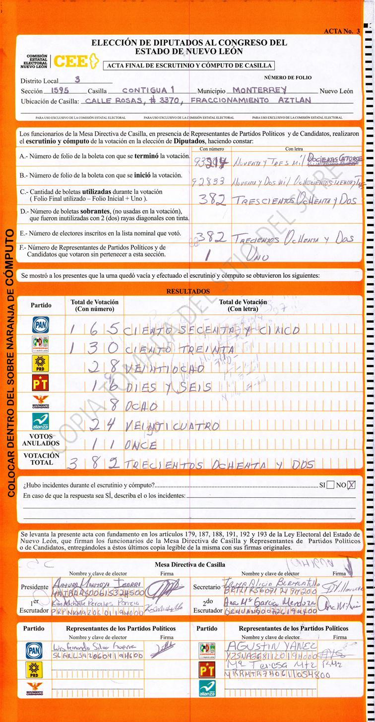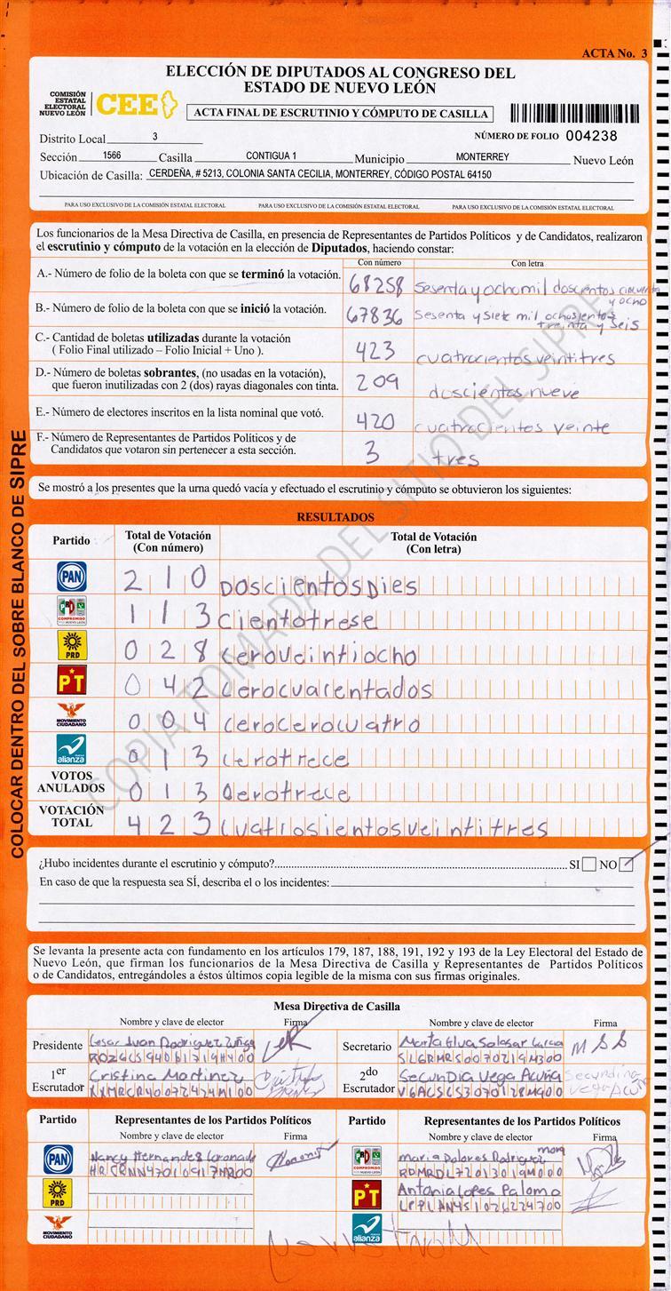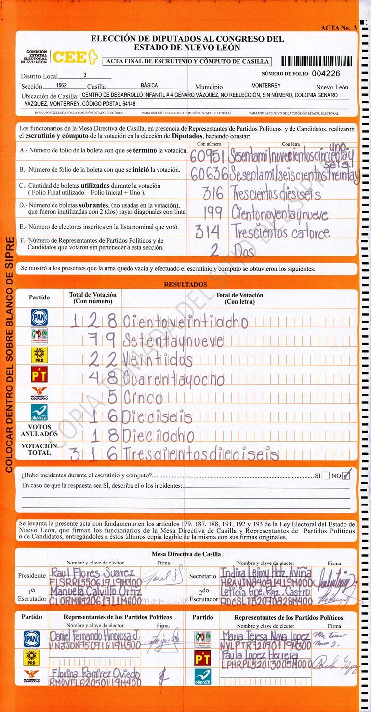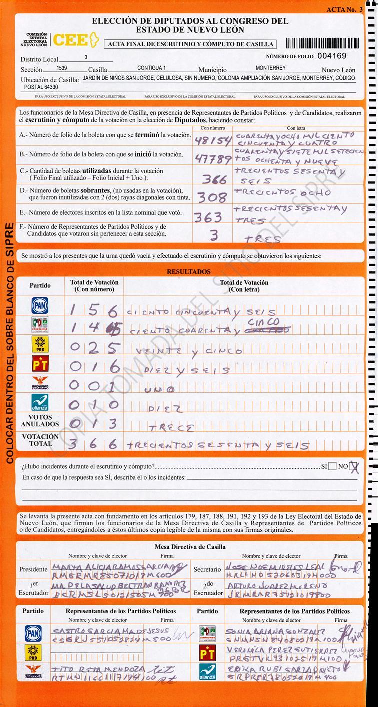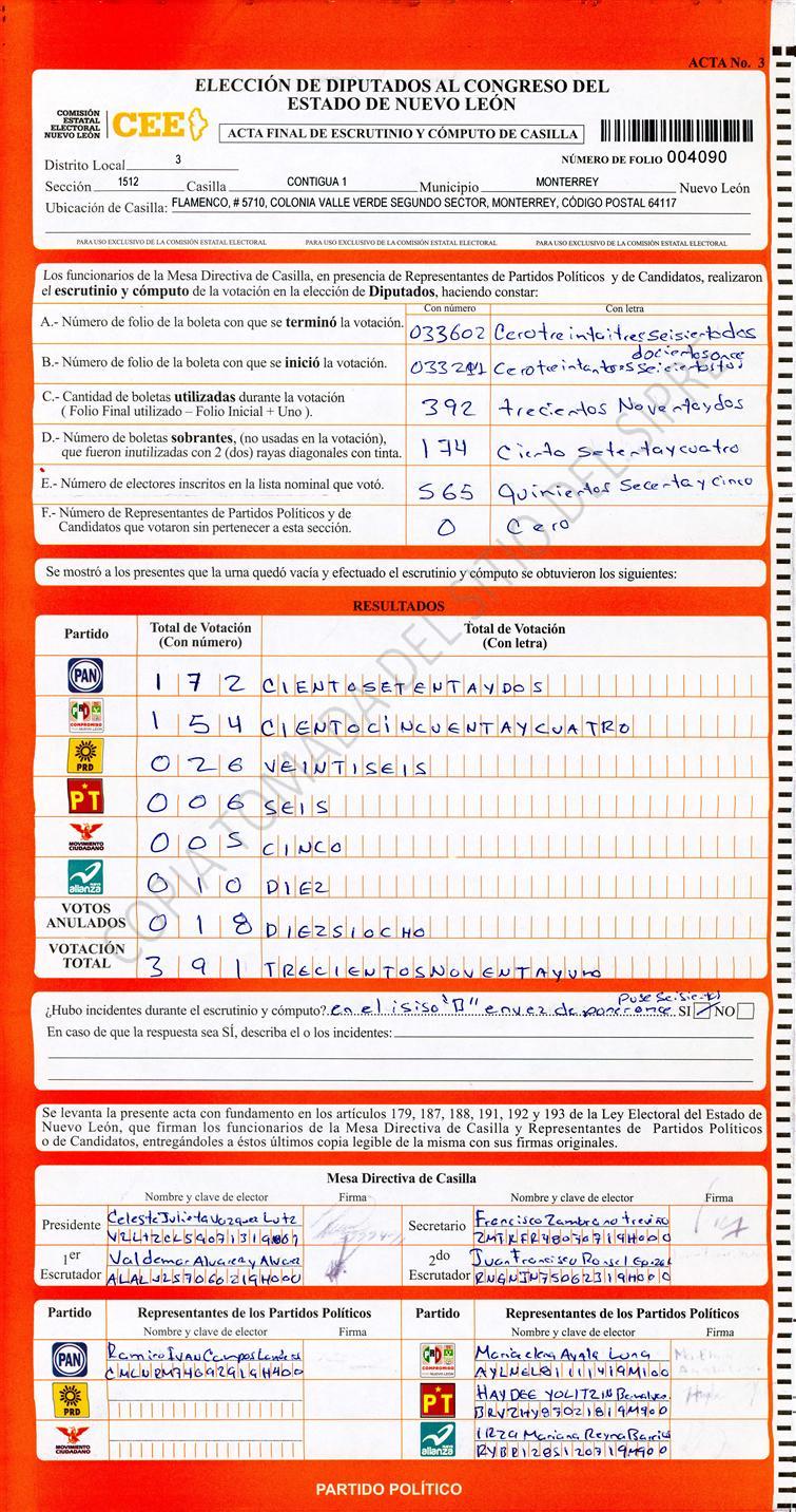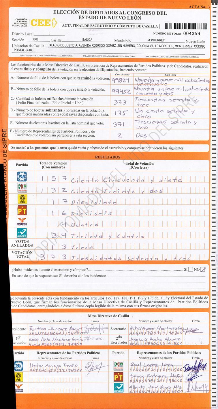 , (8) Copiado Movido , (9) Con Signos Inválidos , (10) Excede Lista Nominal , (11) Otra |