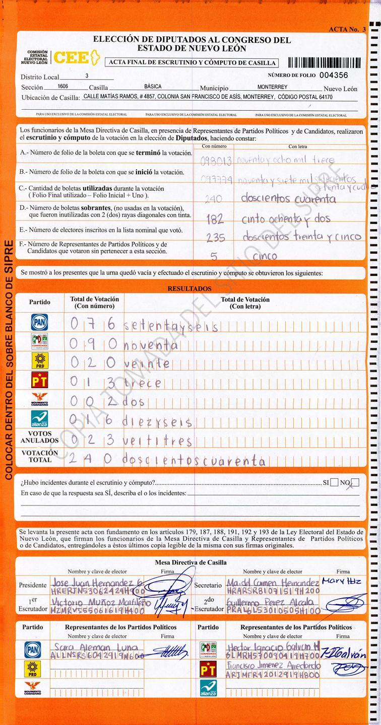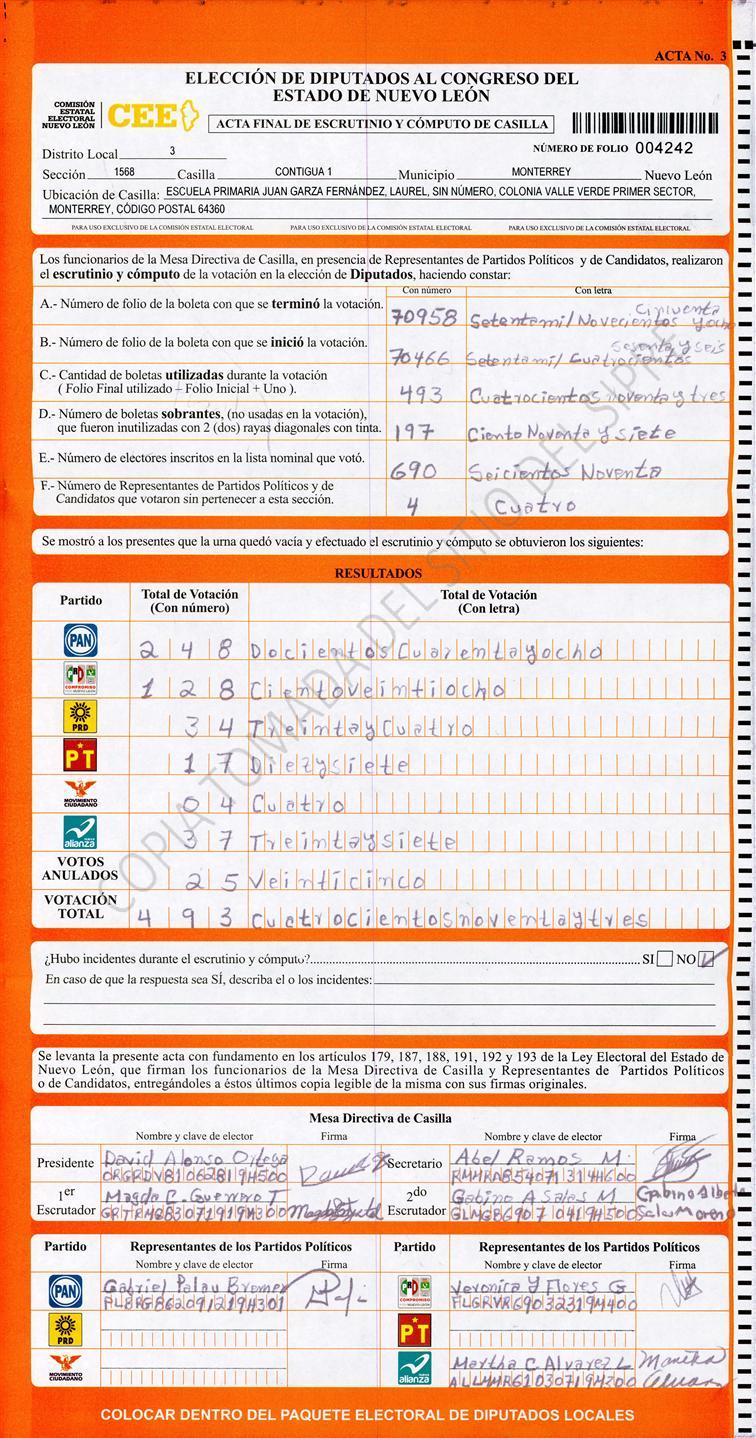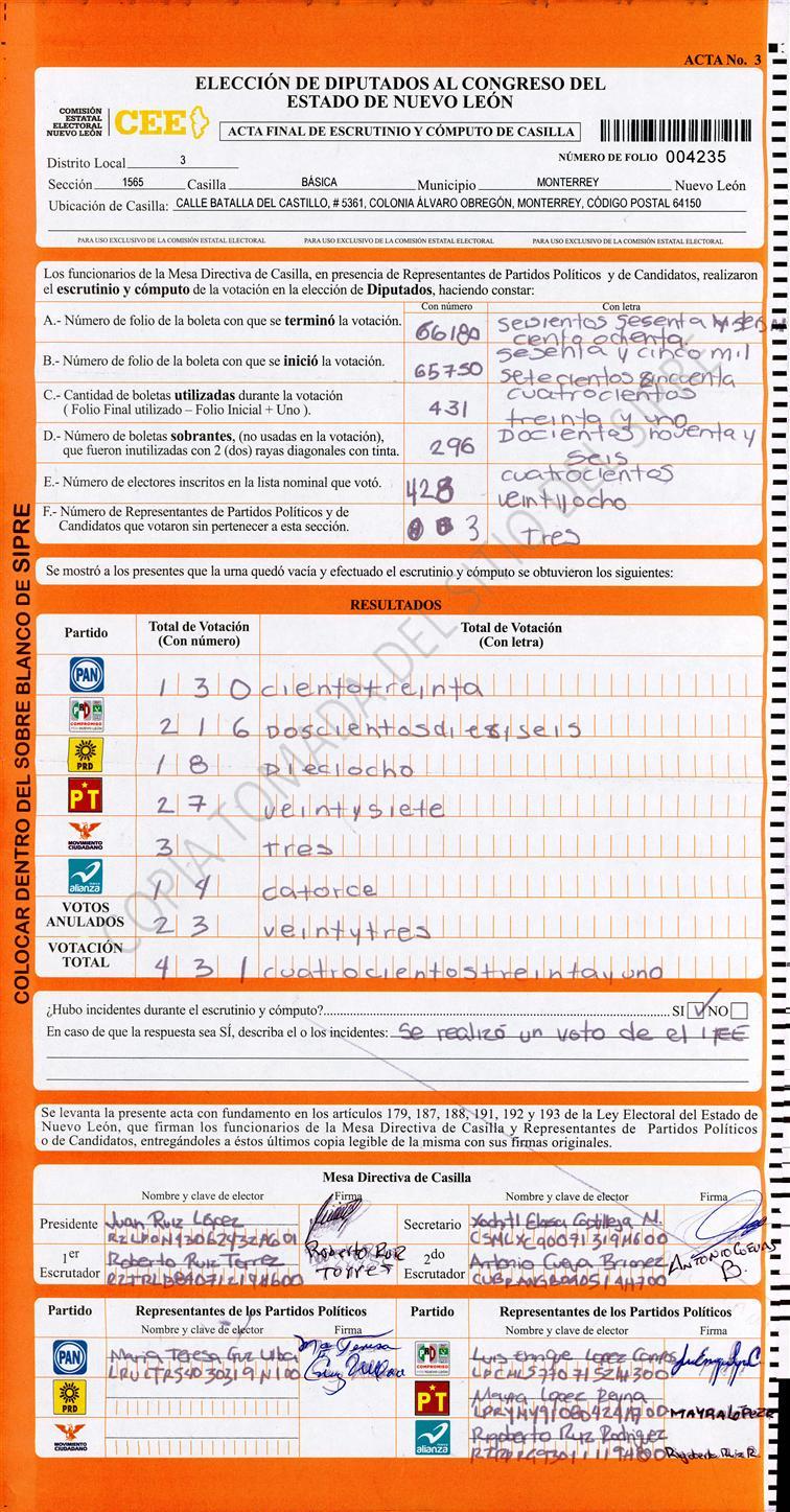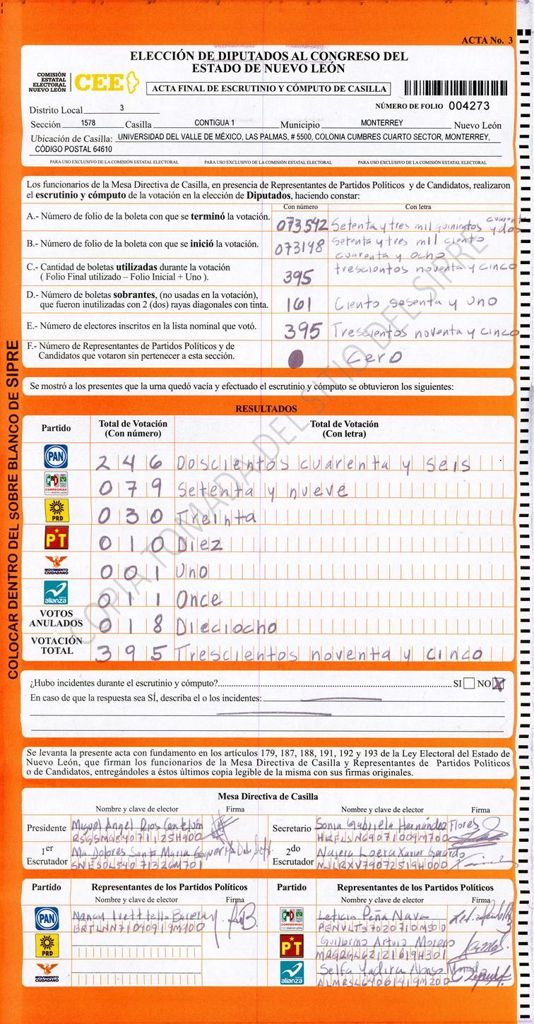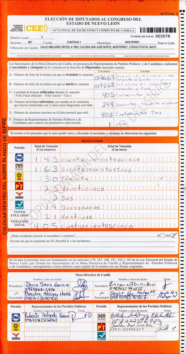 , (8) Copiado Movido , (9) Con Signos Inválidos , (10) Excede Lista Nominal , (11) Otra |