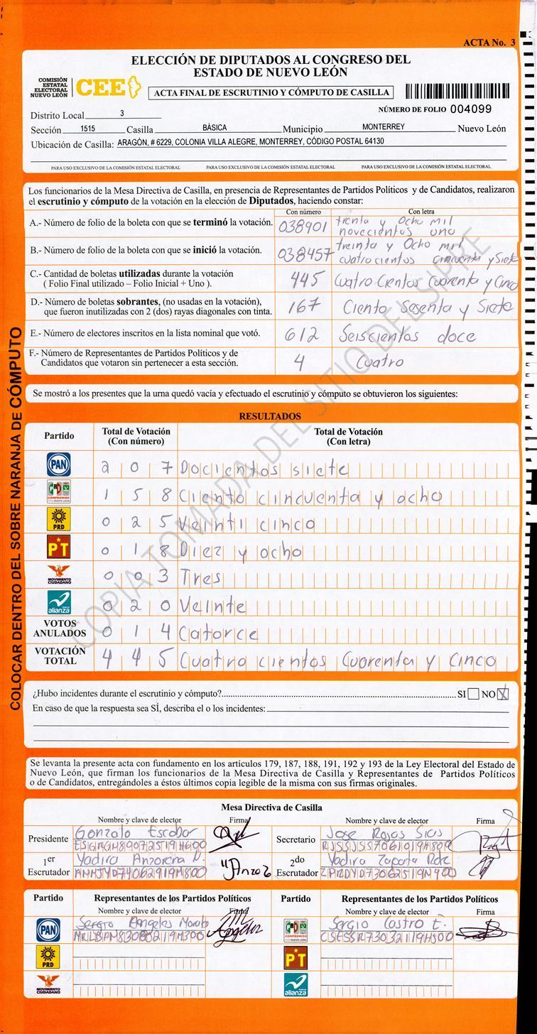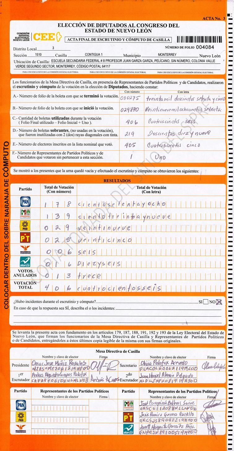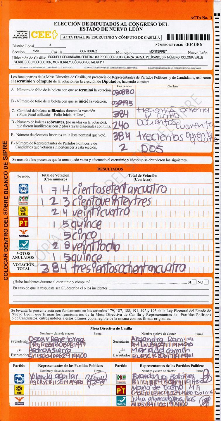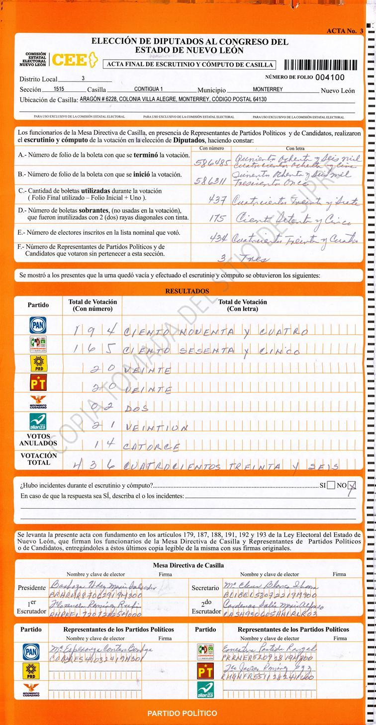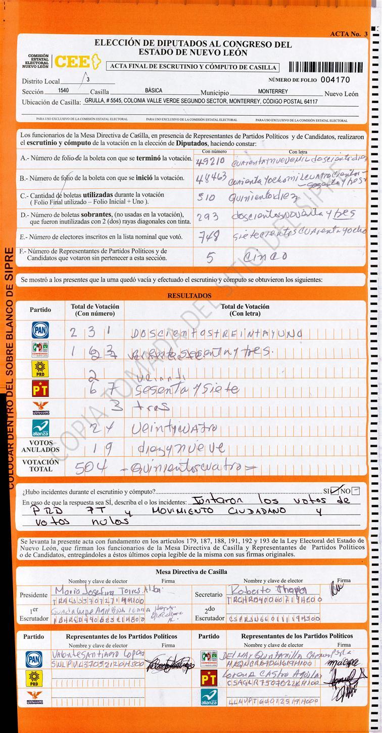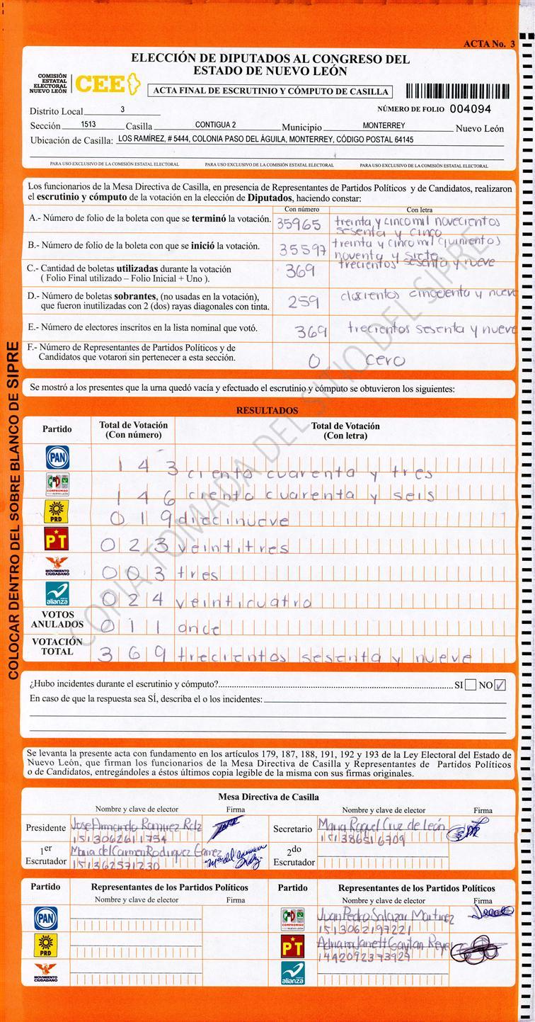 , (8) Copiado Movido , (9) Con Signos Inválidos , (10) Excede Lista Nominal , (11) Otra |