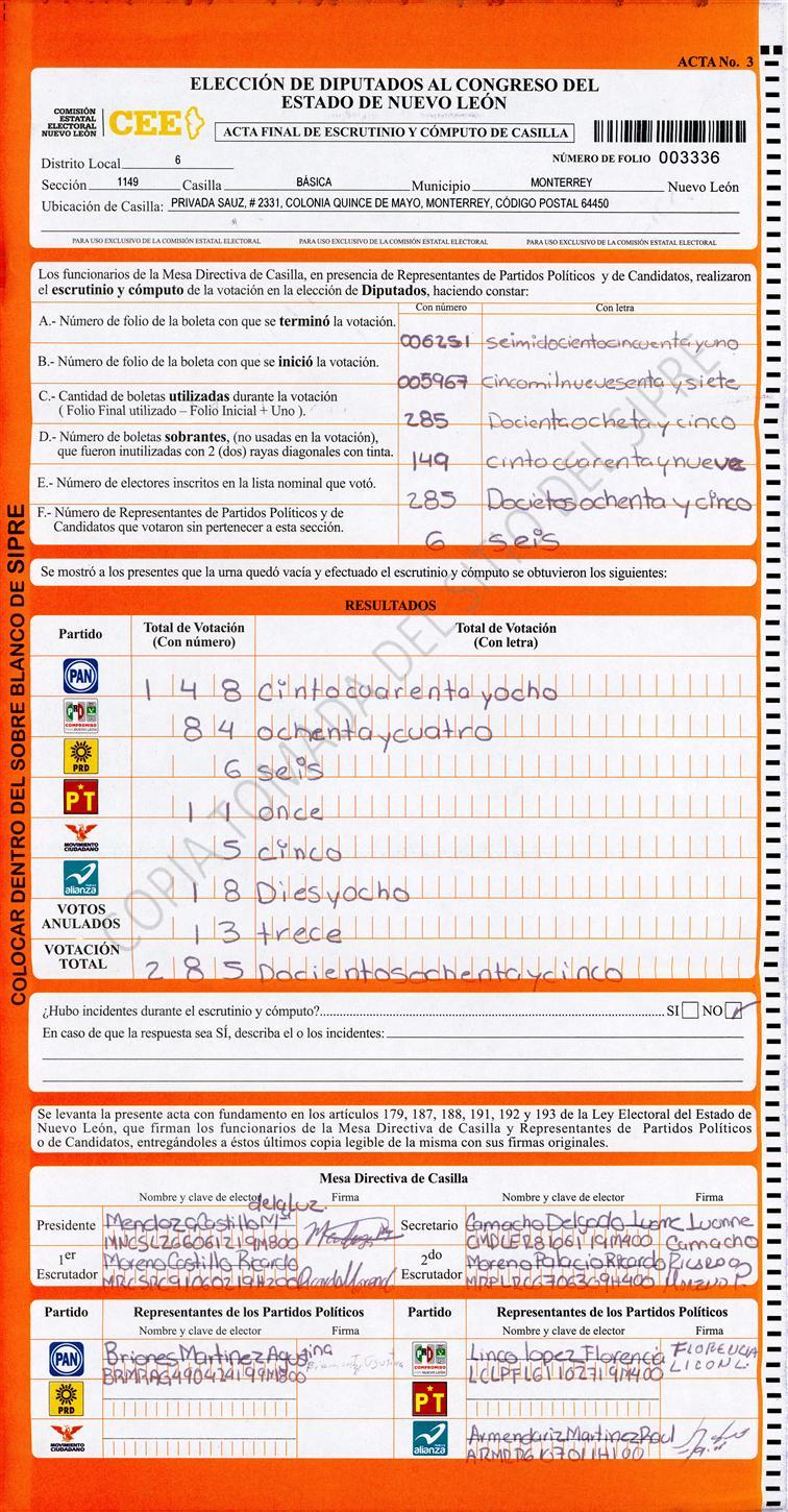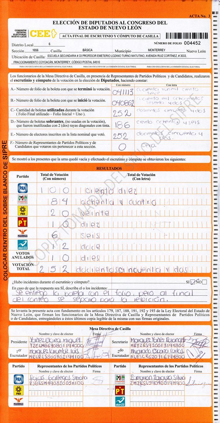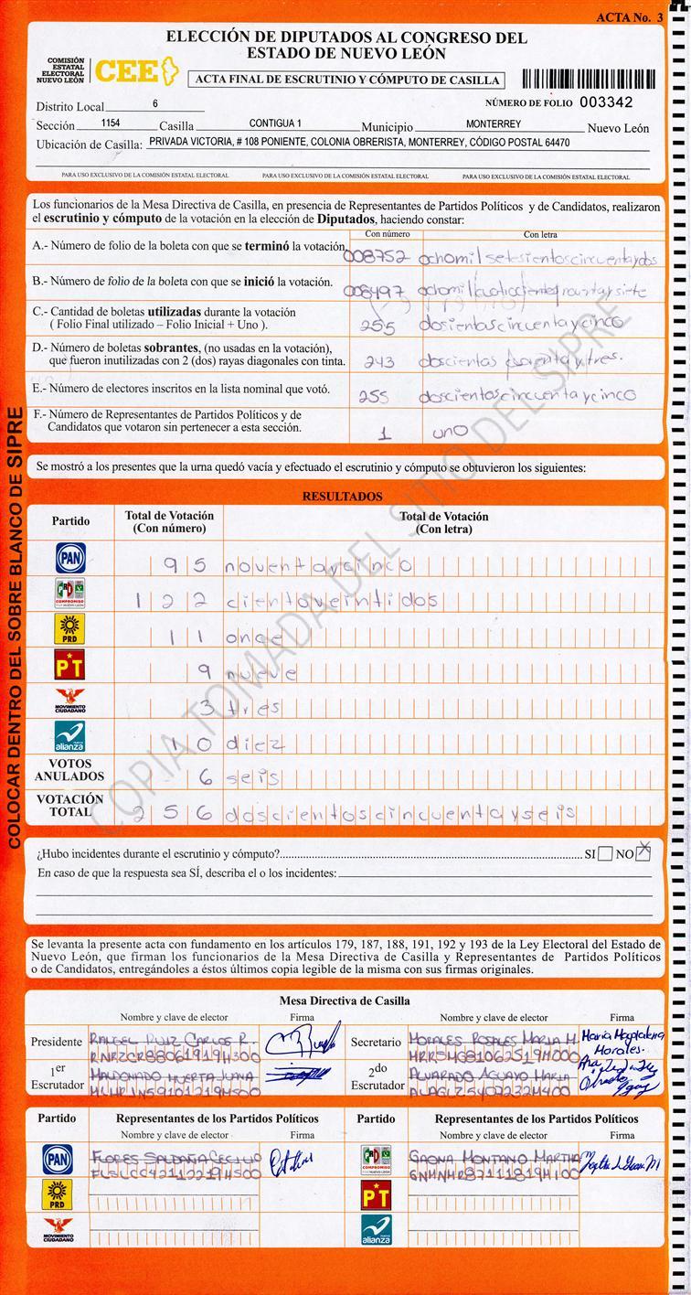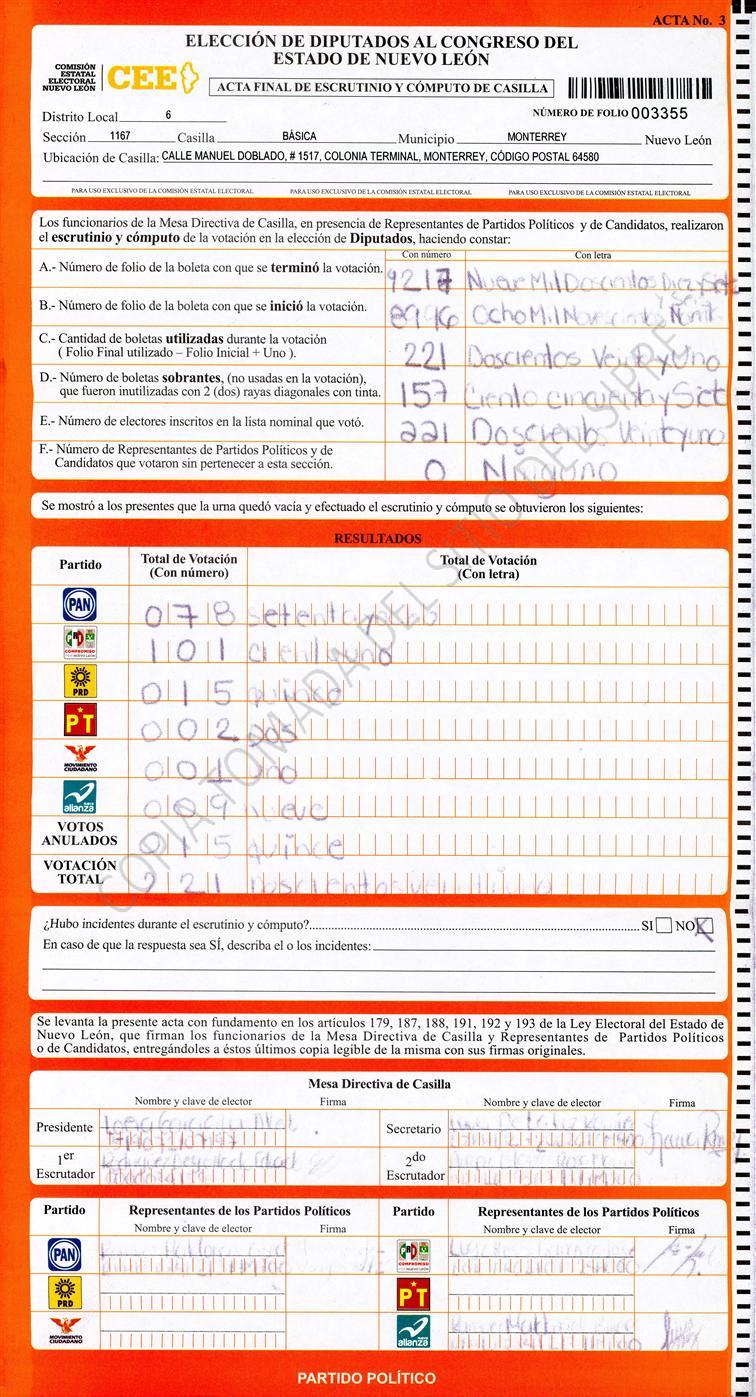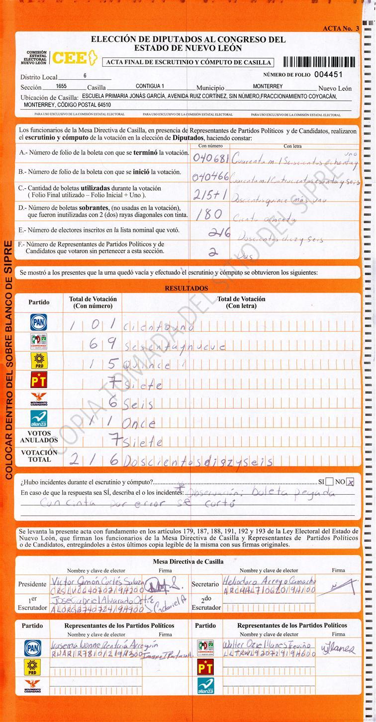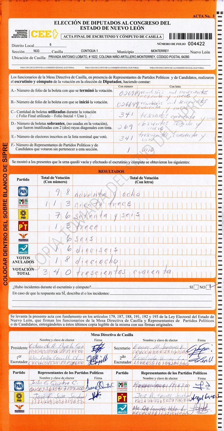 , (8) Copiado Movido , (9) Con Signos Inválidos , (10) Excede Lista Nominal , (11) Otra |