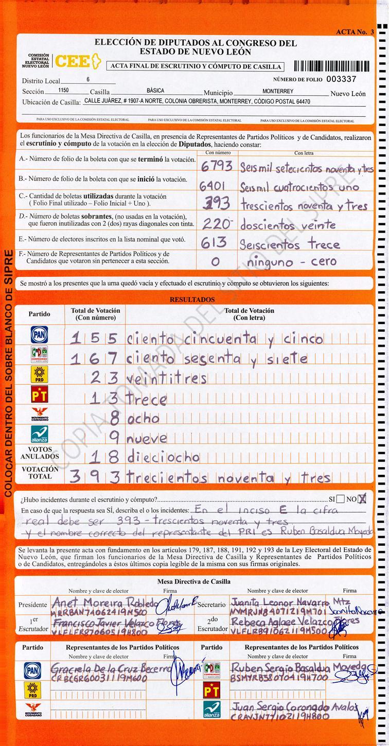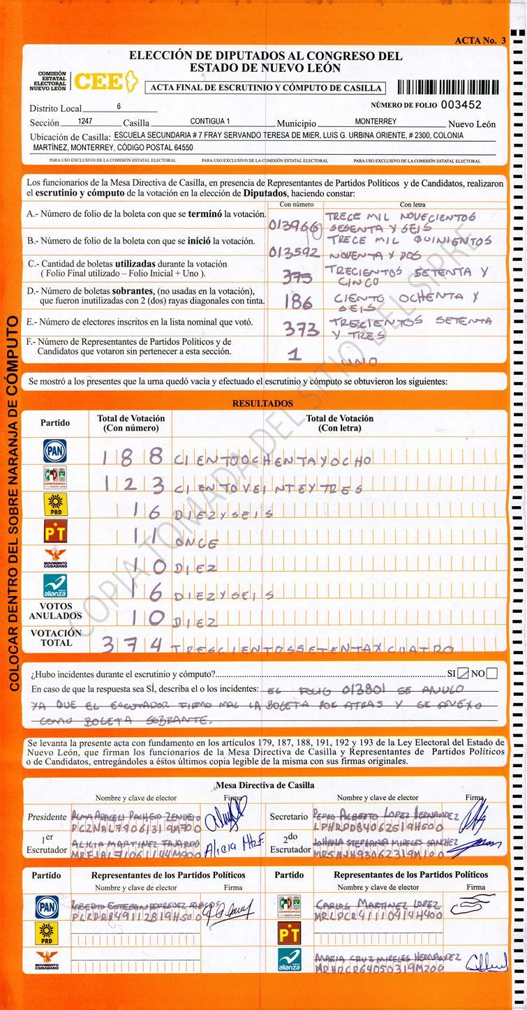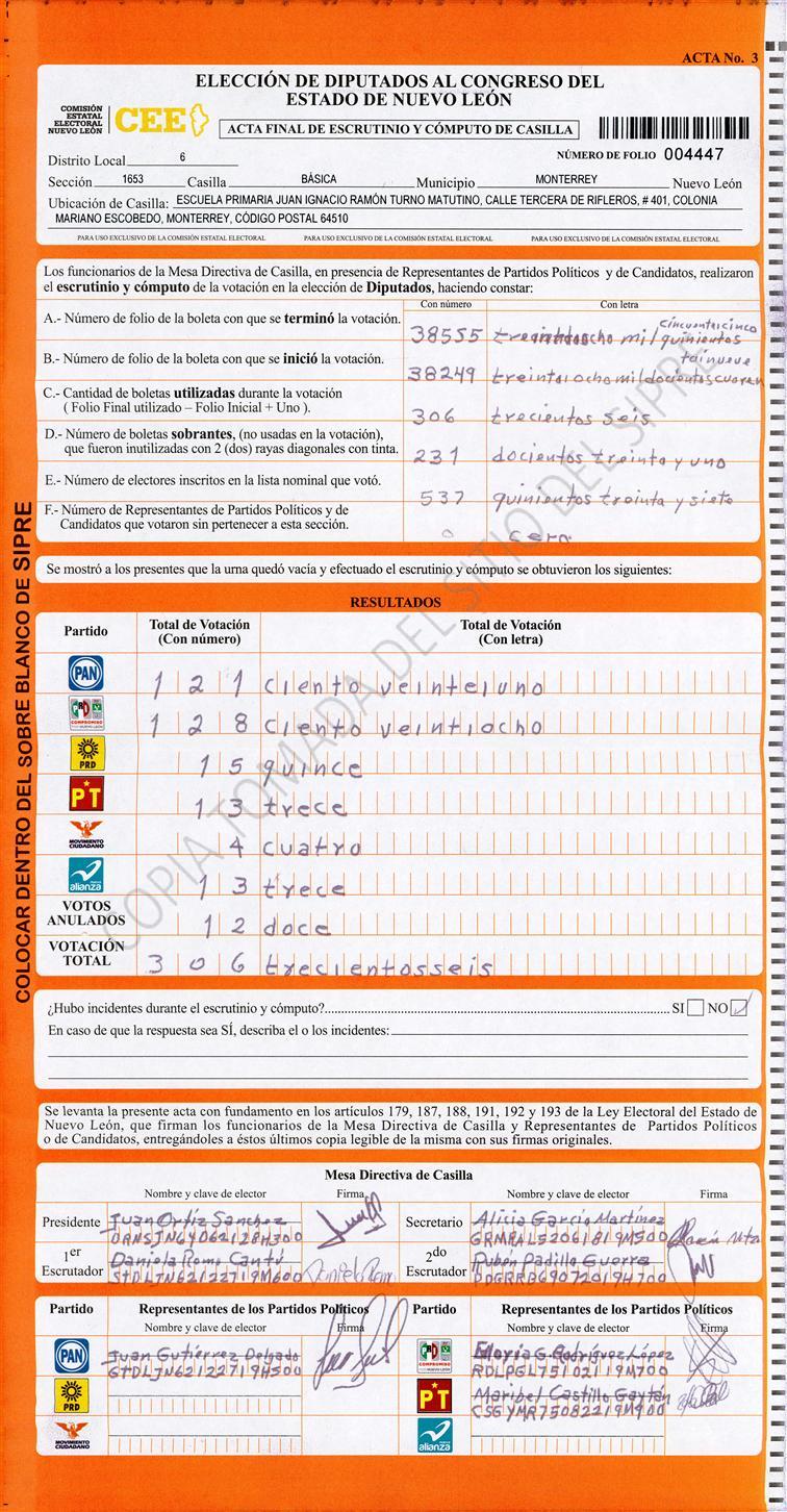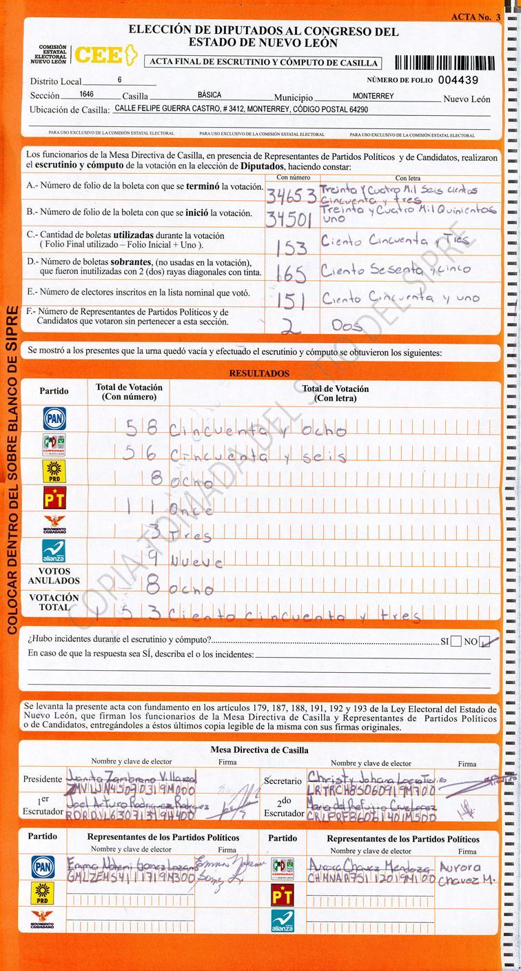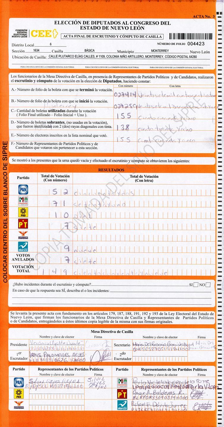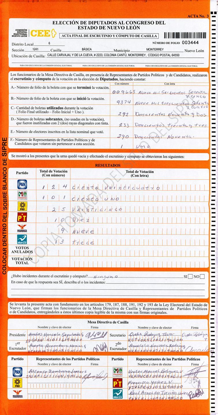 , (8) Copiado Movido , (9) Con Signos Inválidos , (10) Excede Lista Nominal , (11) Otra |