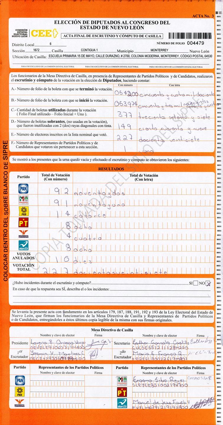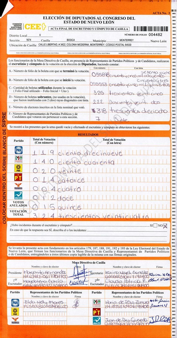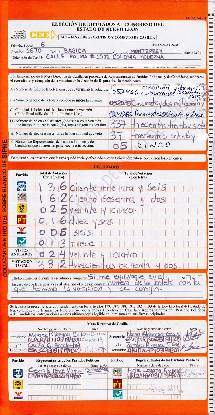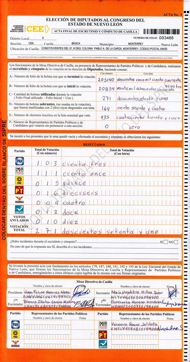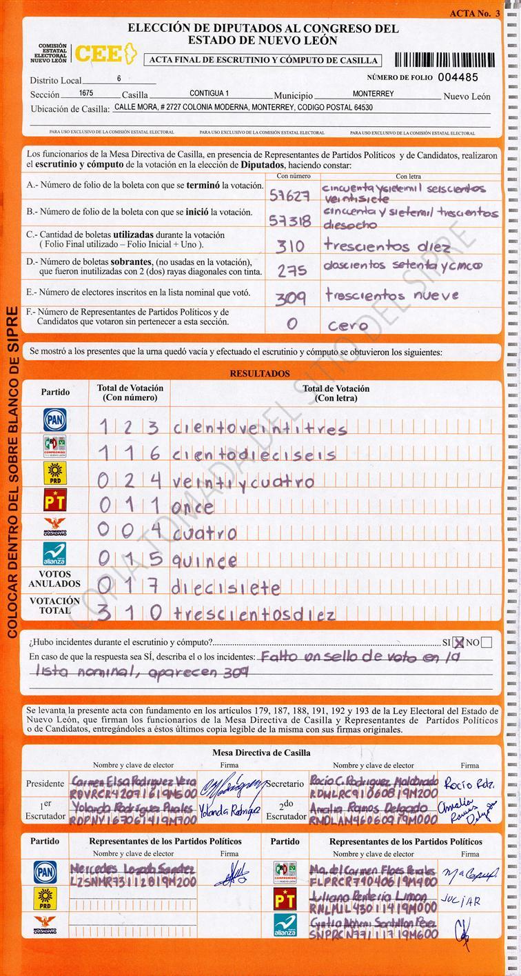 , (8) Copiado Movido , (9) Con Signos Inválidos , (10) Excede Lista Nominal , (11) Otra |