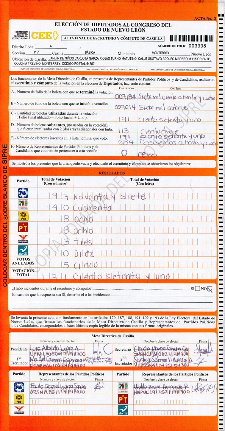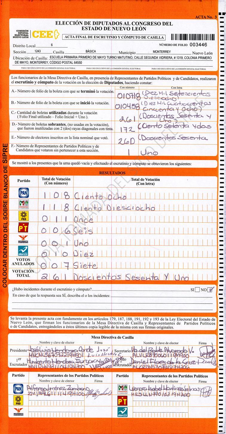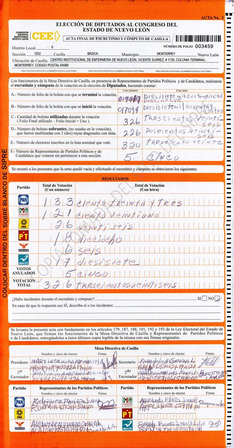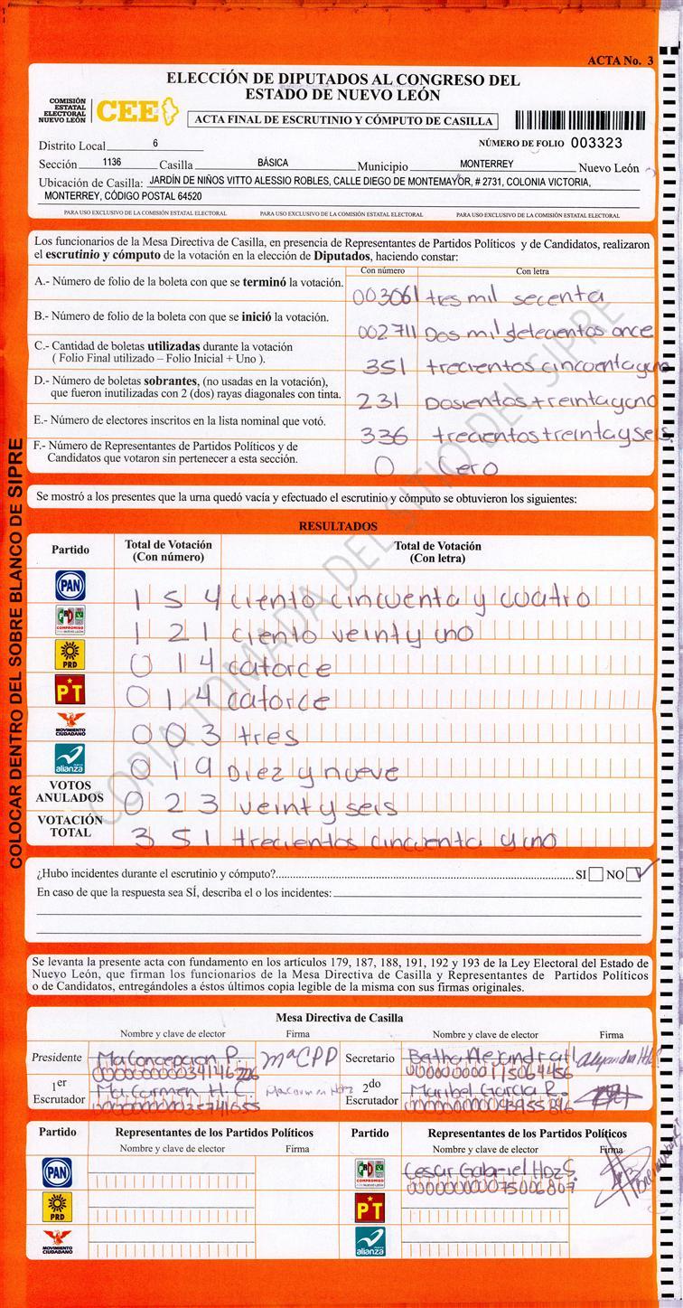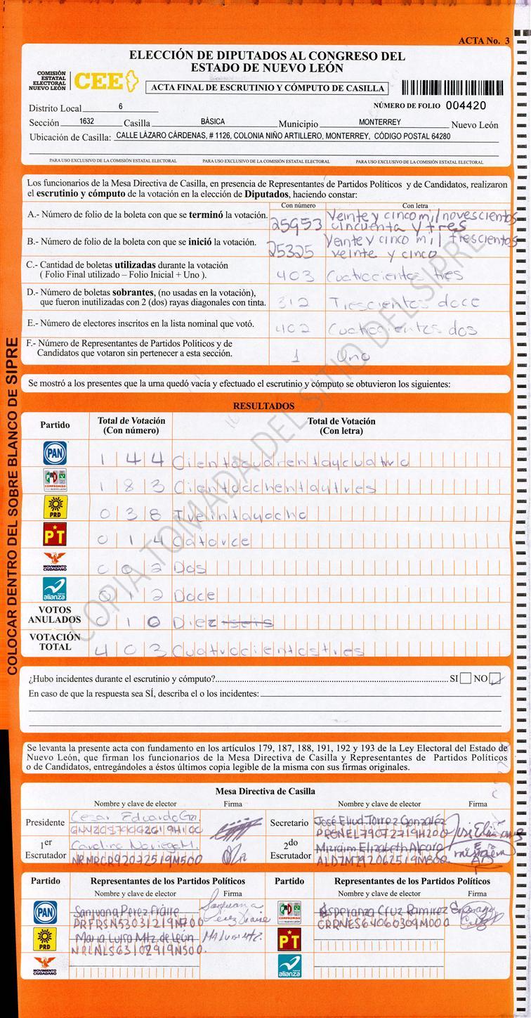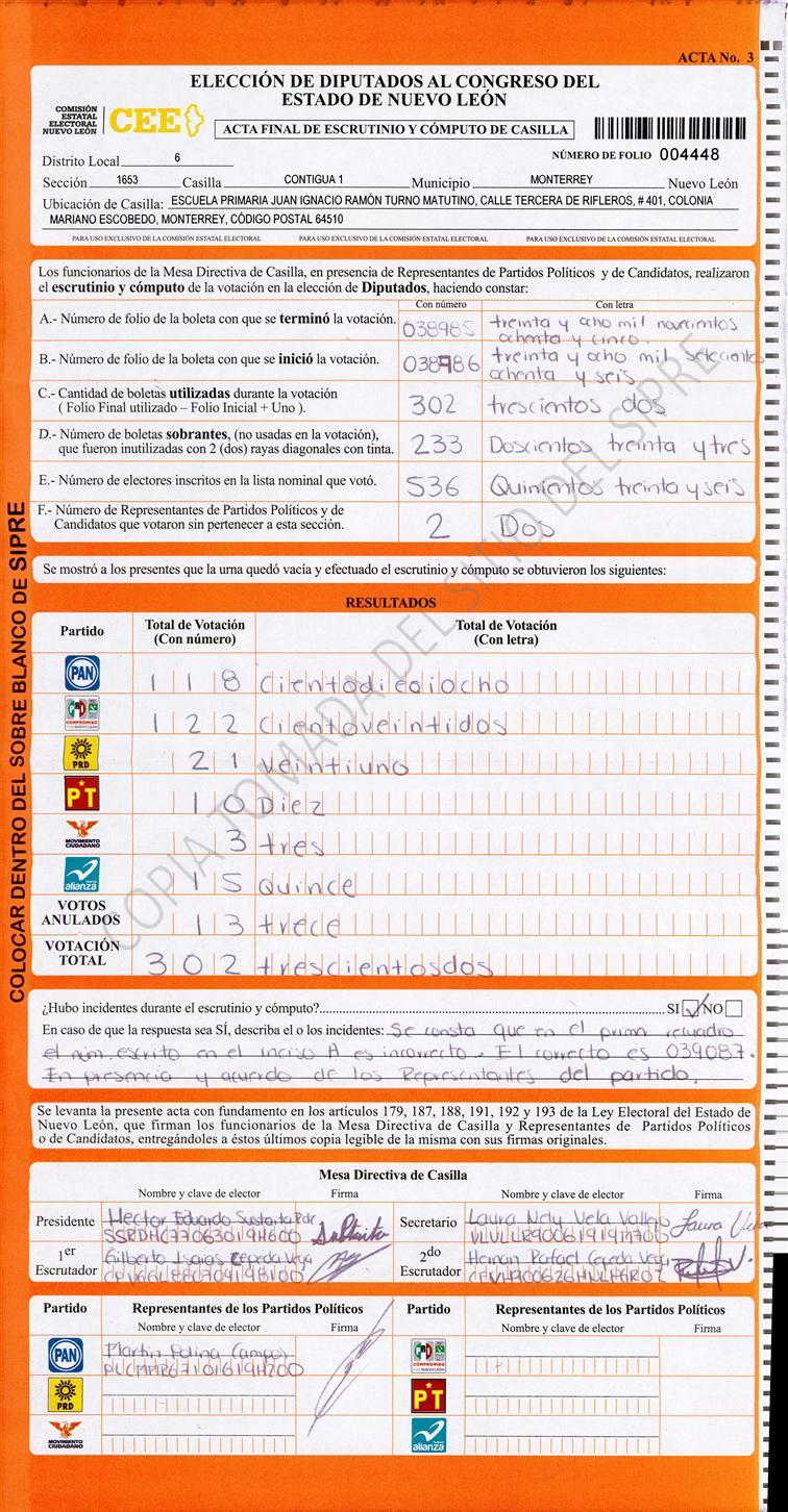 , (8) Copiado Movido , (9) Con Signos Inválidos , (10) Excede Lista Nominal , (11) Otra |