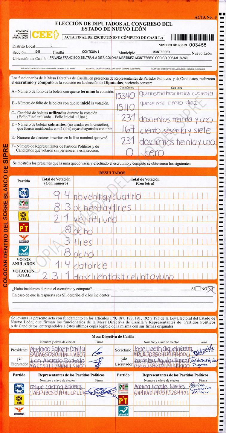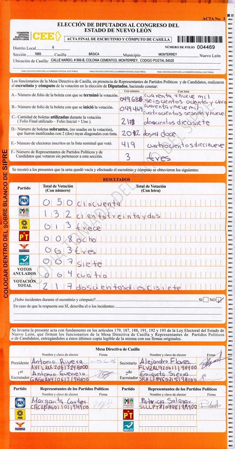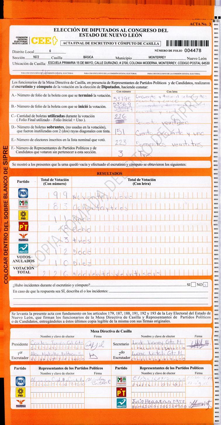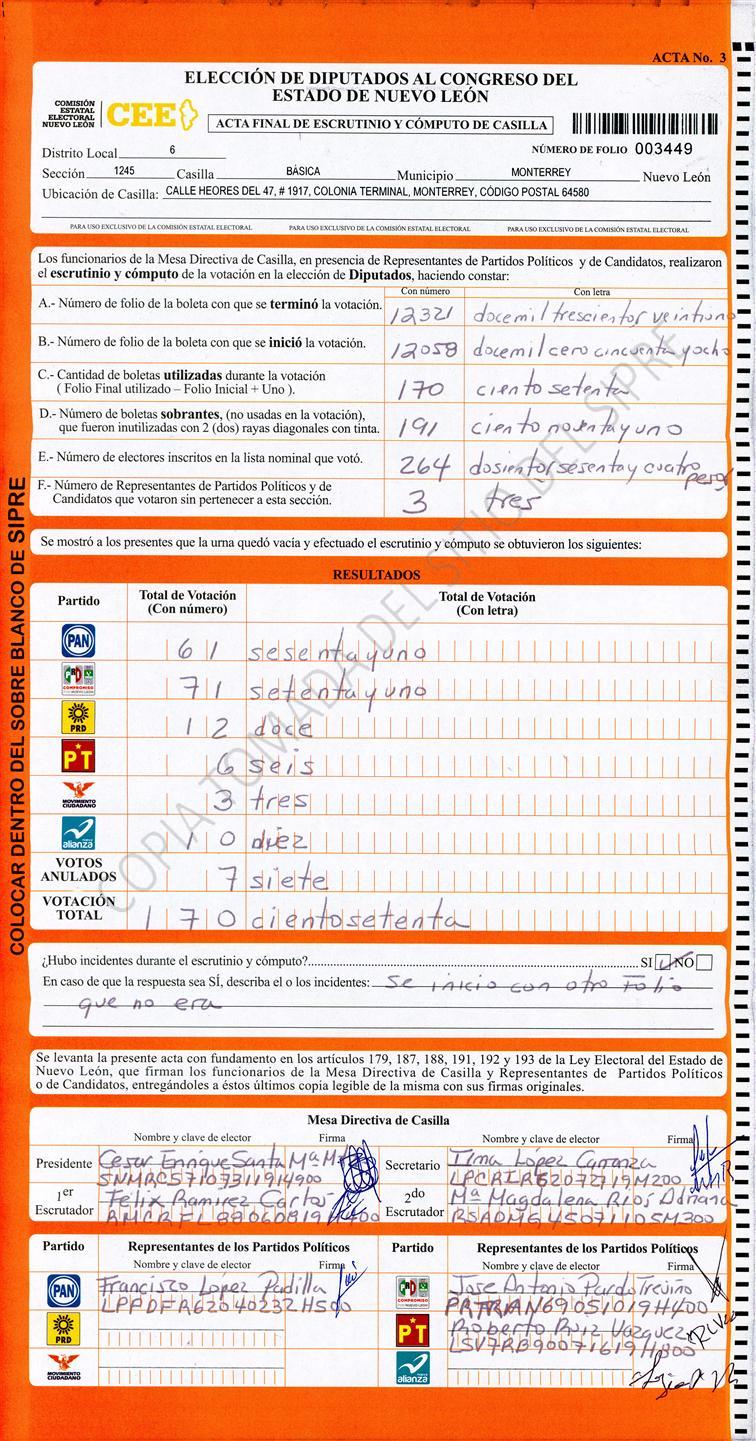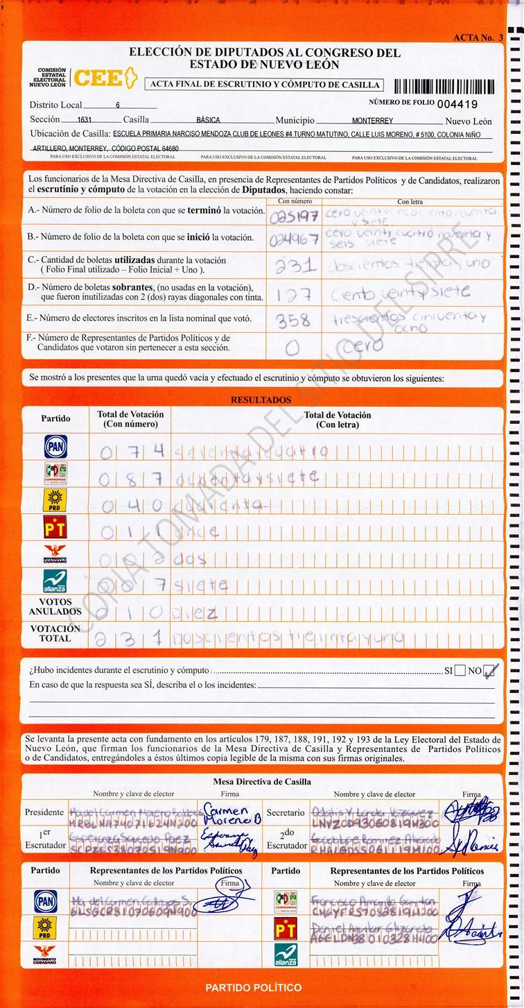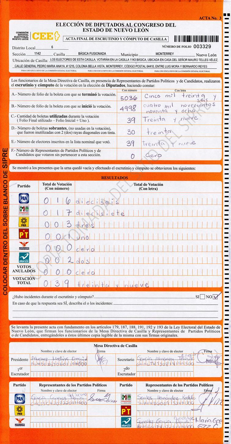 , (8) Copiado Movido , (9) Con Signos Inválidos , (10) Excede Lista Nominal , (11) Otra |