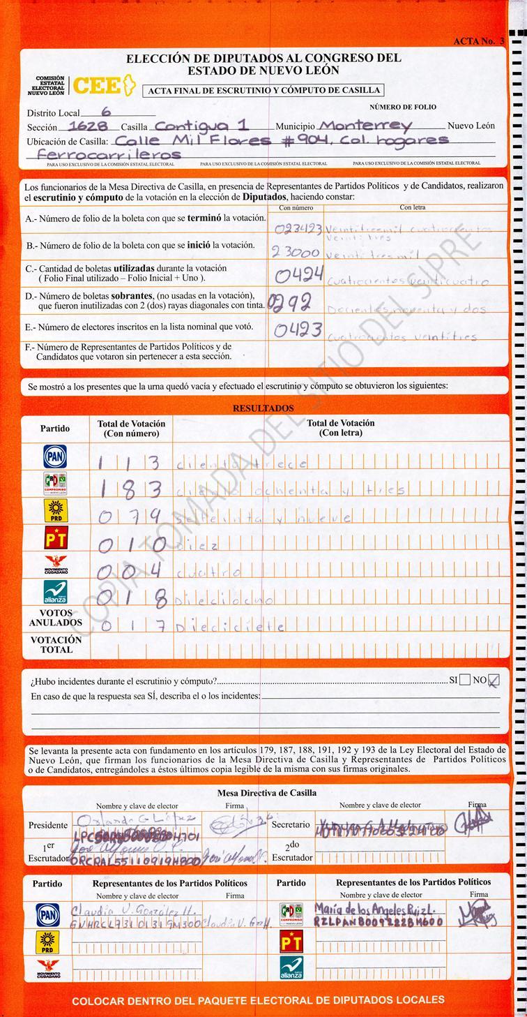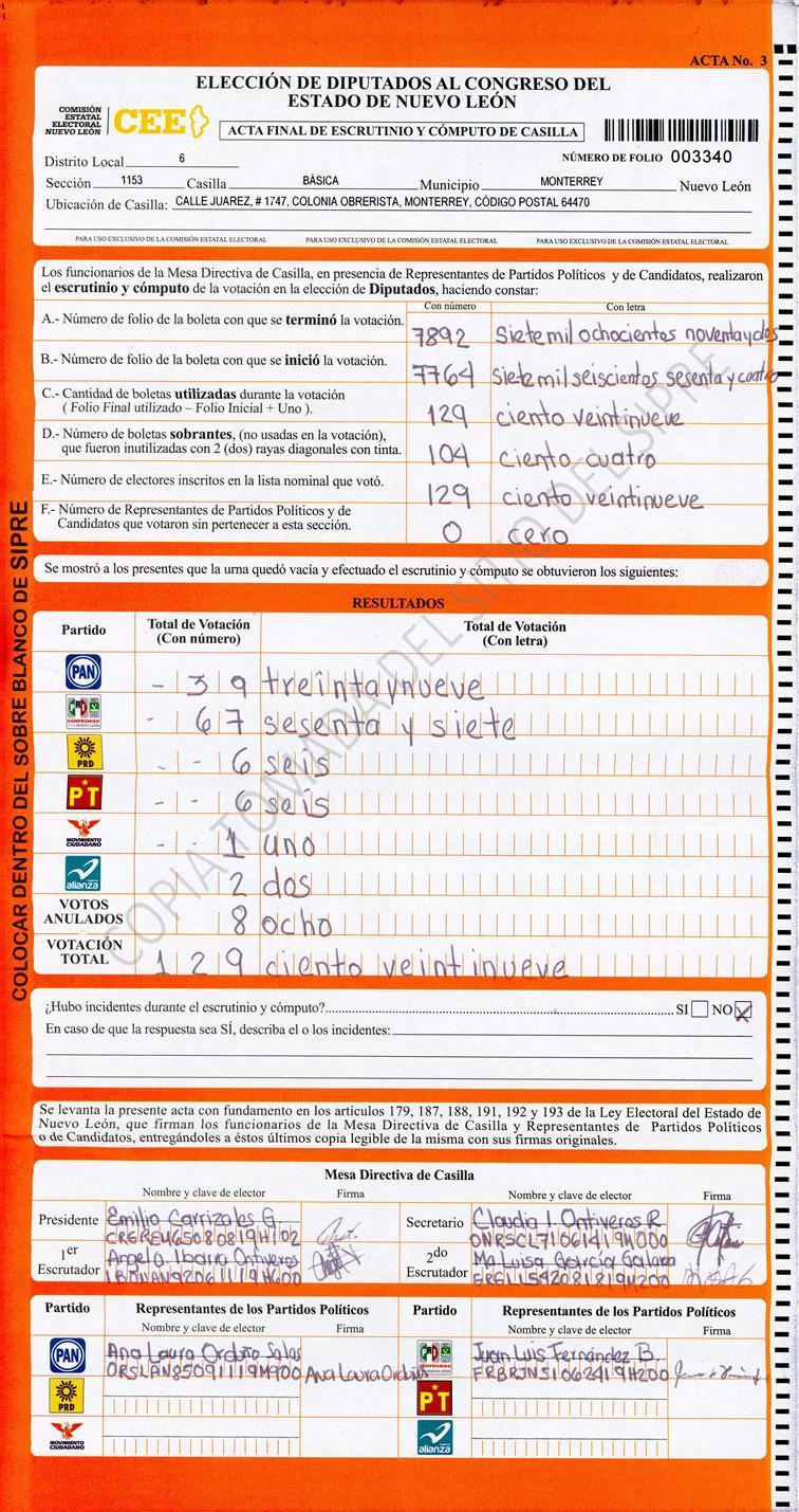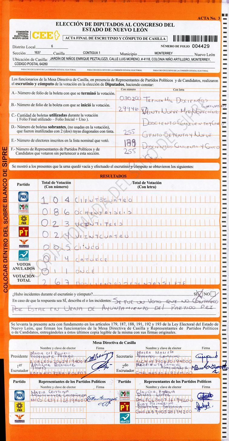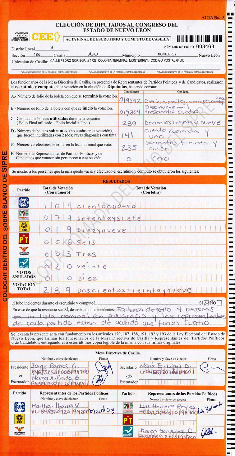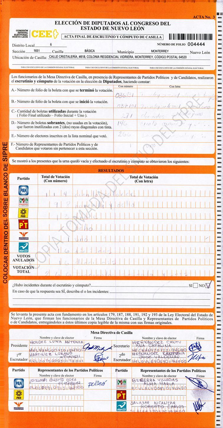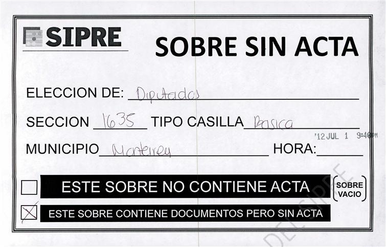 , (8) Copiado Movido , (9) Con Signos Inválidos , (10) Excede Lista Nominal , (11) Otra |