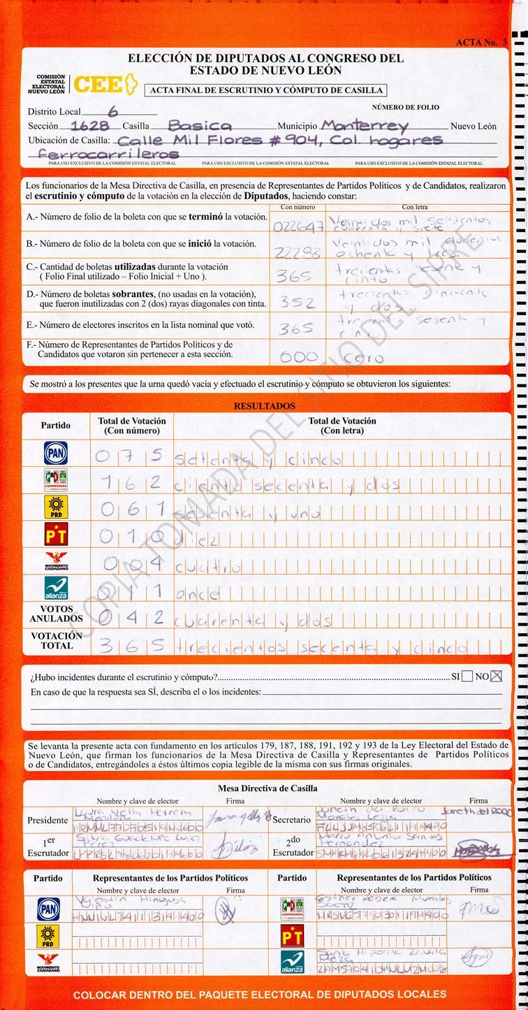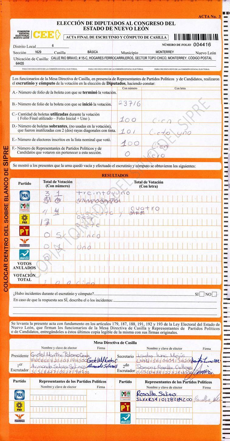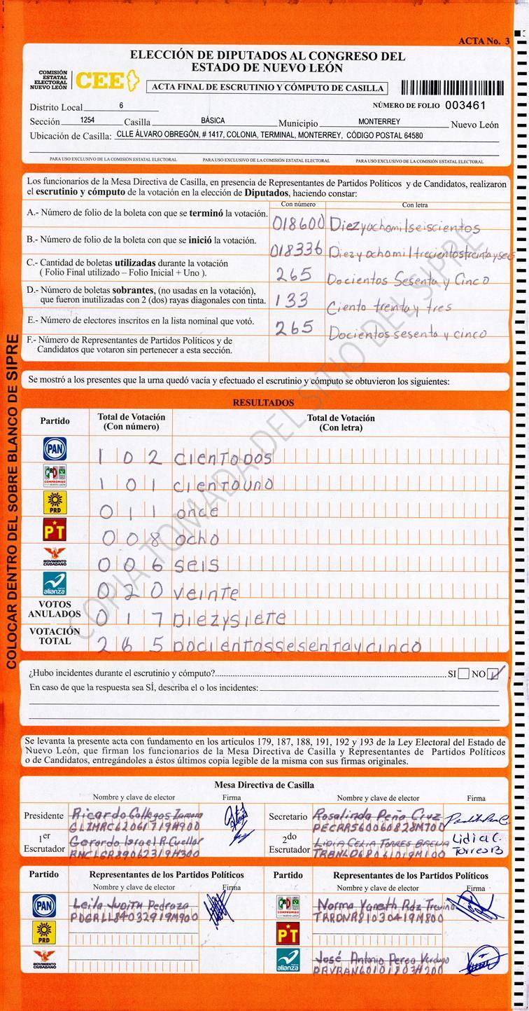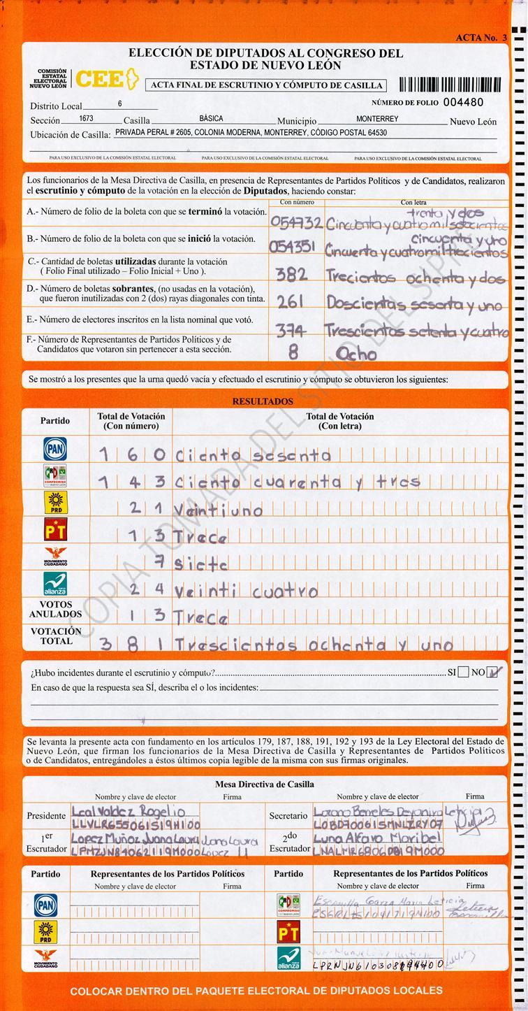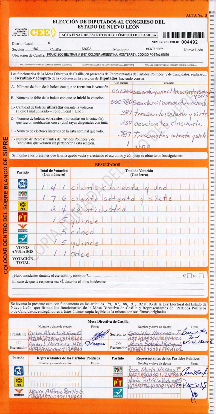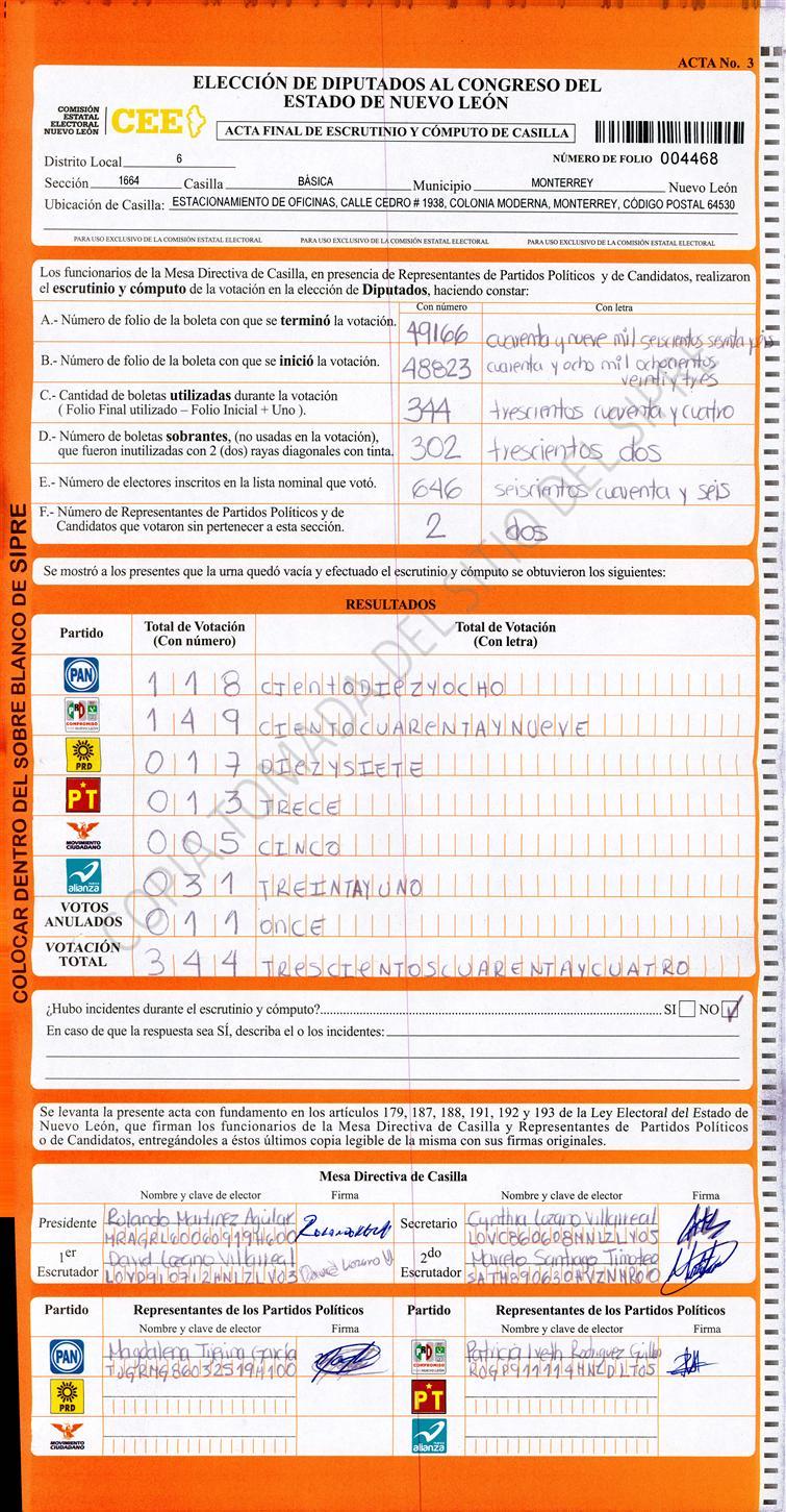 , (8) Copiado Movido , (9) Con Signos Inválidos , (10) Excede Lista Nominal , (11) Otra |