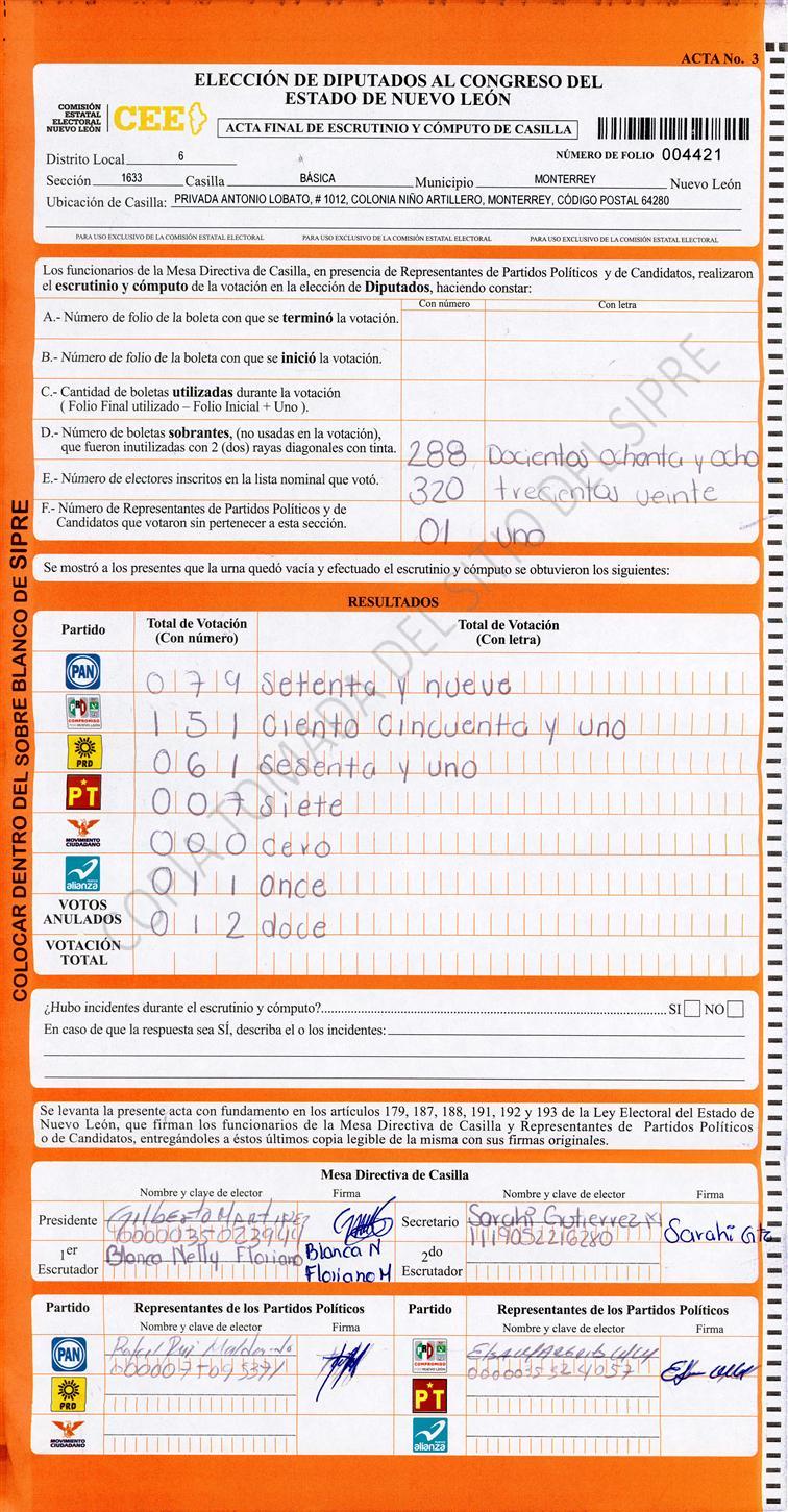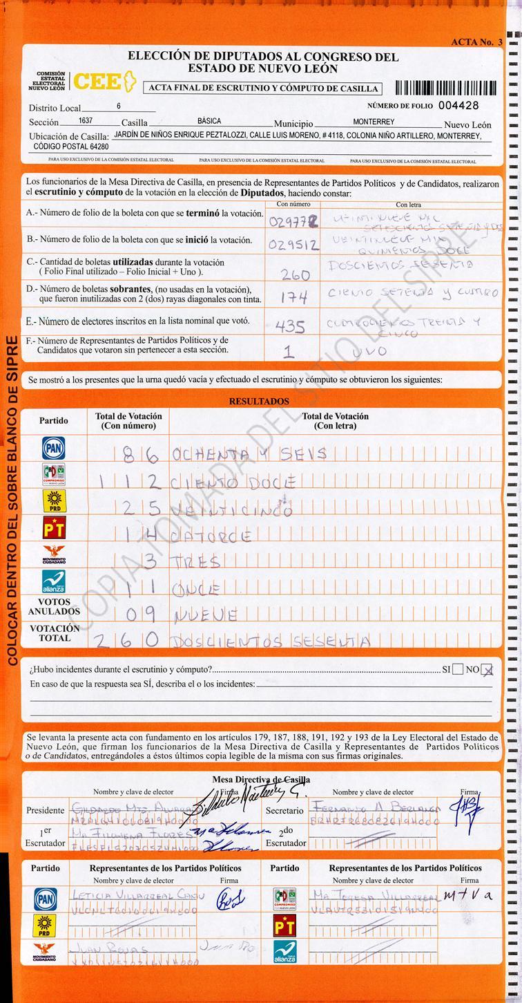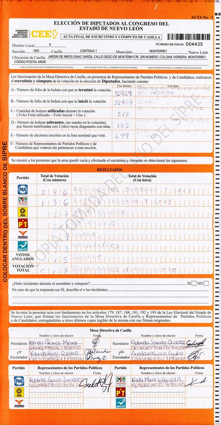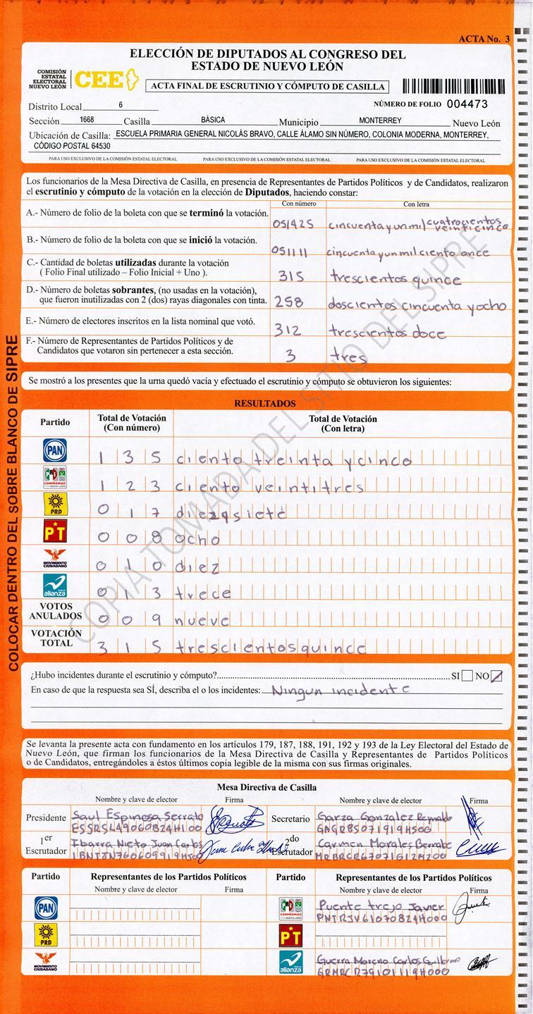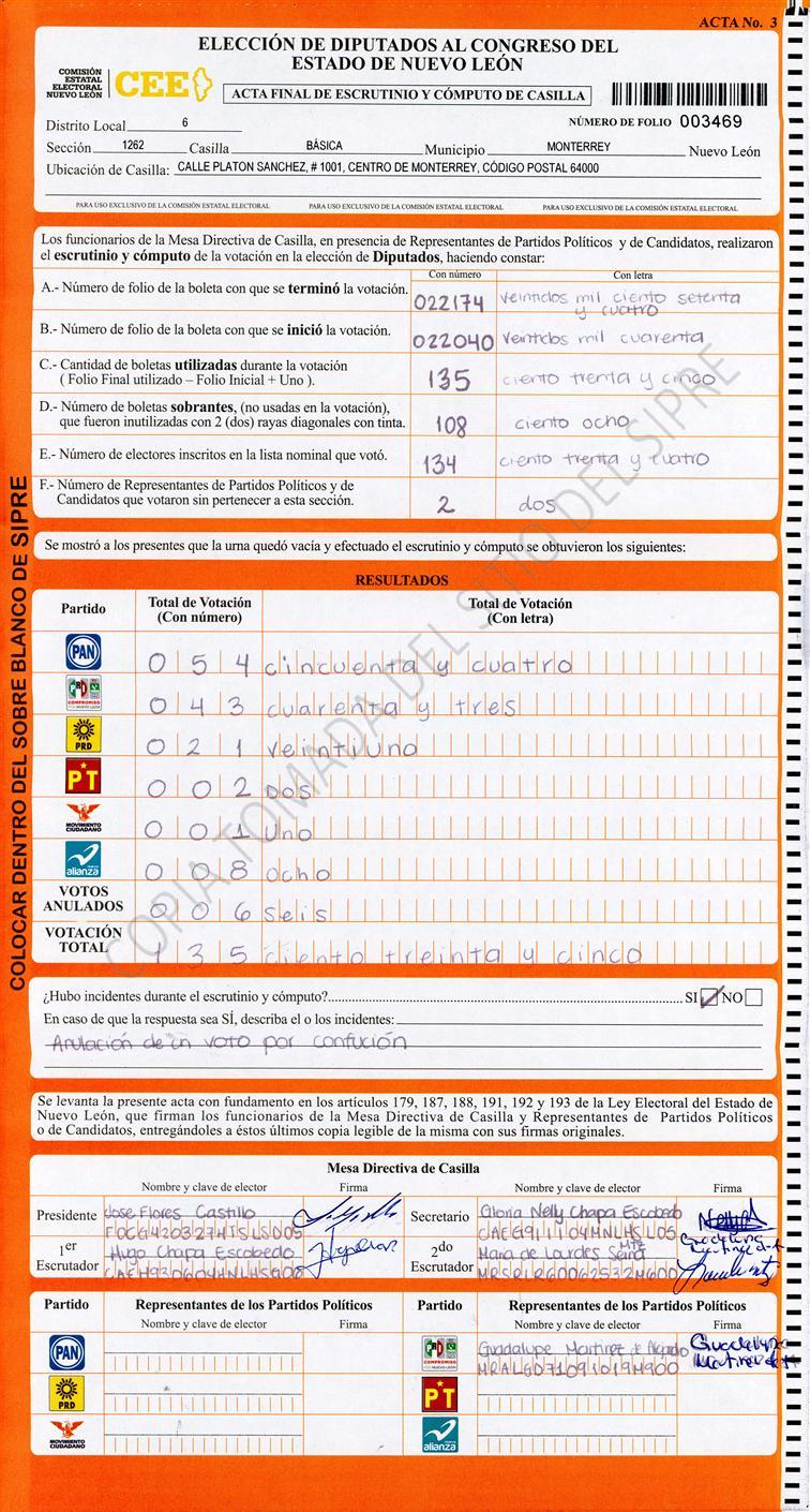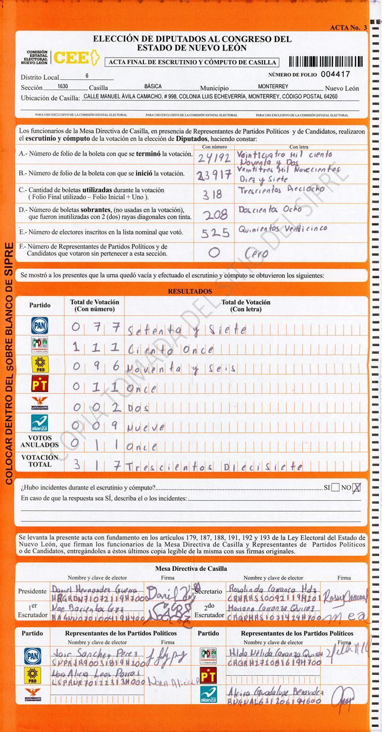 , (8) Copiado Movido , (9) Con Signos Inválidos , (10) Excede Lista Nominal , (11) Otra |