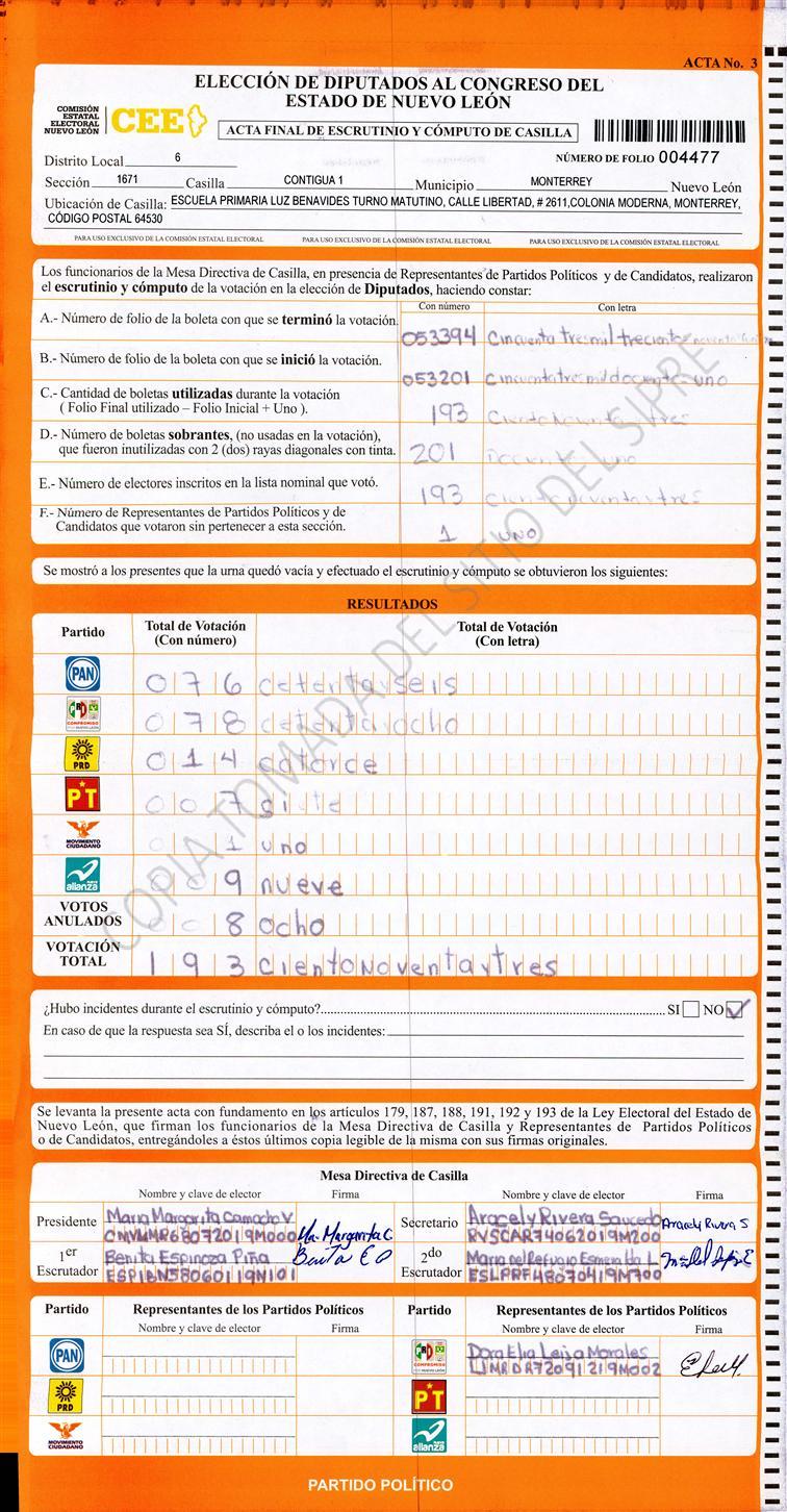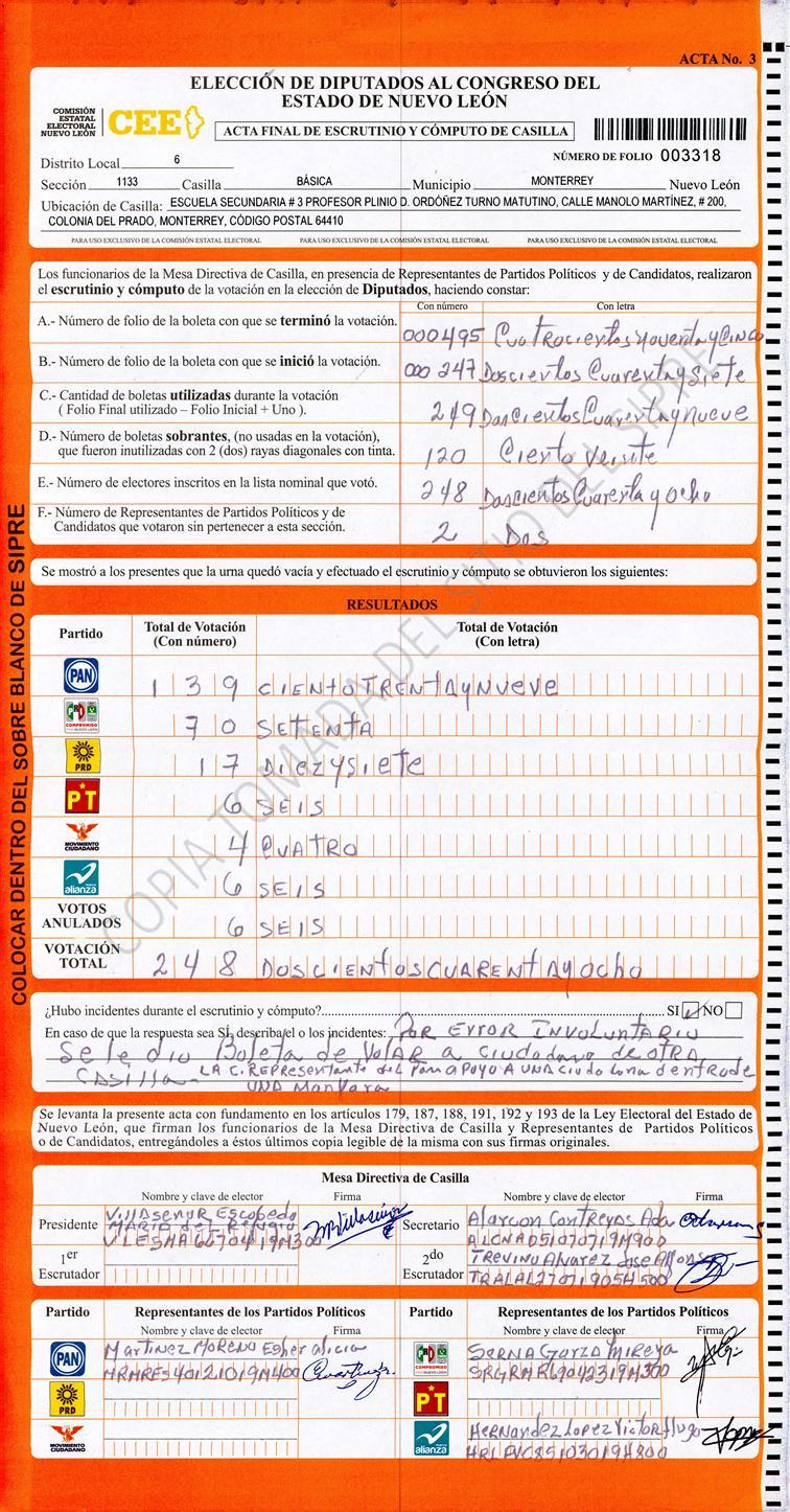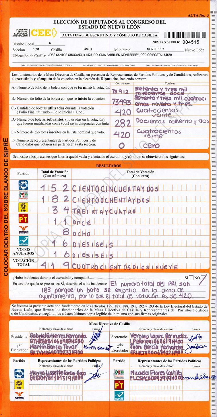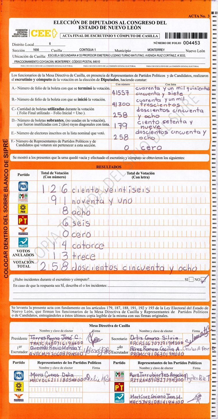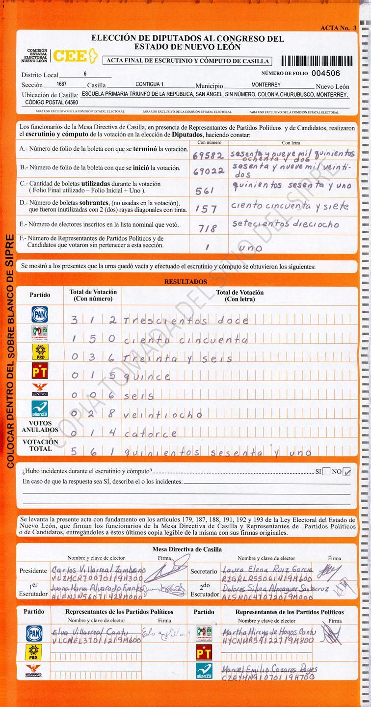 , (8) Copiado Movido , (9) Con Signos Inválidos , (10) Excede Lista Nominal , (11) Otra |