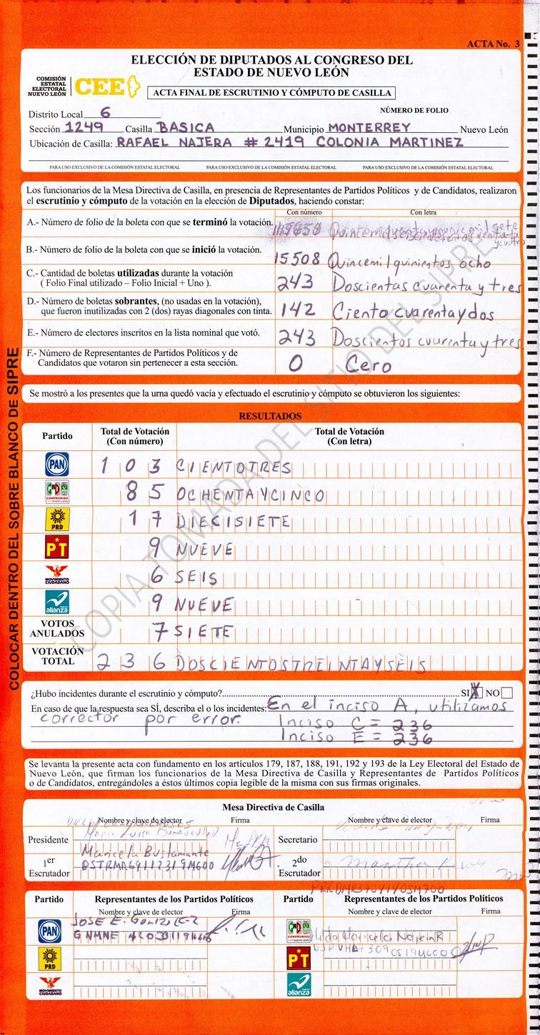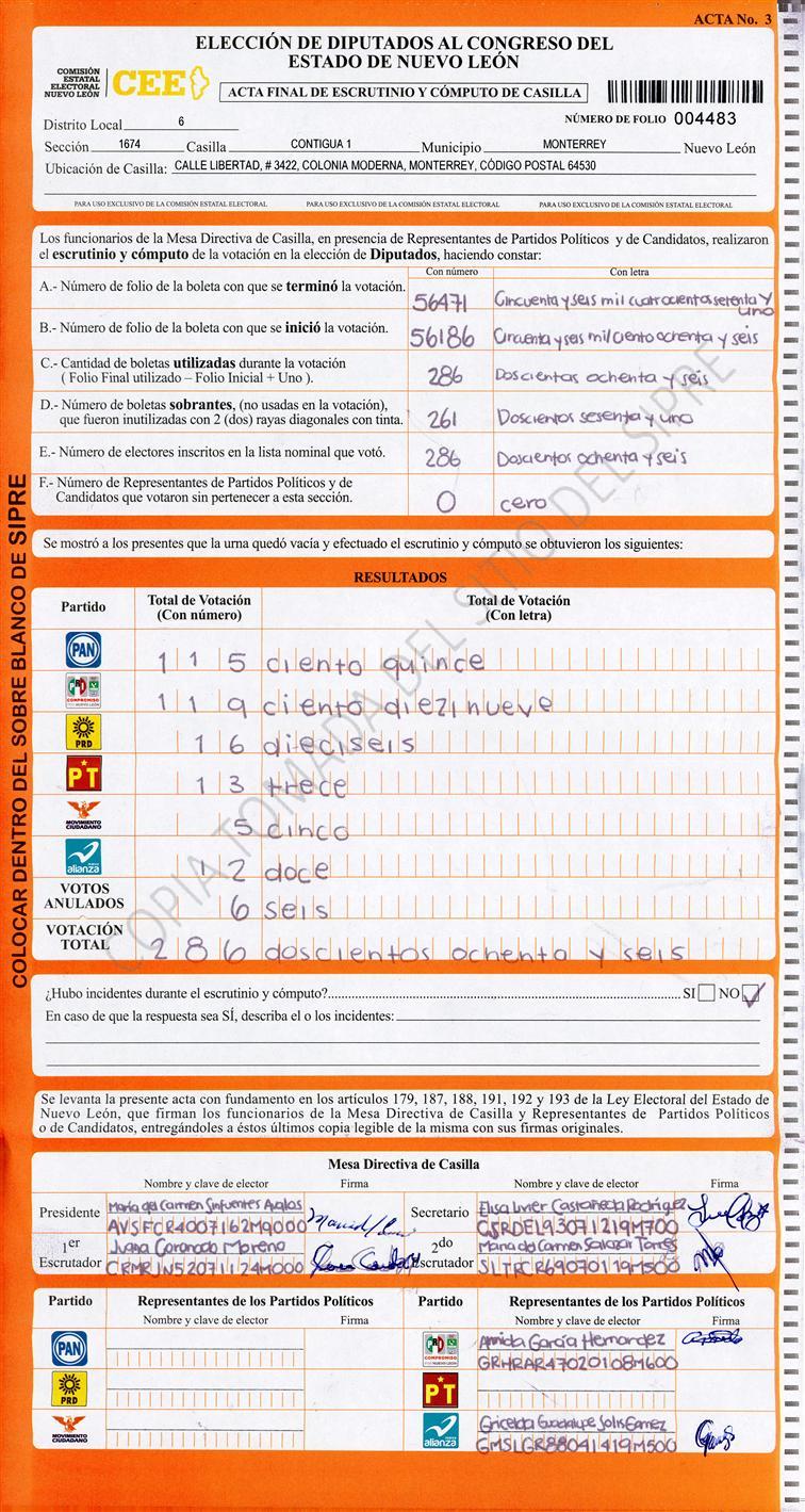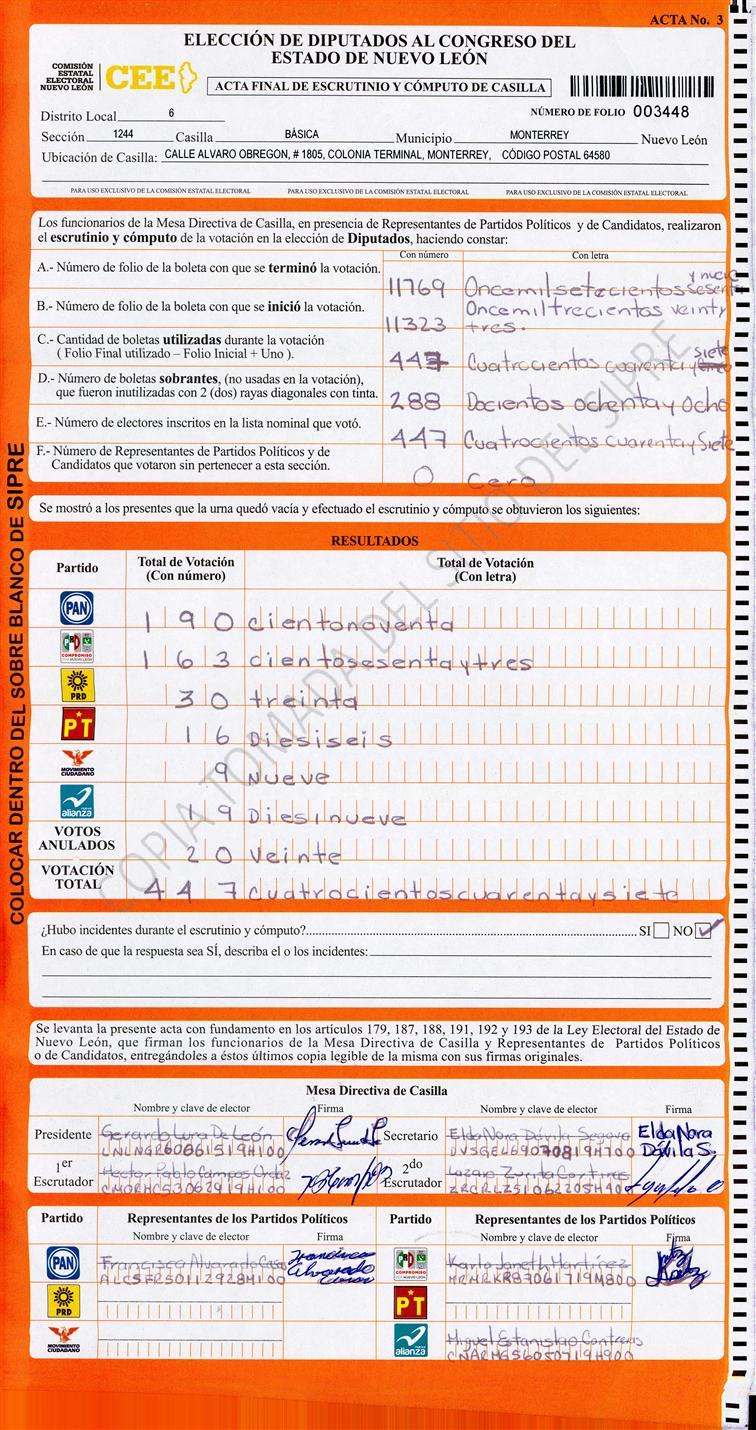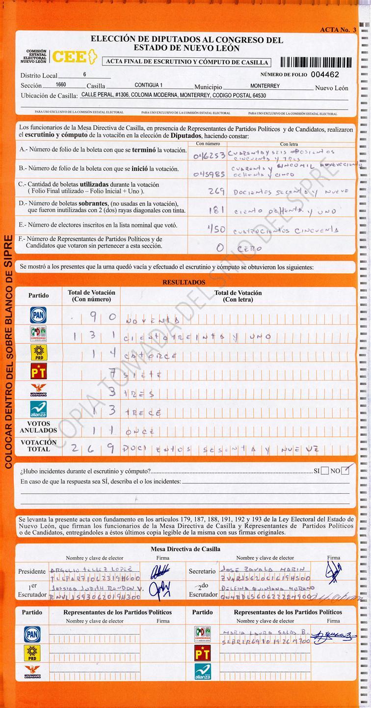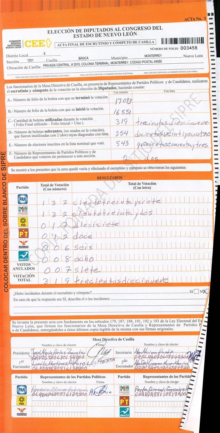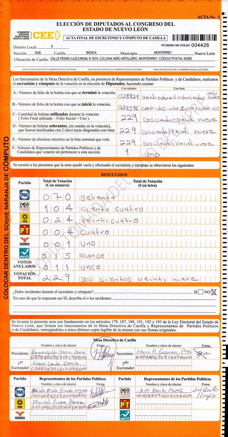 , (8) Copiado Movido , (9) Con Signos Inválidos , (10) Excede Lista Nominal , (11) Otra |