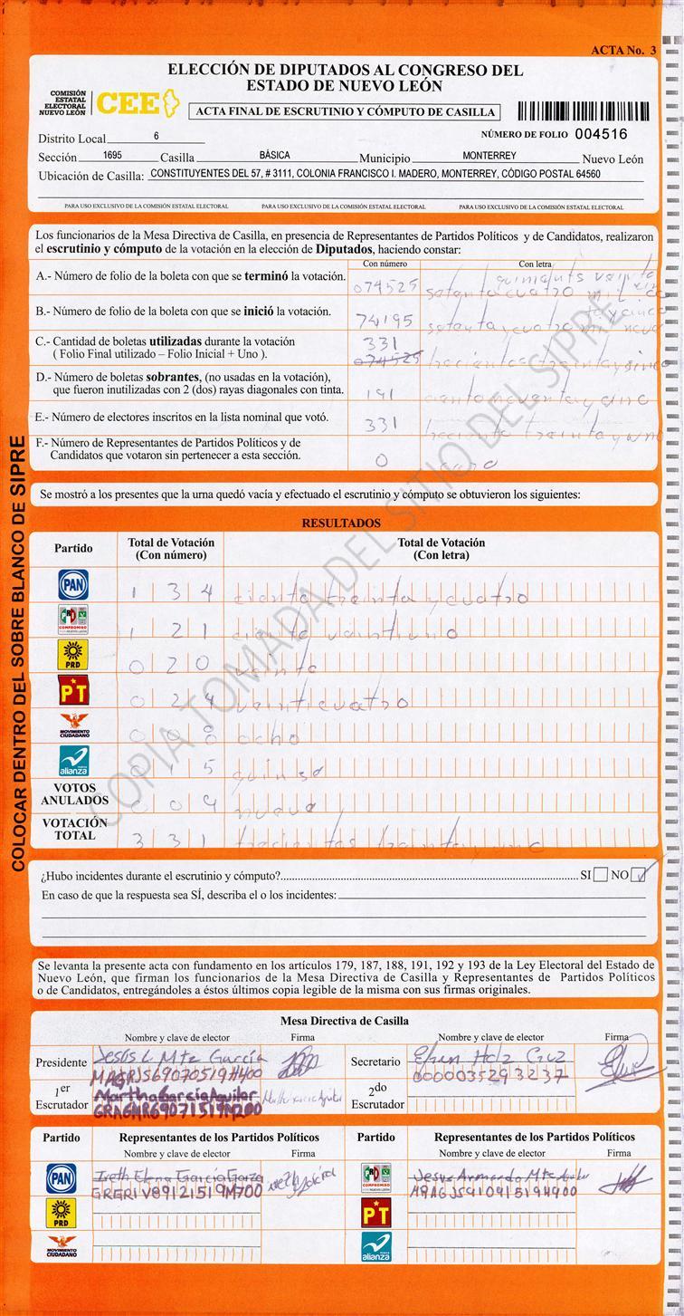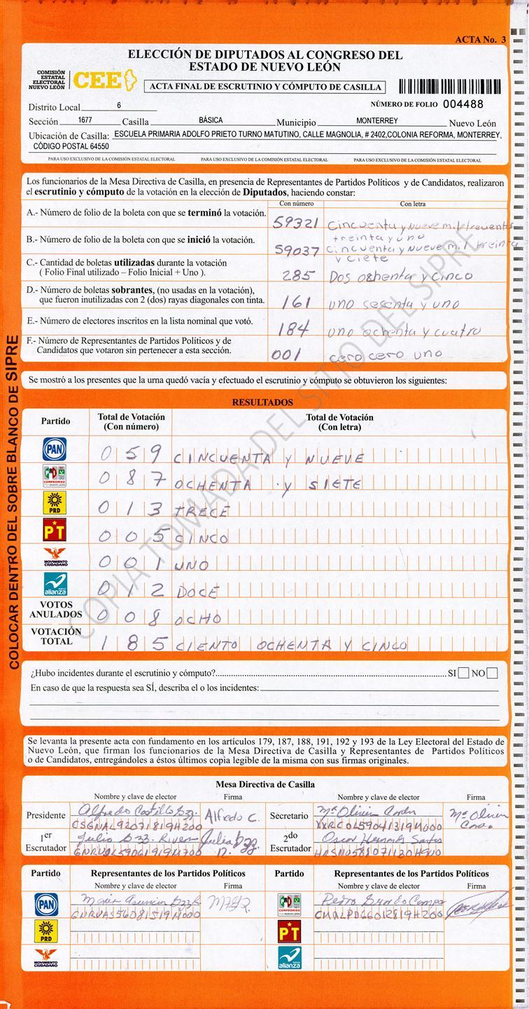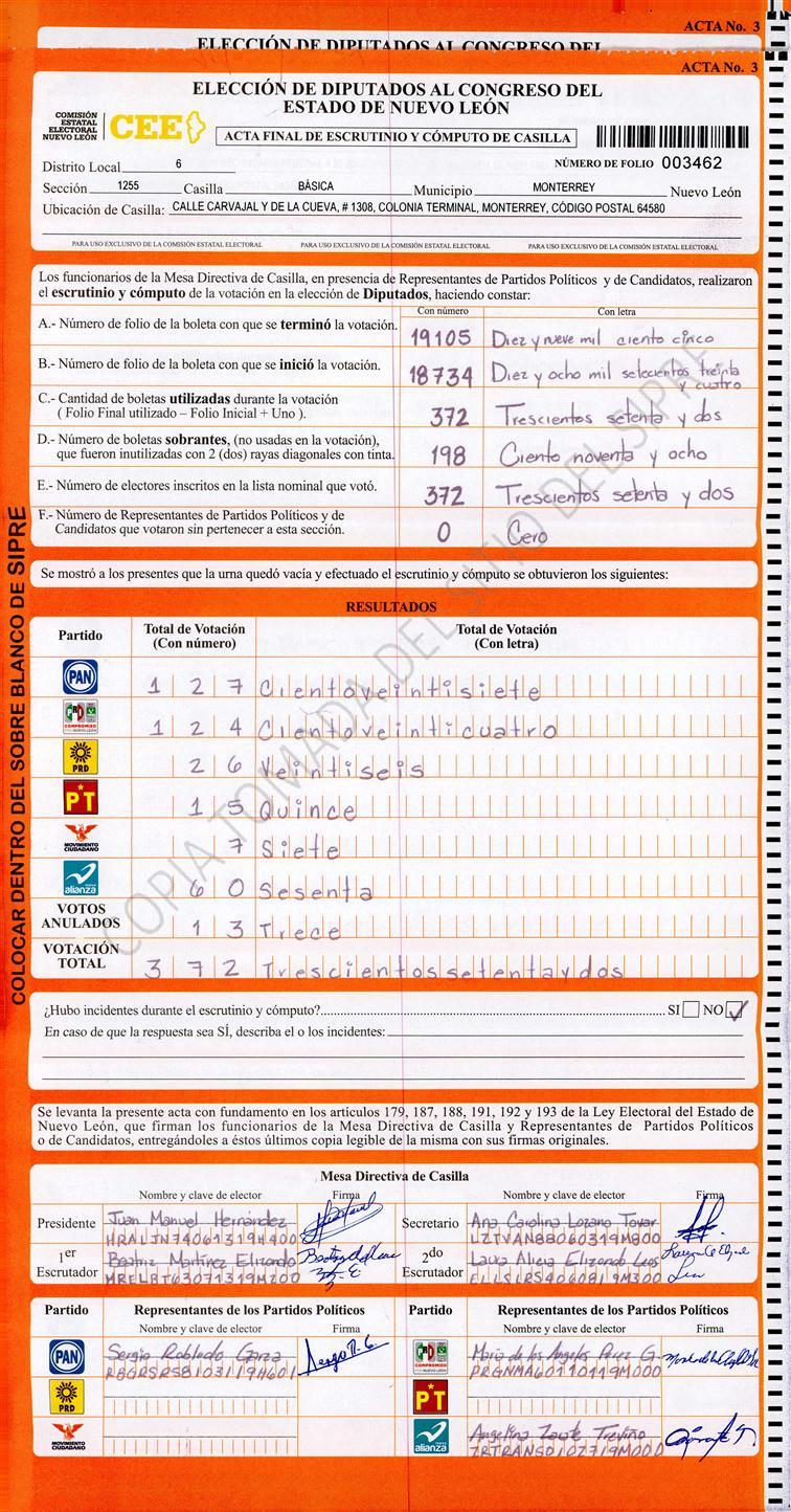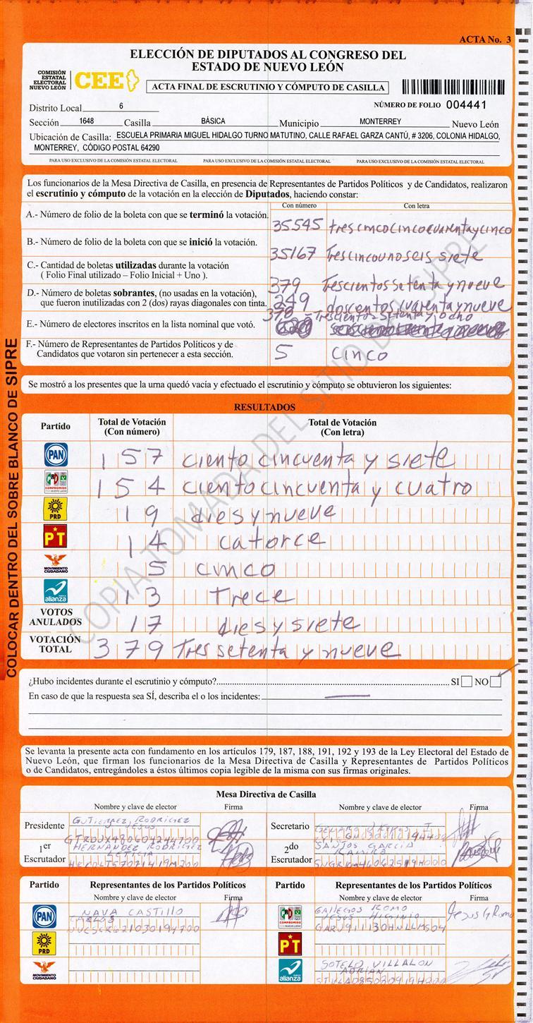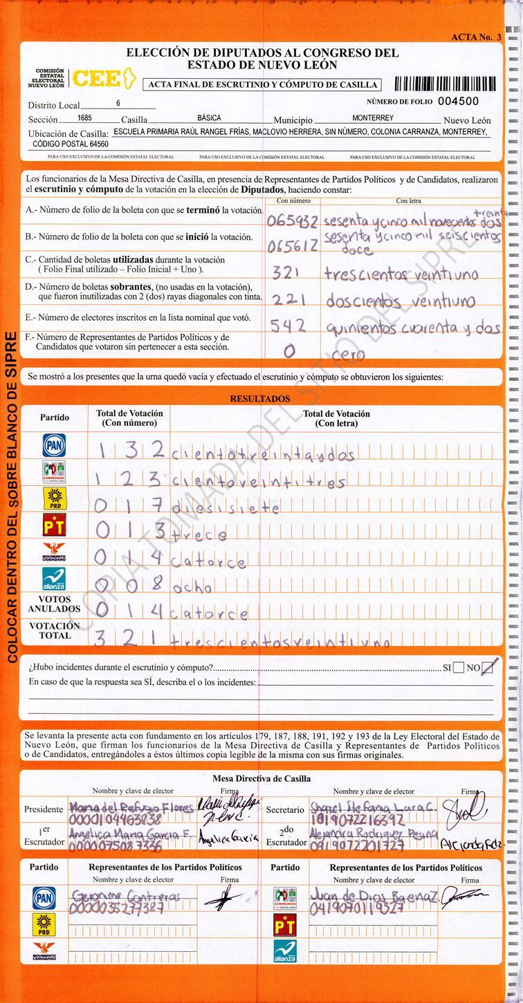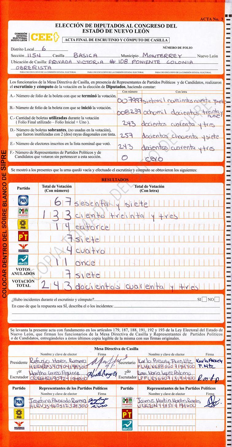 , (8) Copiado Movido , (9) Con Signos Inválidos , (10) Excede Lista Nominal , (11) Otra |