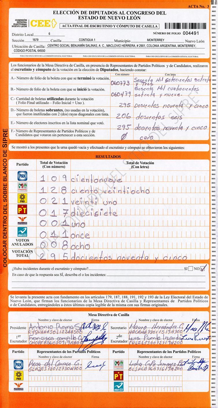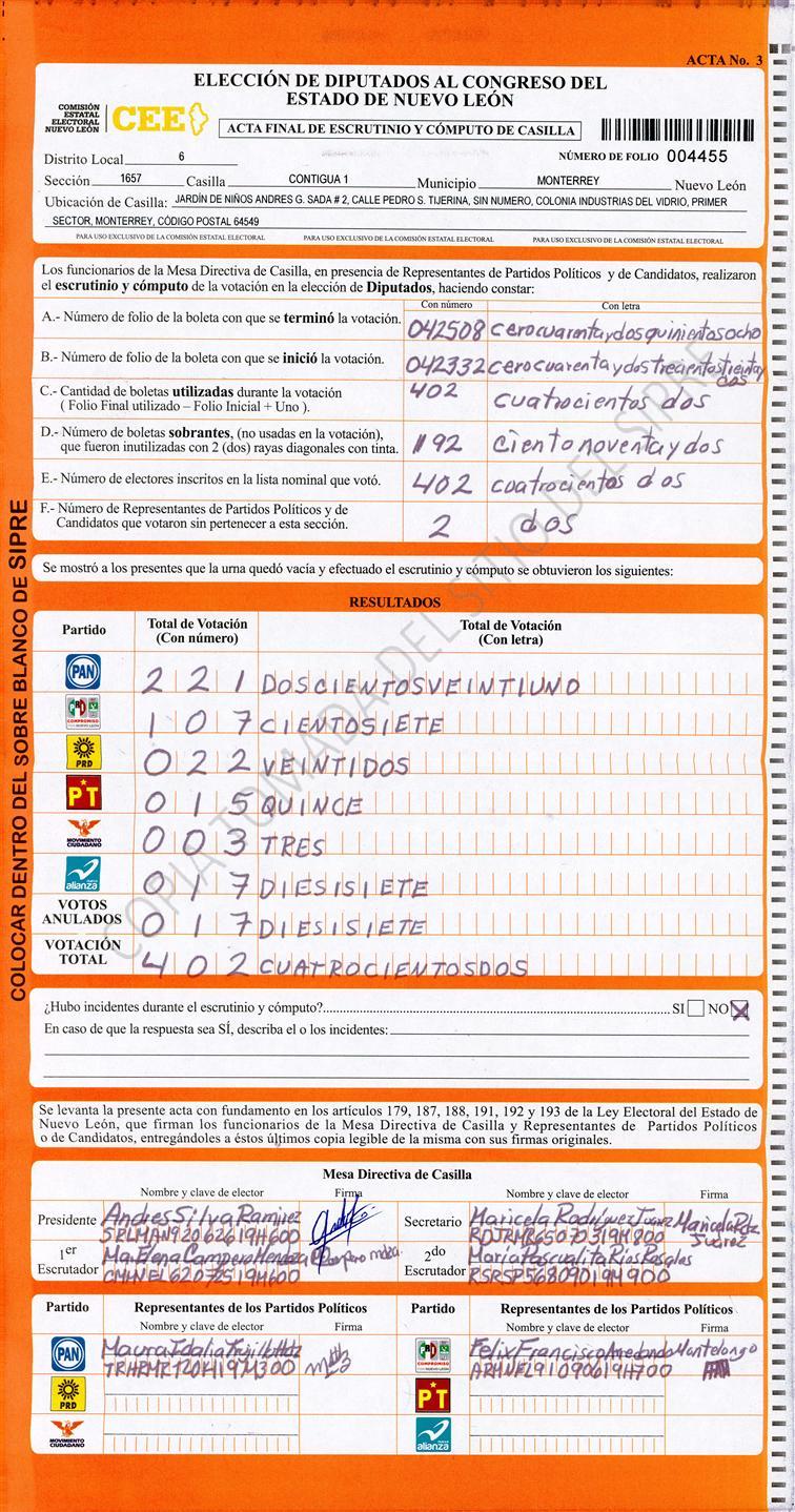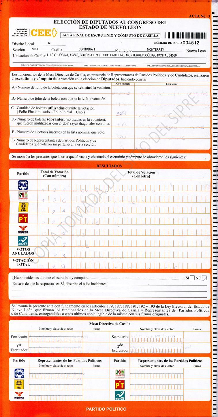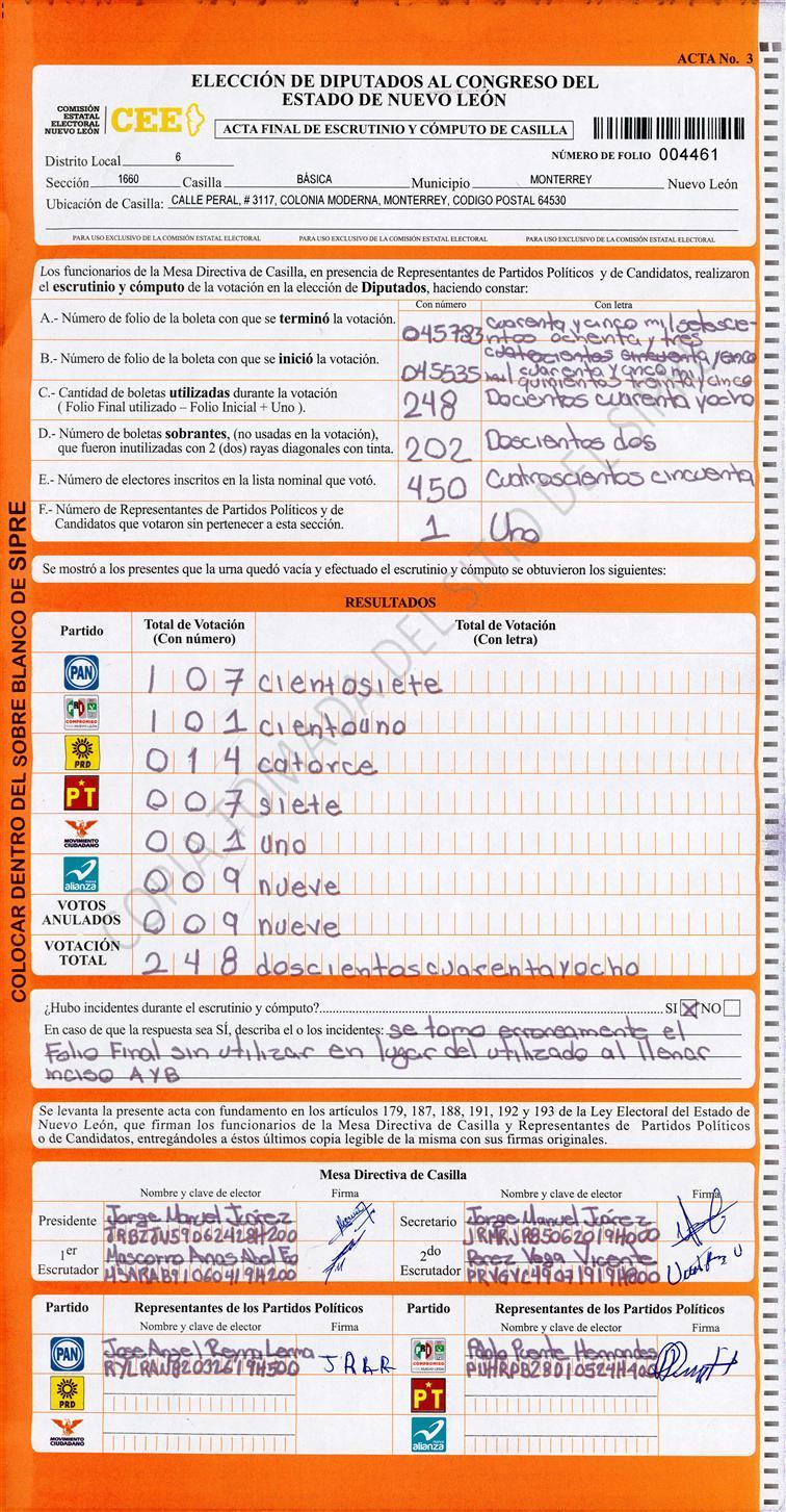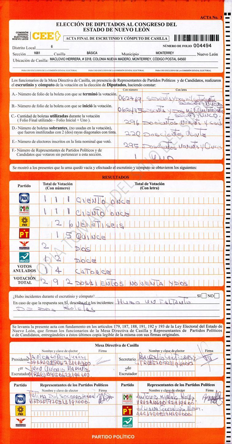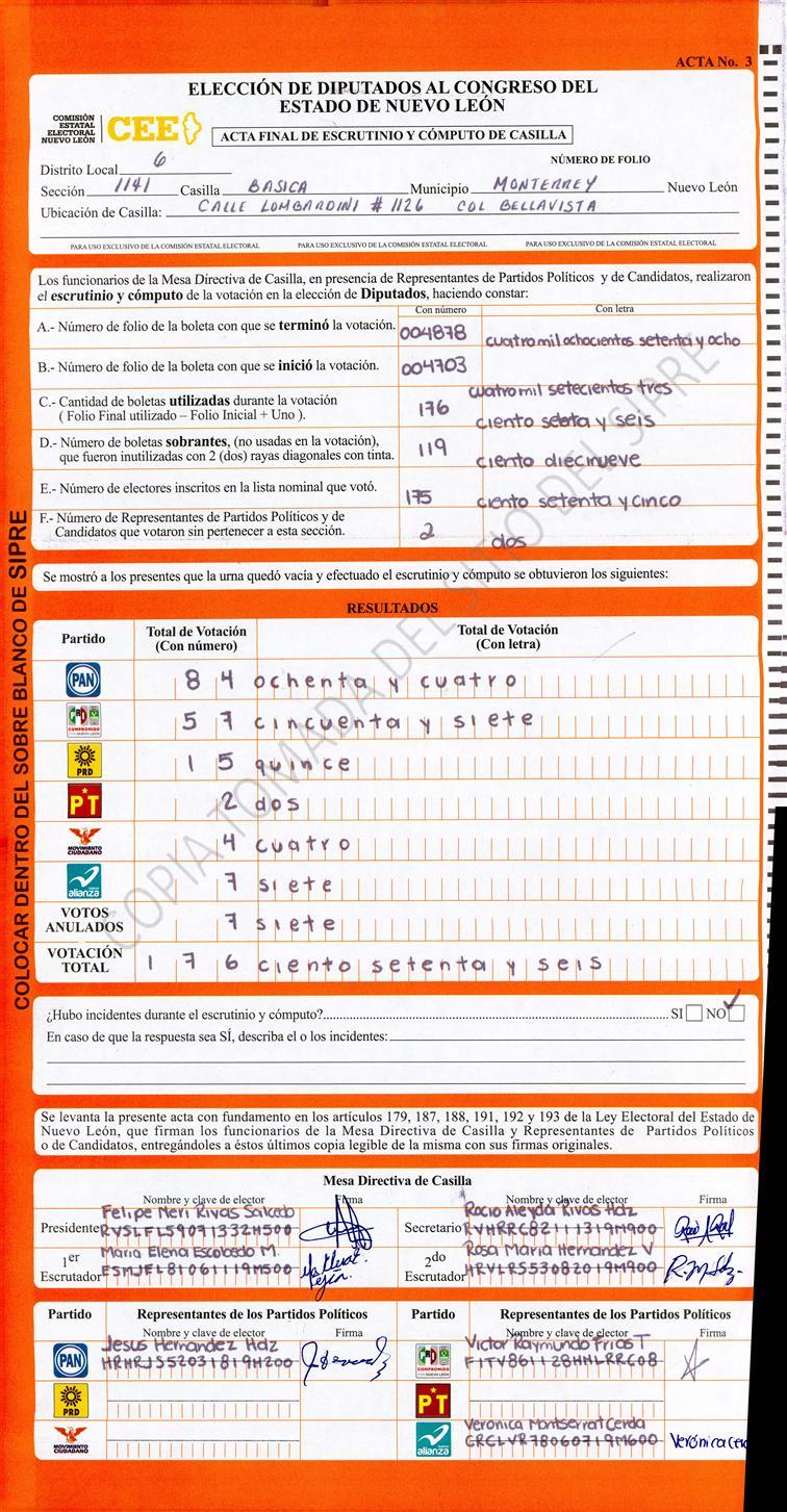 , (8) Copiado Movido , (9) Con Signos Inválidos , (10) Excede Lista Nominal , (11) Otra |
