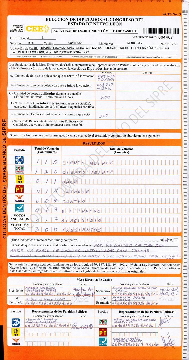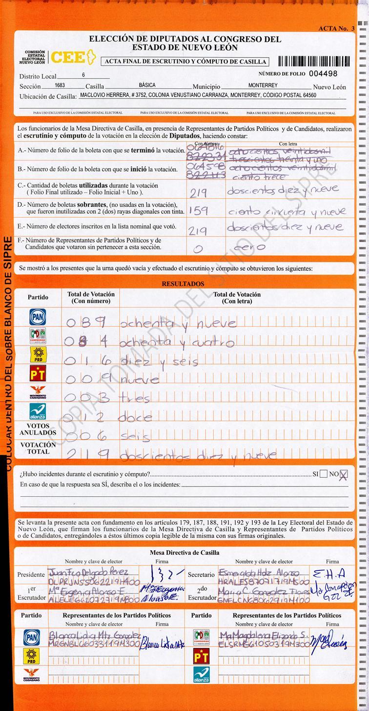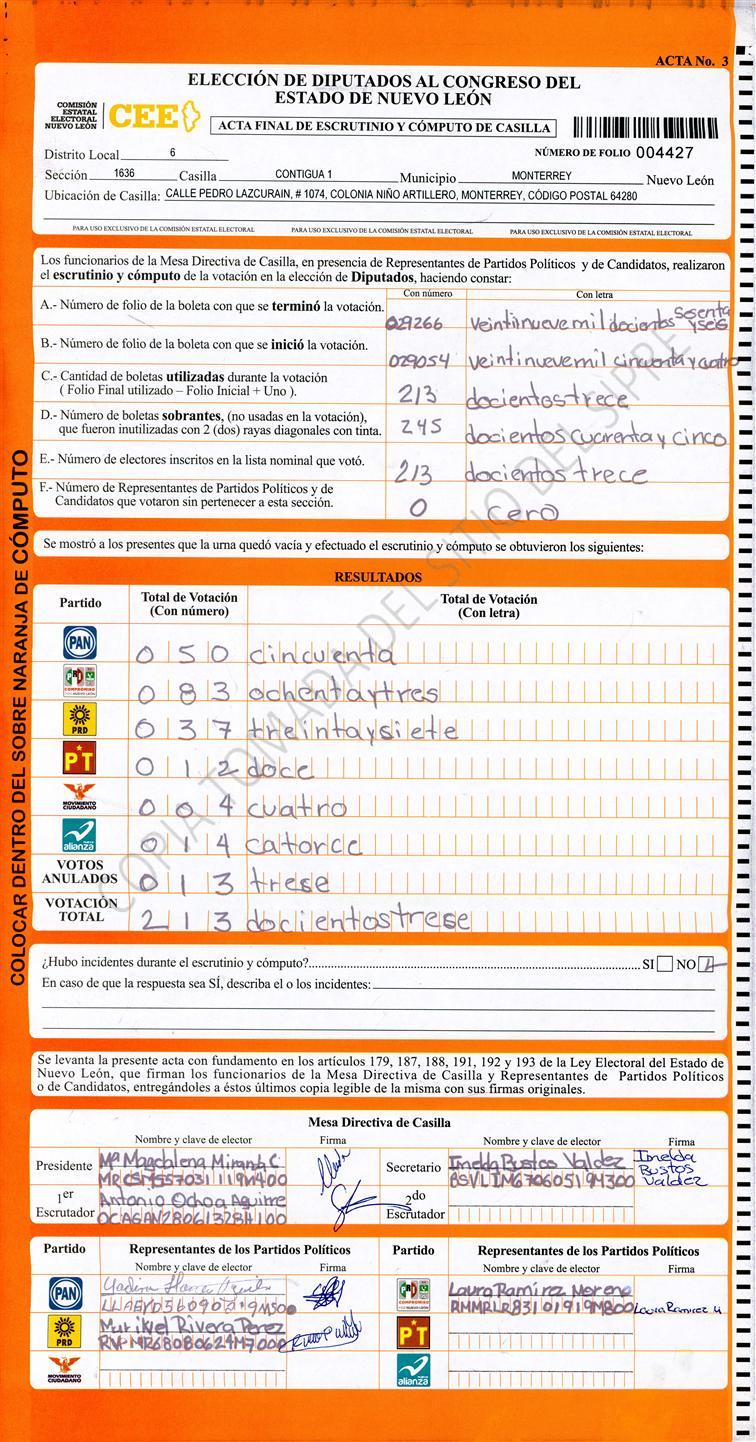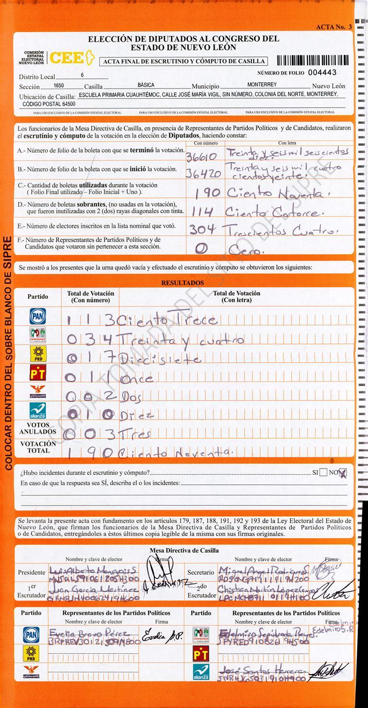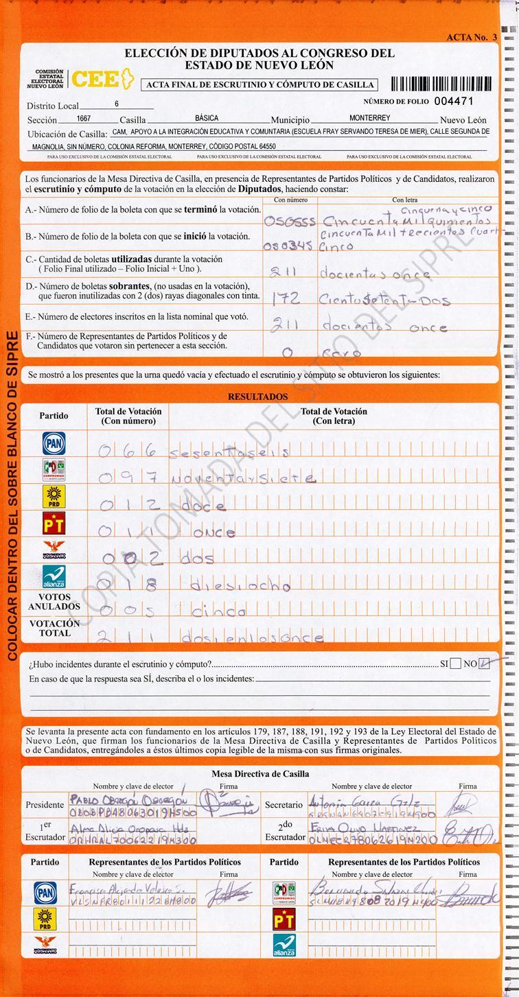 , (8) Copiado Movido , (9) Con Signos Inválidos , (10) Excede Lista Nominal , (11) Otra |