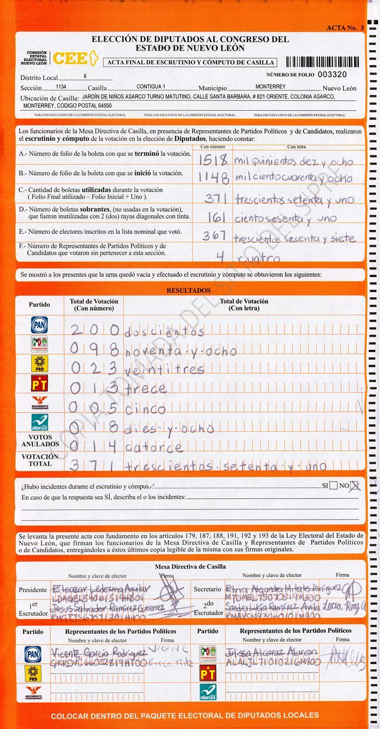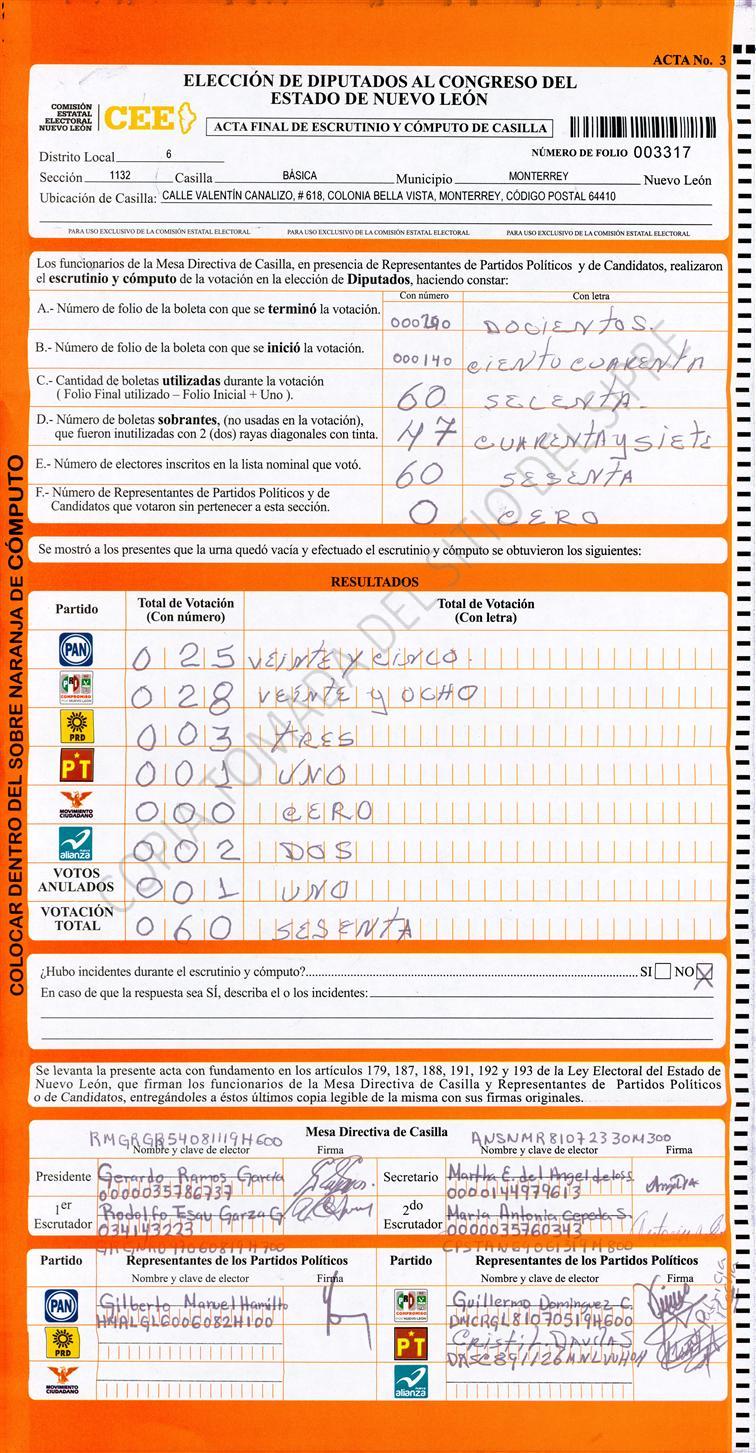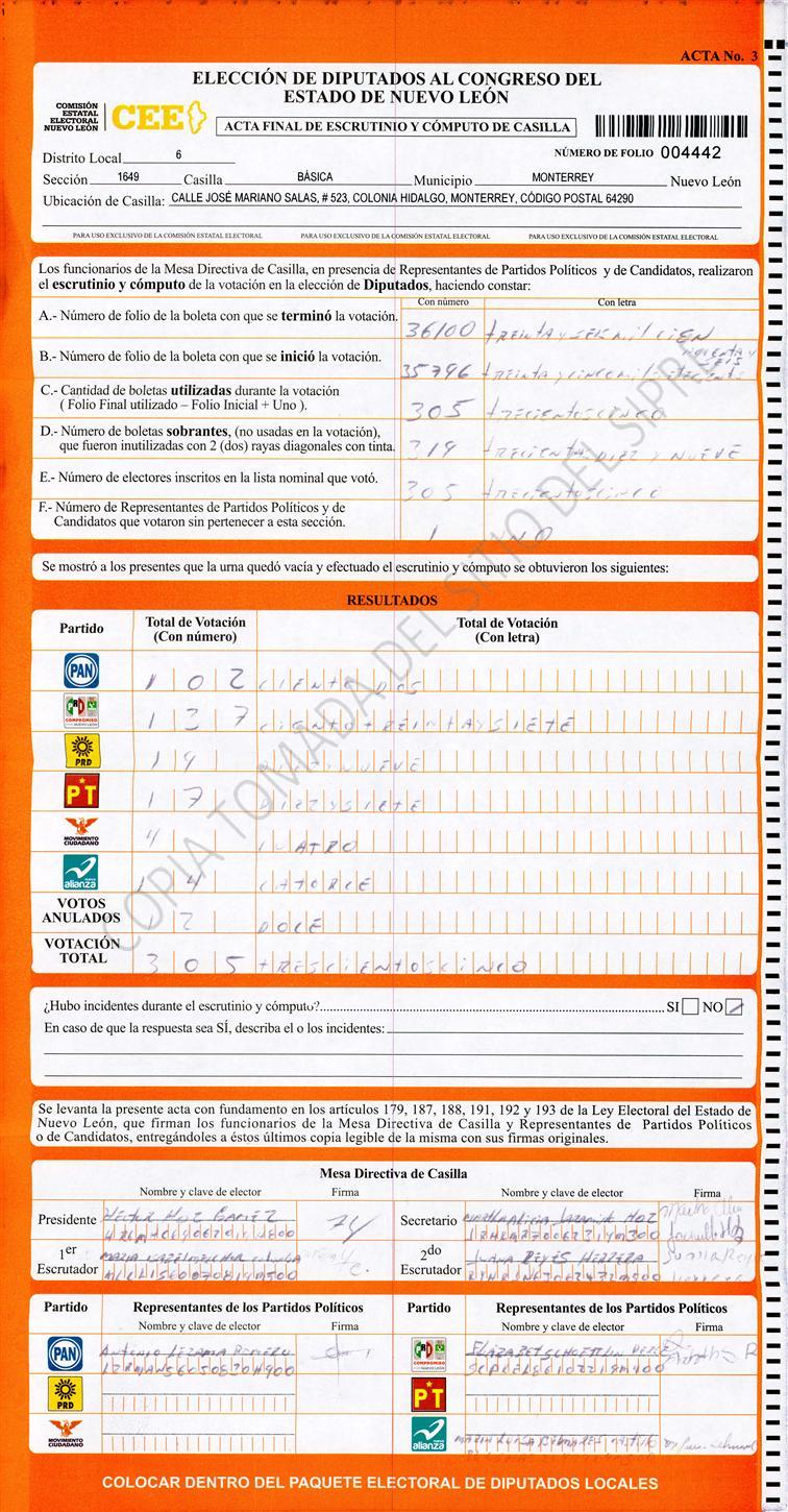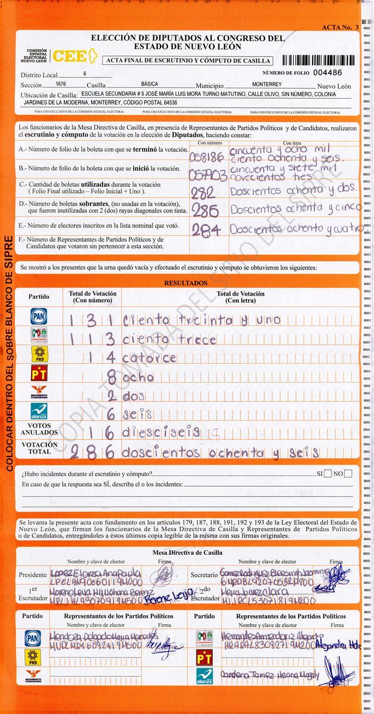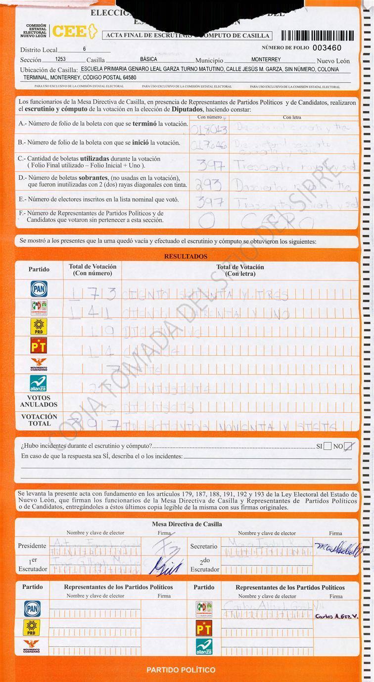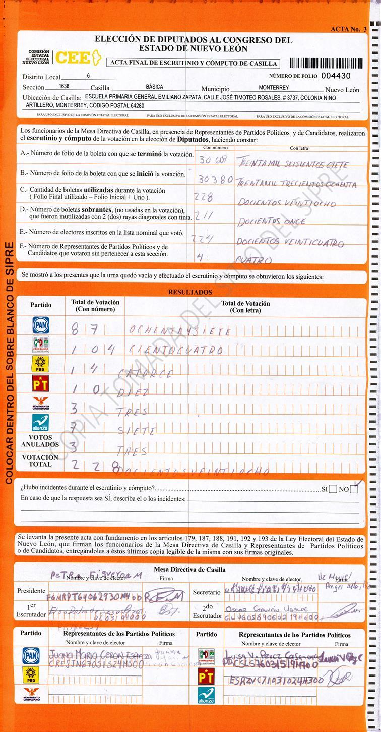 , (8) Copiado Movido , (9) Con Signos Inválidos , (10) Excede Lista Nominal , (11) Otra |