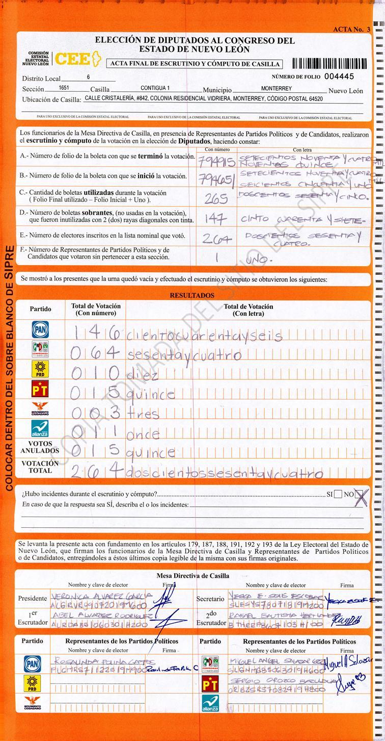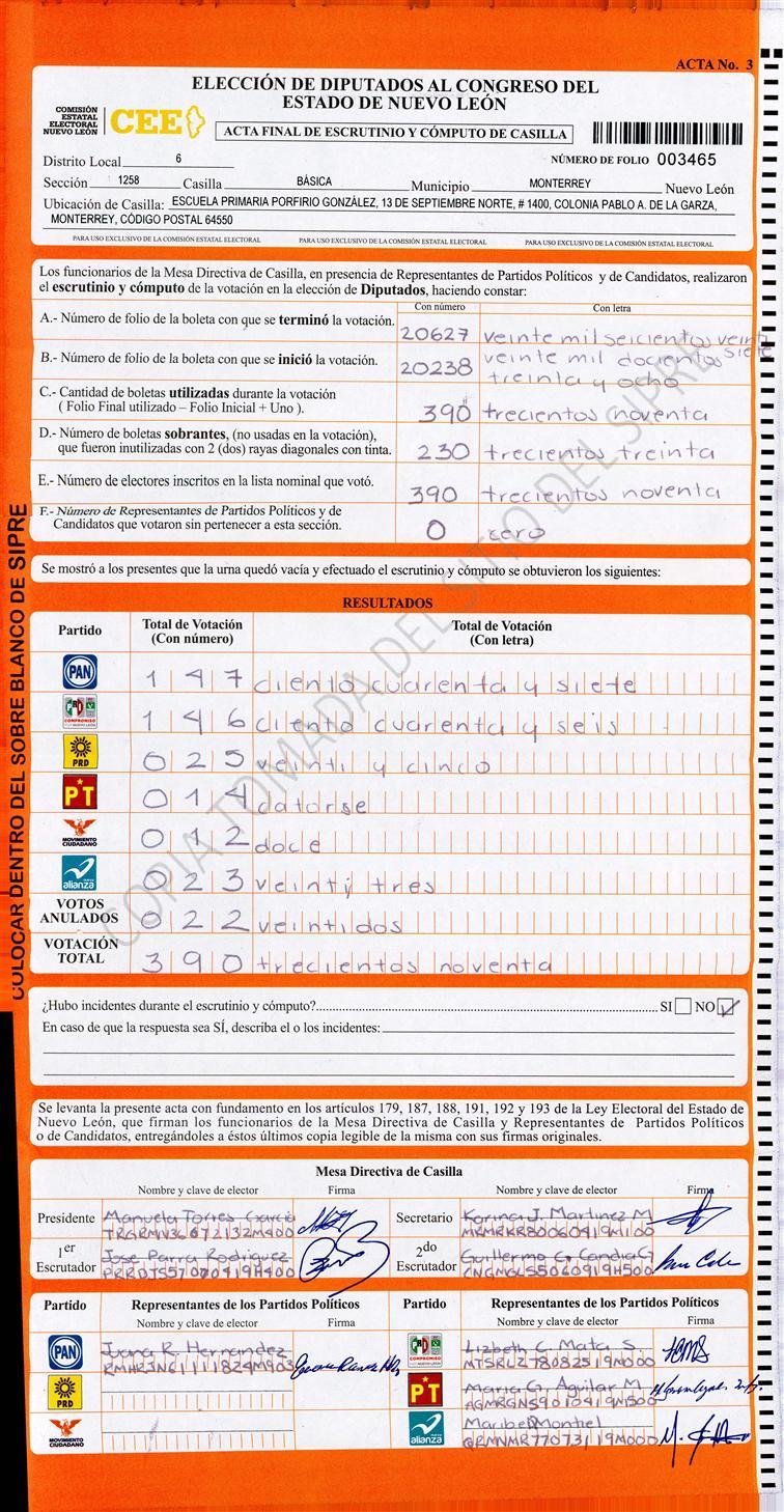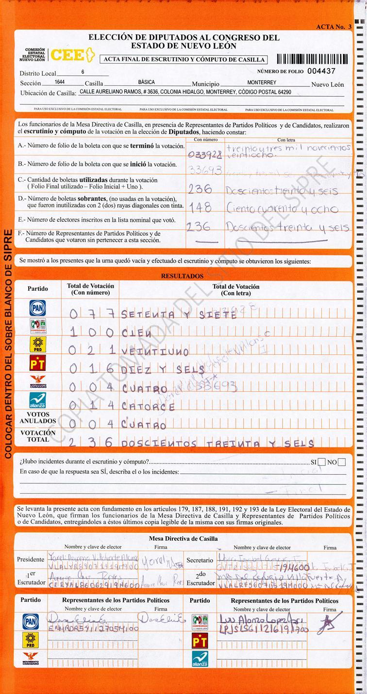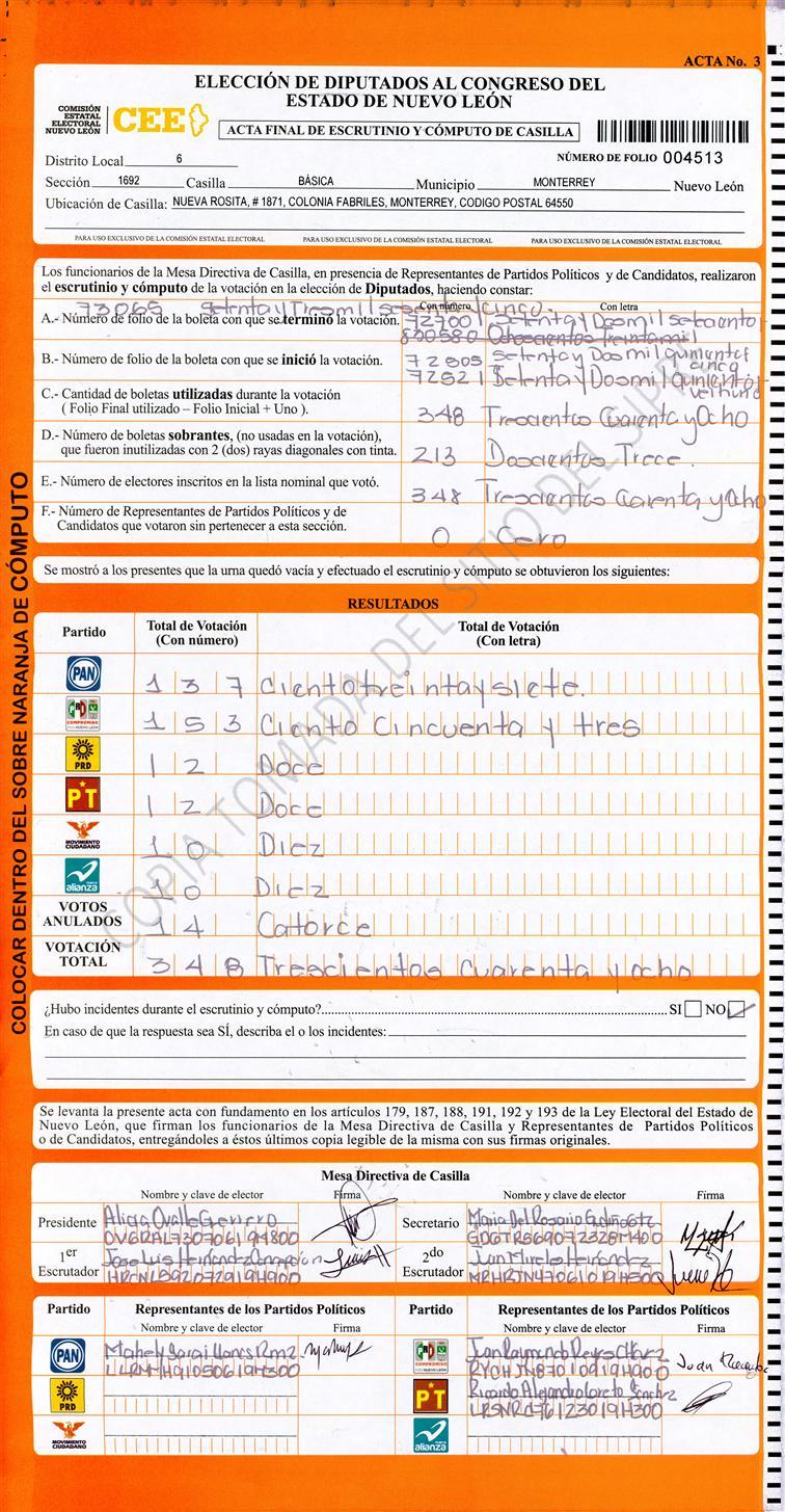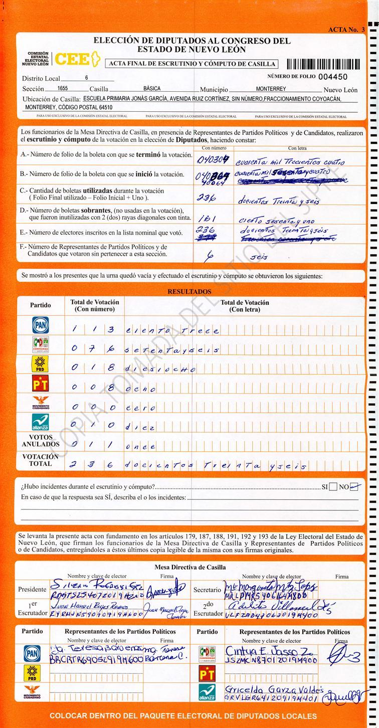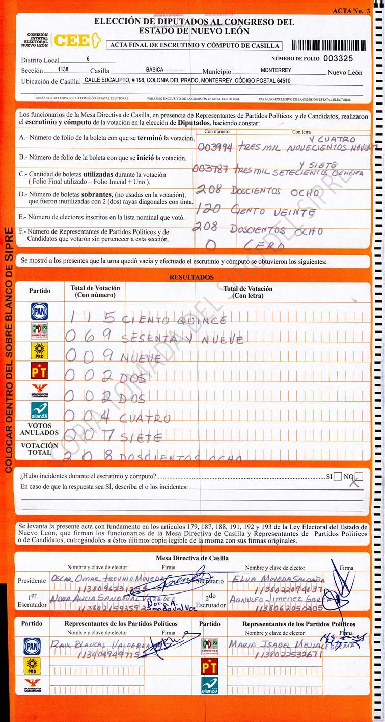 , (8) Copiado Movido , (9) Con Signos Inválidos , (10) Excede Lista Nominal , (11) Otra |